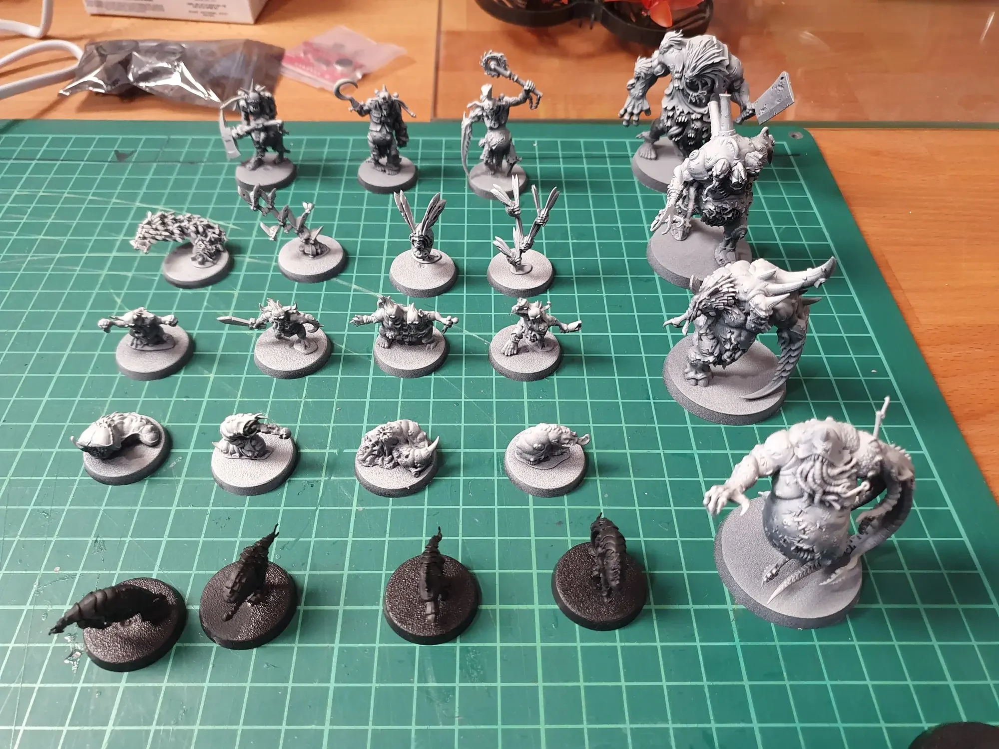 Zusammen mit den Elucidian Starstriders war dieses Kill Team in der “Into the Dark” Box von Games Workshop. Mit der Hilfe des Videos “Speed painting Gellerpox Infected” von Midwinter Minis habe dieses Kill Team bemalt.