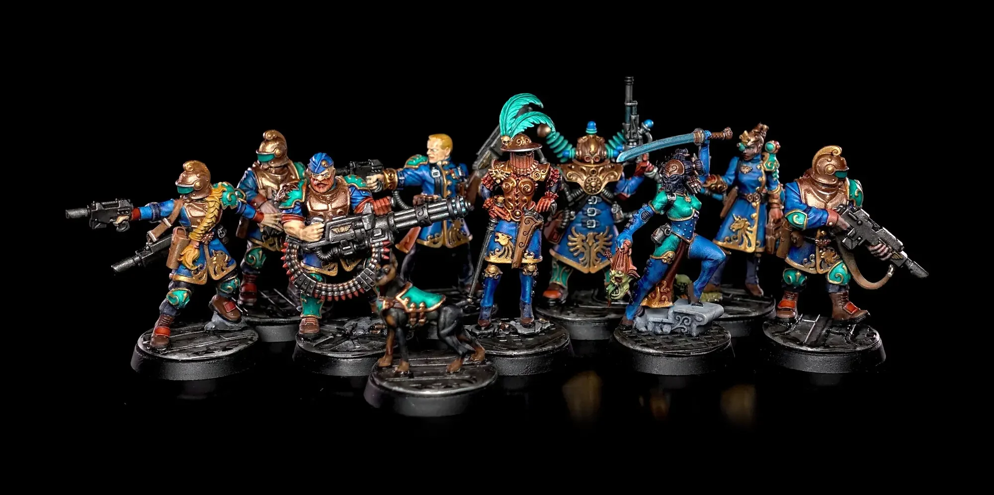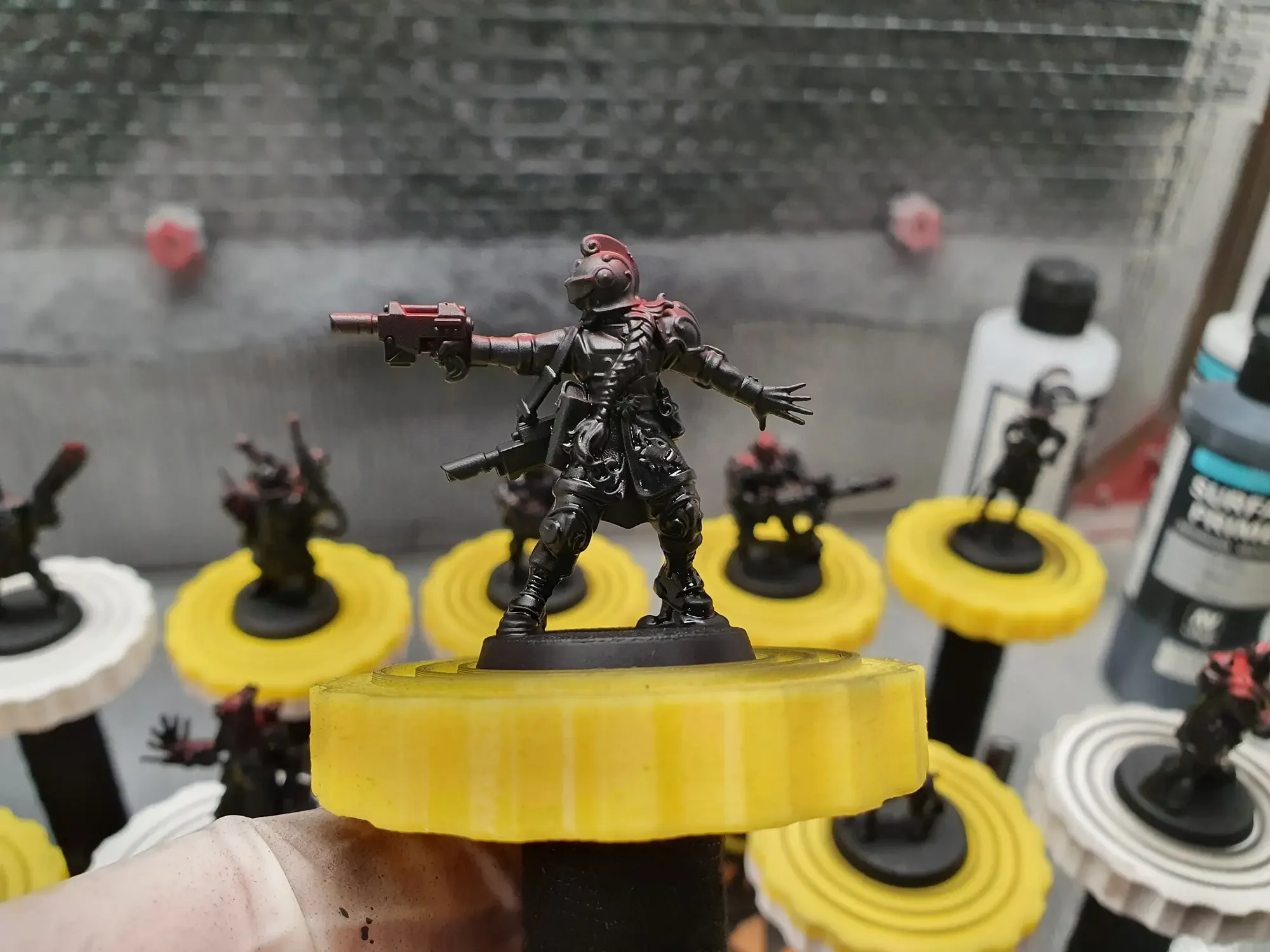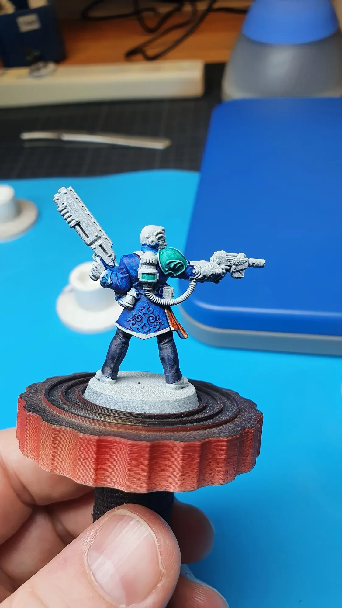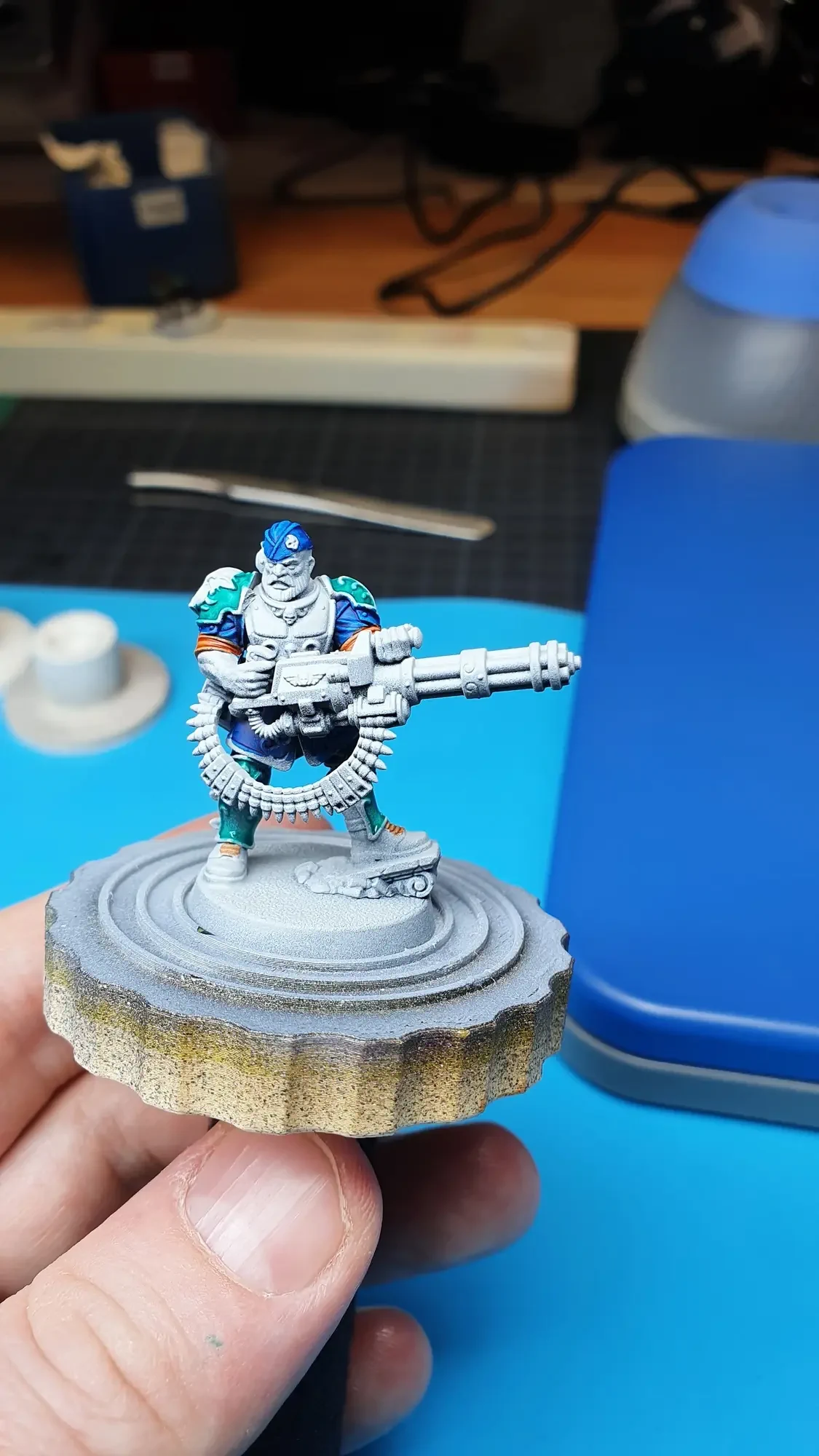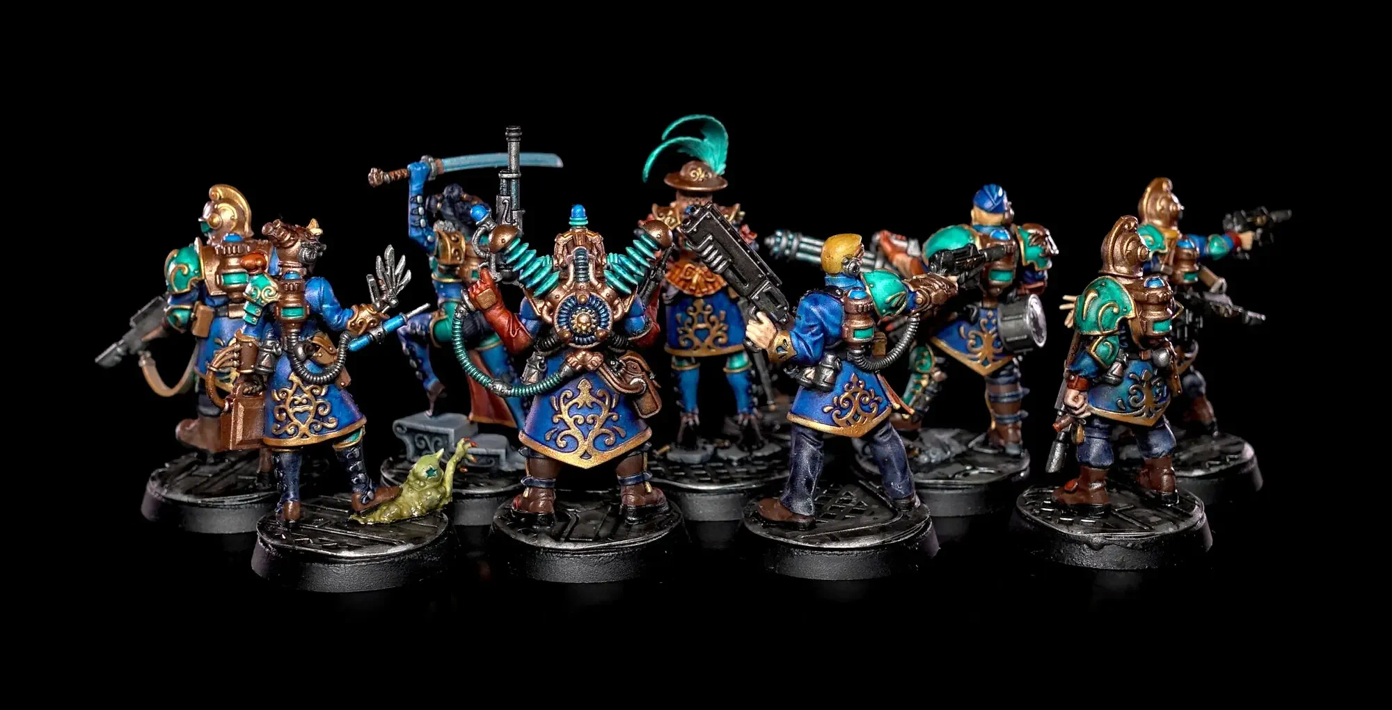 Diese Warhammer Kill Team Figuren waren mit dem Gellerpox Infected in der “Kill Team: Into the Dark” Box. Sie mussten mehr als 1.5 Jahre darauf warten, um nach dem Grundieren etwas Farbe zu erhalten. Bei einem Team mit zehn Figuren ist es schwierig dies mit Fotos so festzuhalten, dass es verständlich ist. Ich habe mein bestes gegeben um aus den 314 Bildern sinnvolle auszuwählen. 😂 Die gesamten Mal-Arbeiten dauerten ca. 20 Stunden.