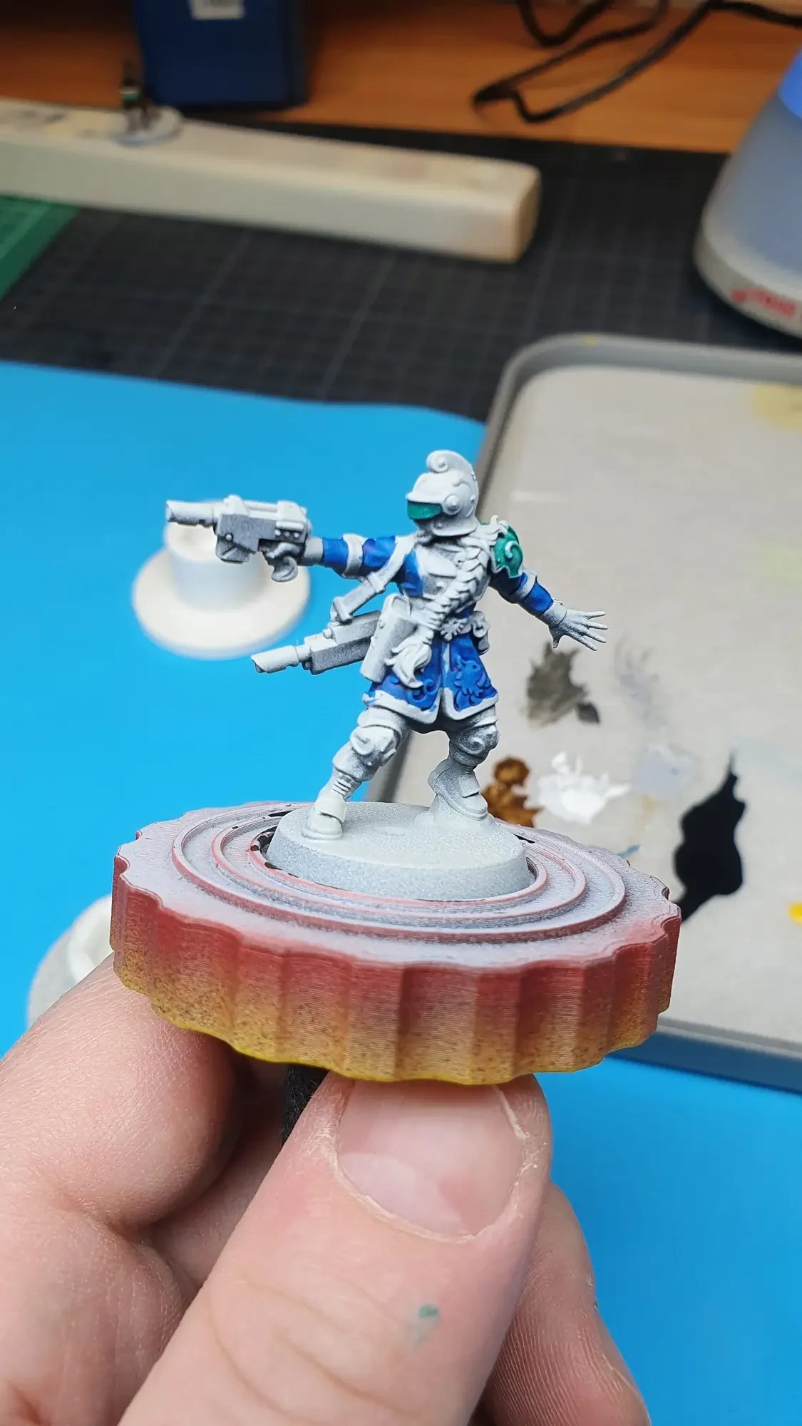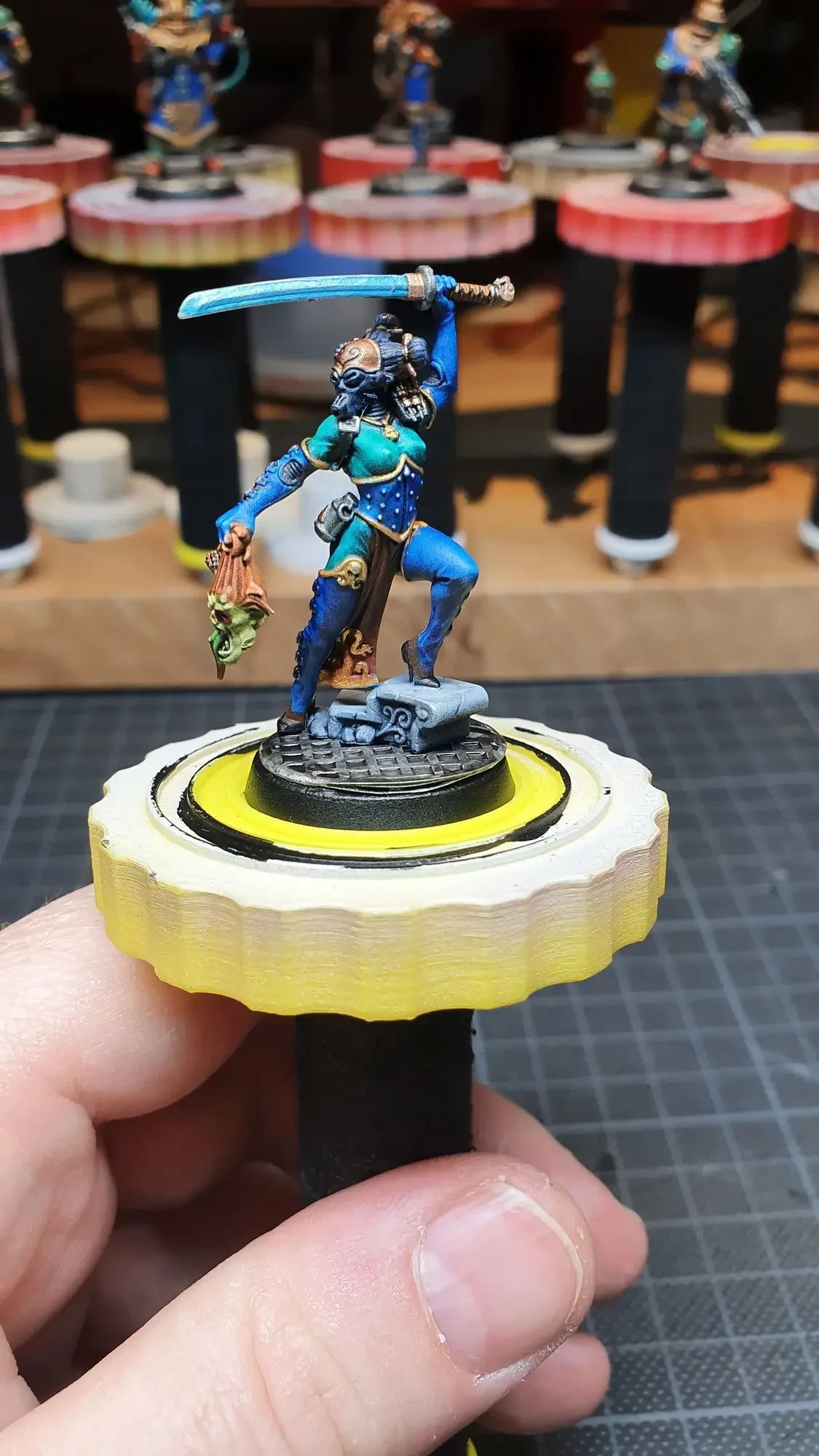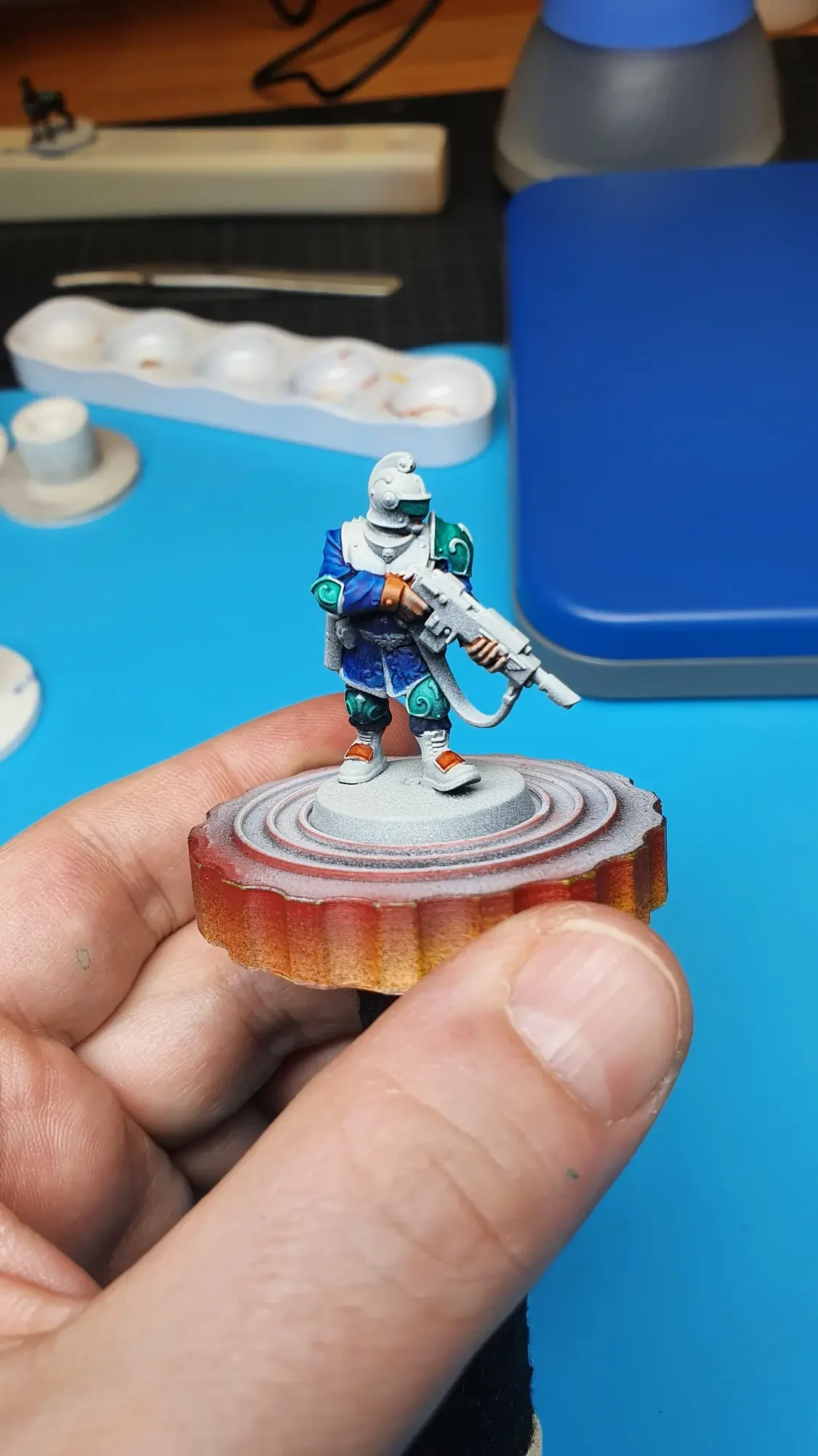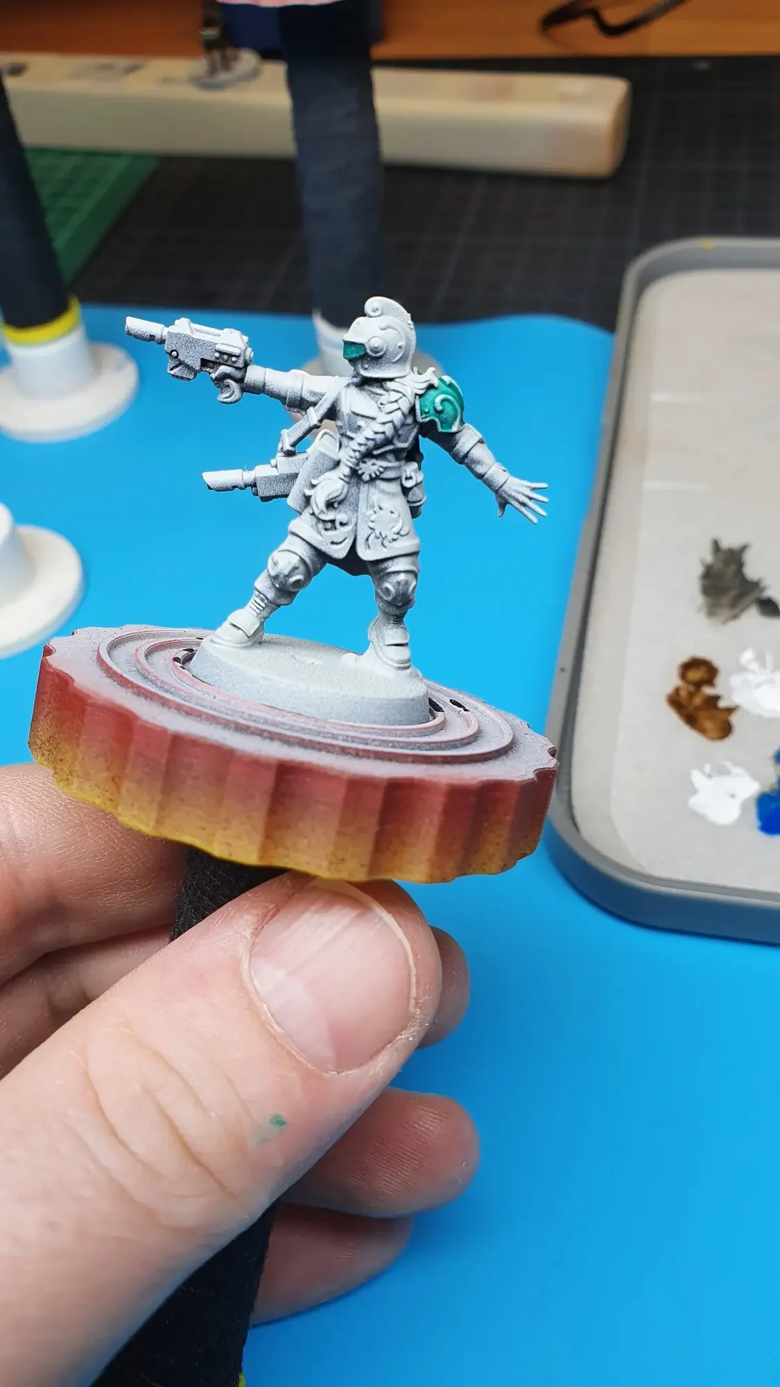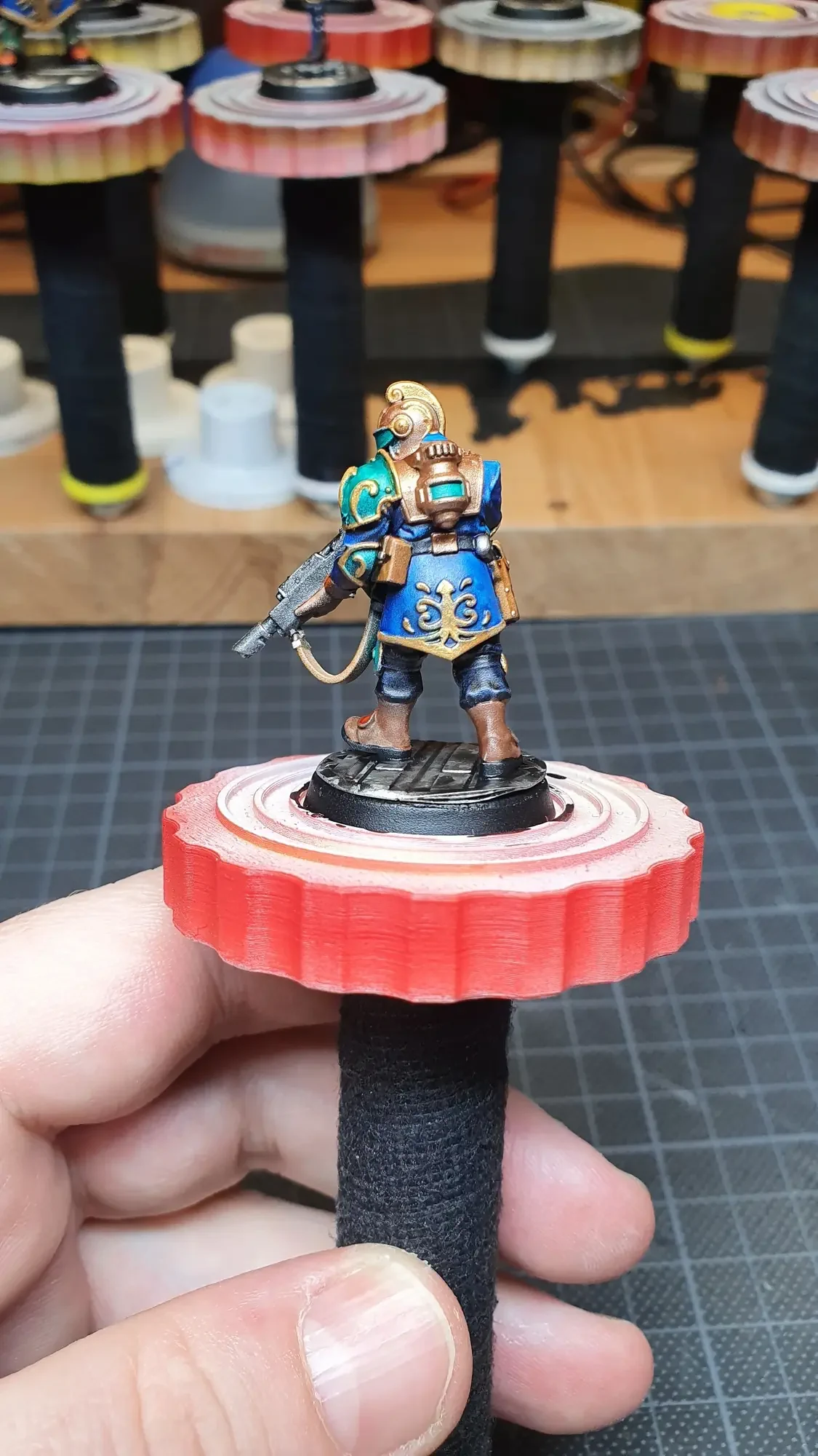 Diese Warhammer Kill Team Figuren waren mit dem Gellerpox Infected in der “Kill Team: Into the Dark” Box. Sie mussten mehr als 1.5 Jahre darauf warten, um nach dem Grundieren etwas Farbe zu erhalten. Bei einem Team mit zehn Figuren ist es schwierig dies mit Fotos so festzuhalten, dass es verständlich ist. Ich habe mein bestes gegeben um aus den 314 Bildern sinnvolle auszuwählen. 😂 Die gesamten Mal-Arbeiten dauerten ca. 20 Stunden.
