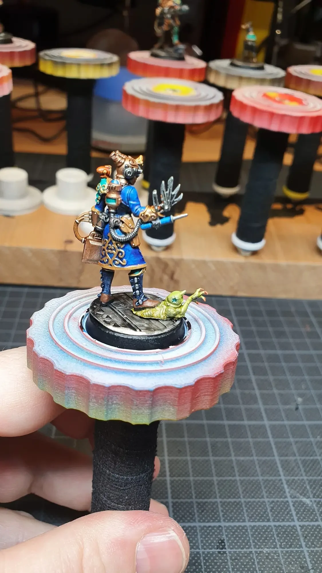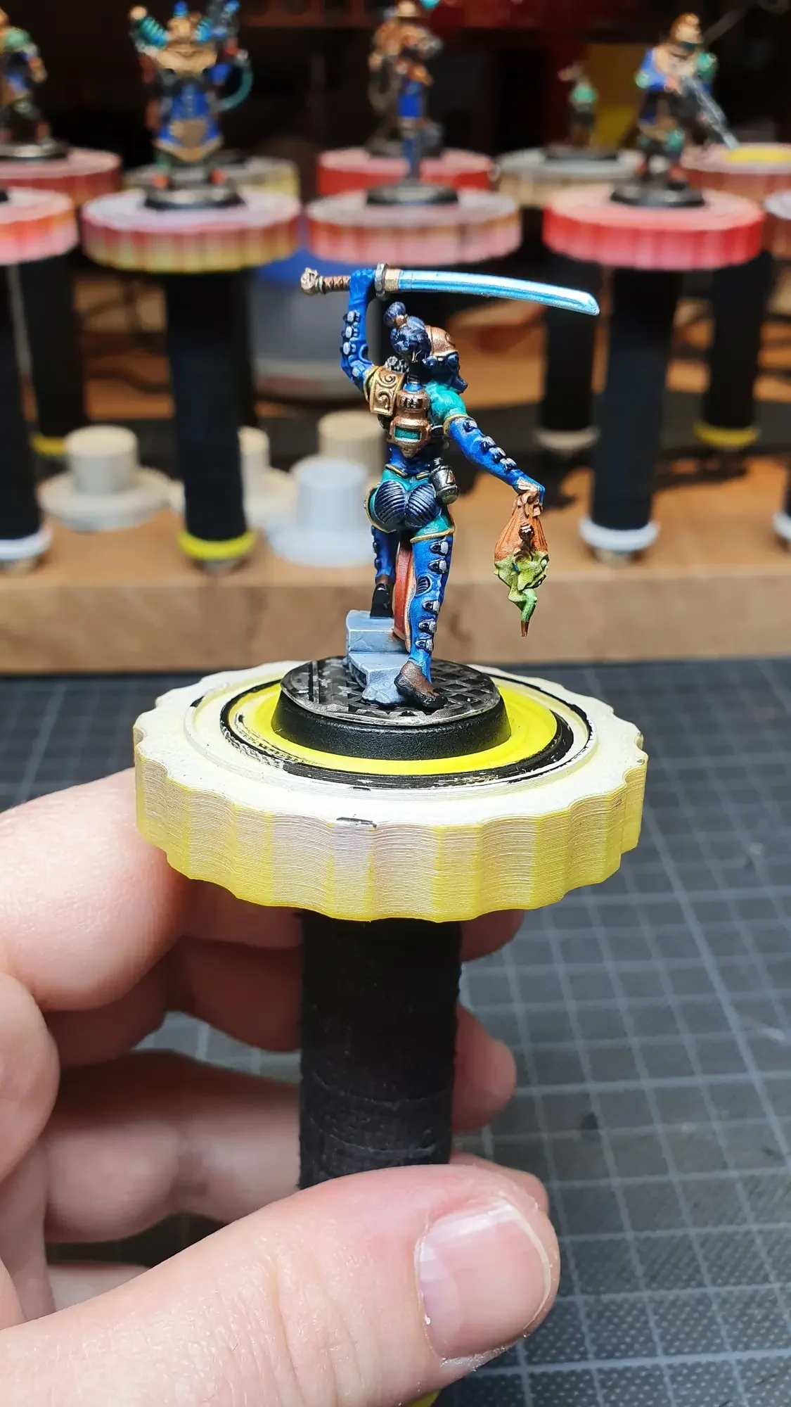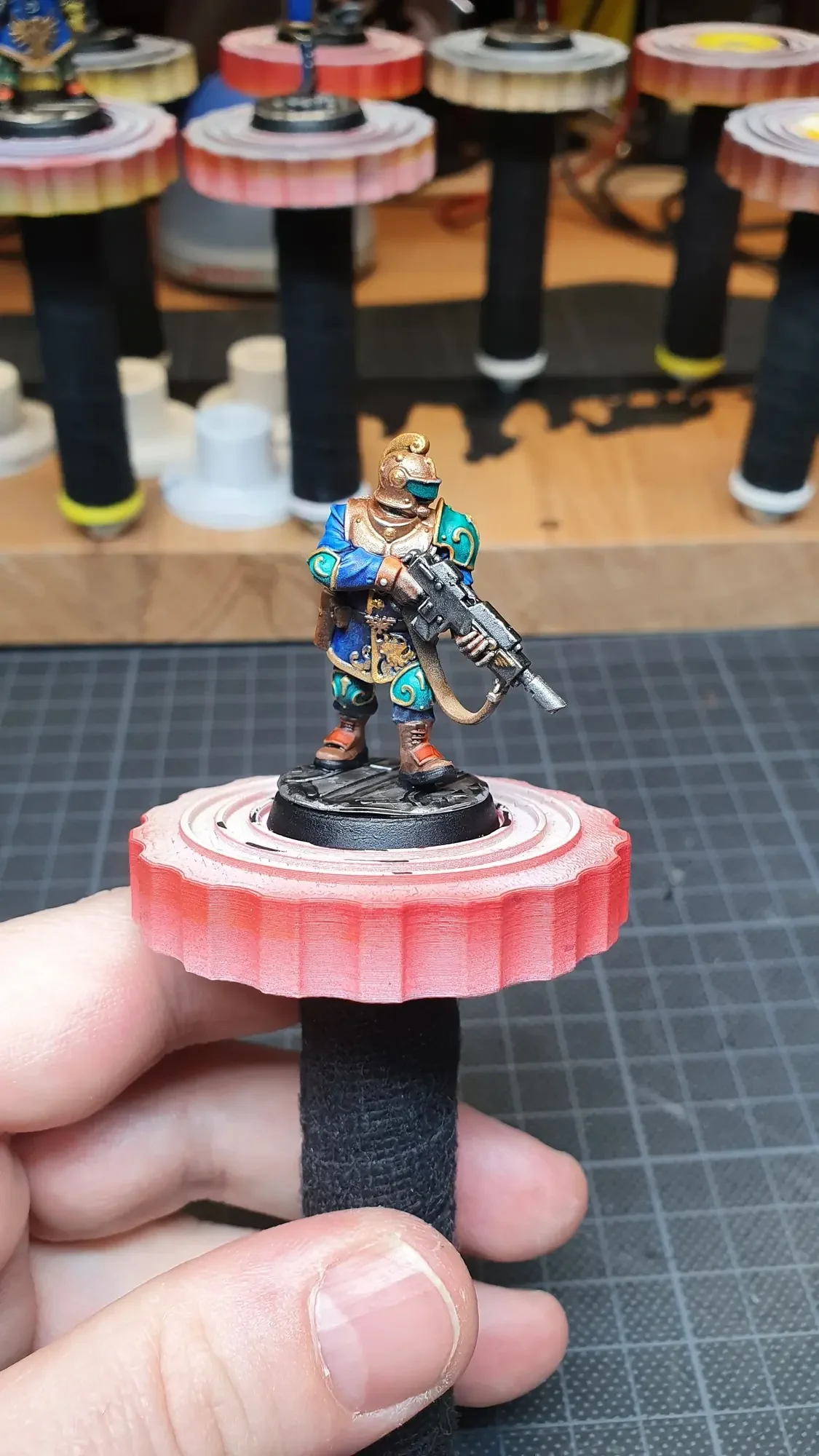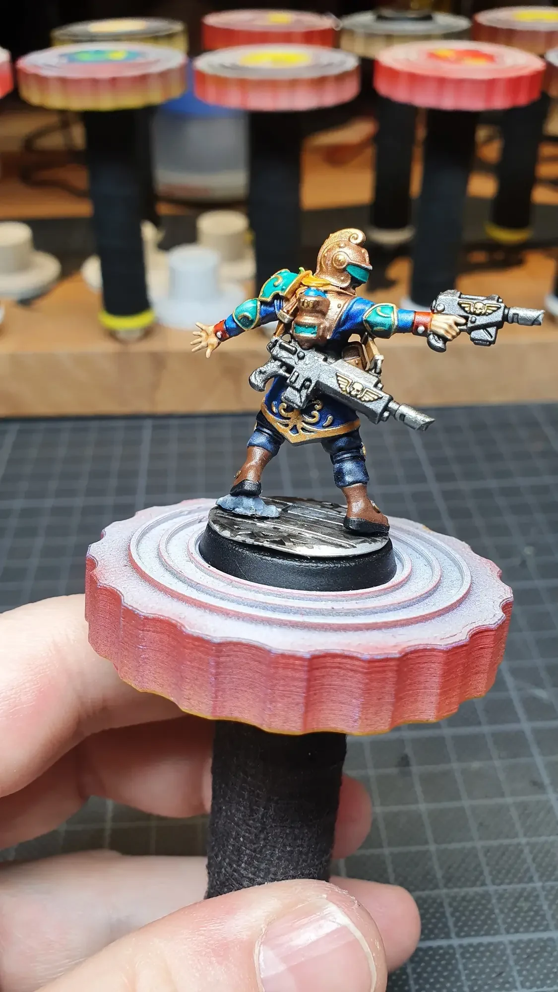 Diese Warhammer Kill Team Figuren waren mit dem Gellerpox Infected in der “Kill Team: Into the Dark” Box. Sie mussten mehr als 1.5 Jahre darauf warten, um nach dem Grundieren etwas Farbe zu erhalten. Bei einem Team mit zehn Figuren ist es schwierig dies mit Fotos so festzuhalten, dass es verständlich ist. Ich habe mein bestes gegeben um aus den 314 Bildern sinnvolle auszuwählen. 😂 Die gesamten Mal-Arbeiten dauerten ca. 20 Stunden.