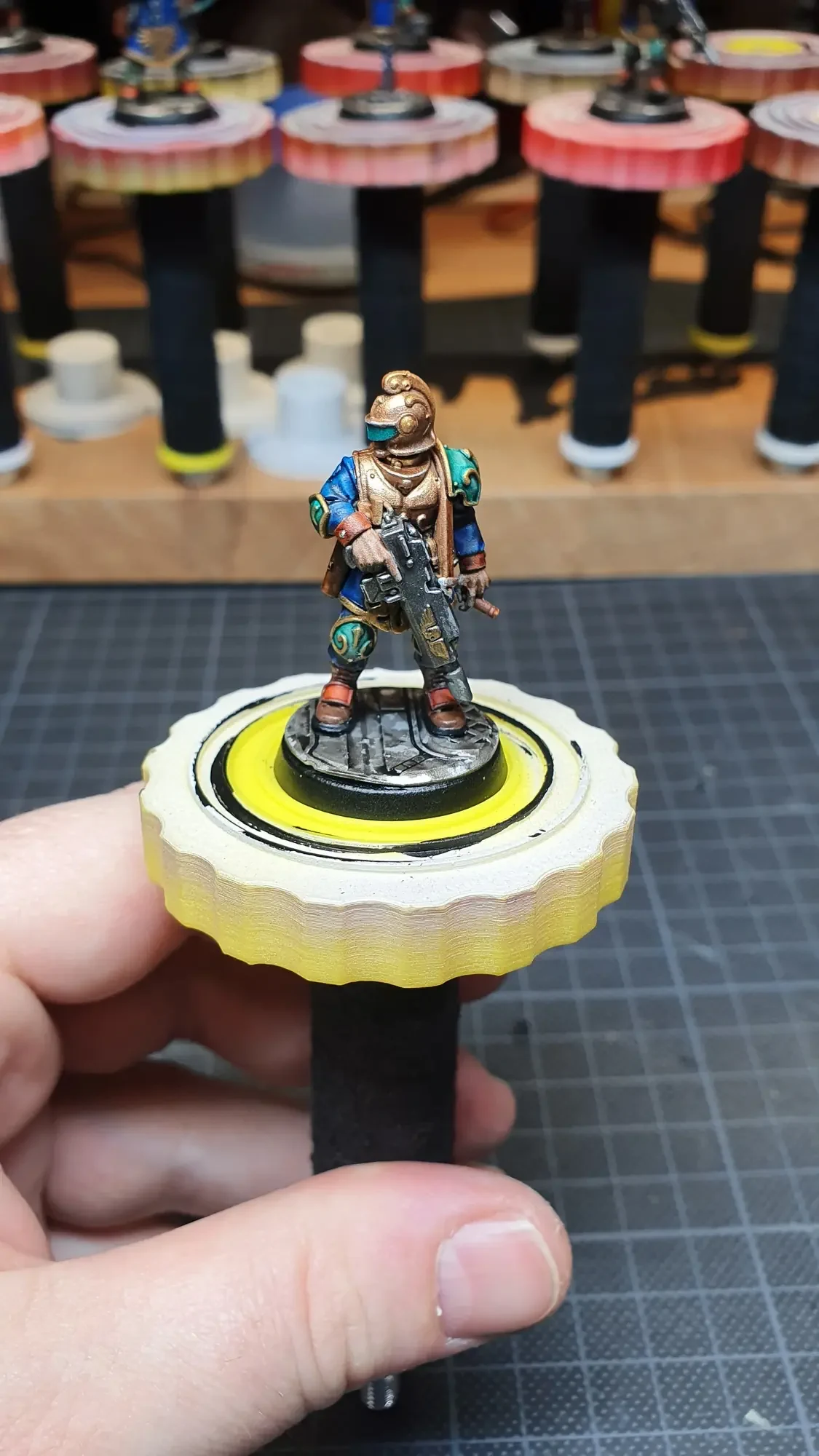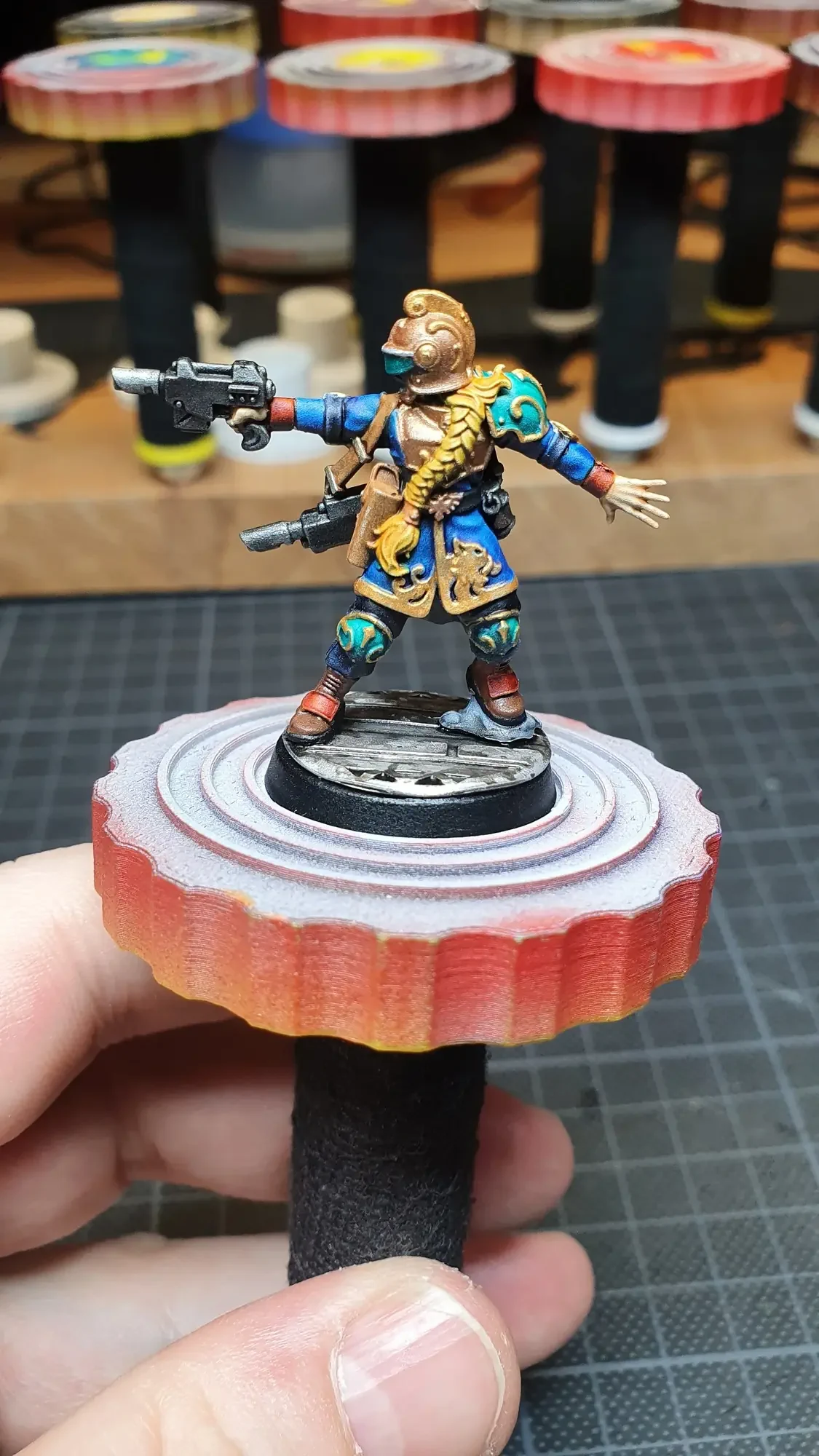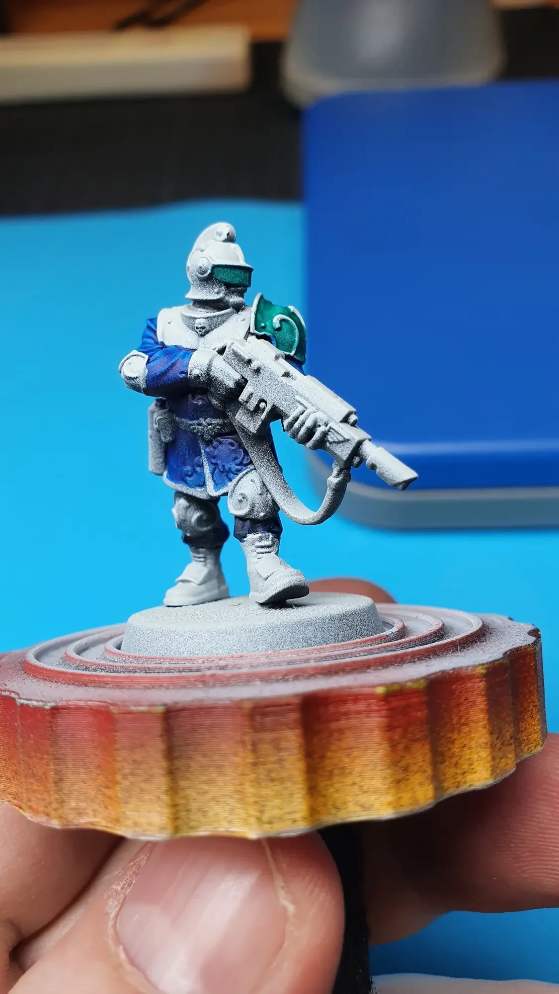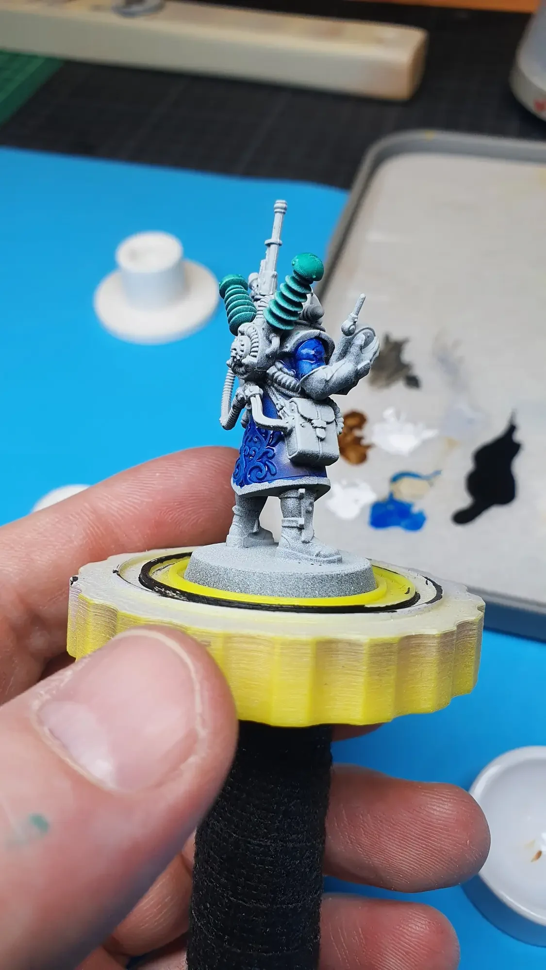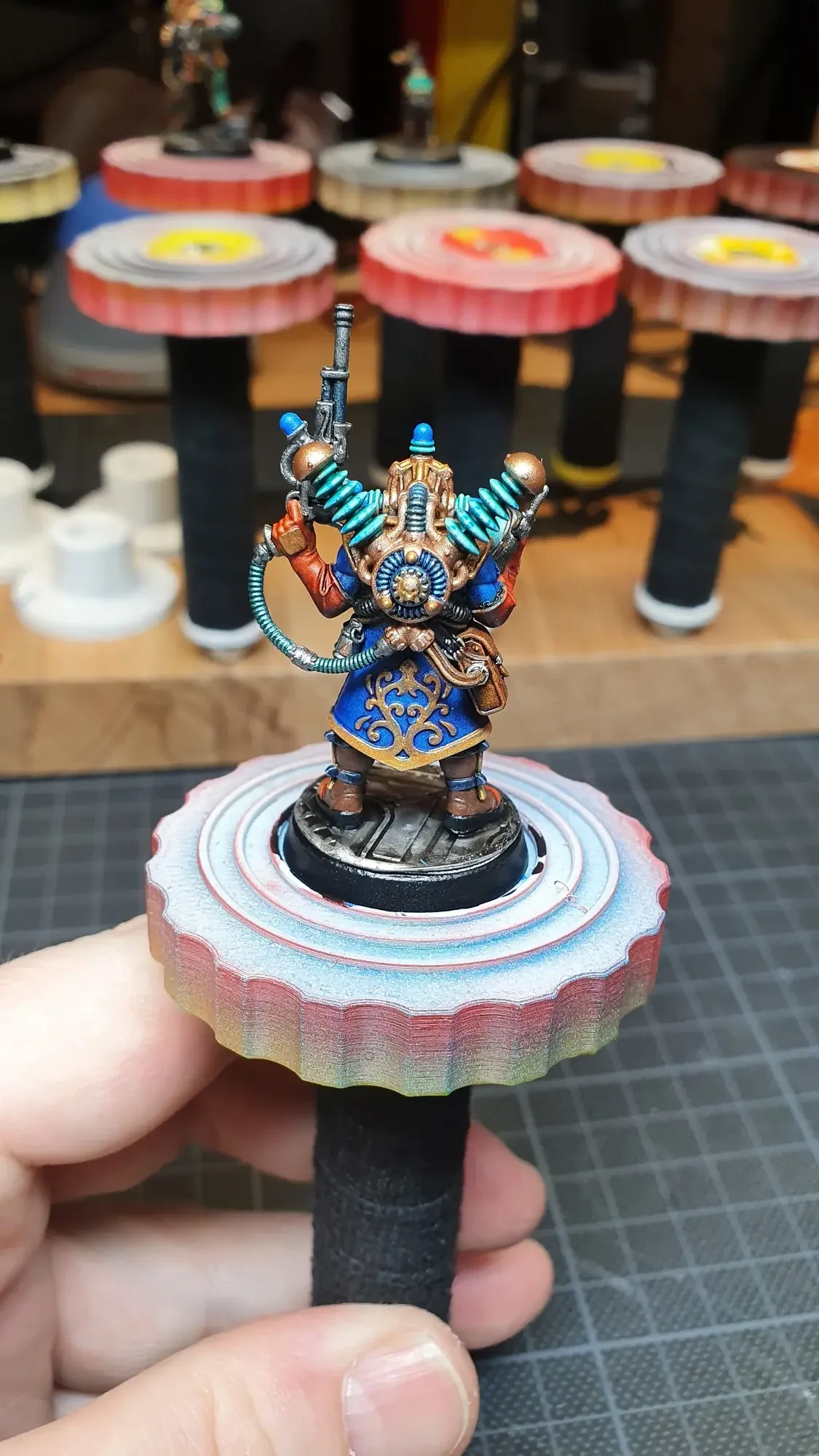 Diese Warhammer Kill Team Figuren waren mit dem Gellerpox Infected in der “Kill Team: Into the Dark” Box. Sie mussten mehr als 1.5 Jahre darauf warten, um nach dem Grundieren etwas Farbe zu erhalten. Bei einem Team mit zehn Figuren ist es schwierig dies mit Fotos so festzuhalten, dass es verständlich ist. Ich habe mein bestes gegeben um aus den 314 Bildern sinnvolle auszuwählen. 😂 Die gesamten Mal-Arbeiten dauerten ca. 20 Stunden.