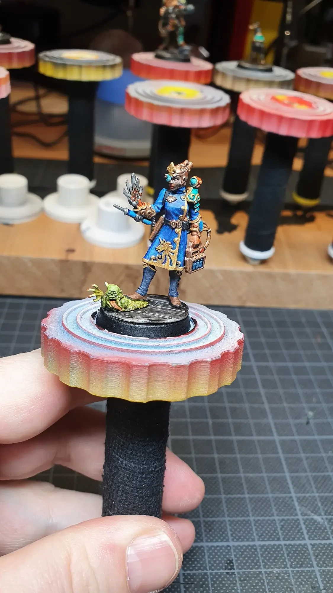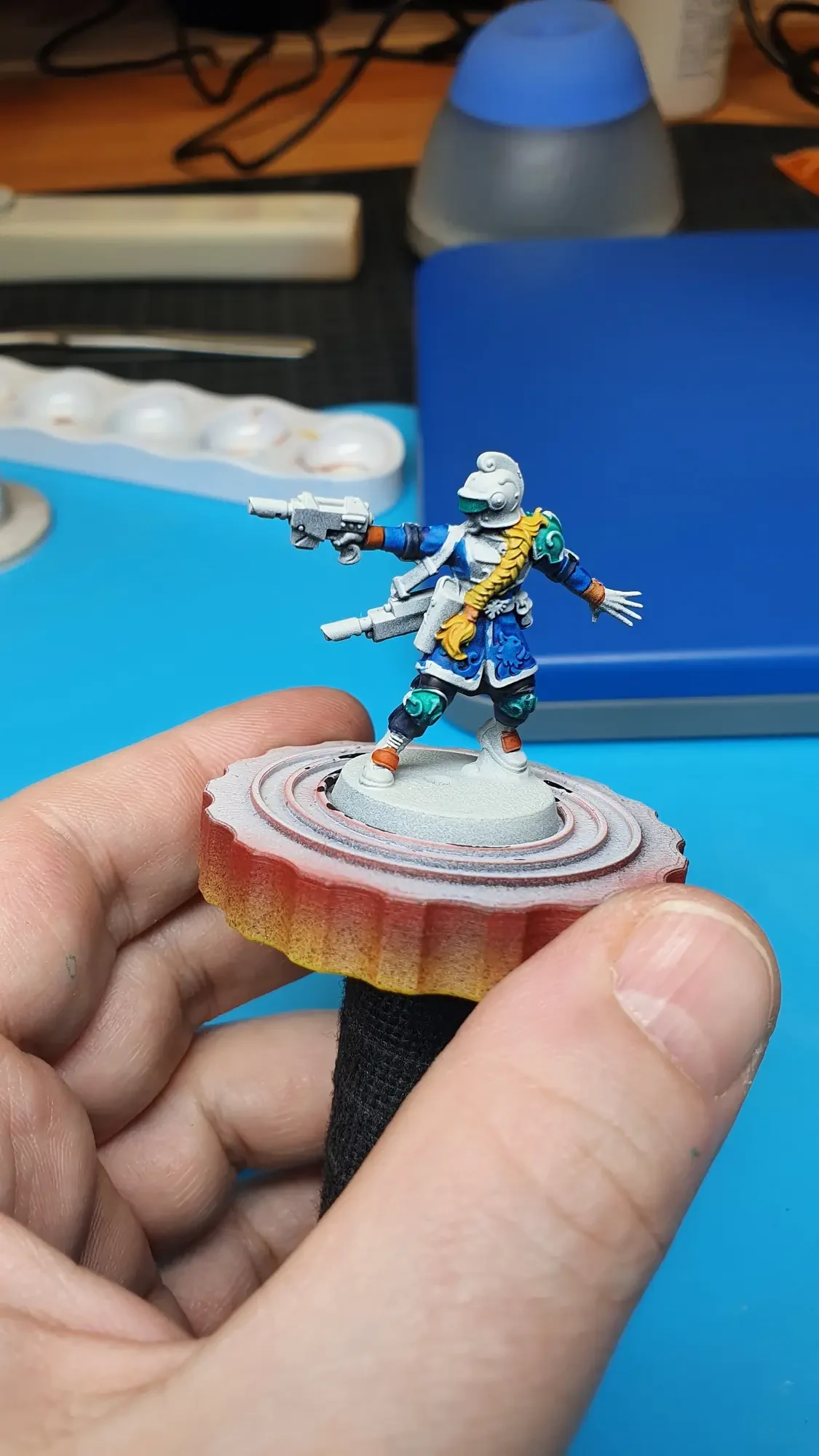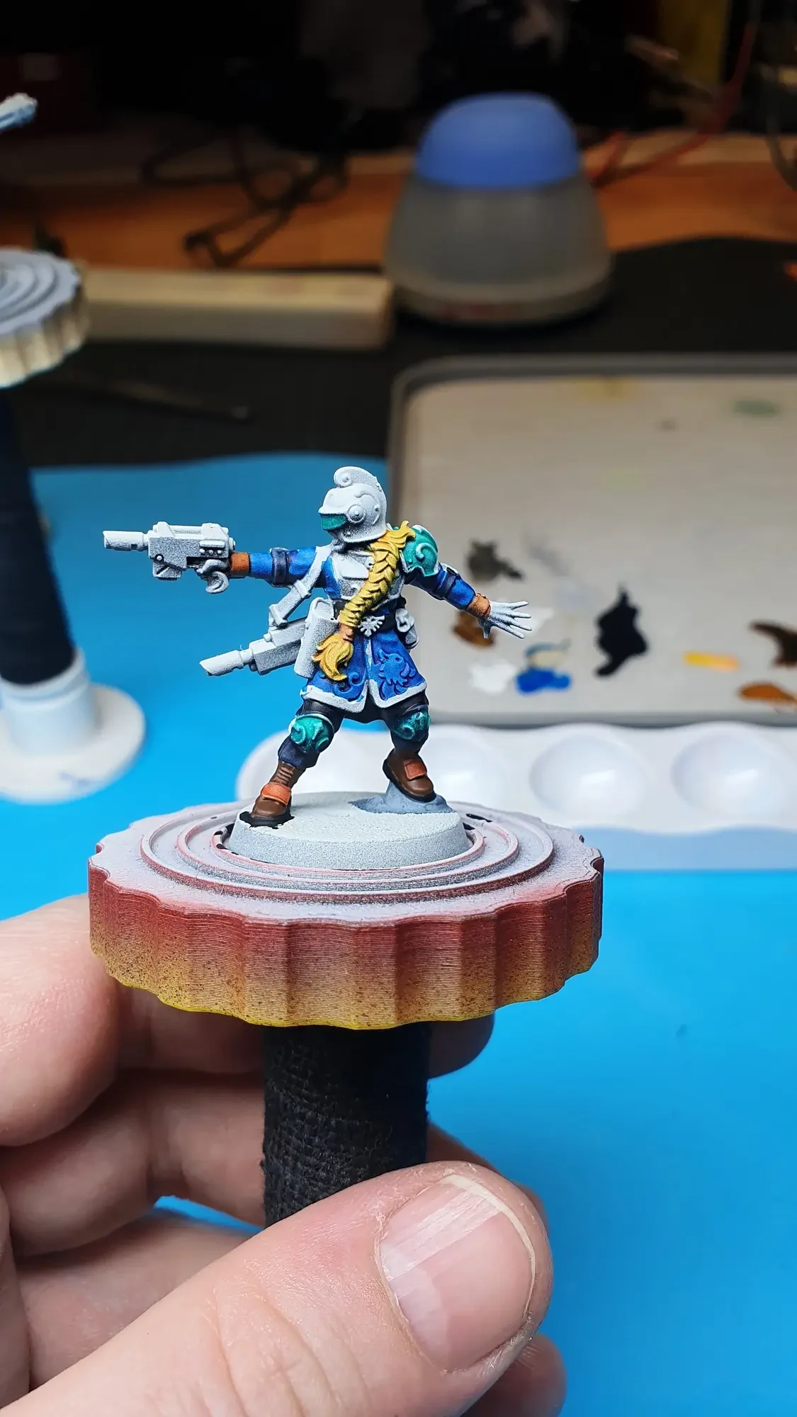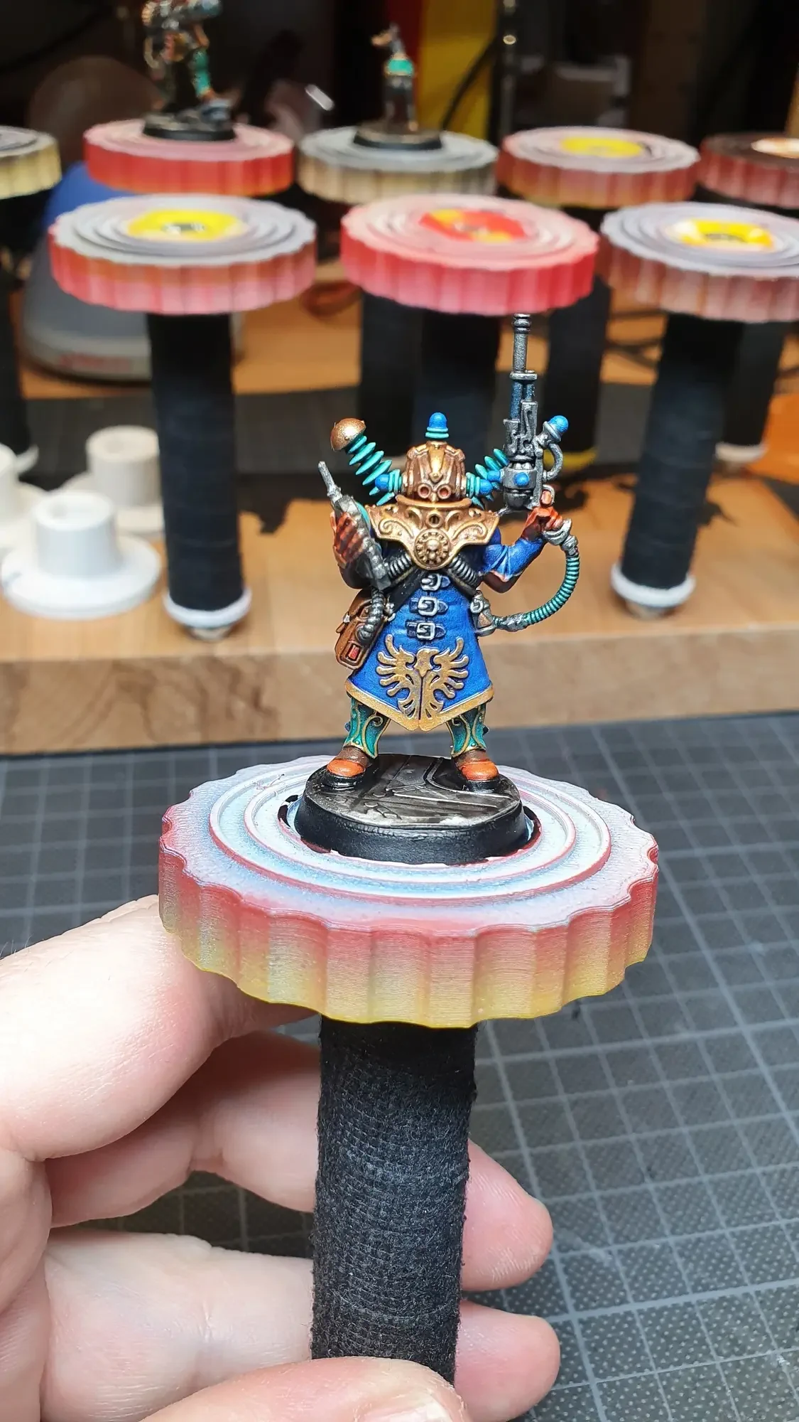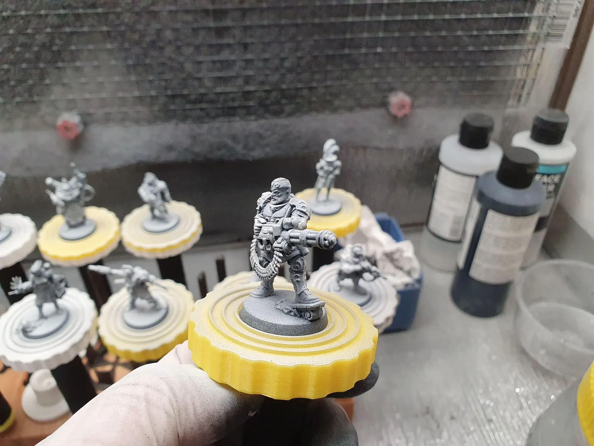 Diese Warhammer Kill Team Figuren waren mit dem Gellerpox Infected in der “Kill Team: Into the Dark” Box. Sie mussten mehr als 1.5 Jahre darauf warten, um nach dem Grundieren etwas Farbe zu erhalten. Bei einem Team mit zehn Figuren ist es schwierig dies mit Fotos so festzuhalten, dass es verständlich ist. Ich habe mein bestes gegeben um aus den 314 Bildern sinnvolle auszuwählen. 😂 Die gesamten Mal-Arbeiten dauerten ca. 20 Stunden.