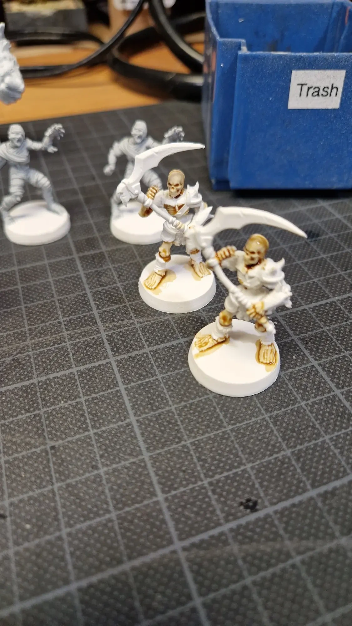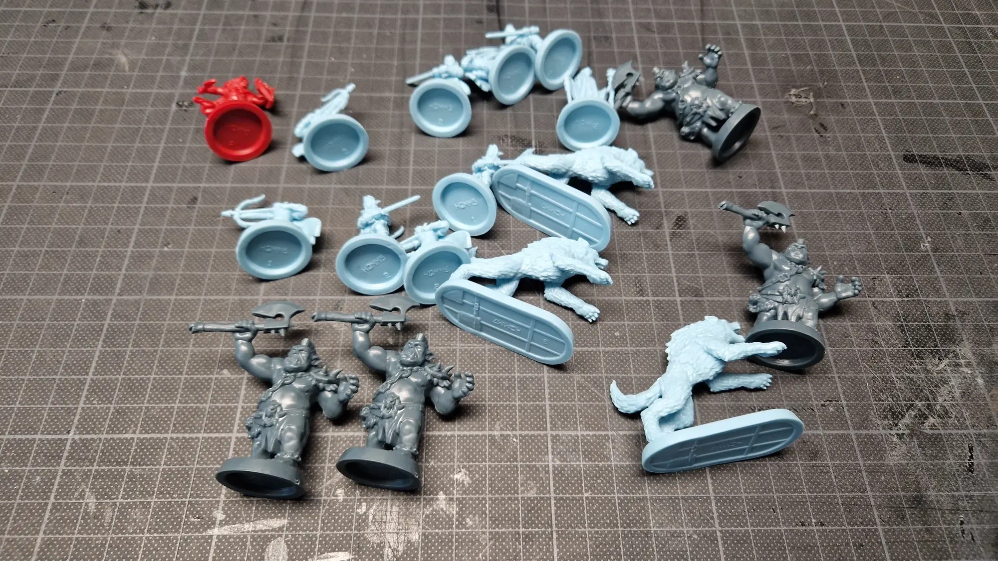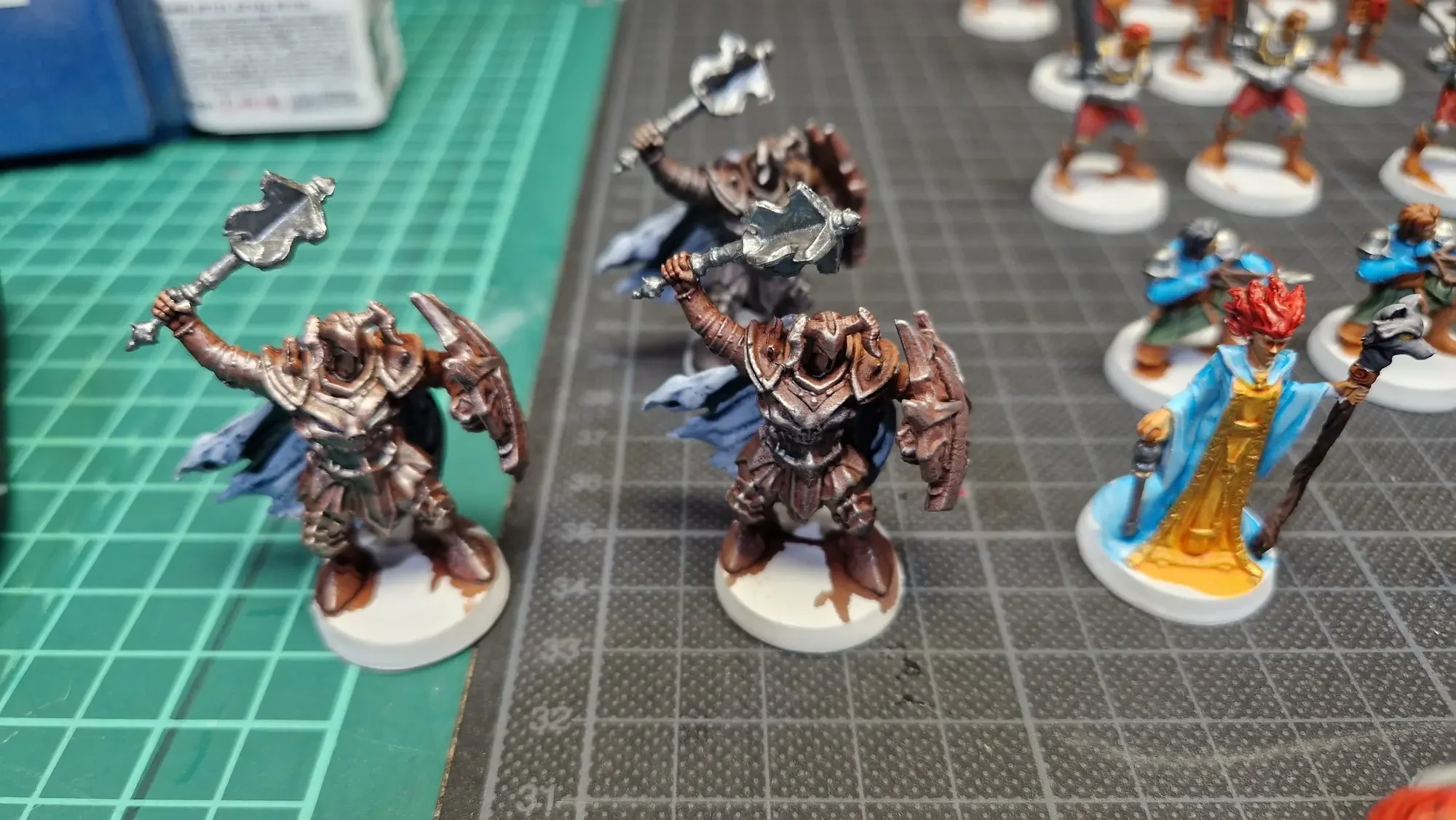 Im Gegensatz zu den meisten anderen Minis, kriegen diese keine komplexen Bases. Die Bases werden auf der Oberseite einfach schwarz angemalt, und der Rand symbolisiert die Hero Quest Erweiterung oder ob die Minis Helden sind.