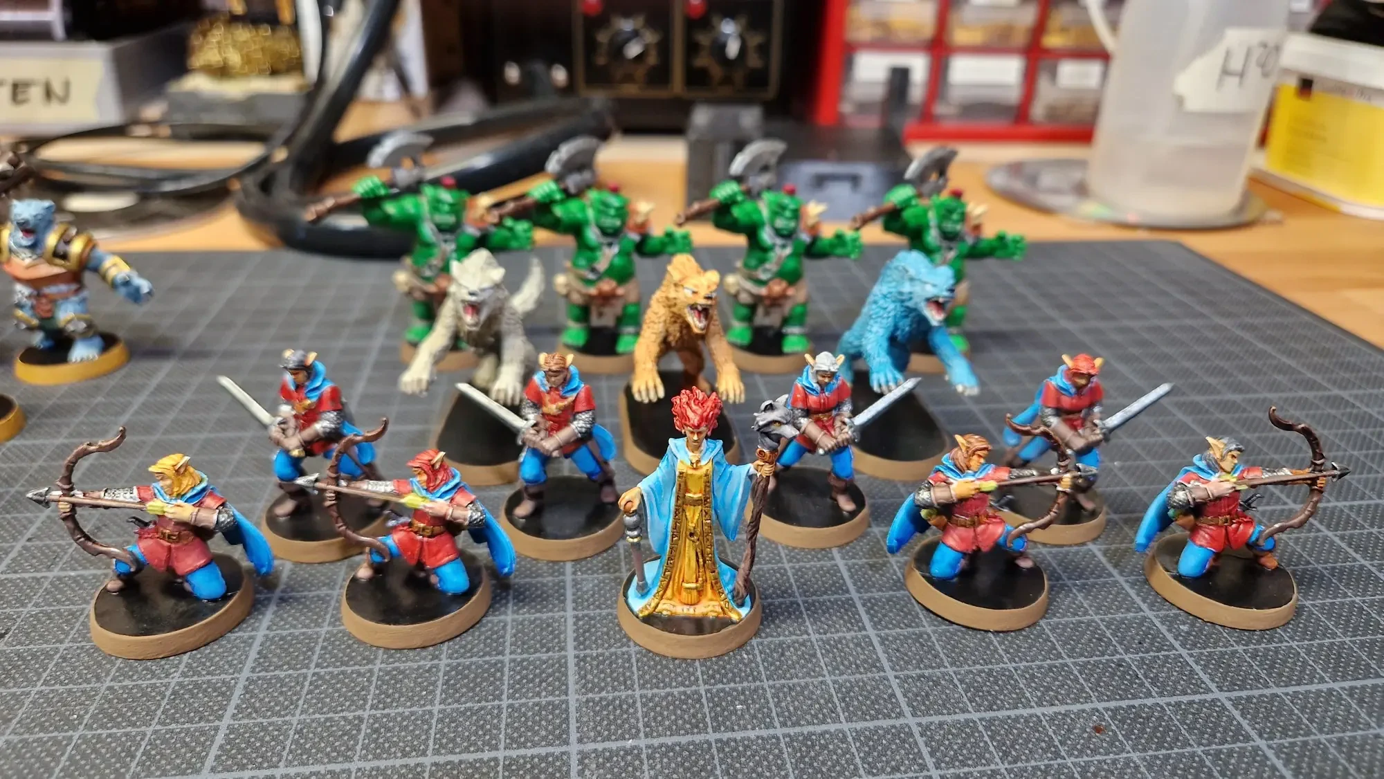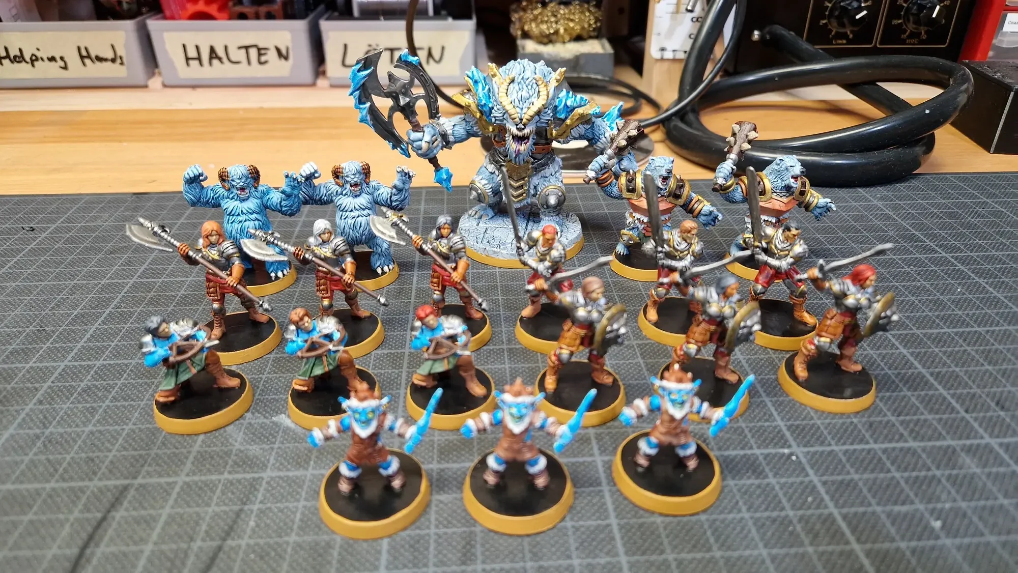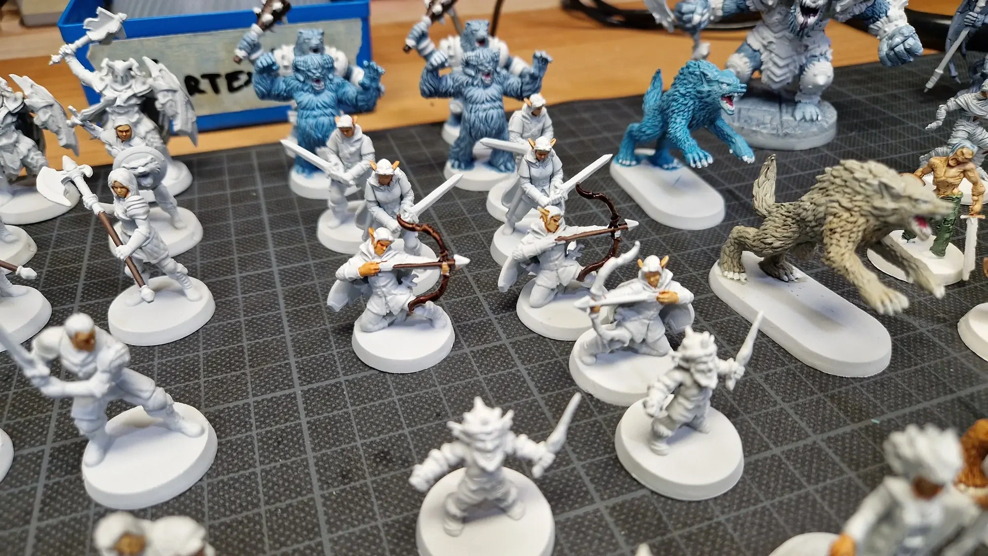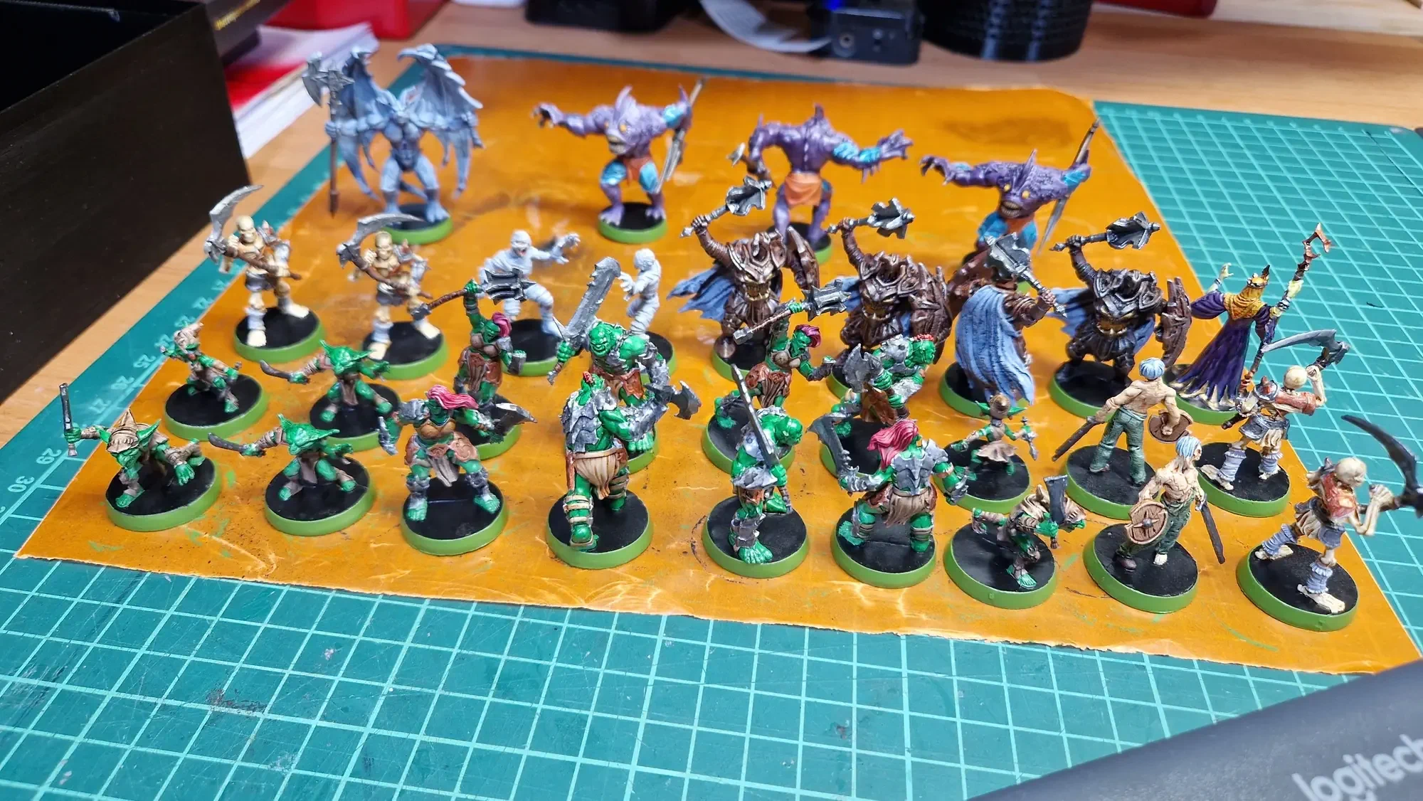Das Bemalen hat mehrere Abende in Anspruch genommen. Ich habe mich Farbe für Farbe durch alle Minis gearbeitet und lange genug gewartet, dass sich die Armypainter Speed Paints 1.0 (“Die alten”) nicht wieder aktivieren, wenn sie zusammenlaufen.