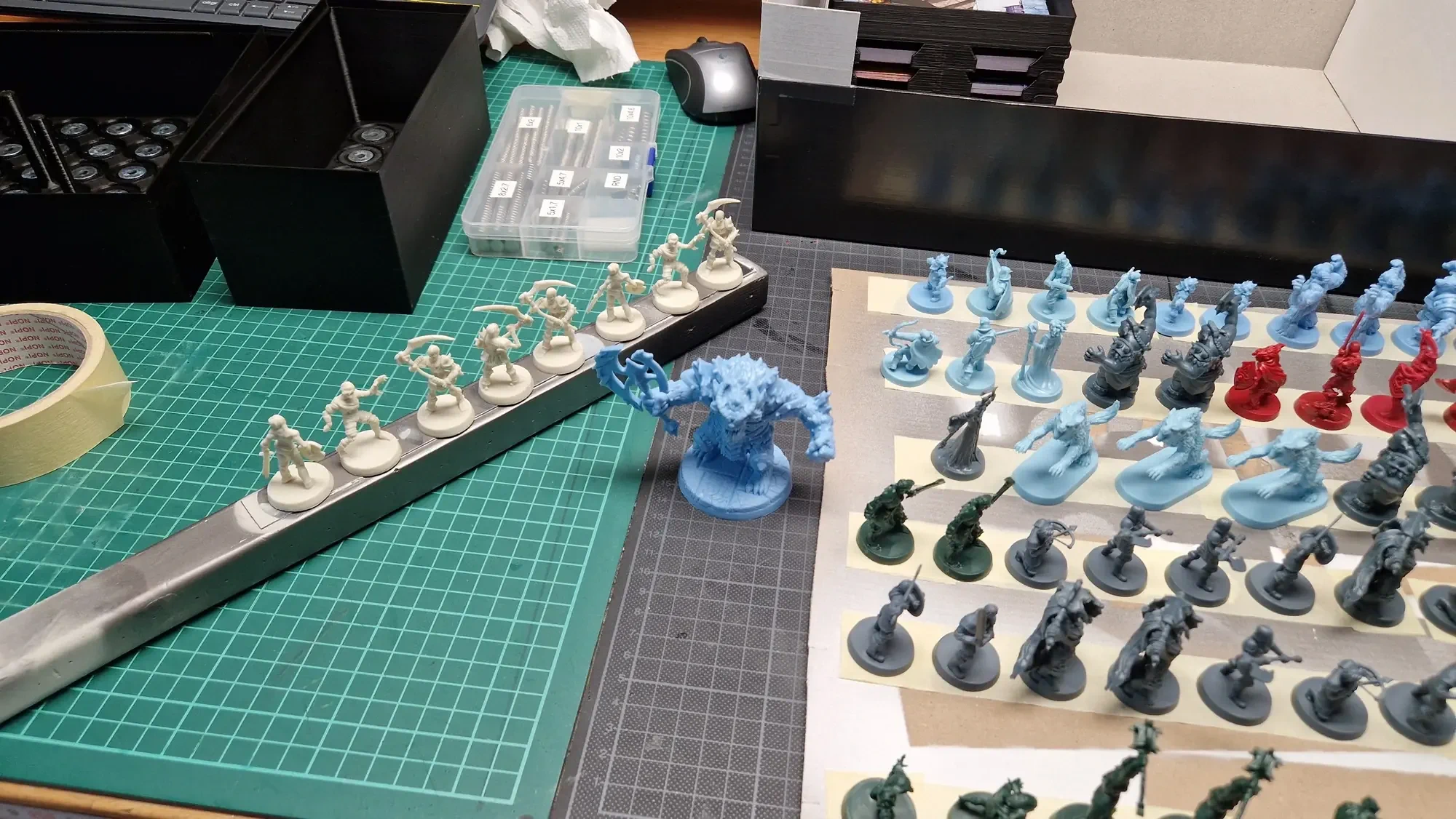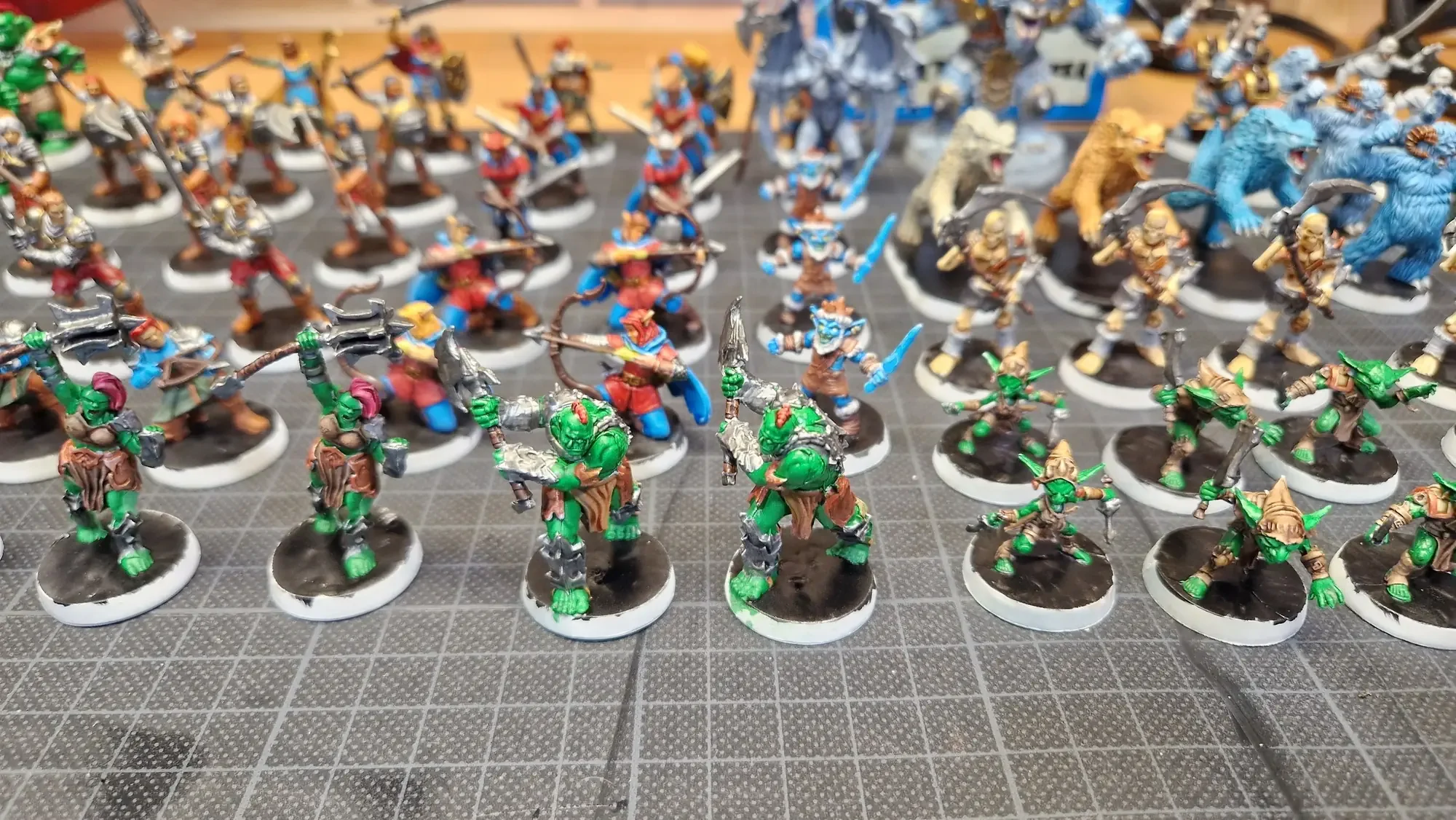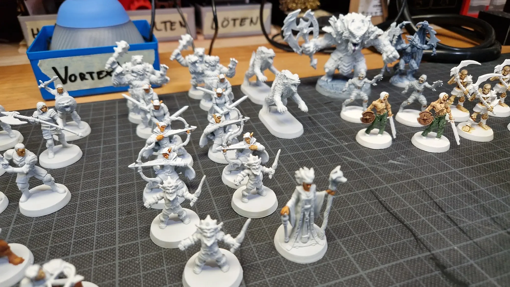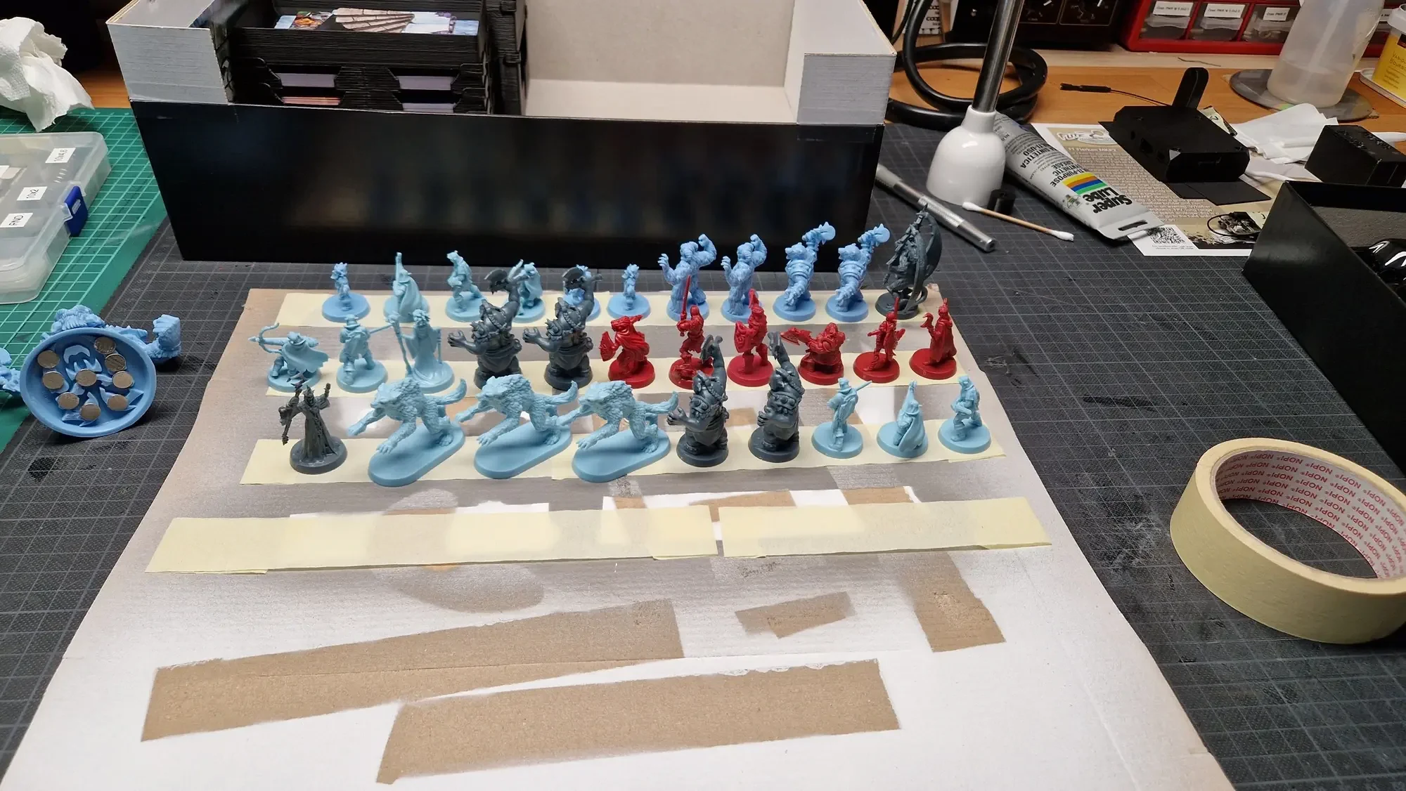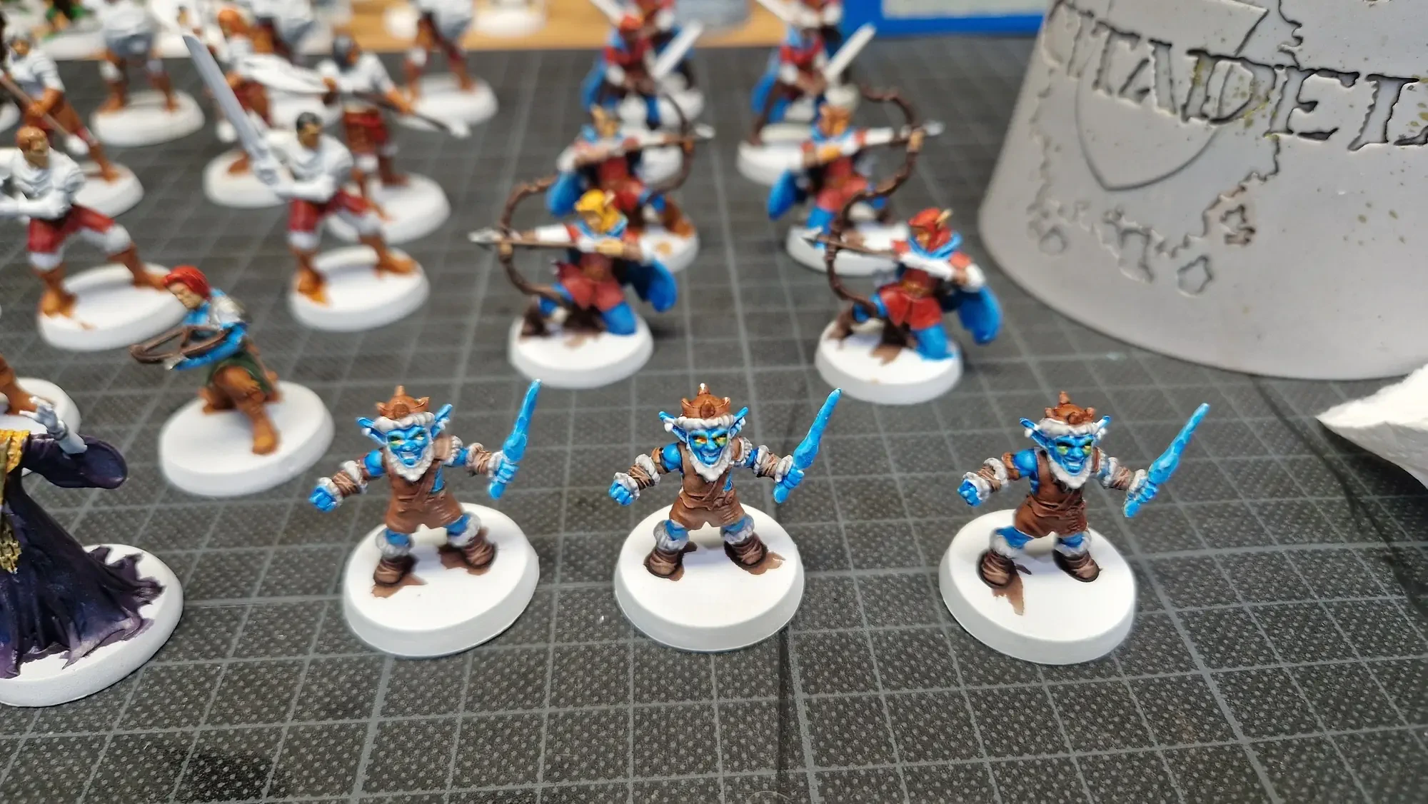 Das Bemalen hat mehrere Abende in Anspruch genommen. Ich habe mich Farbe für Farbe durch alle Minis gearbeitet und lange genug gewartet, dass sich die Armypainter Speed Paints 1.0 (“Die alten”) nicht wieder aktivieren, wenn sie zusammenlaufen.