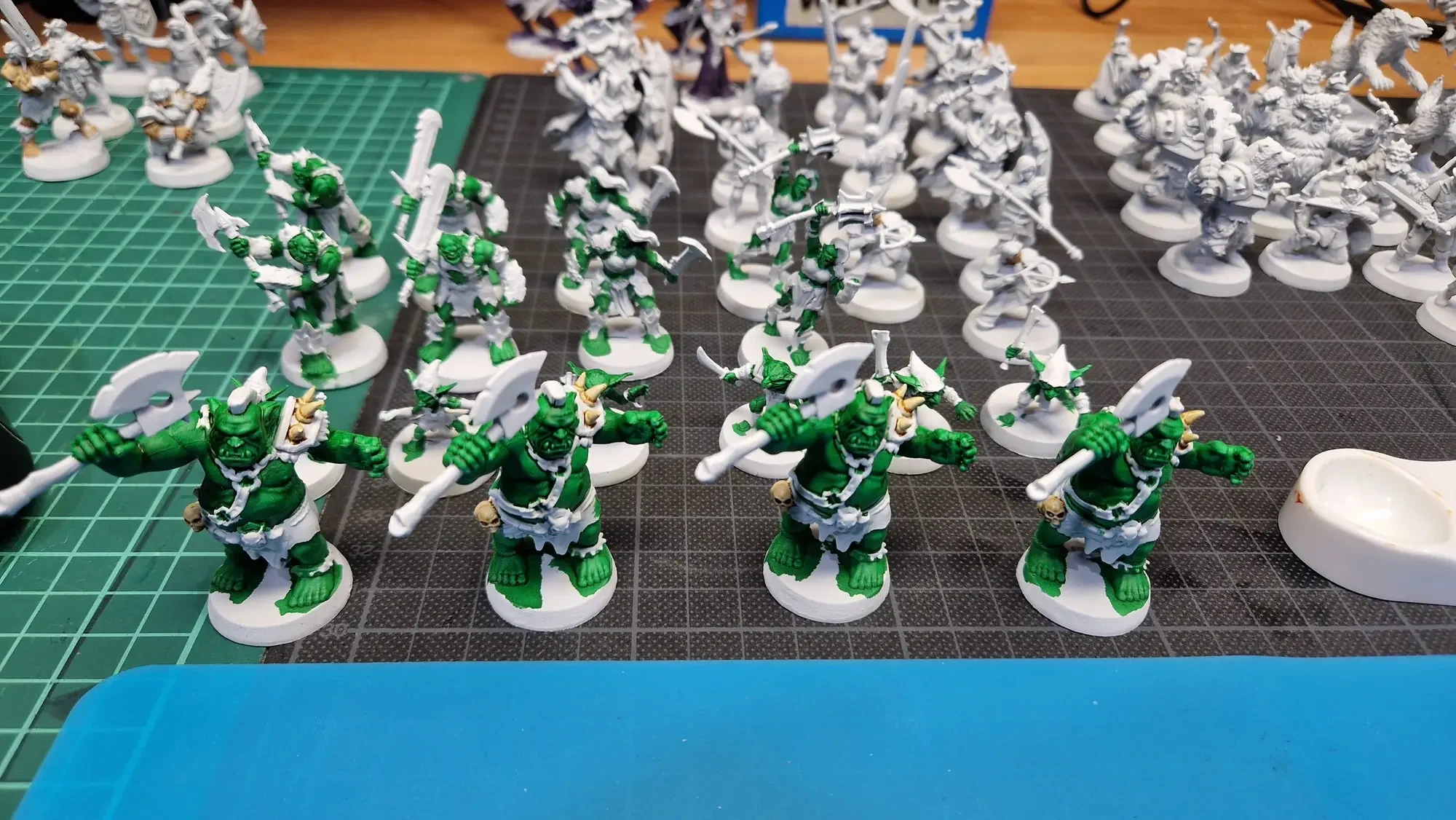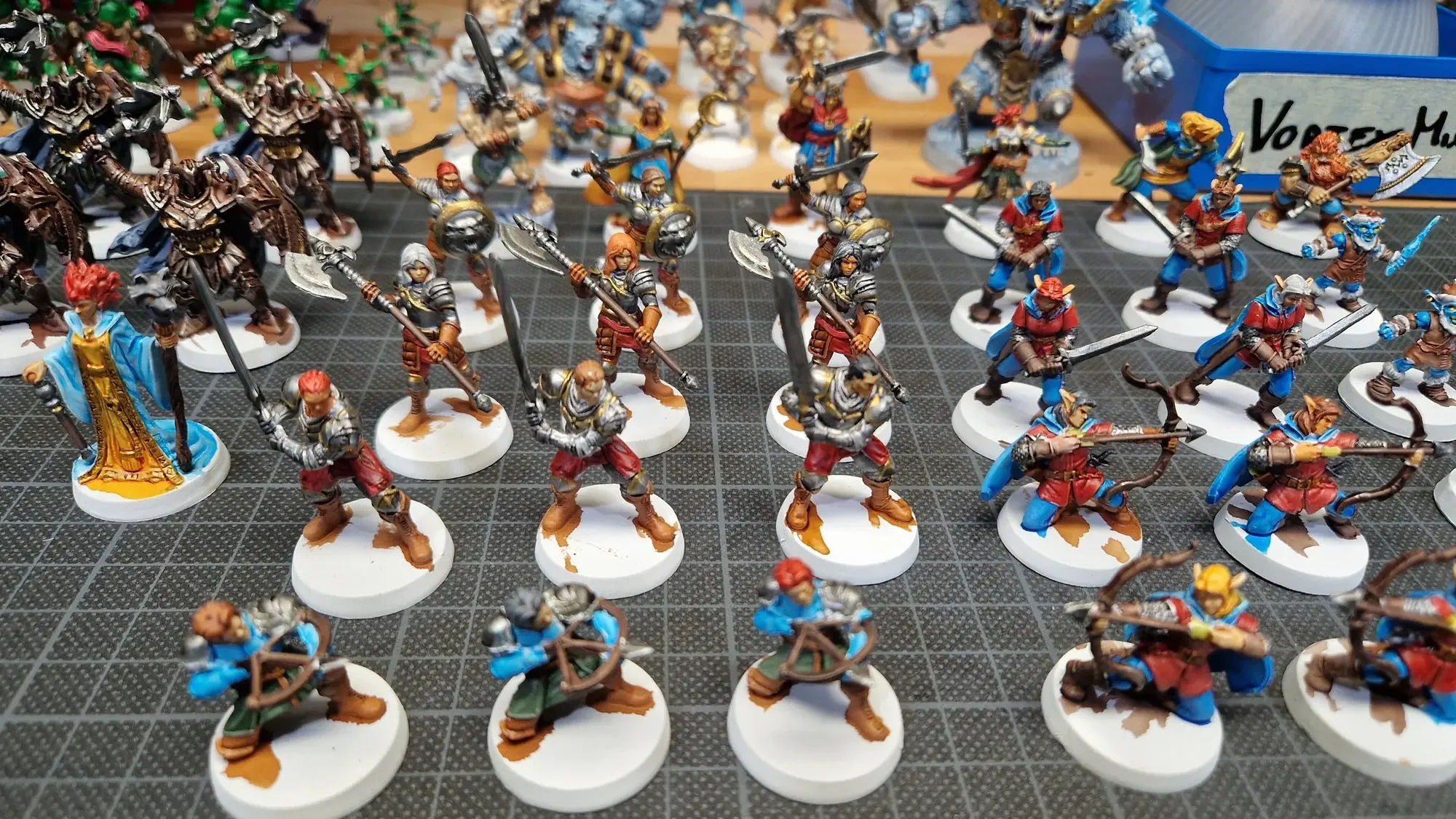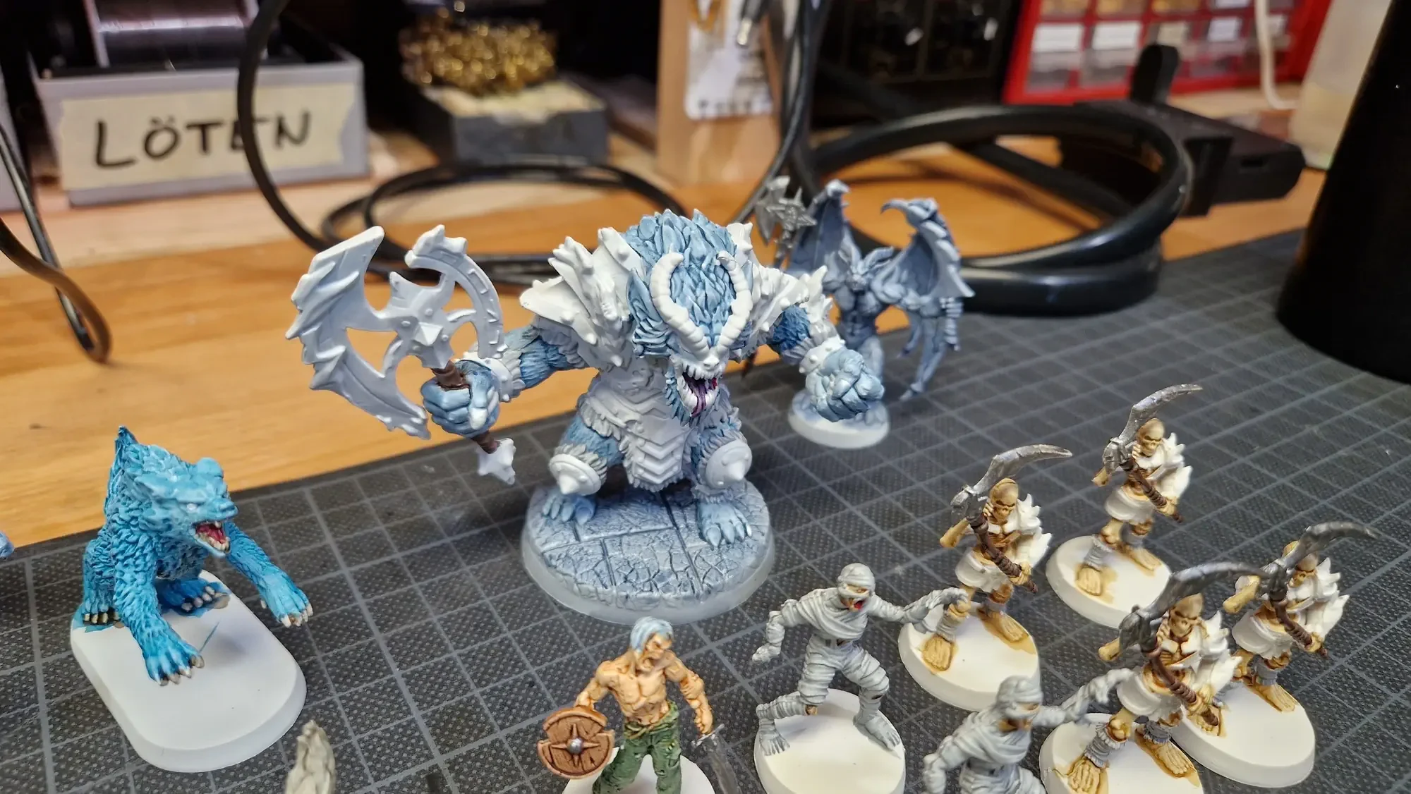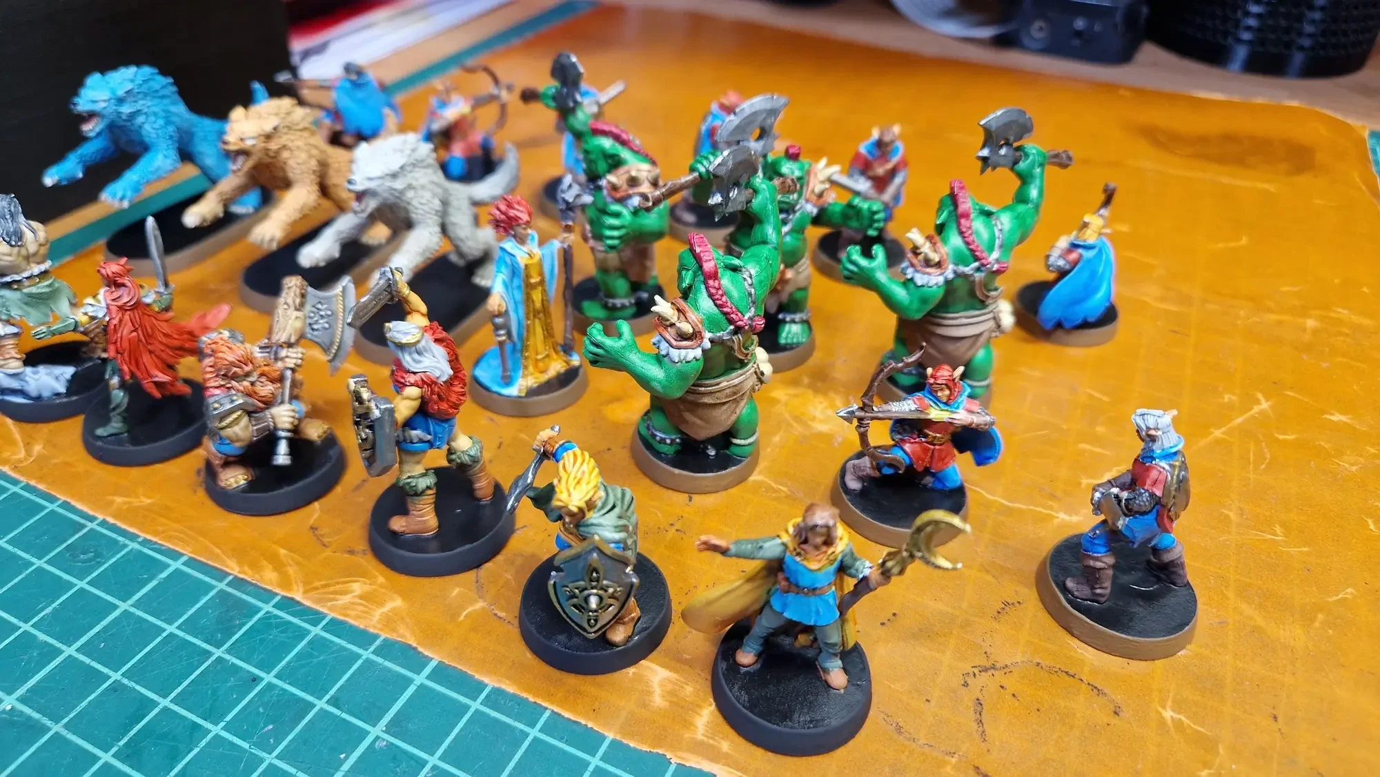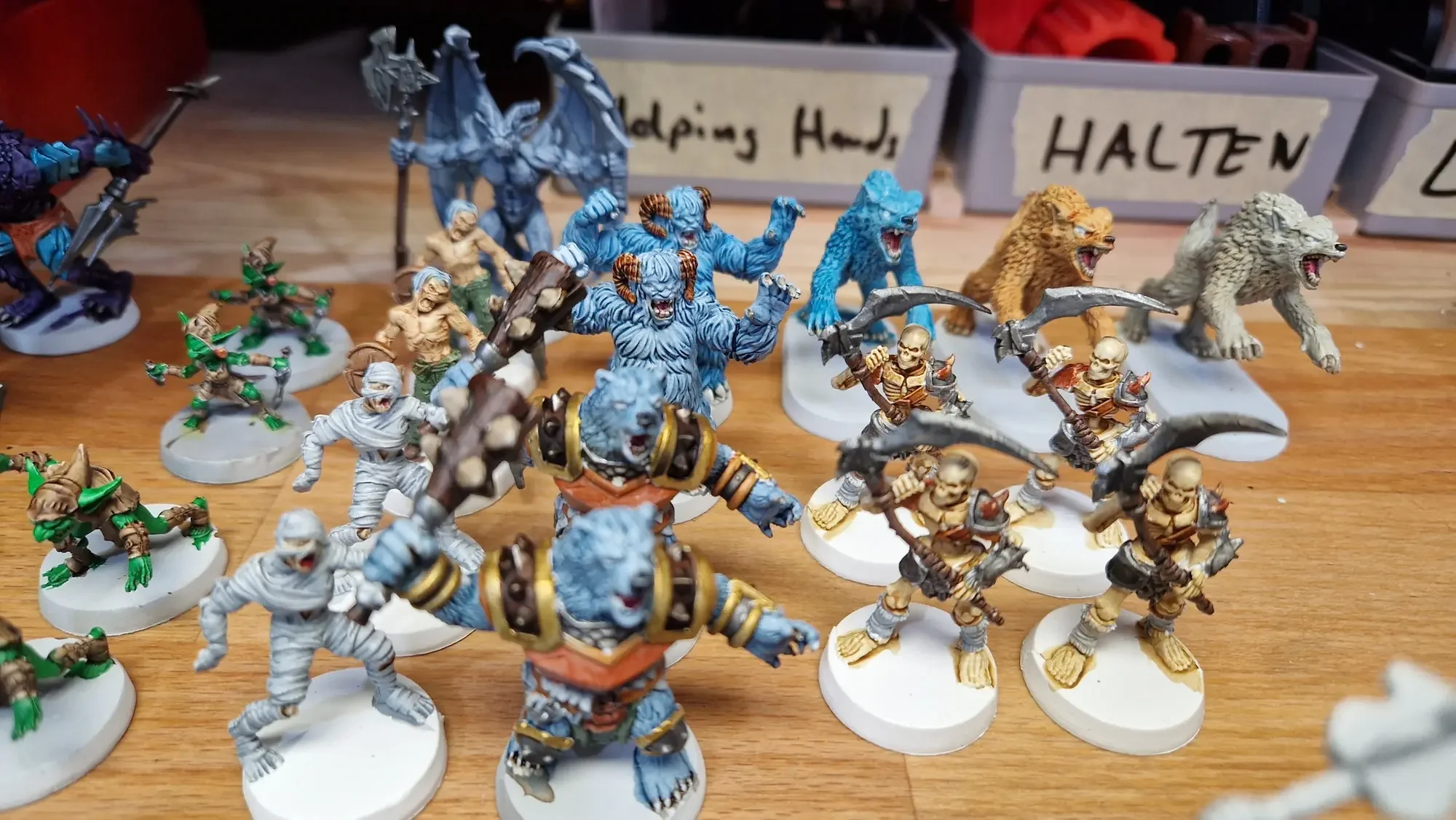 Das Bemalen hat mehrere Abende in Anspruch genommen. Ich habe mich Farbe für Farbe durch alle Minis gearbeitet und lange genug gewartet, dass sich die Armypainter Speed Paints 1.0 (“Die alten”) nicht wieder aktivieren, wenn sie zusammenlaufen.