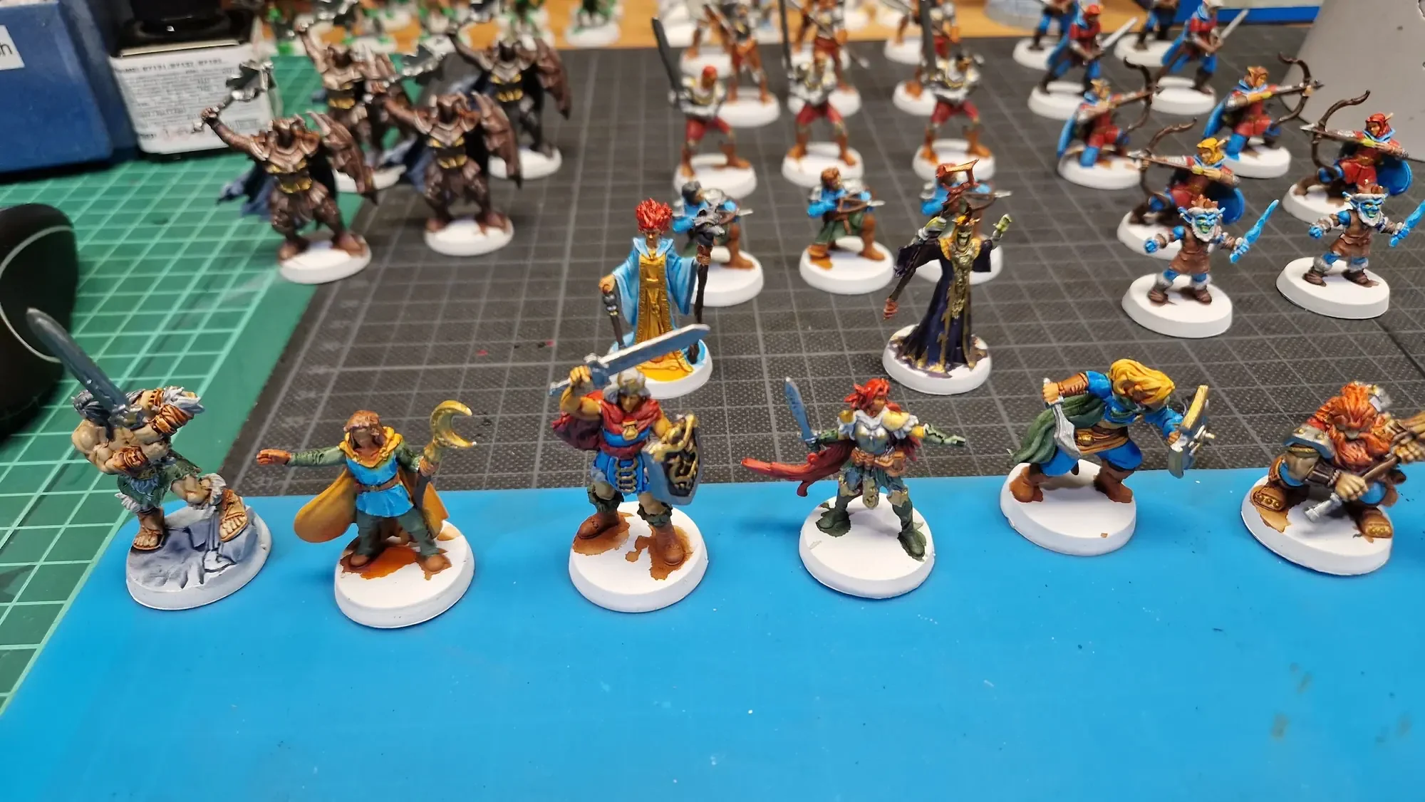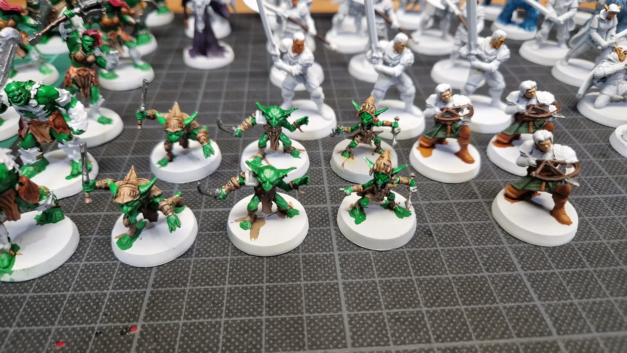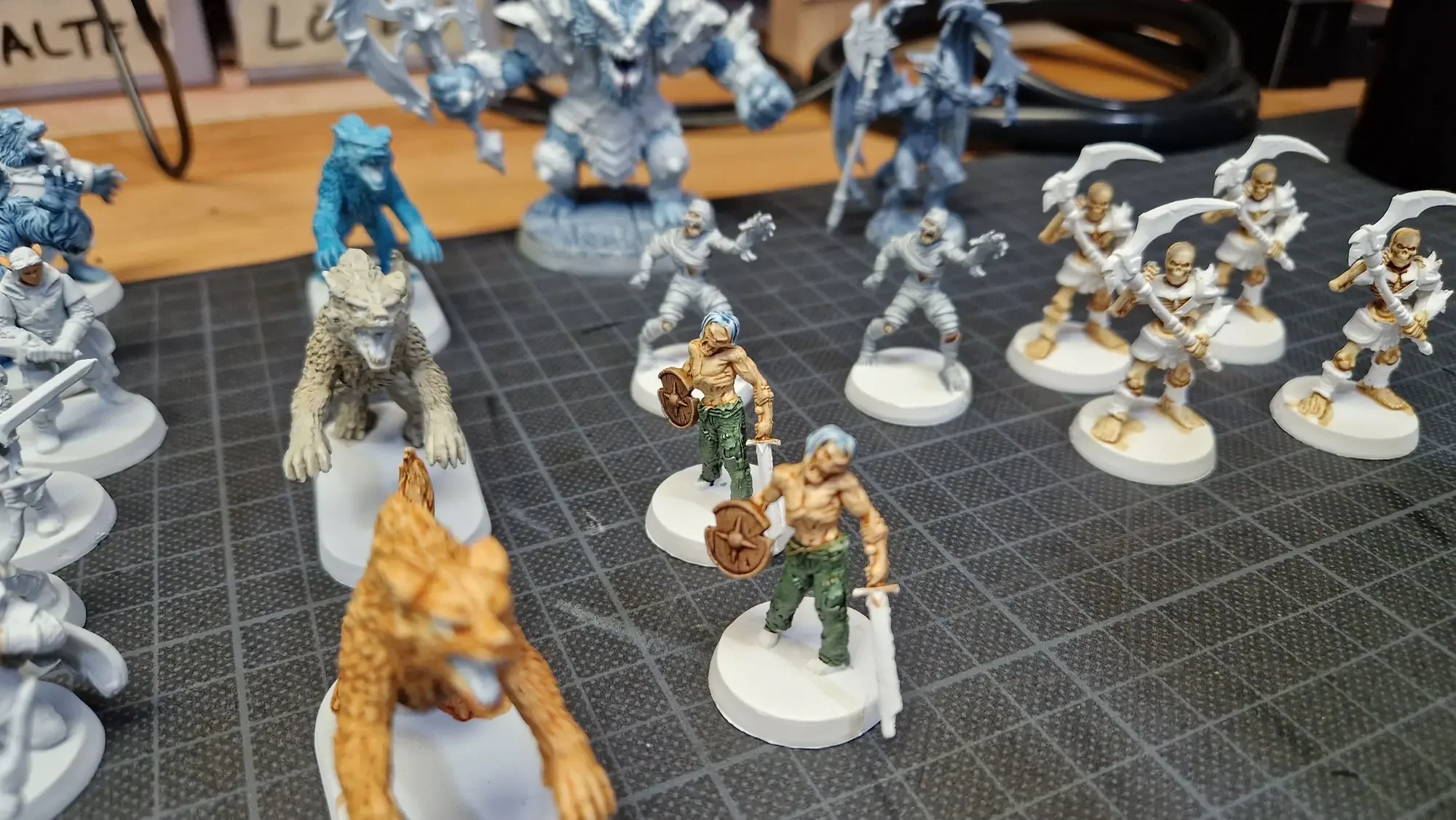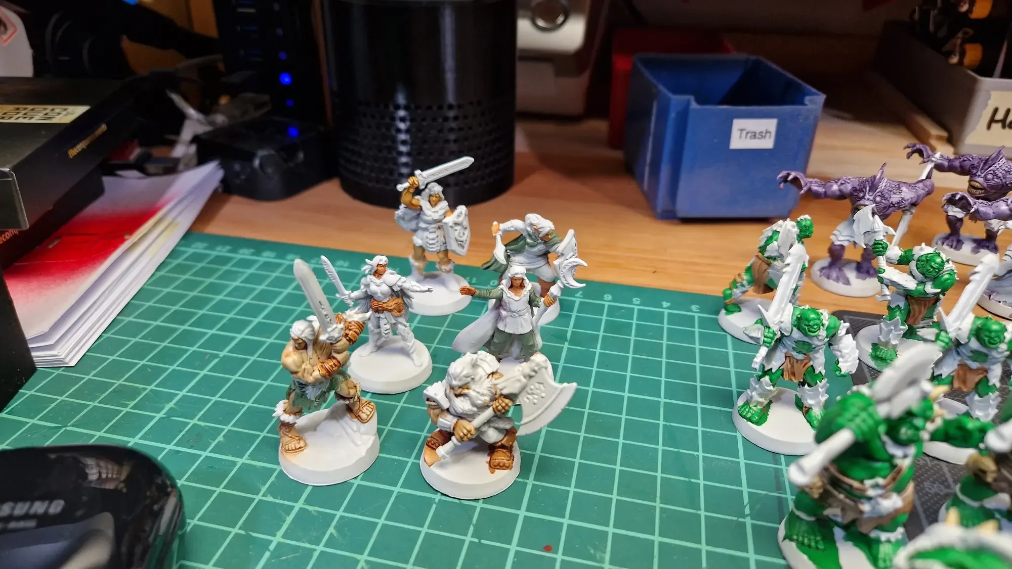 Das Bemalen hat mehrere Abende in Anspruch genommen. Ich habe mich Farbe für Farbe durch alle Minis gearbeitet und lange genug gewartet, dass sich die Armypainter Speed Paints 1.0 (“Die alten”) nicht wieder aktivieren, wenn sie zusammenlaufen.