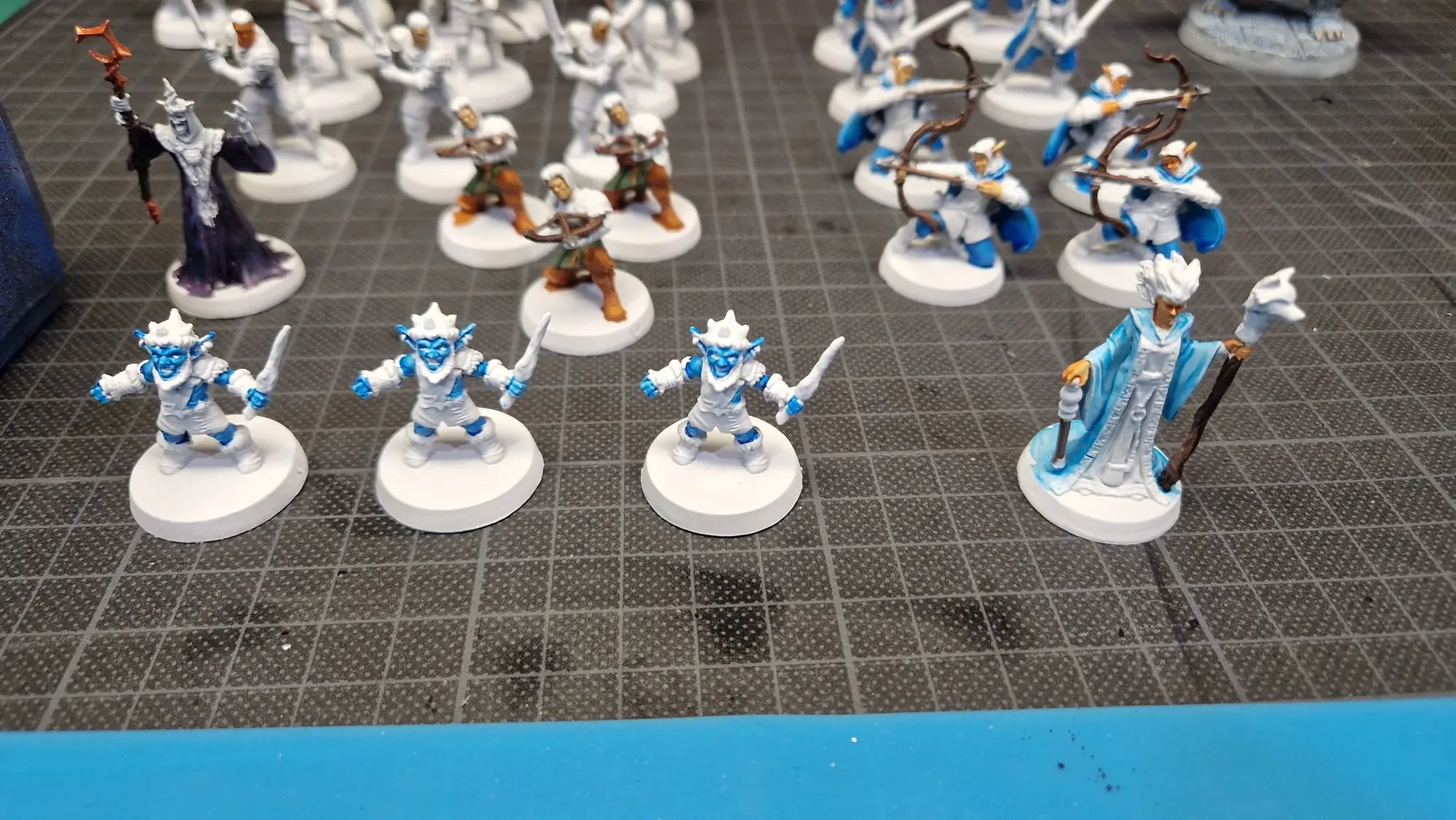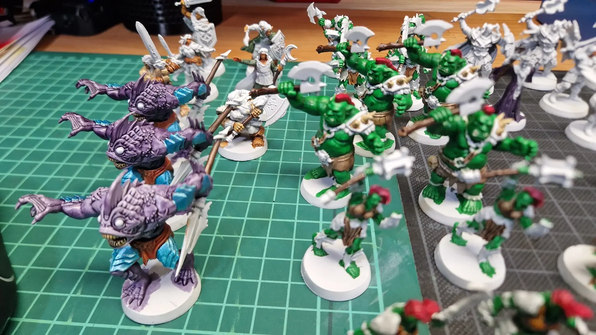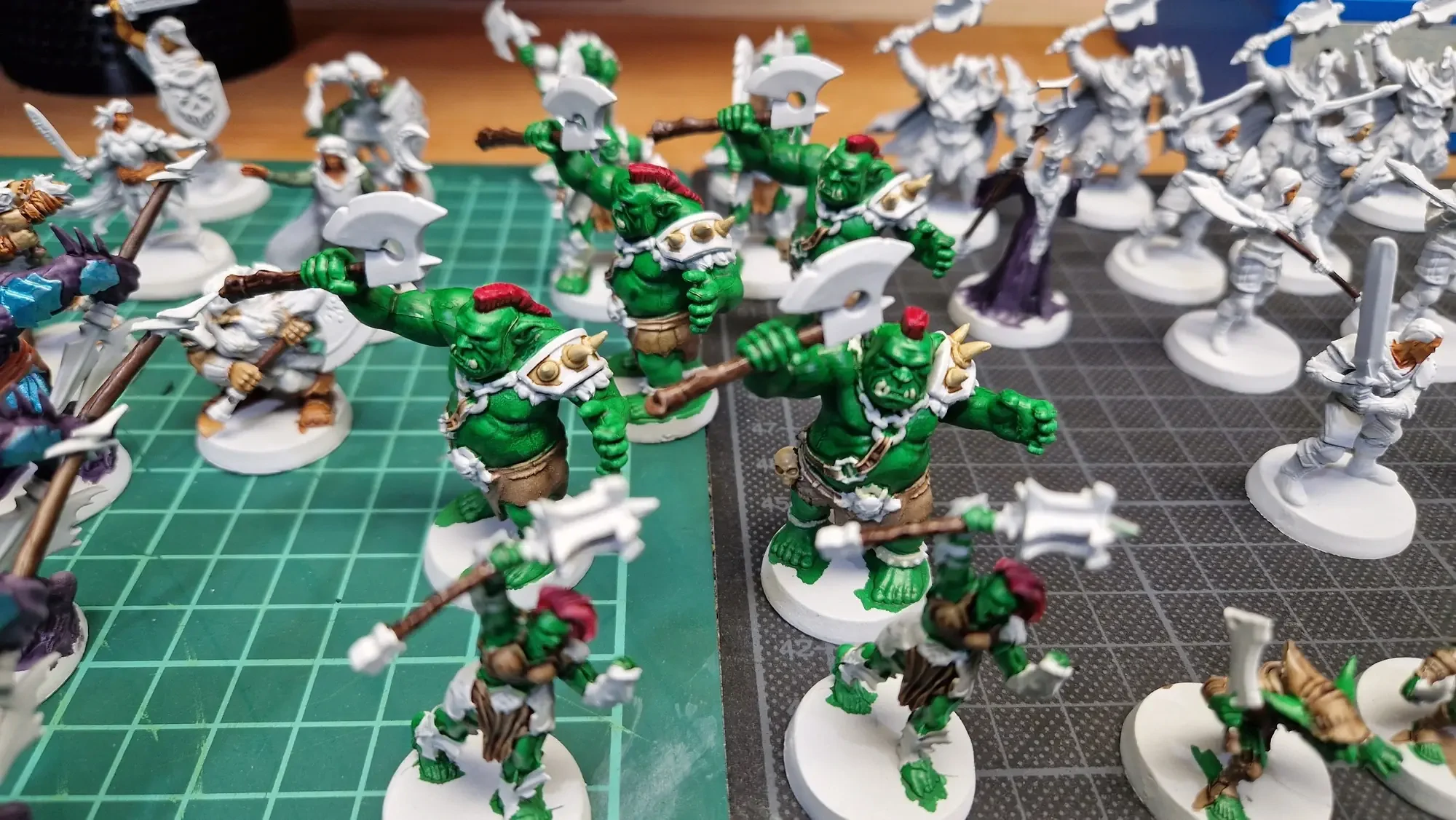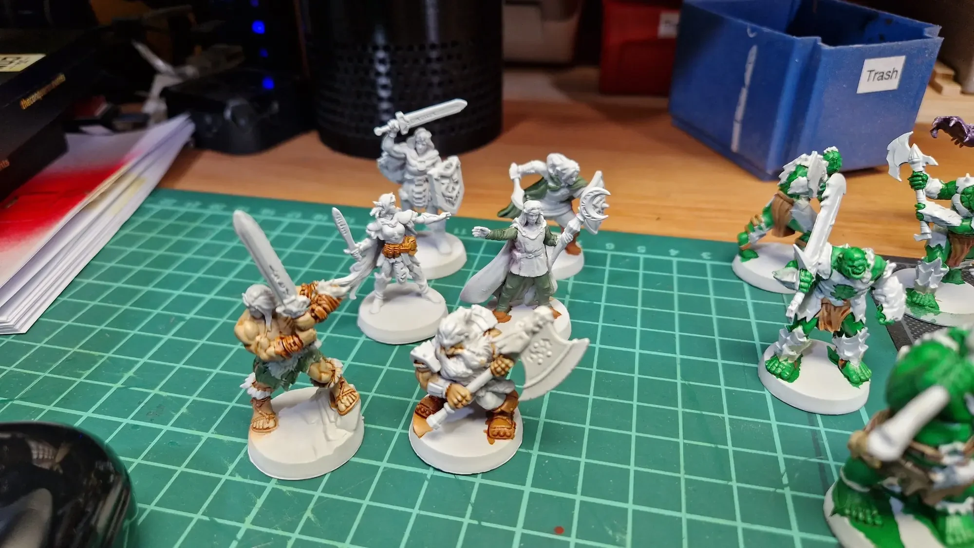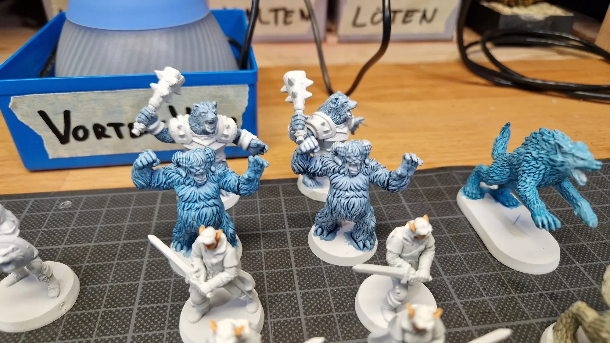 Das Bemalen hat mehrere Abende in Anspruch genommen. Ich habe mich Farbe für Farbe durch alle Minis gearbeitet und lange genug gewartet, dass sich die Armypainter Speed Paints 1.0 (“Die alten”) nicht wieder aktivieren, wenn sie zusammenlaufen.