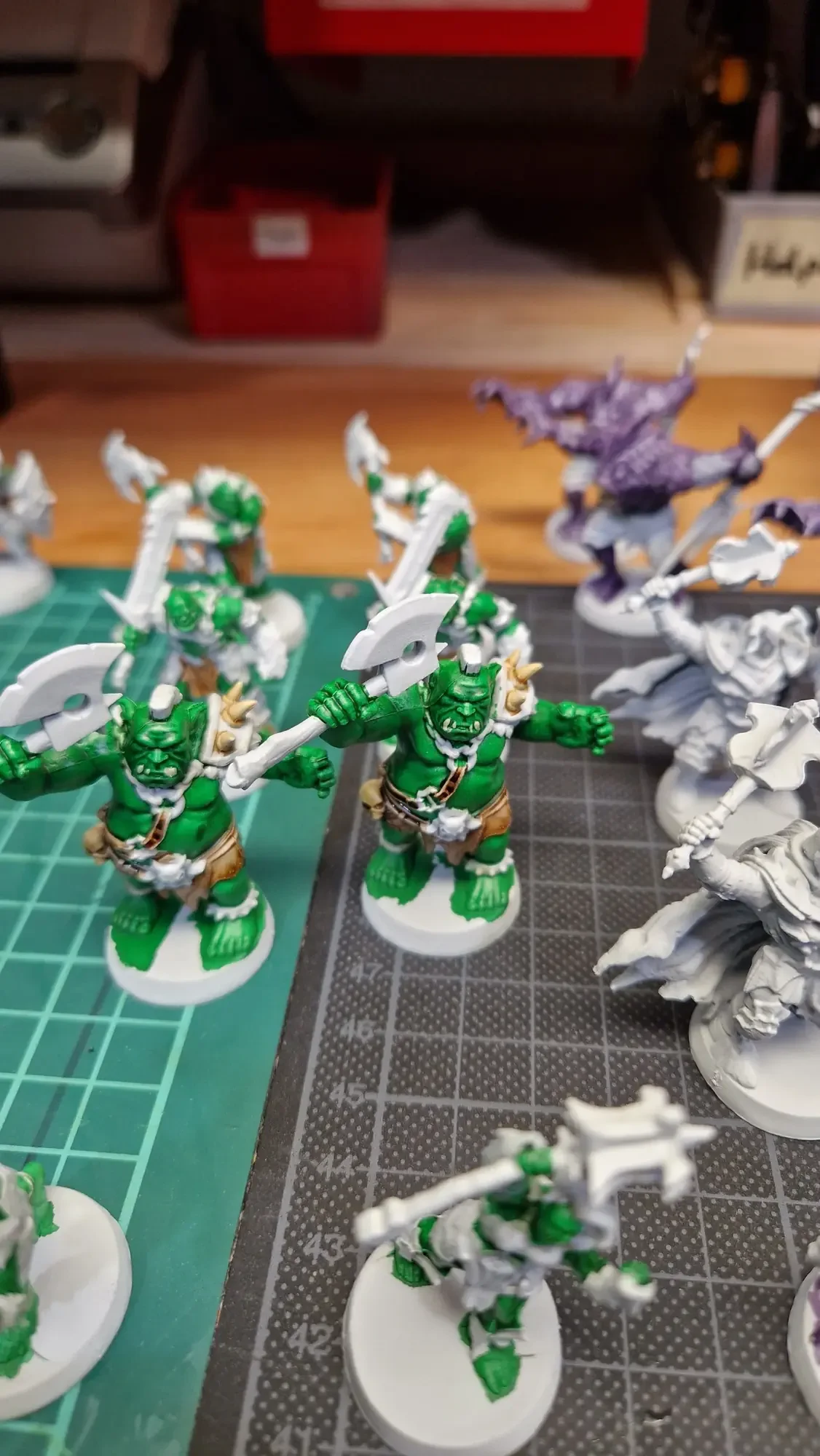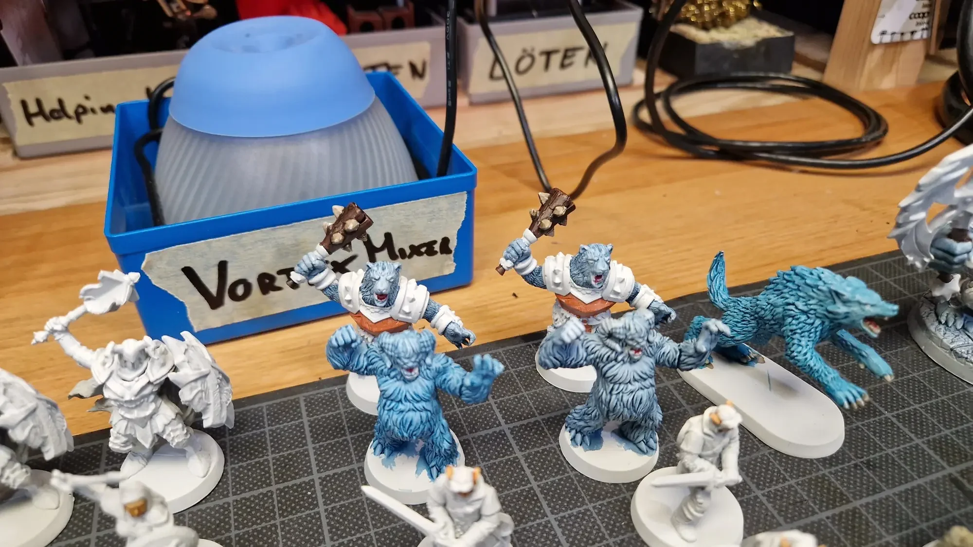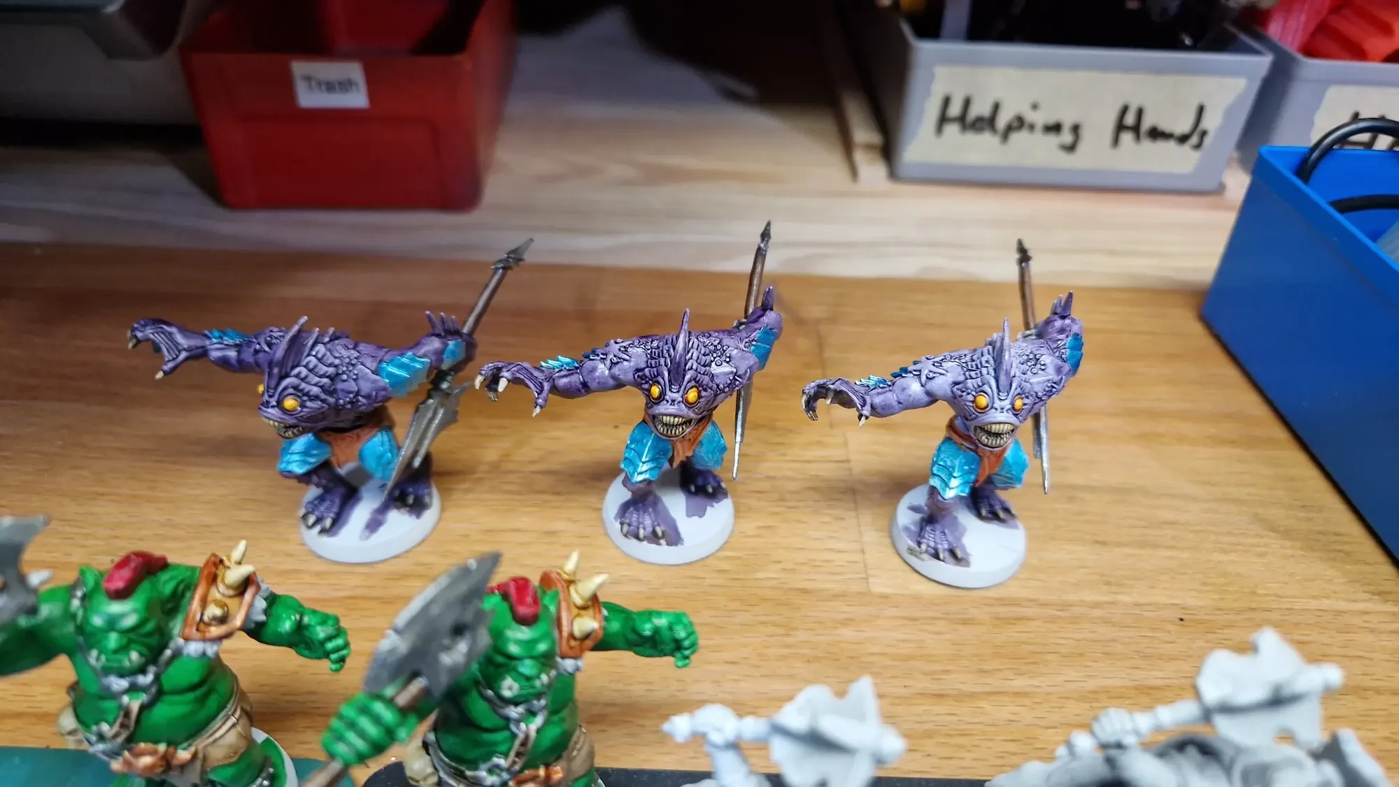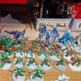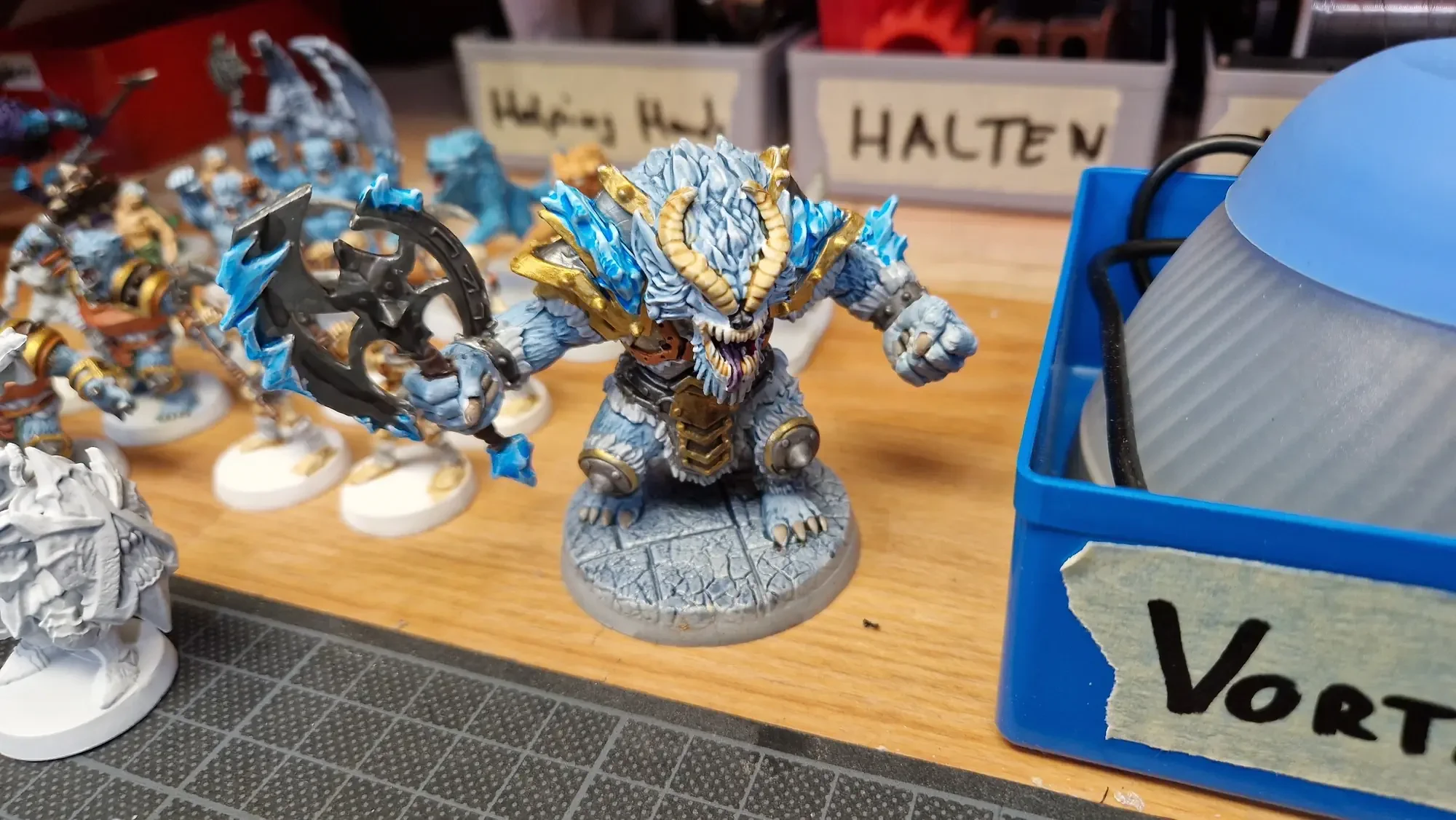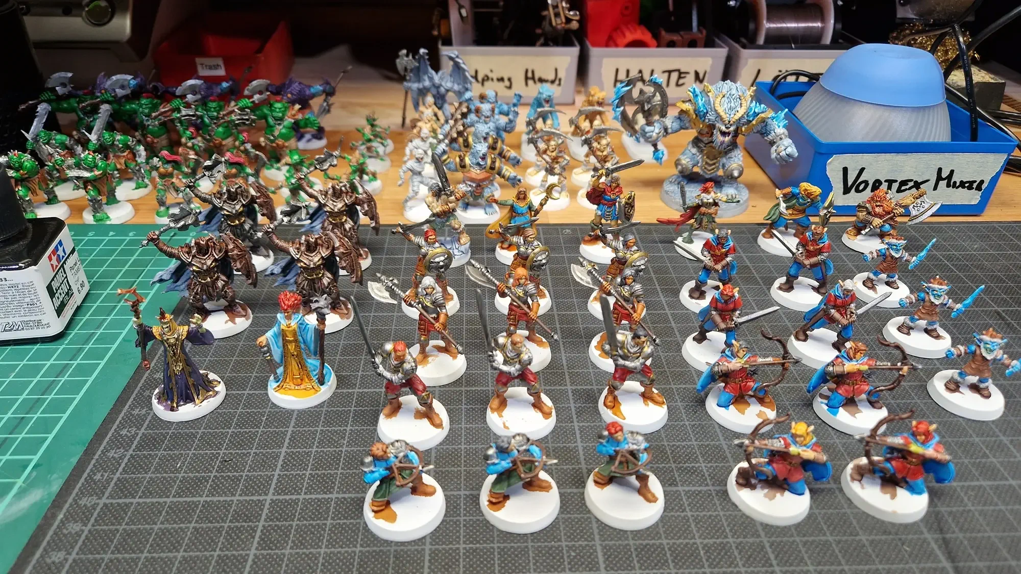 Das Bemalen hat mehrere Abende in Anspruch genommen. Ich habe mich Farbe für Farbe durch alle Minis gearbeitet und lange genug gewartet, dass sich die Armypainter Speed Paints 1.0 (“Die alten”) nicht wieder aktivieren, wenn sie zusammenlaufen.