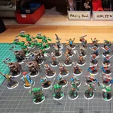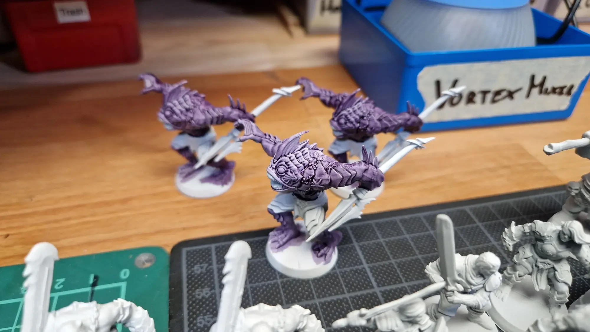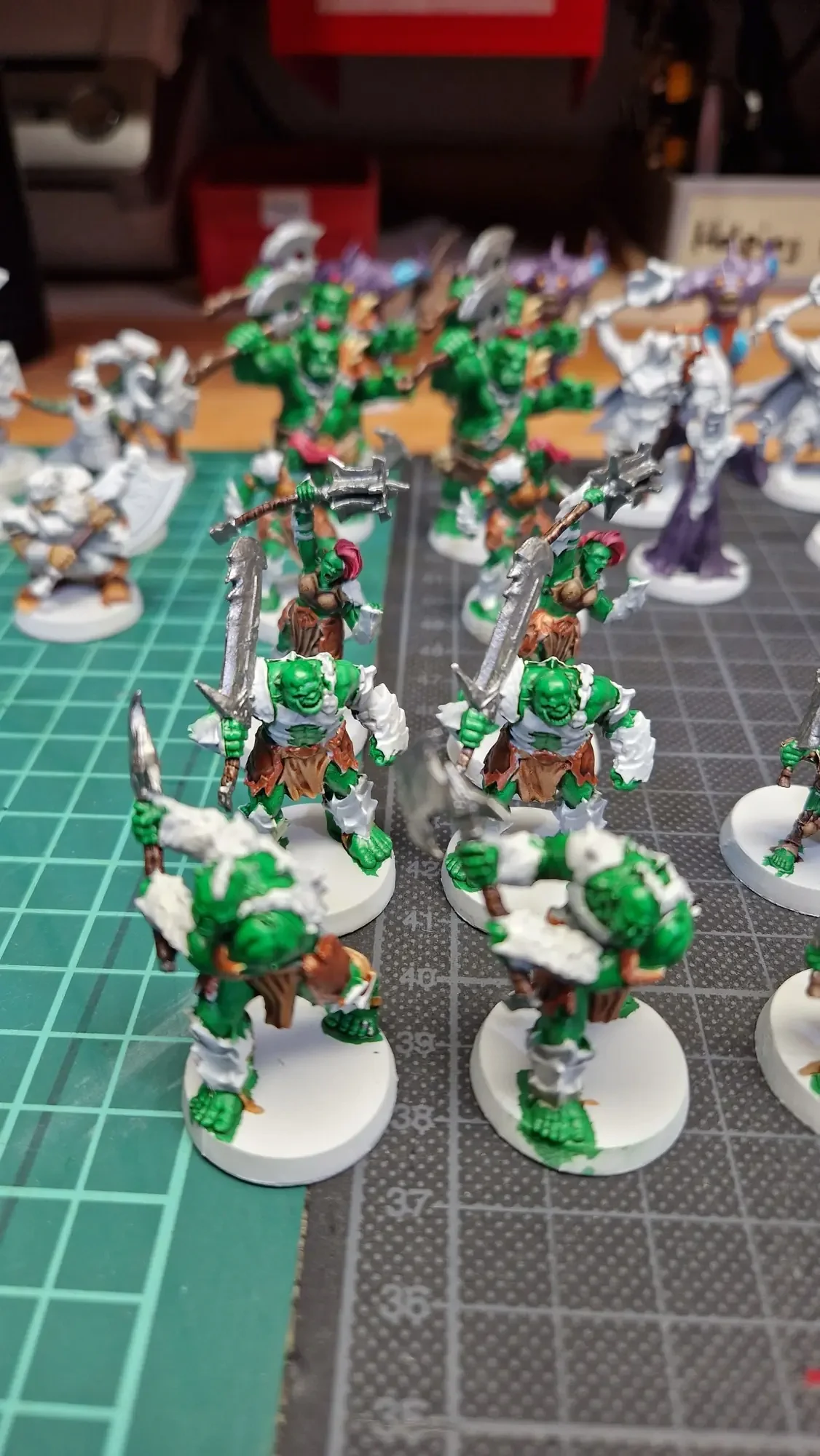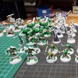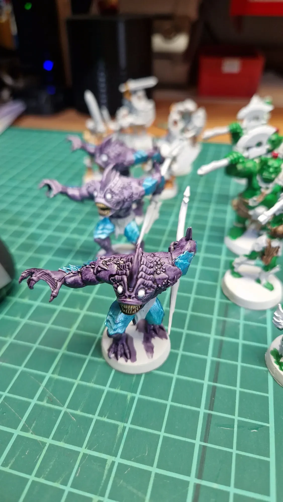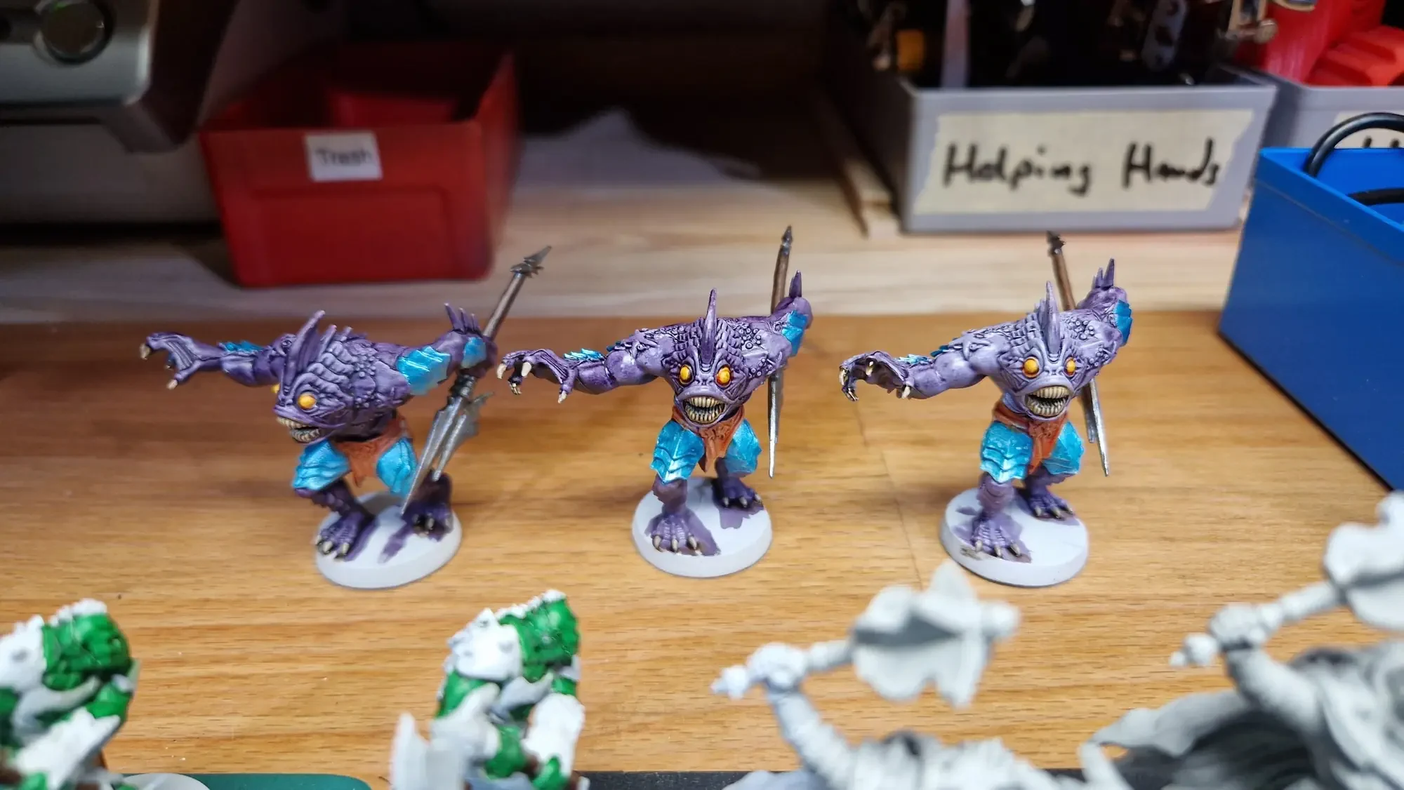 Das Bemalen hat mehrere Abende in Anspruch genommen. Ich habe mich Farbe für Farbe durch alle Minis gearbeitet und lange genug gewartet, dass sich die Armypainter Speed Paints 1.0 (“Die alten”) nicht wieder aktivieren, wenn sie zusammenlaufen.