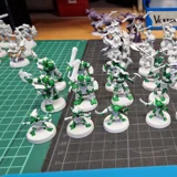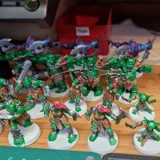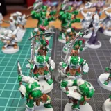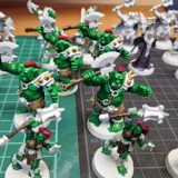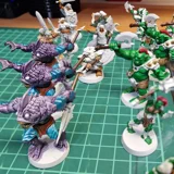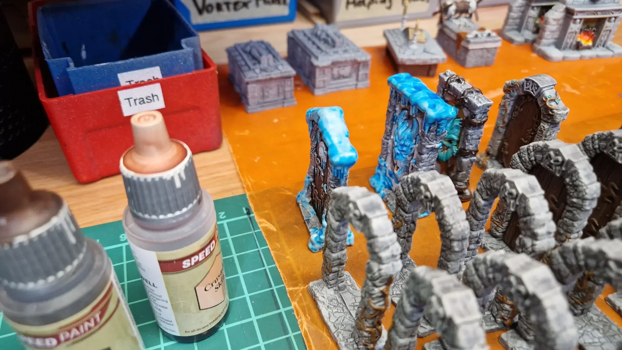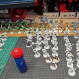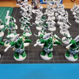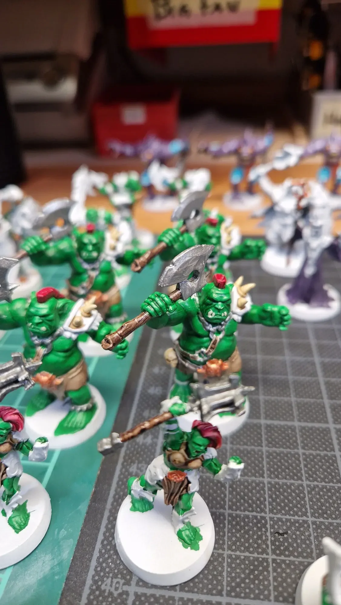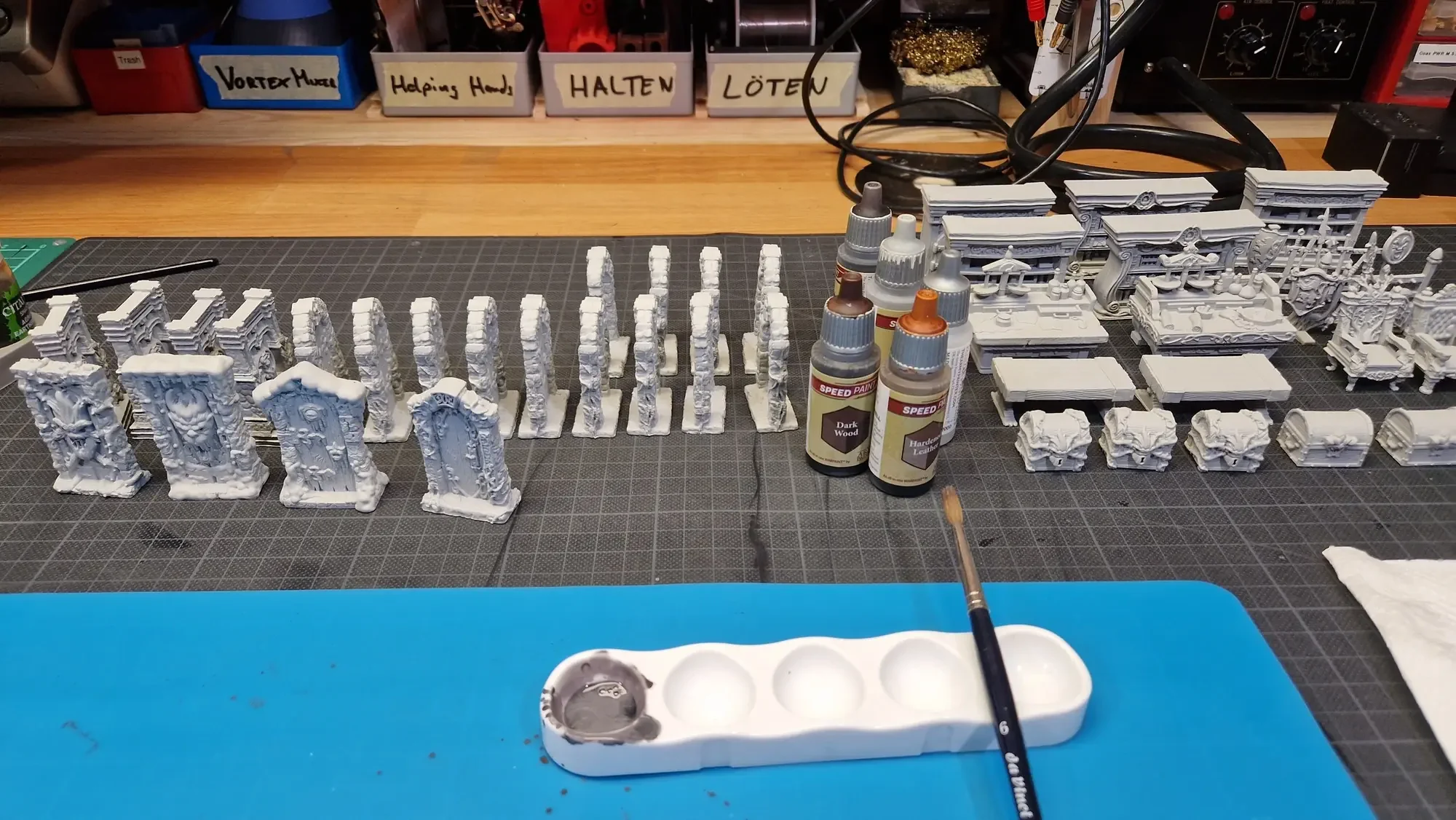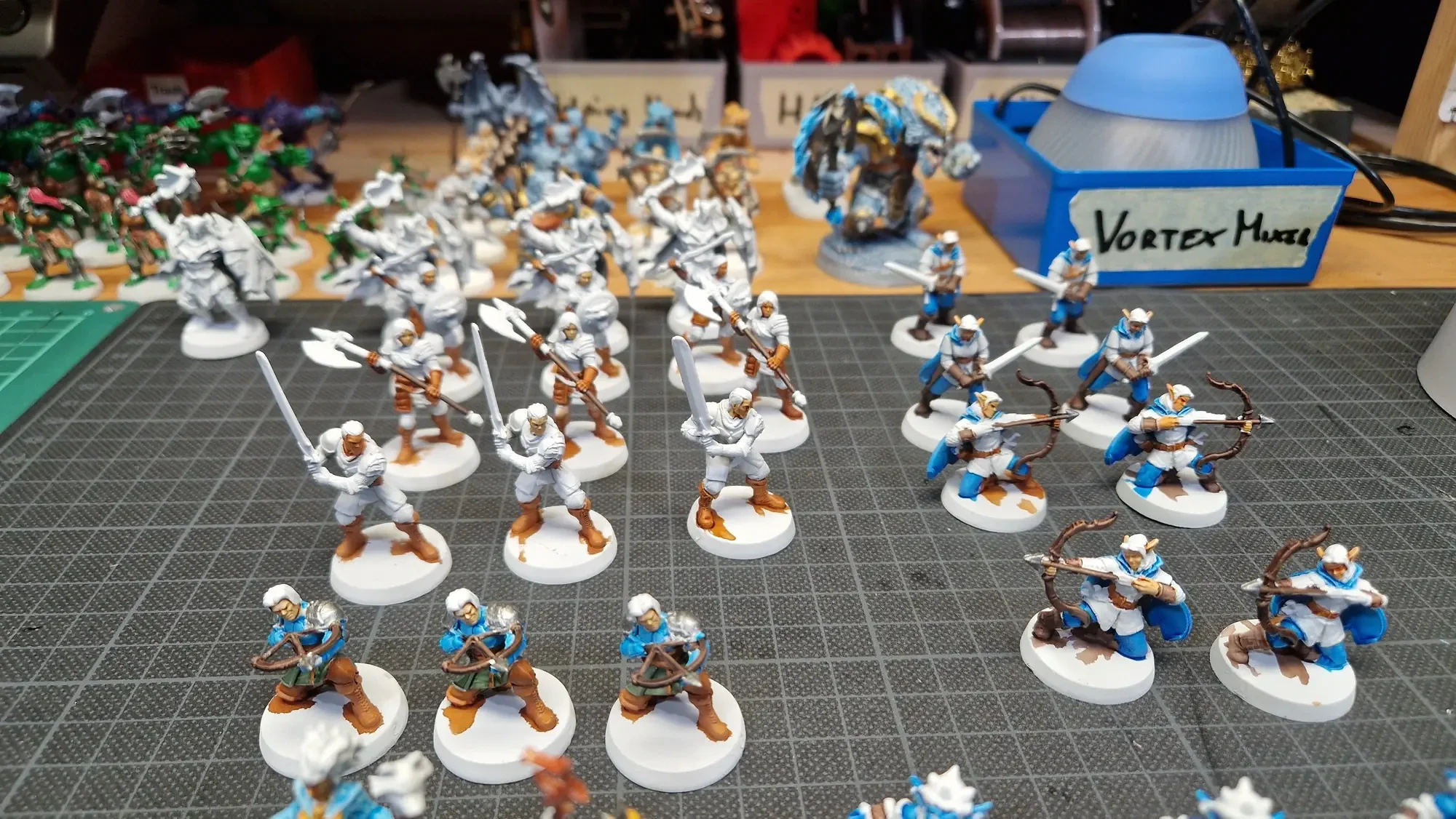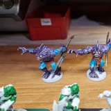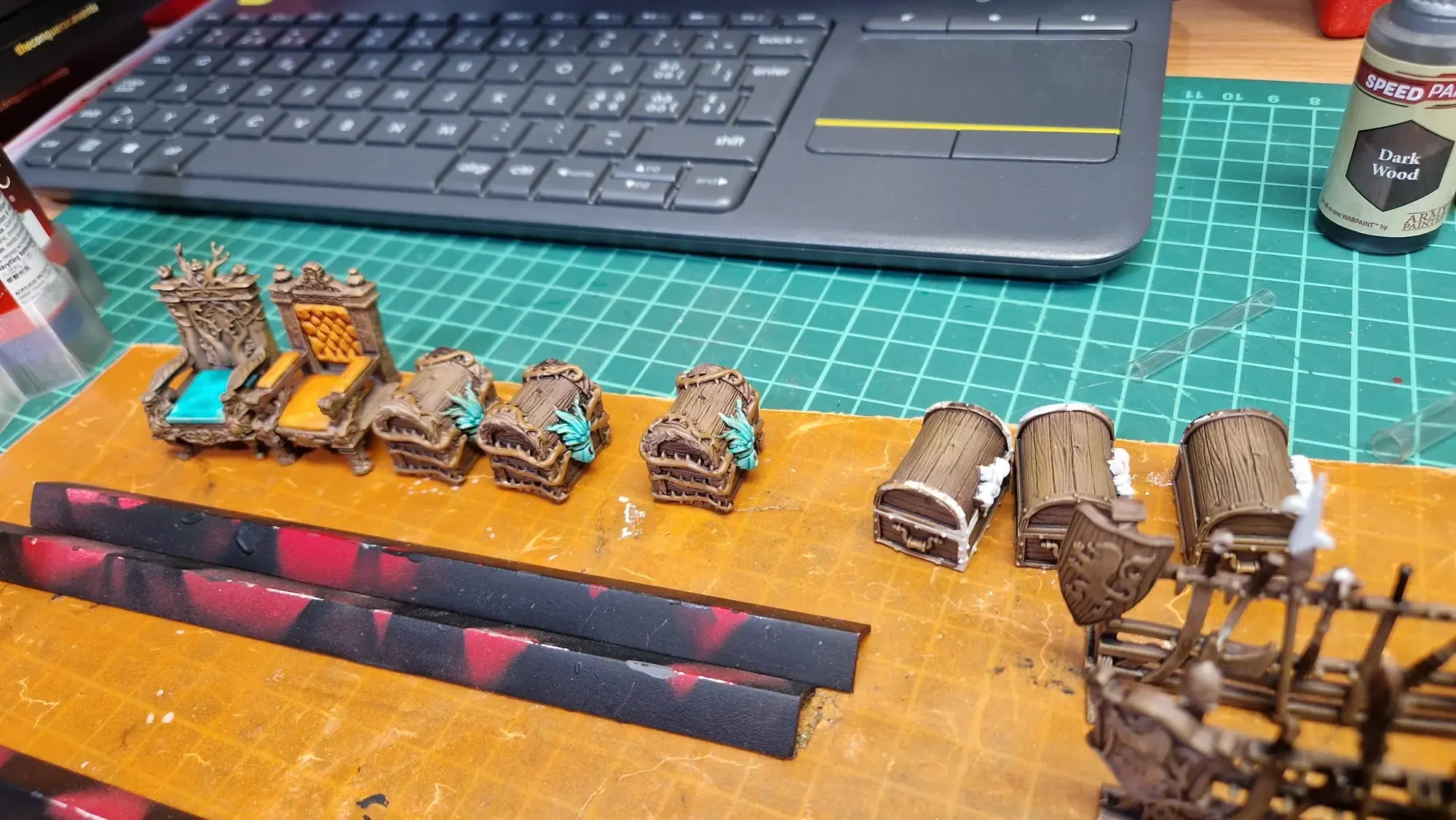 Das Bemalen hat mehrere Abende in Anspruch genommen. Ich habe mich Farbe für Farbe durch alle Minis gearbeitet und lange genug gewartet, dass sich die Armypainter Speed Paints 1.0 (“Die alten”) nicht wieder aktivieren, wenn sie zusammenlaufen.