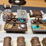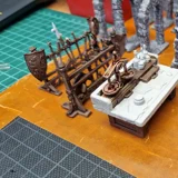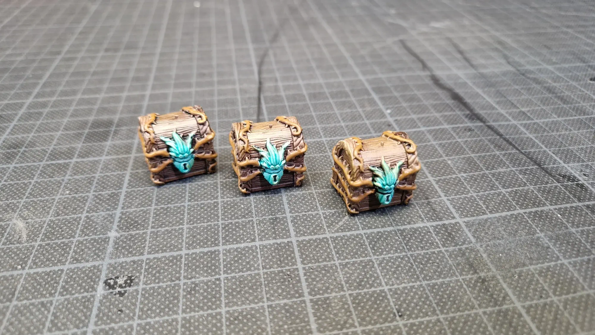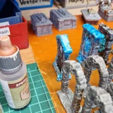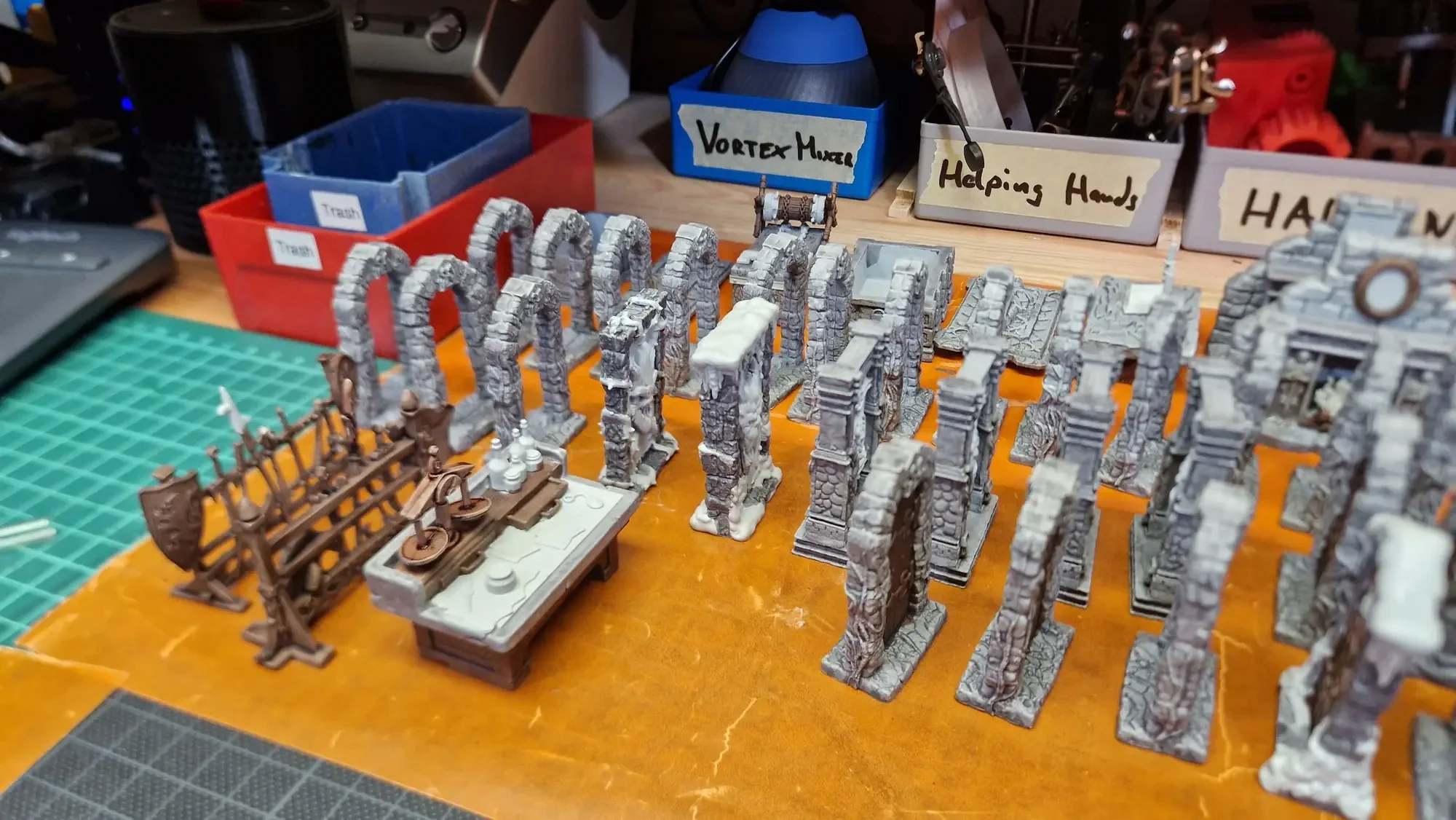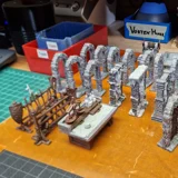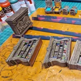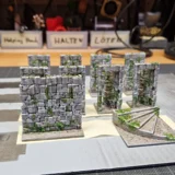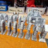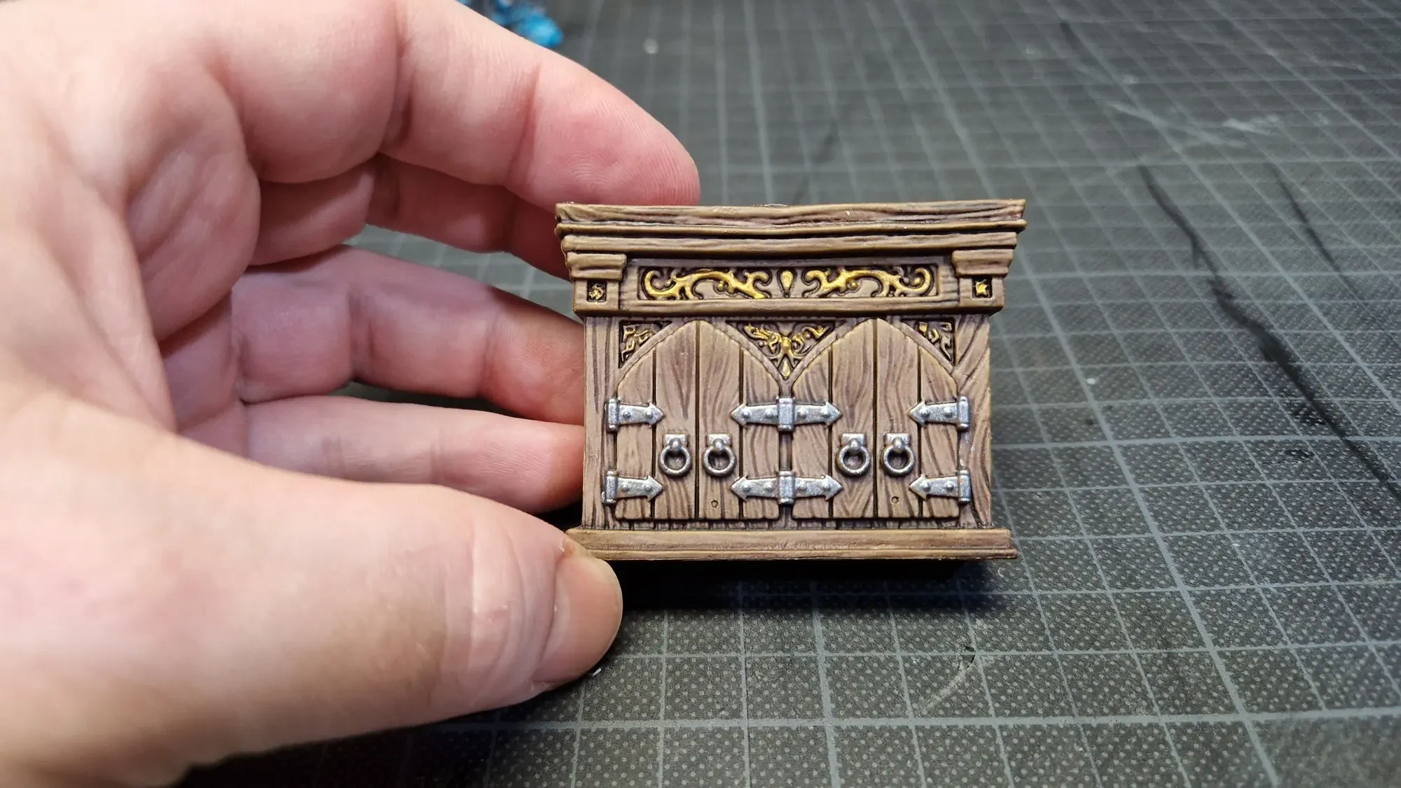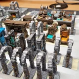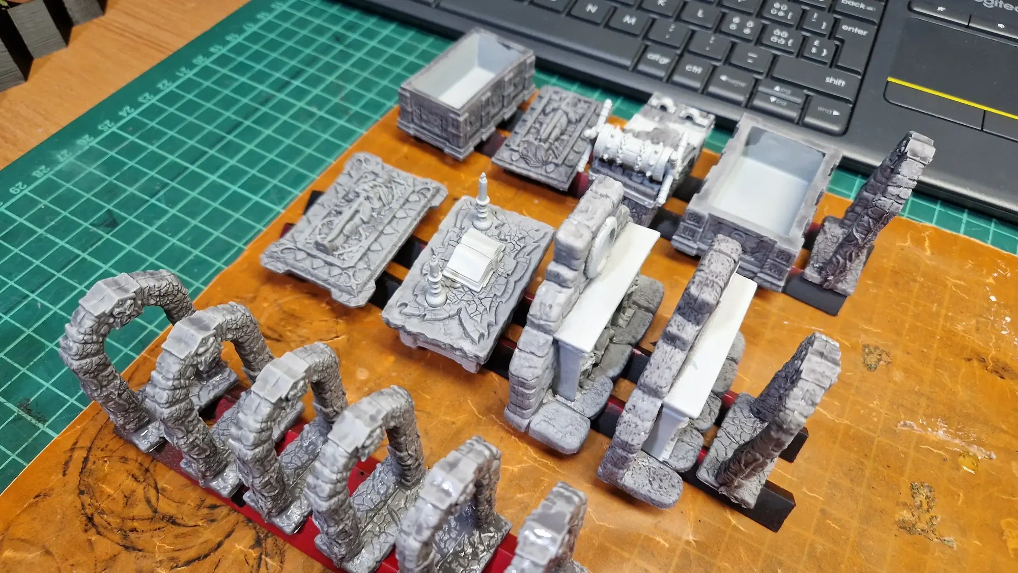 Im Spiel sind Wände mit und ohne Geheimtüren nur Tokens die auf dem Spielfeld abgelegt werden. Ich habe jedoch schöne 3D-Modelle (Wände, Doppelwand, Wand mit Gehimtür) gefunden und gedruckt. Auch die Treppe über welche die Helden jeweils in den Dungeon hinabsteigen, wurde in 3D Gedruckt.