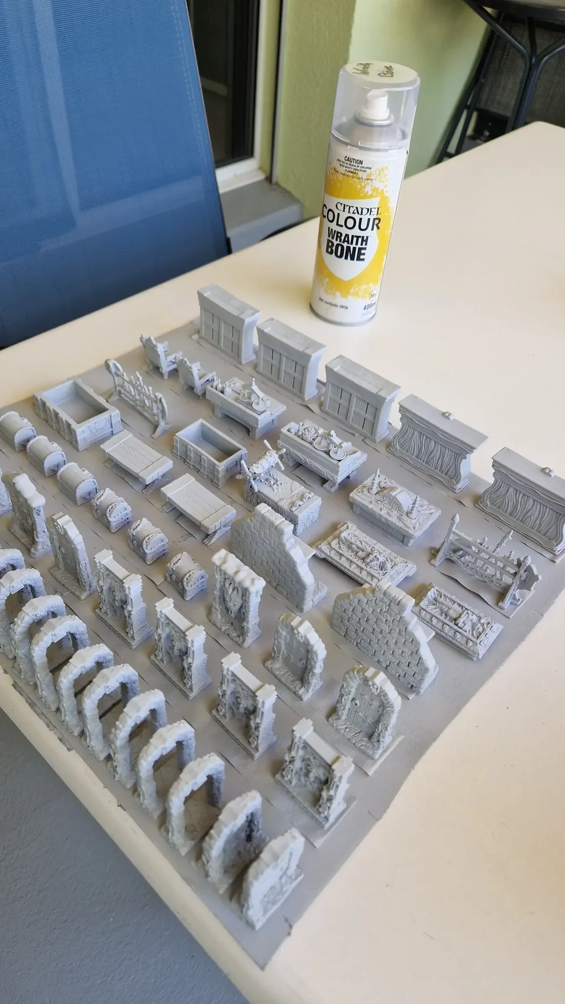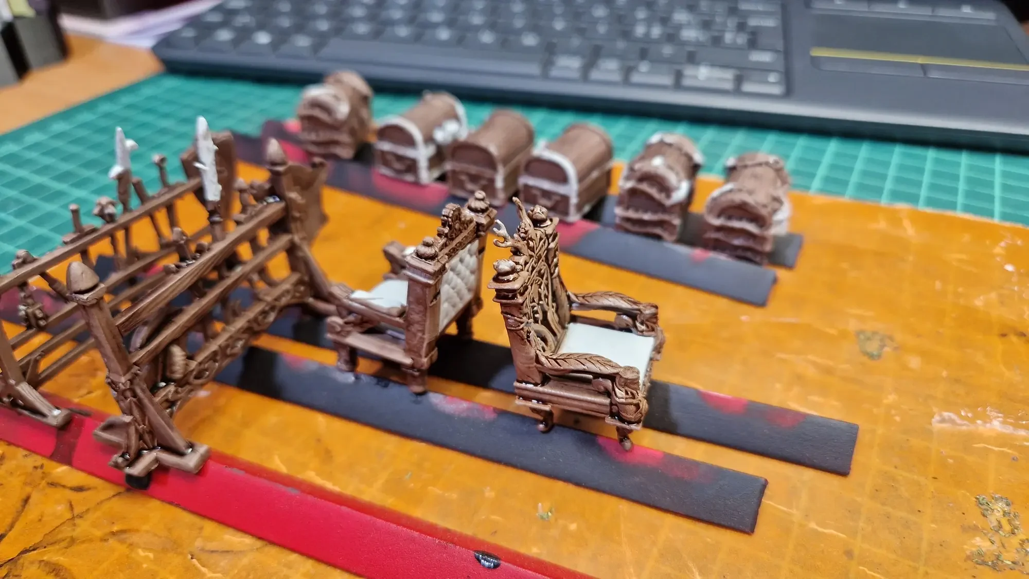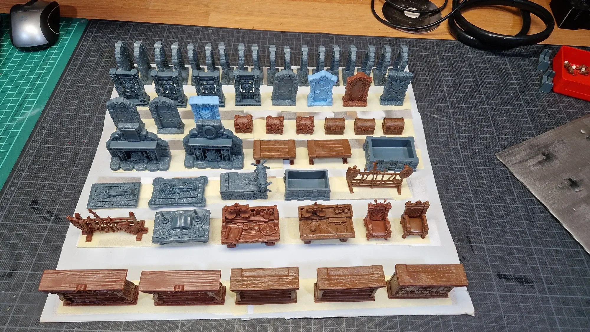 Auch die Möbel werden grundiert. Diese sind ebenfalls aus verschiedenfarbigem Plastik was auch hier das Bemalen nicht unbedingt nötig machen würde.