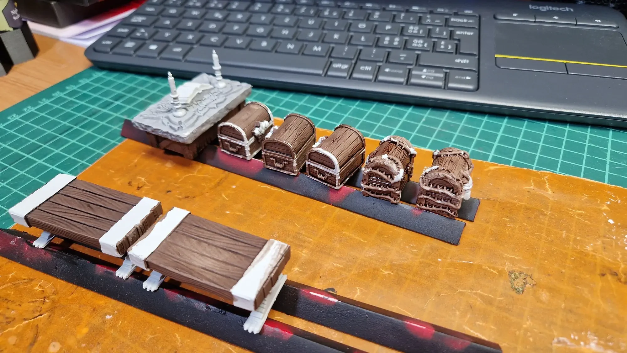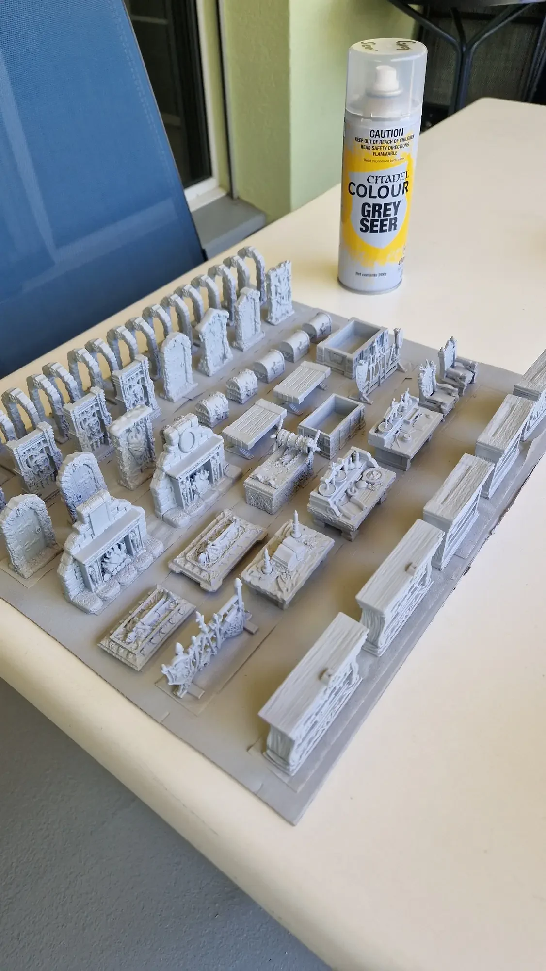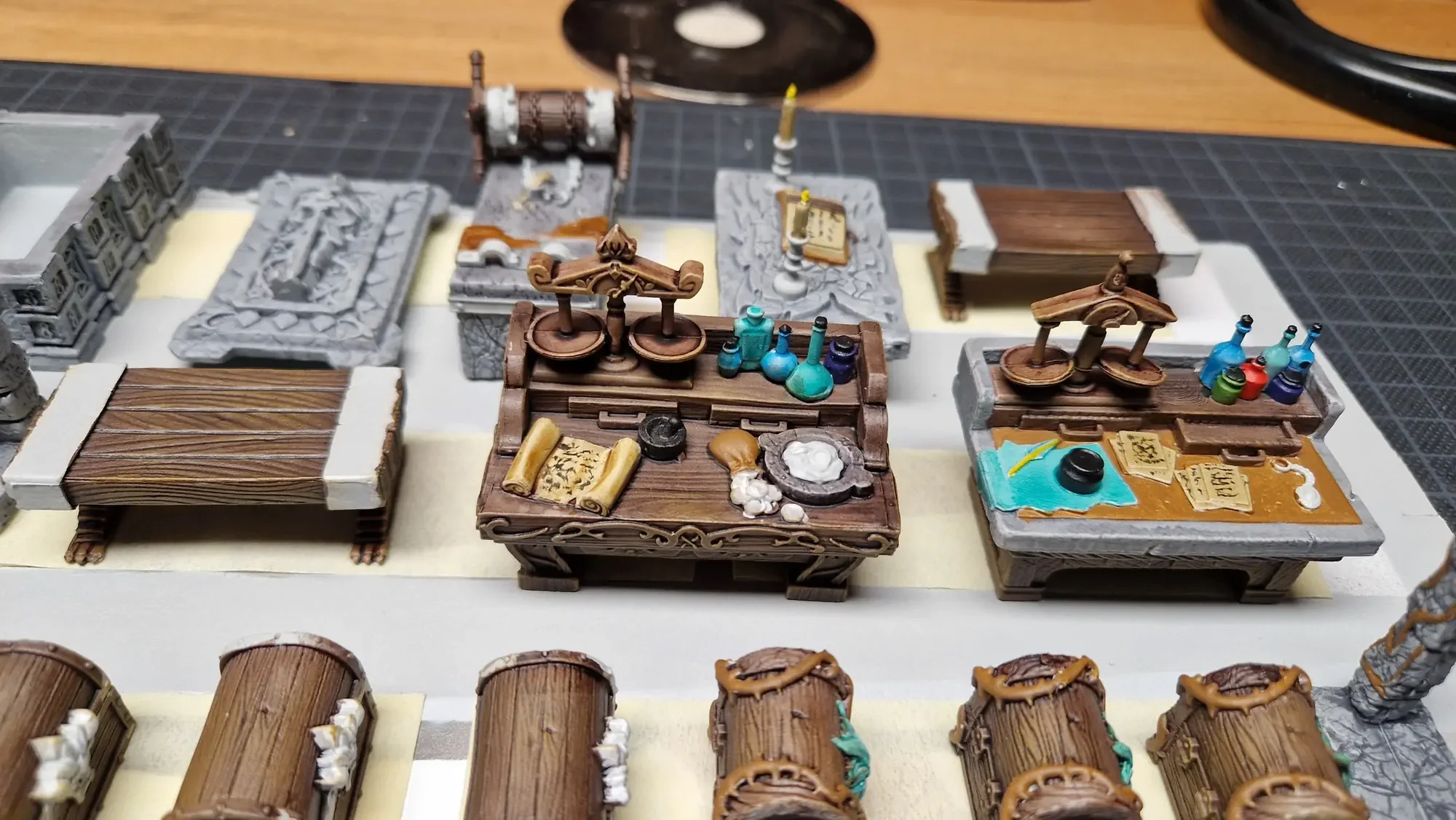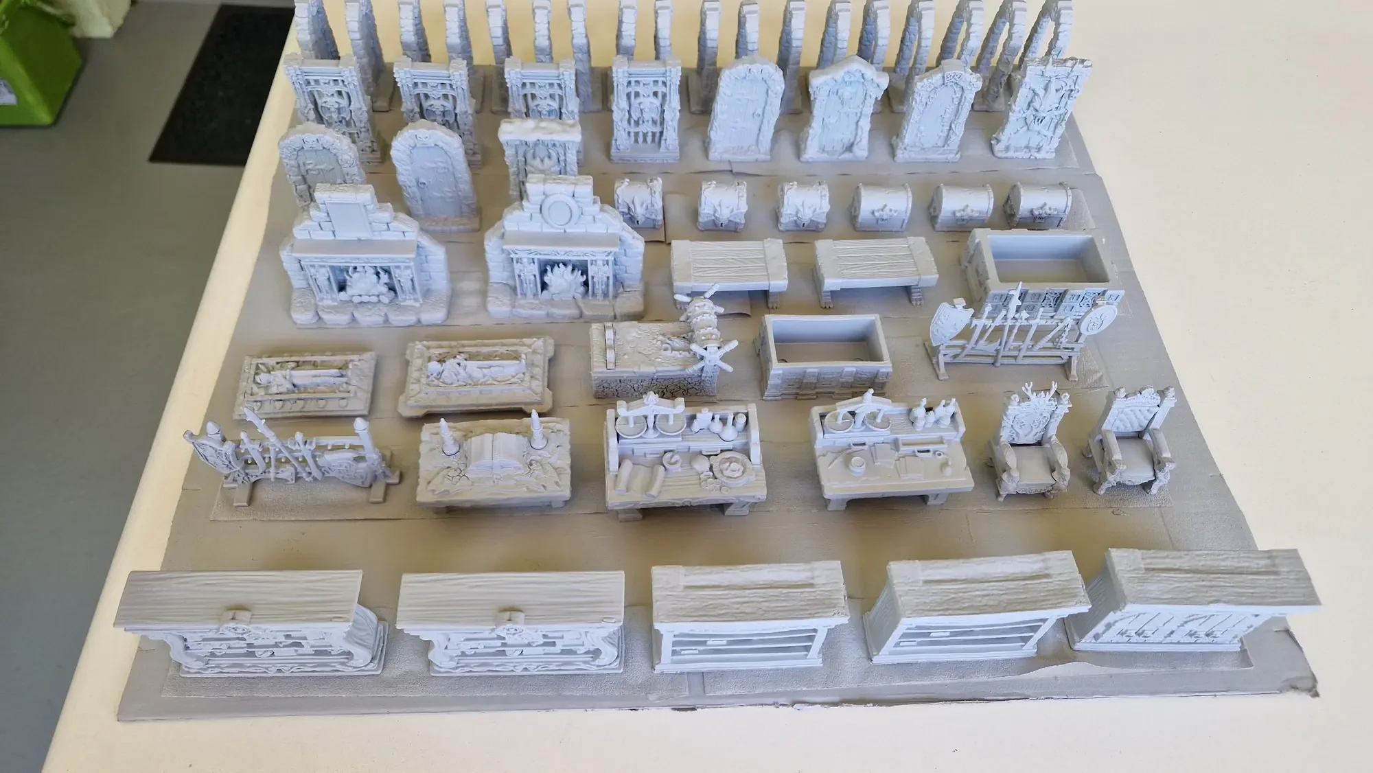 Auch die Möbel werden grundiert. Diese sind ebenfalls aus verschiedenfarbigem Plastik was auch hier das Bemalen nicht unbedingt nötig machen würde.