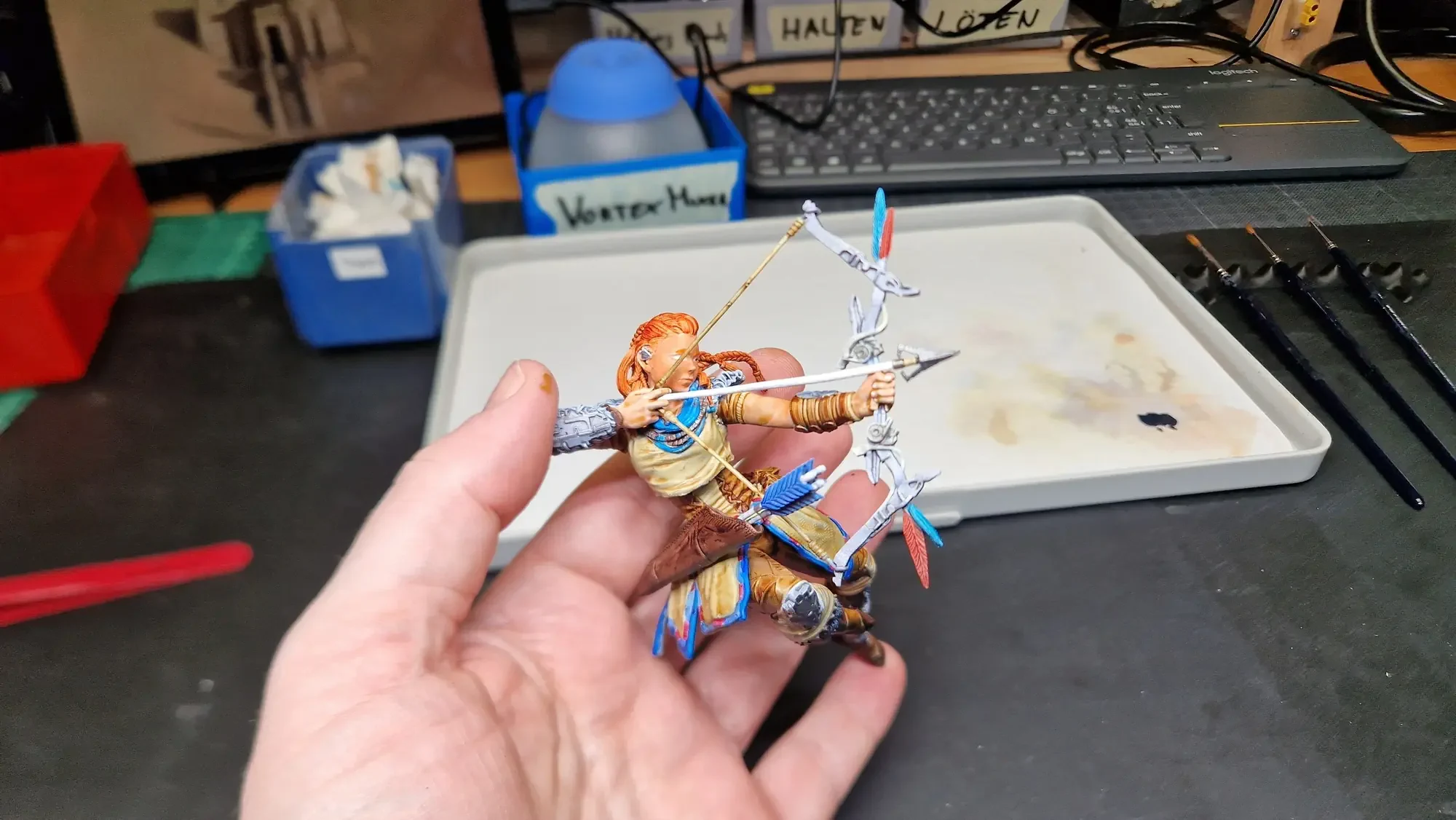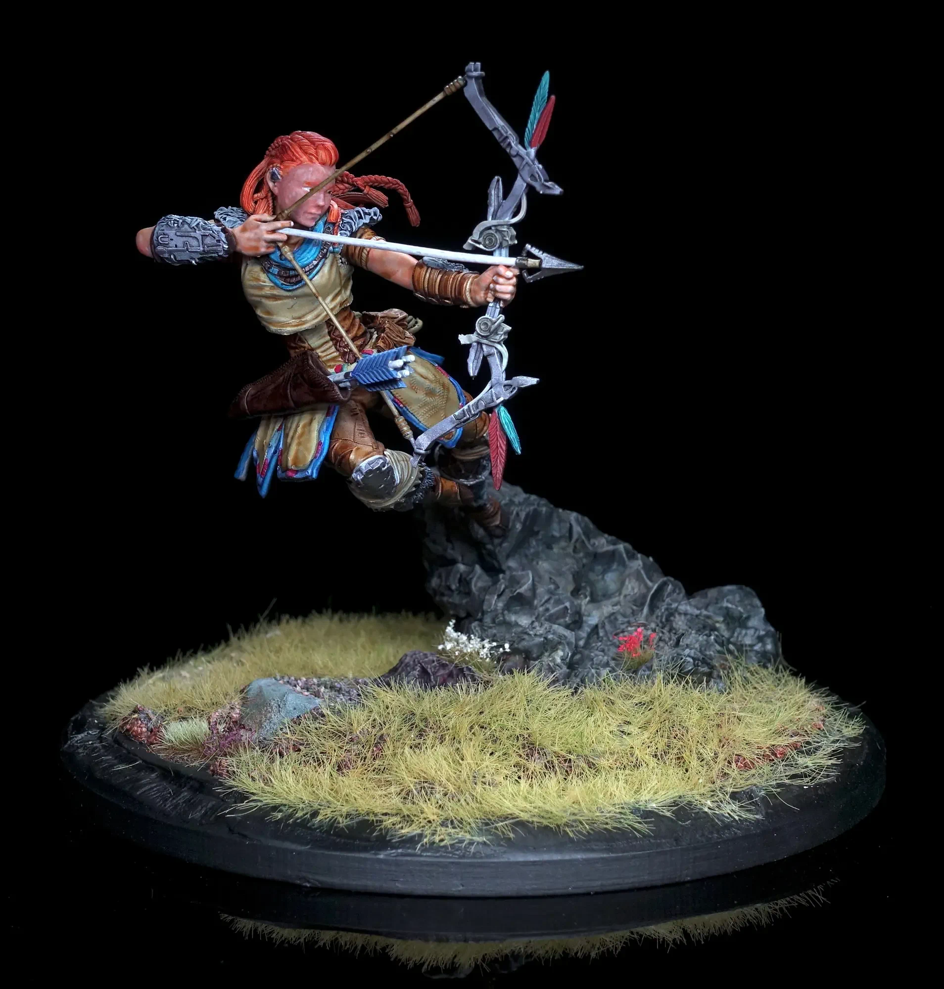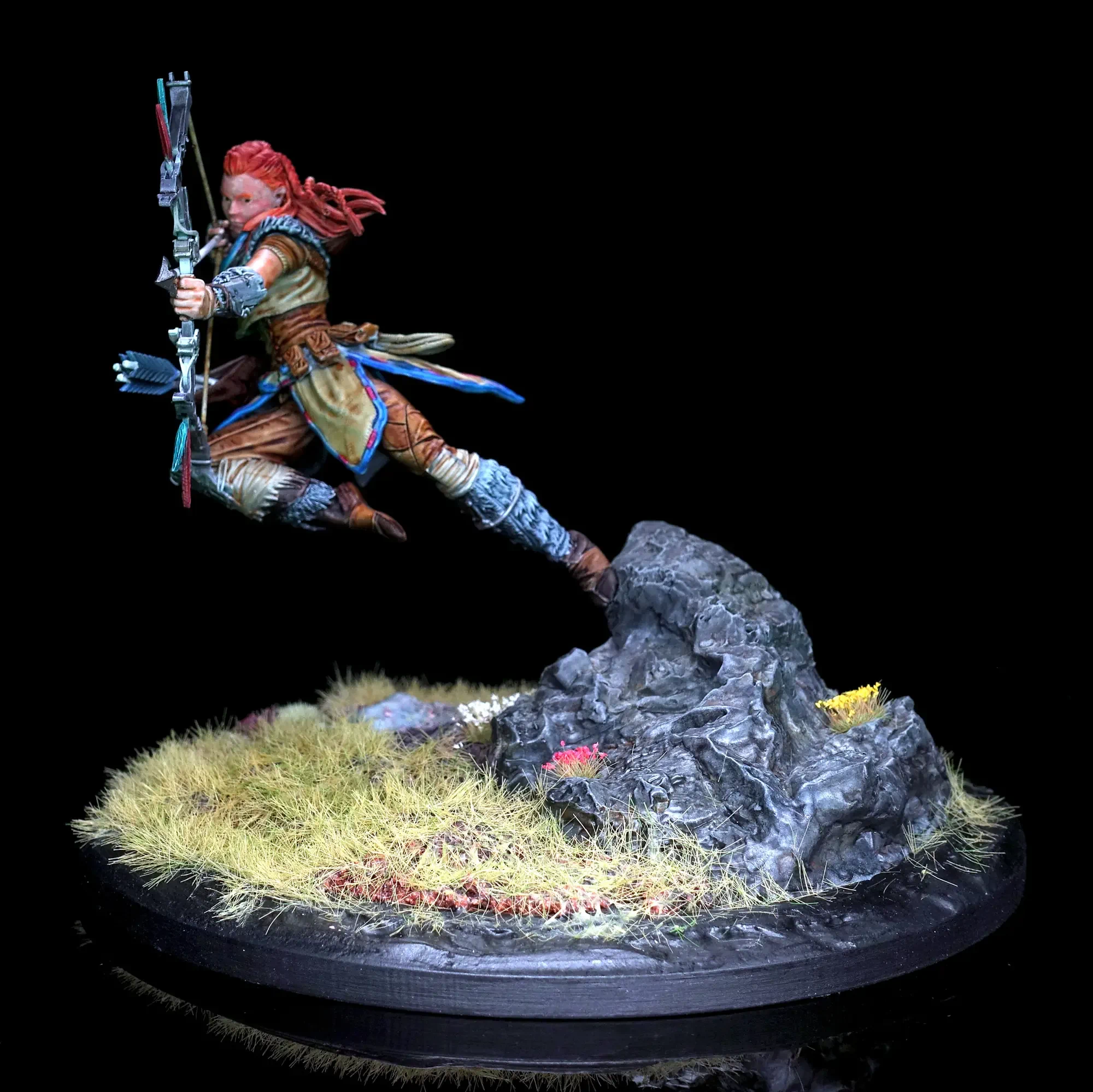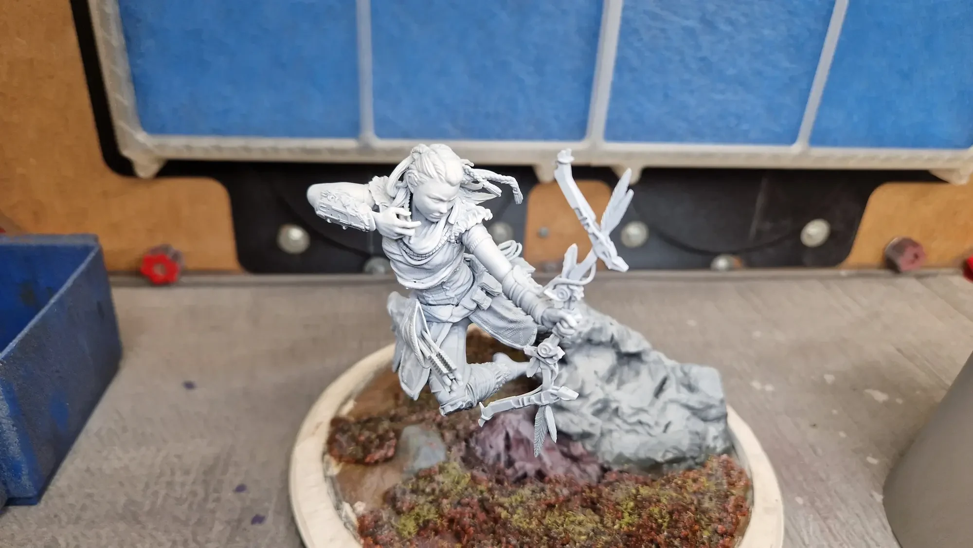Ich mag die Spiele aus der Horizon-Reihe mit der Heldin Aloy. Das 3D-Druck Modell von Gambody gibt die Heldin aus dem ersten Teil “Horizon Zero Dawn” im “Nora Brave” Outfit wieder. Das Projekt ist am 26. Juni 2022 gestartet mit dem Druck der Teile. Minimale Arbeiten an der Base wurden noch nach dem Druck durchgeführt, aber danach lag Aloy mehr als ein Jahr in der “To Paint later” Kiste.