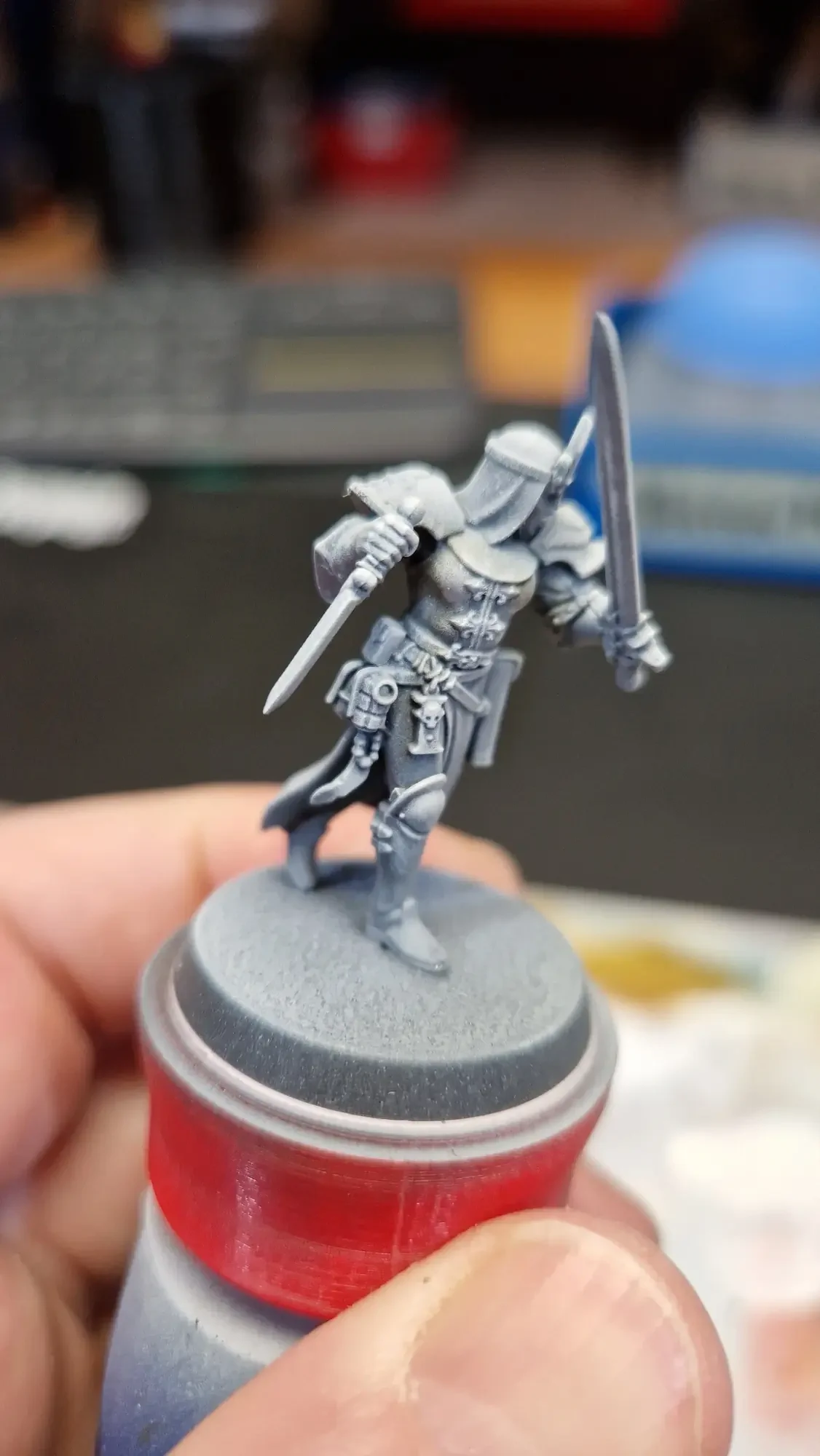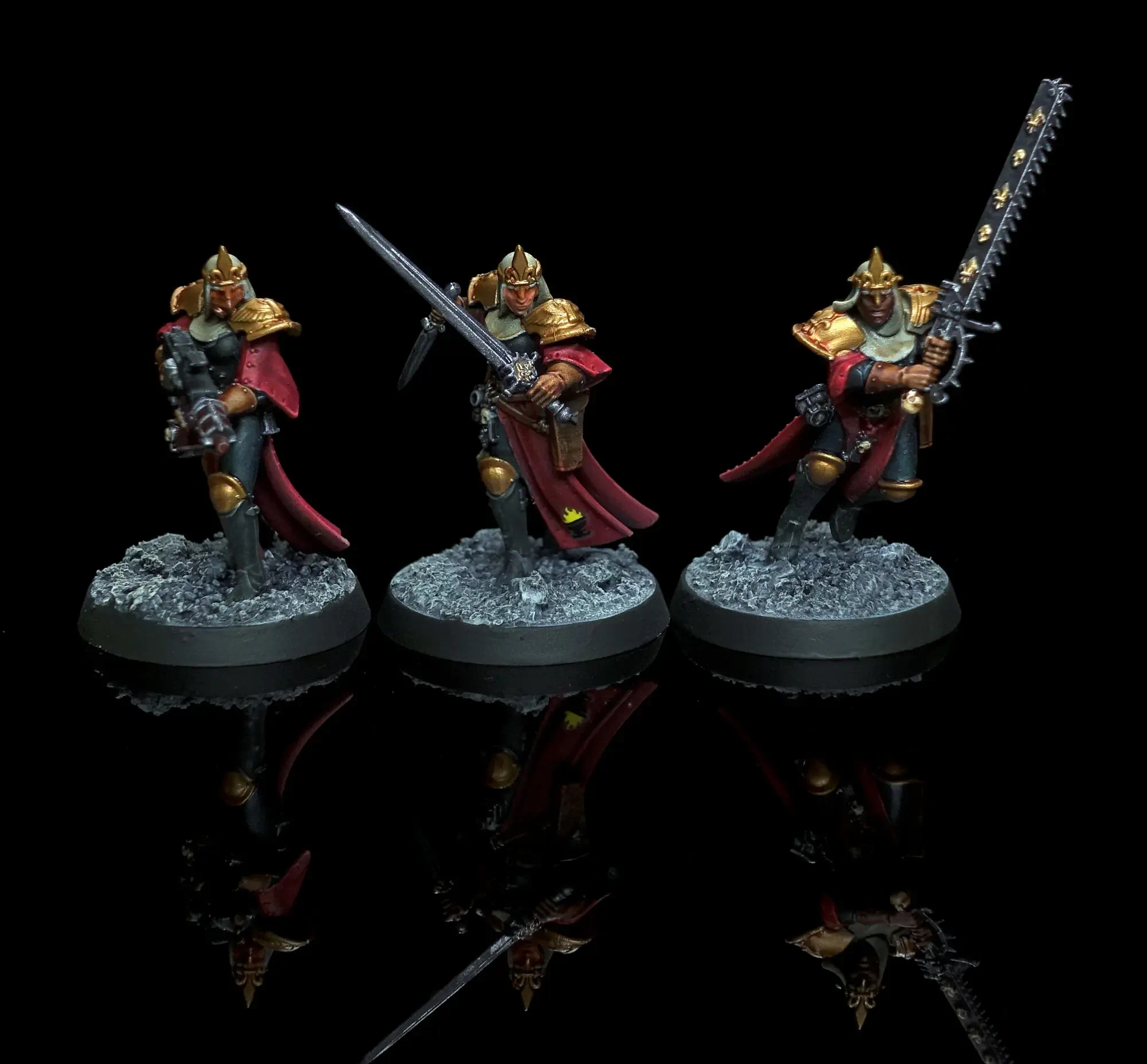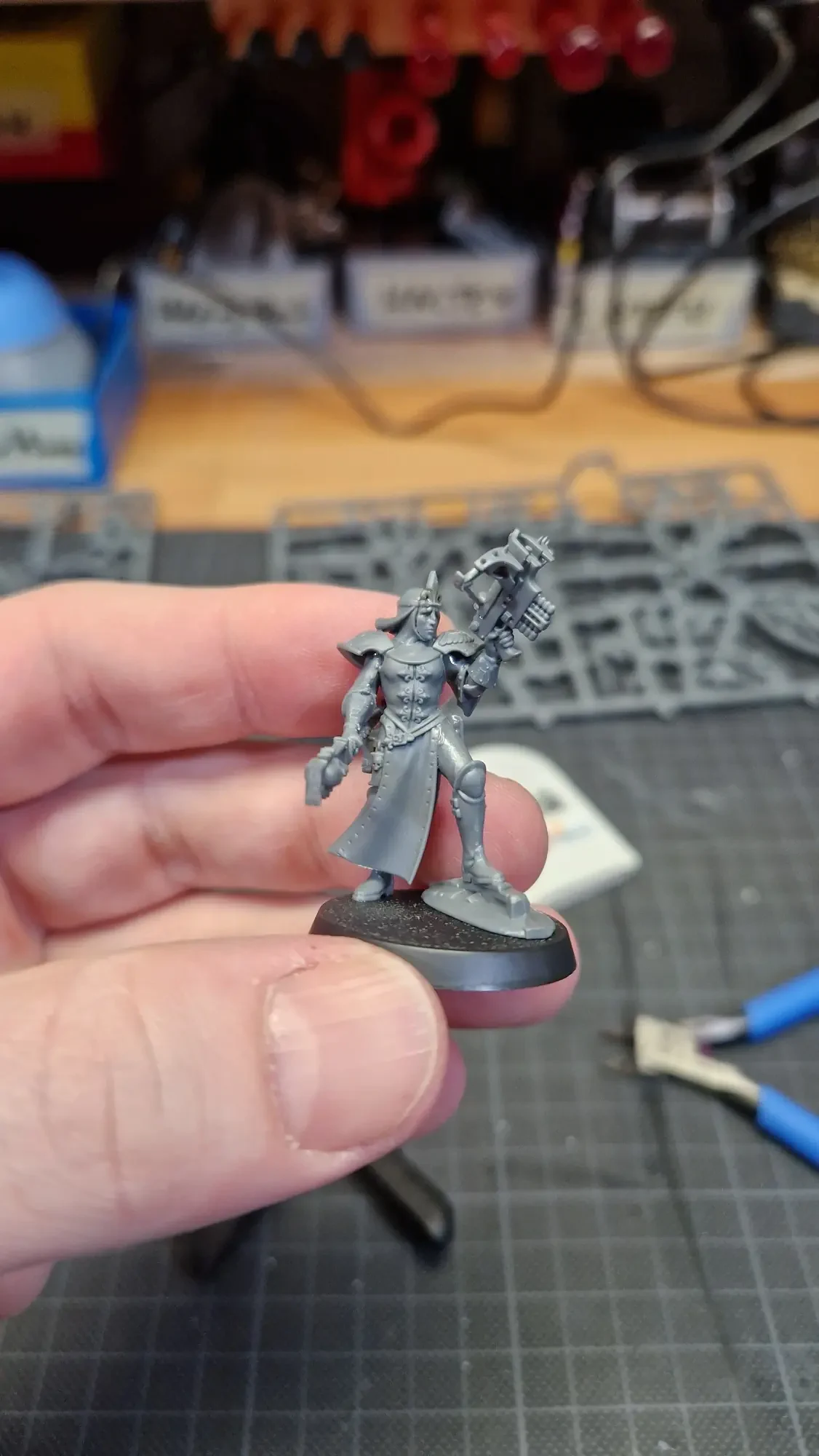 Um meinen “Pile of shame” zu bekämpfen, habe ich ganz hinten angefangen und die älteste Kill Team Box gewählt von welcher ich noch Minis zum bauen habe: Chalnath. In dieser Box waren zwei Teams und eines davon sind die “Adepta Sororitas Novitiates”. Adepta Sororitas aka “Töchter des Imperators” ist eine reine Frauen Organisation die meistens der Kirche untergeordnet sind. Diese Kill Team ist eine Anwärter Truppe für die Sororitas.