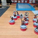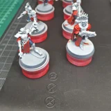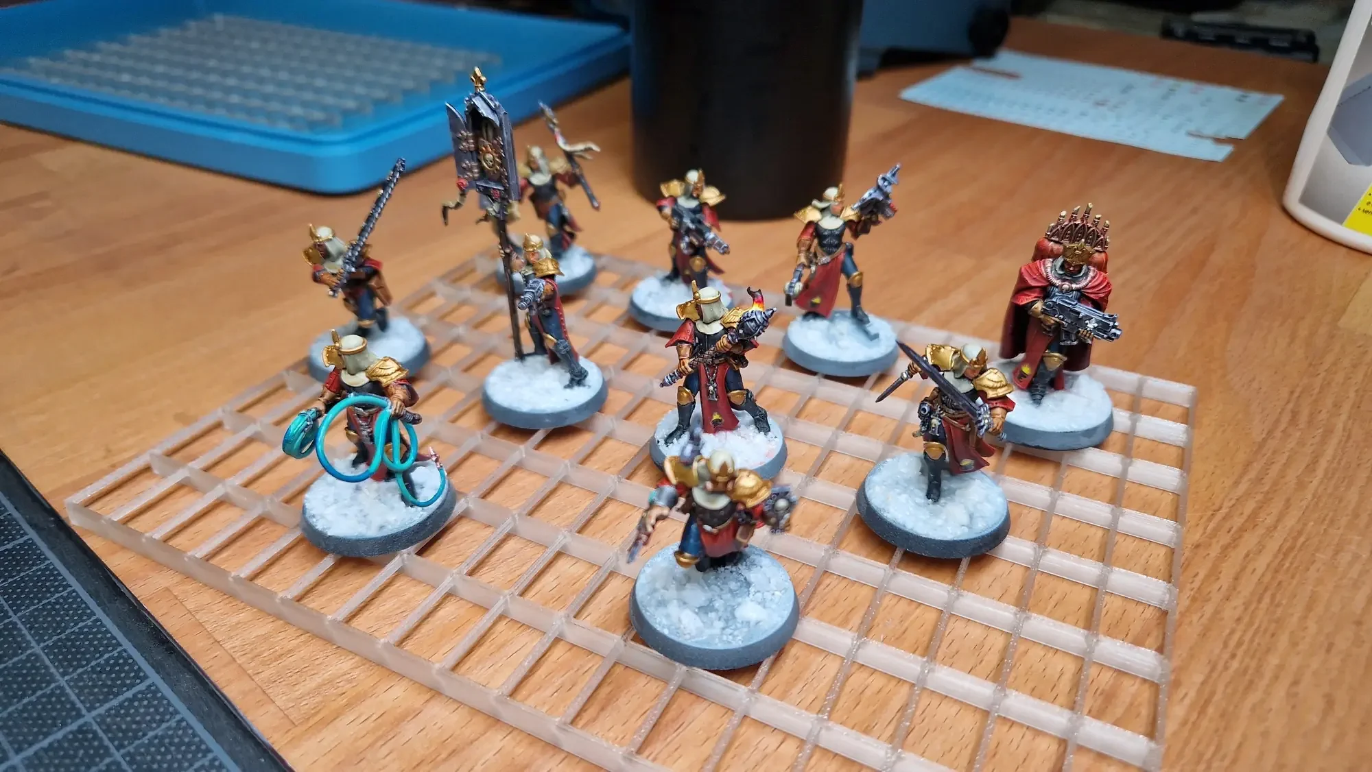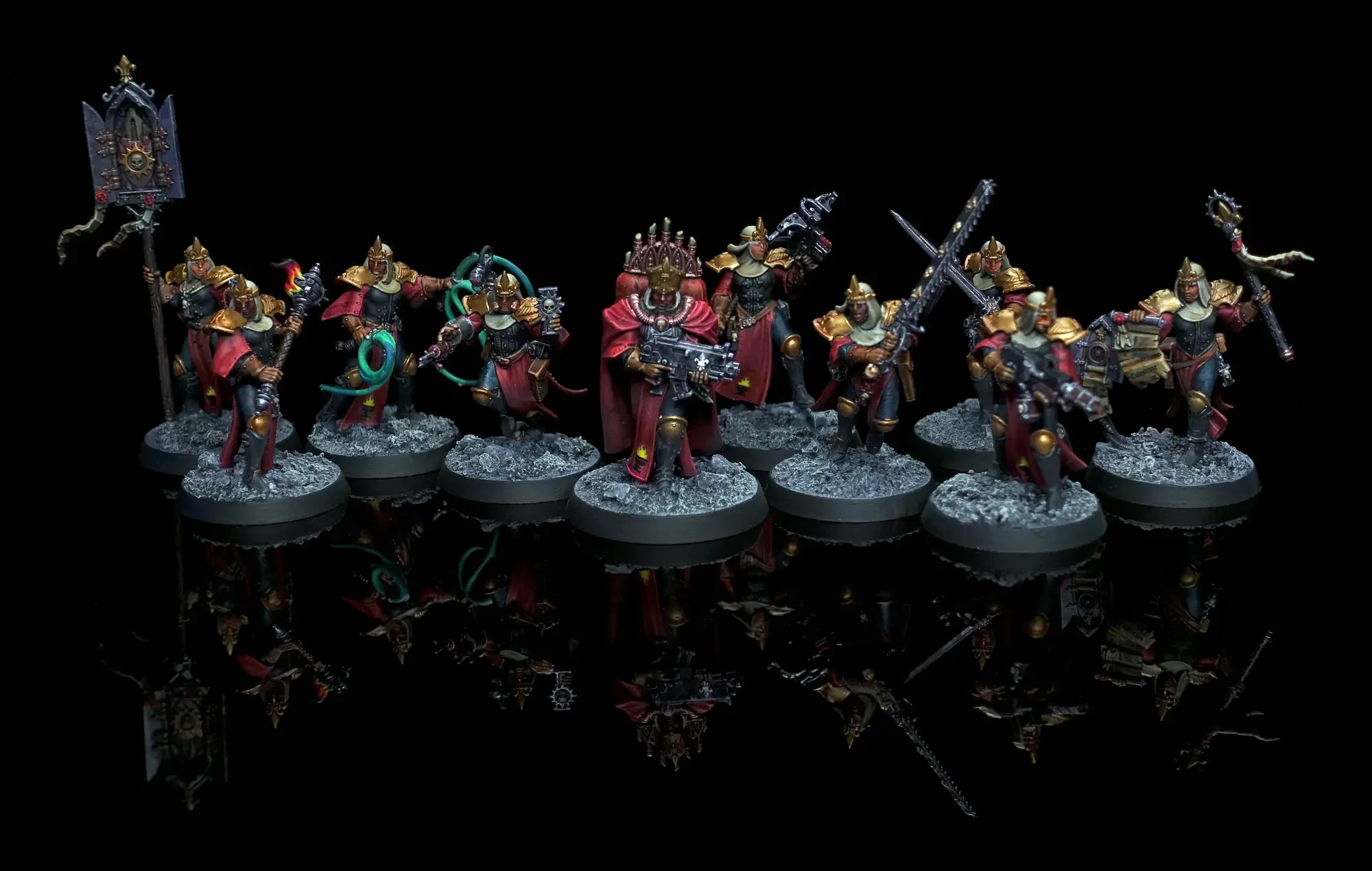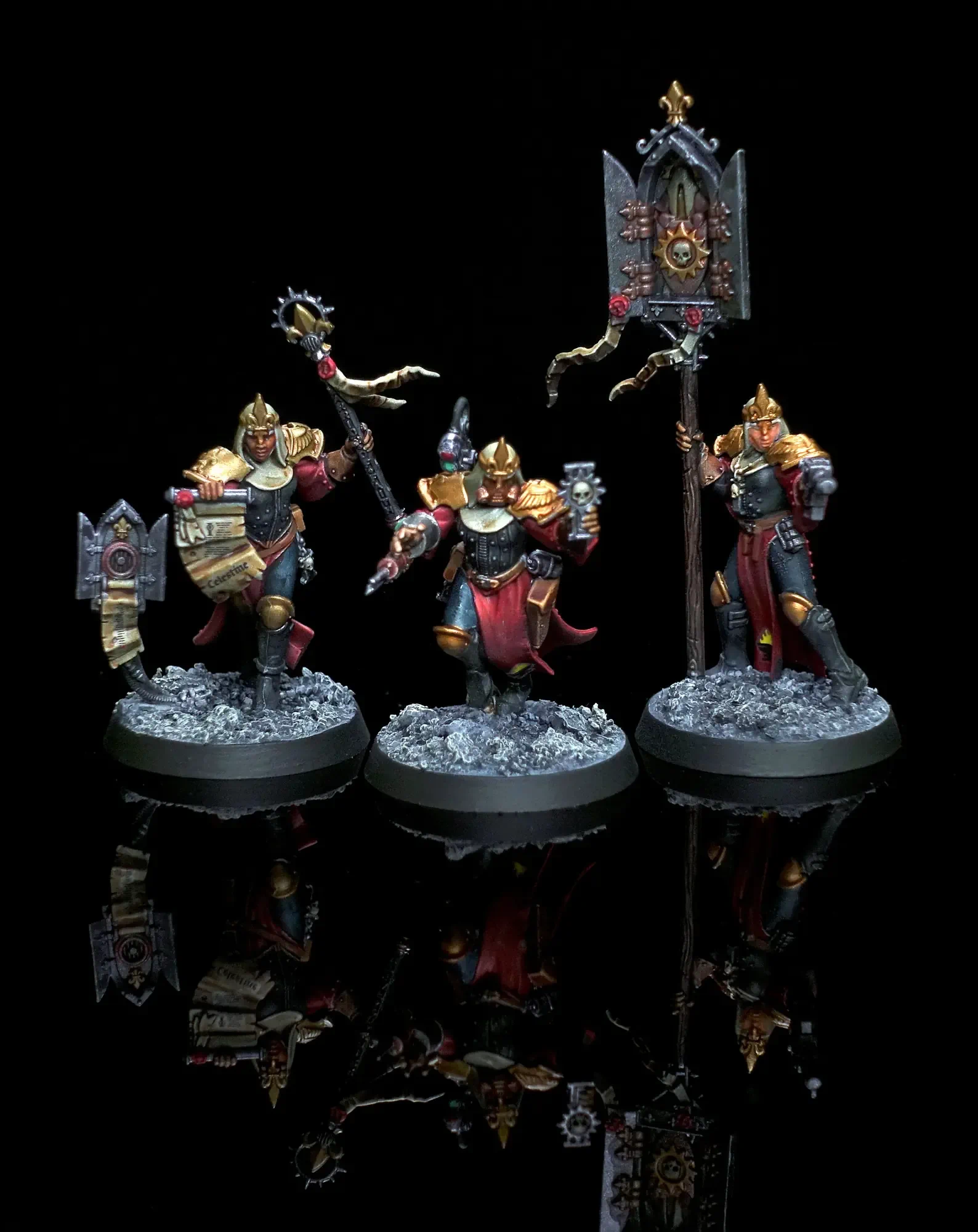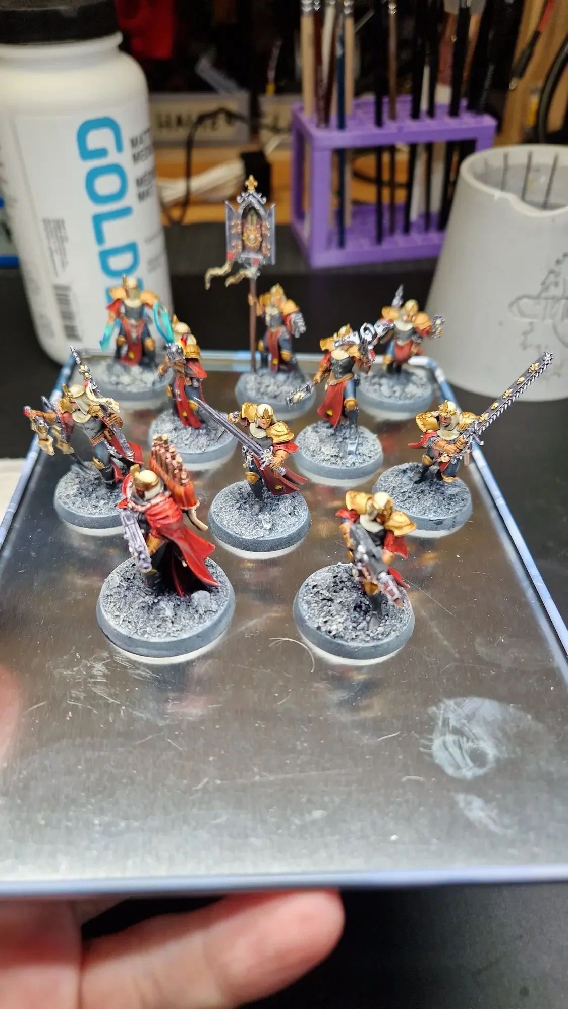 Als letztes habe ich noch die Decals matt versiegelt und die Ränder der Bases schwarz bemalt. Die Kampf-Nonnen sind Einsatzbereit.