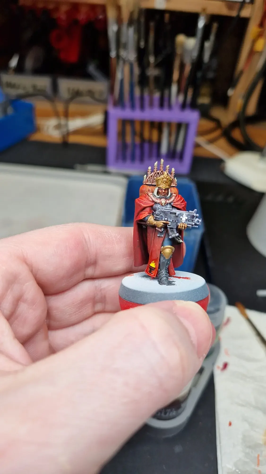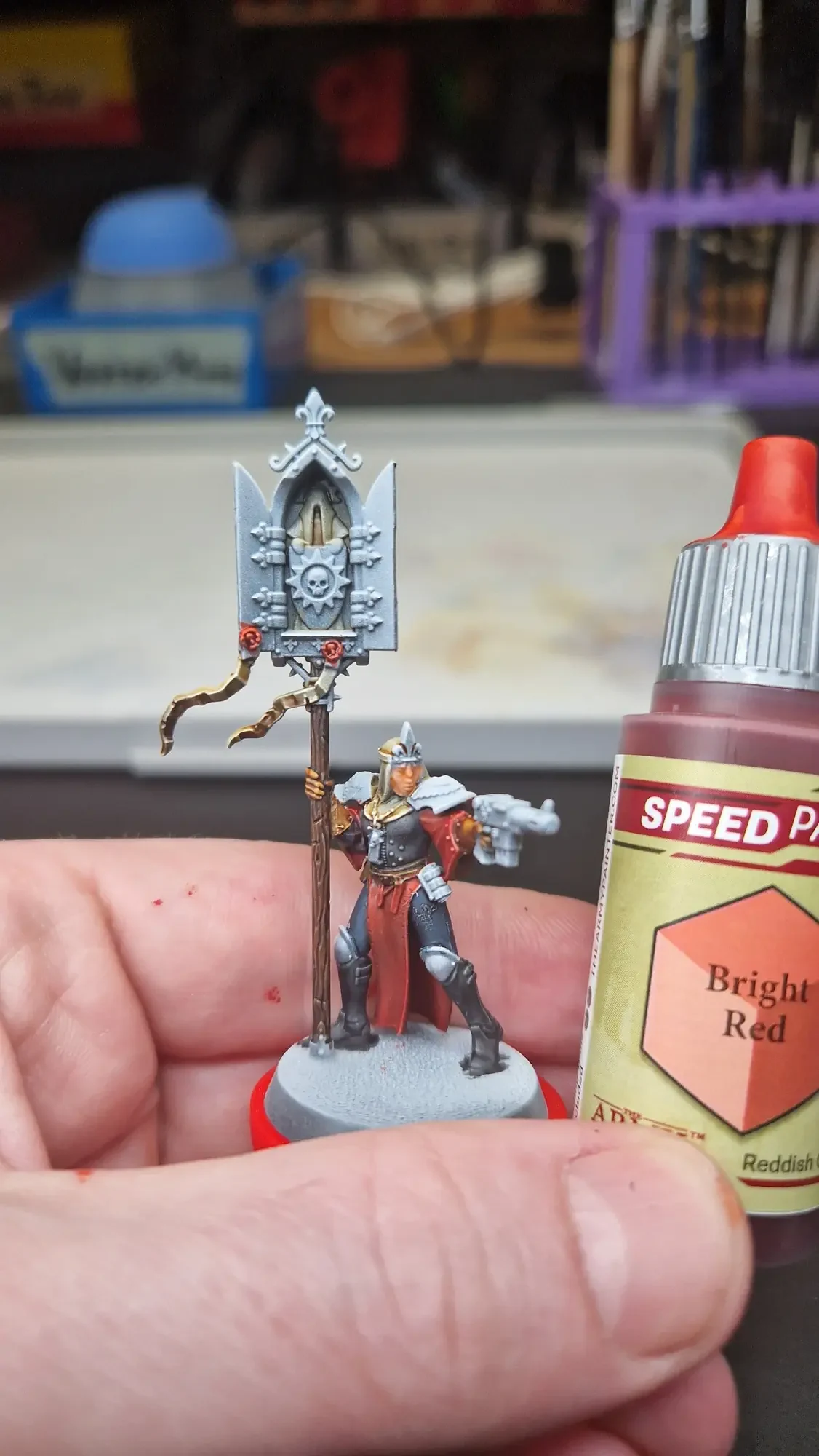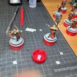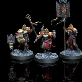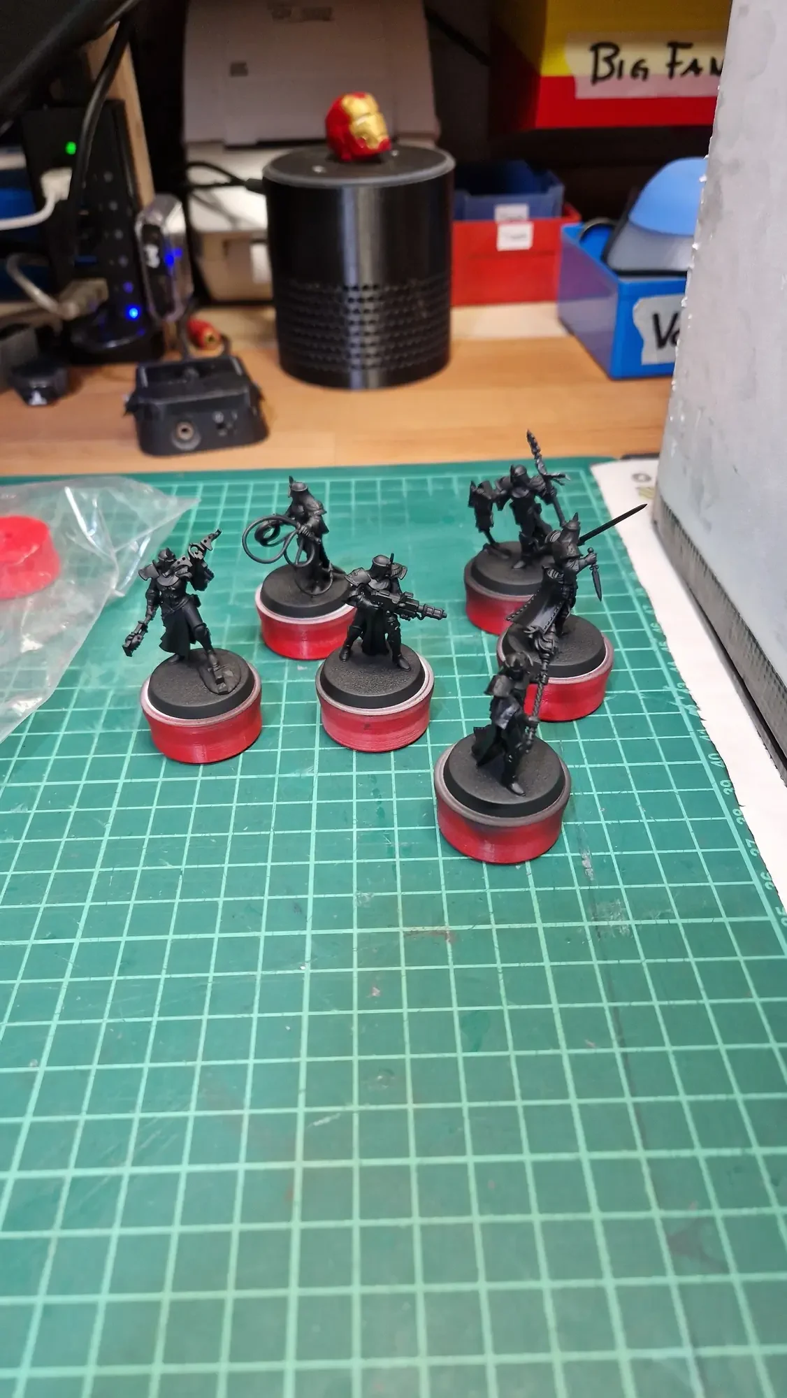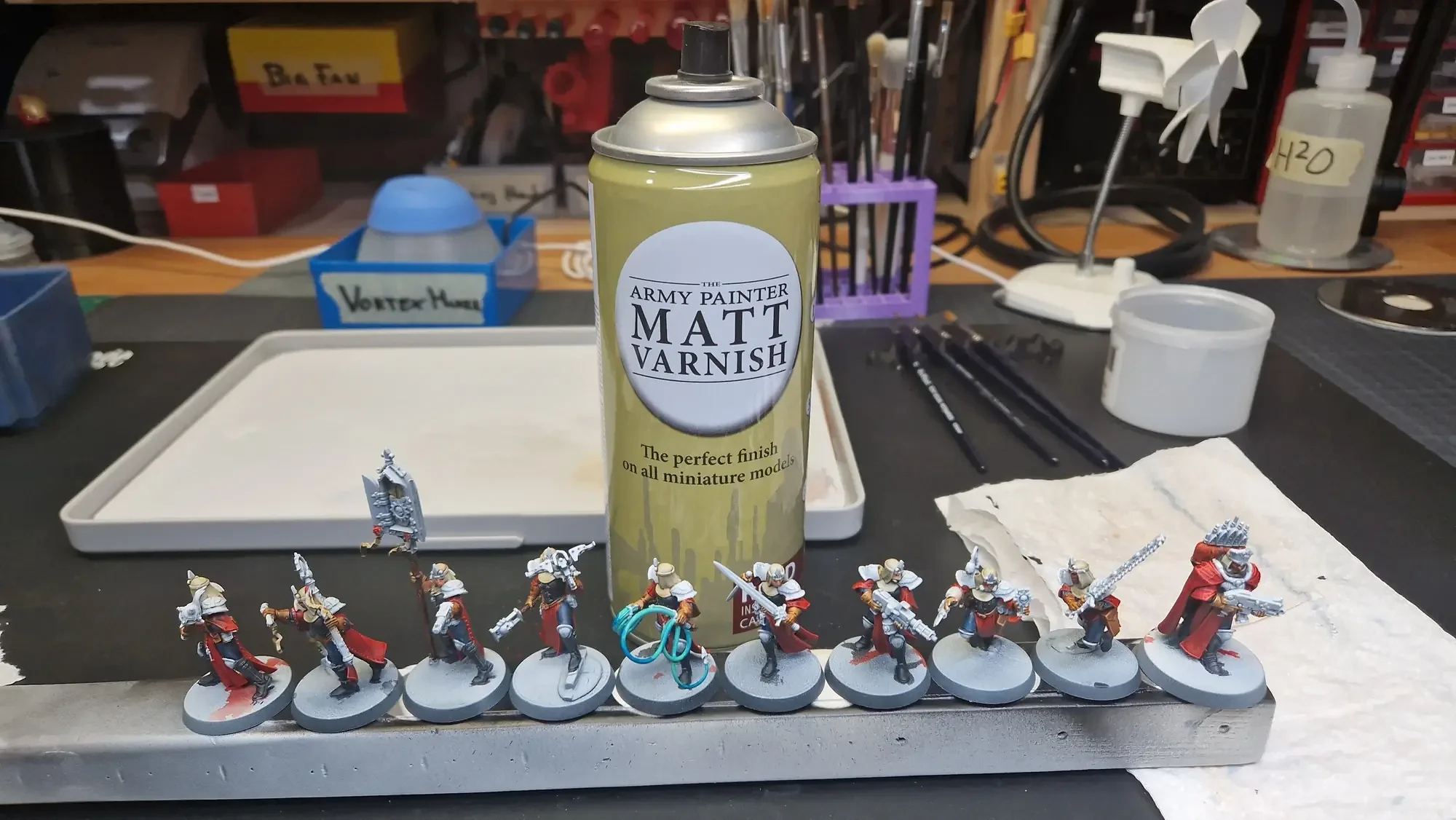 Als letztes habe ich noch die Decals matt versiegelt und die Ränder der Bases schwarz bemalt. Die Kampf-Nonnen sind Einsatzbereit.