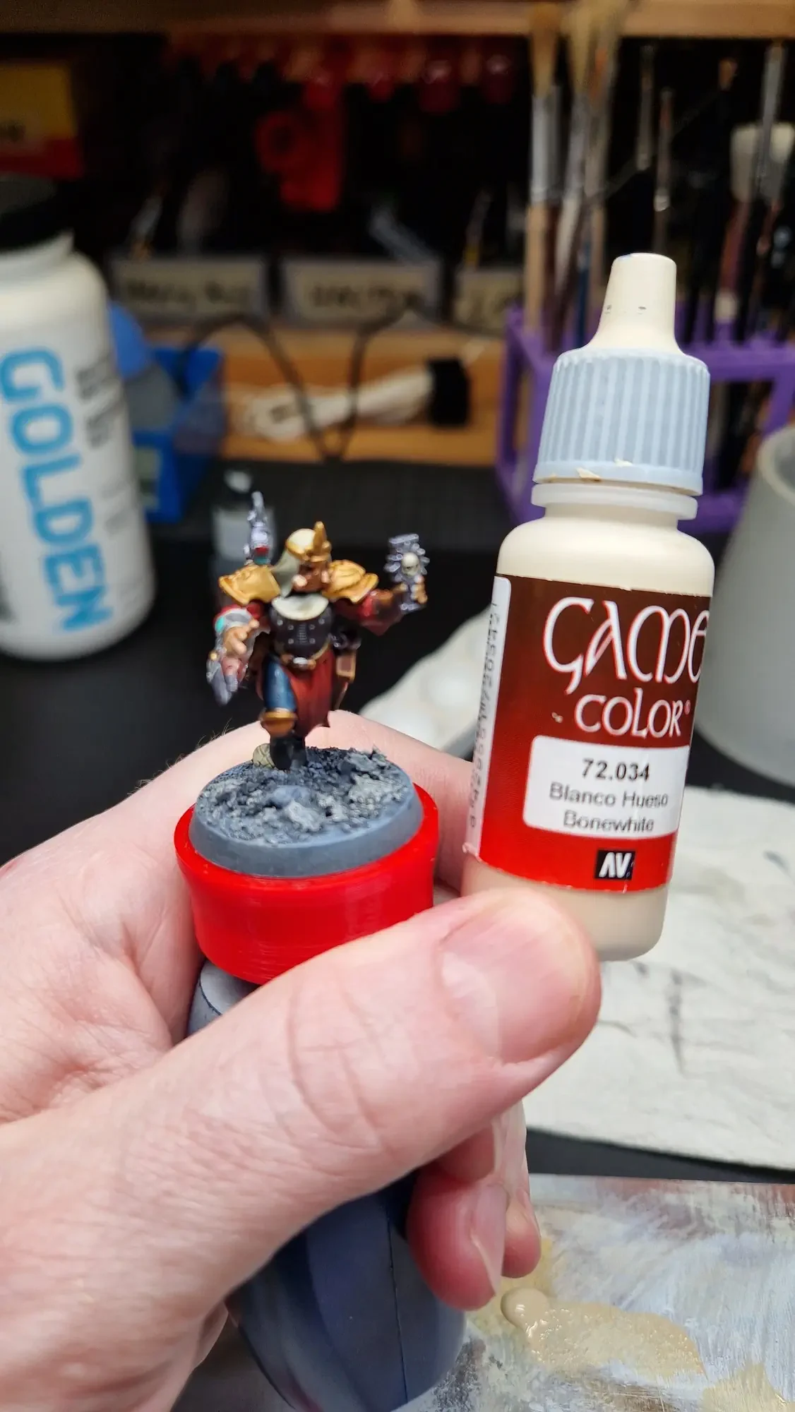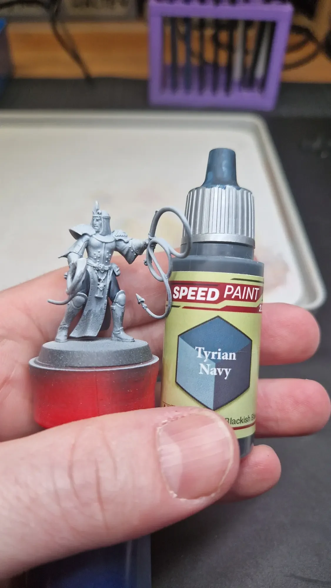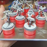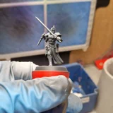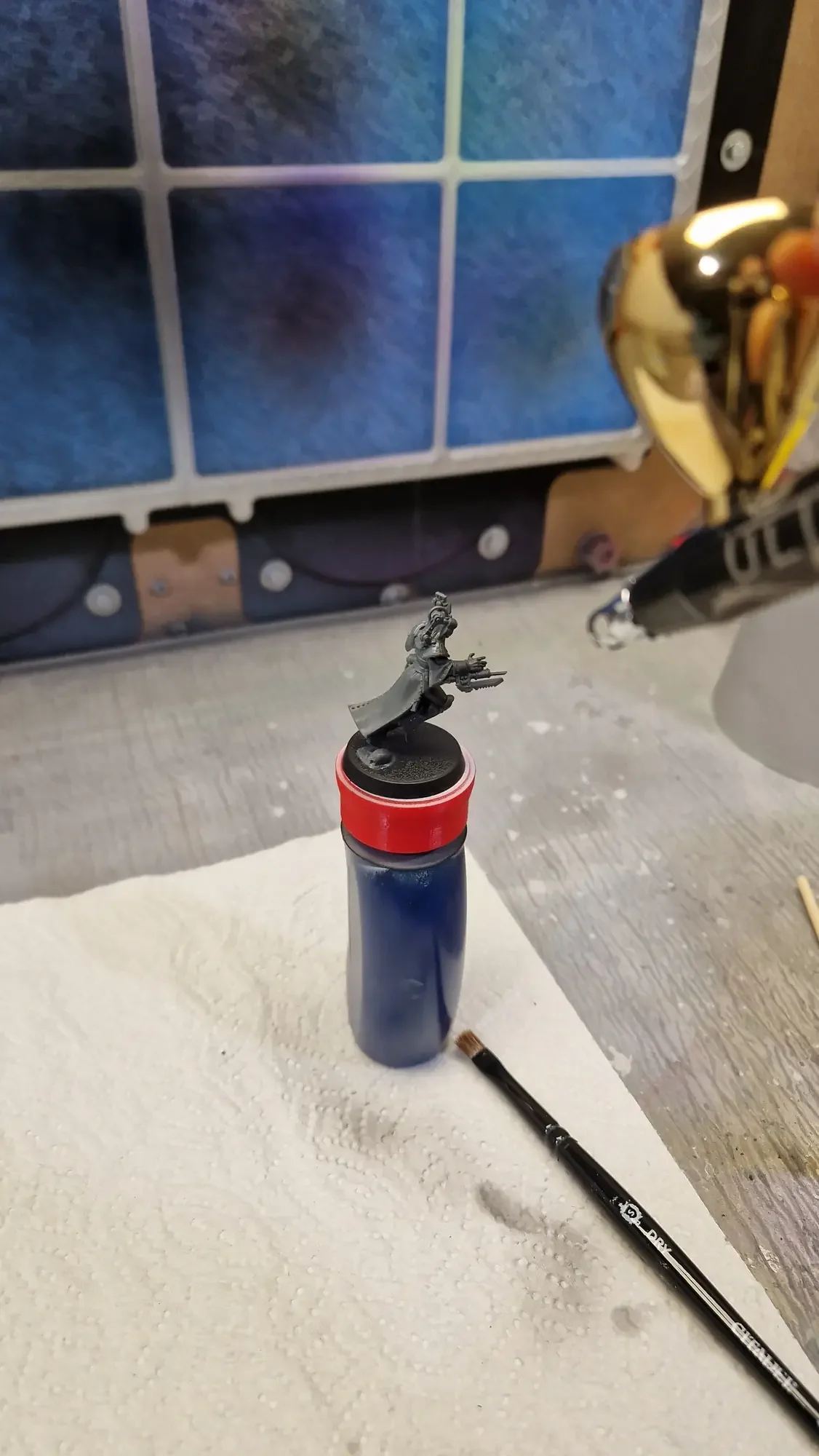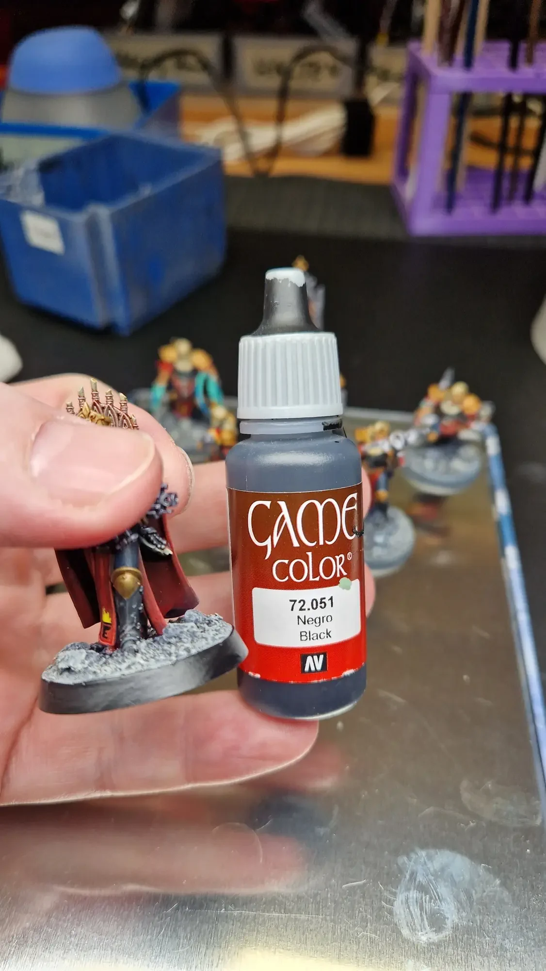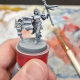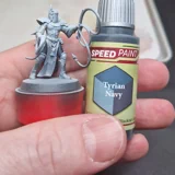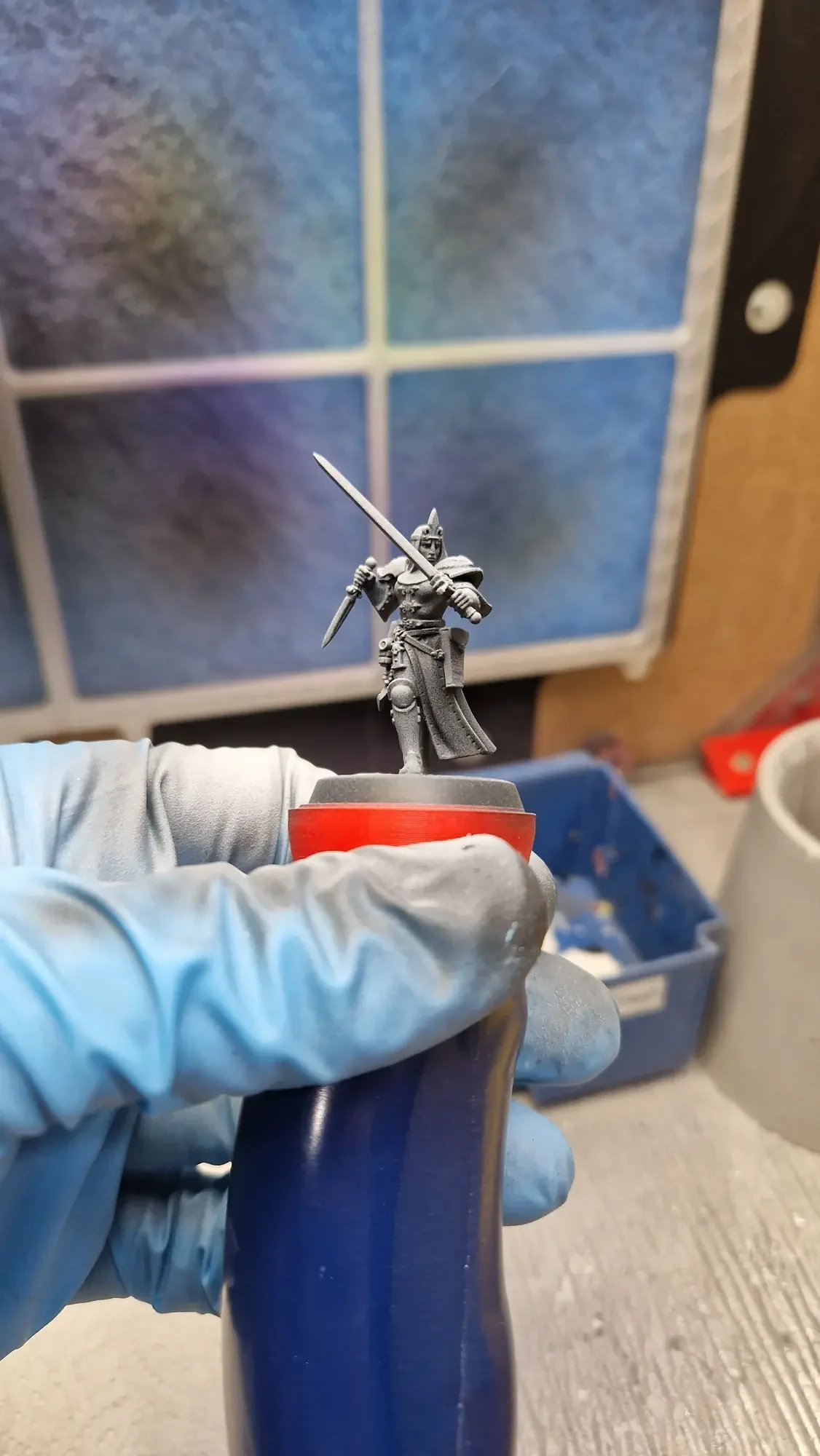Danach wurden die Minis in schwarz grundiert und anschliessend mit grau Zenithal gehighlightet. Anschliessen habe ich mit einem weissen Drybrush die Details und Kanten zusätzlich hervorgehoben. Danach habe ich alle minis mit hochglanz versiegelt, damit die Speed Paints gut fliessen können.