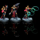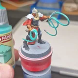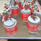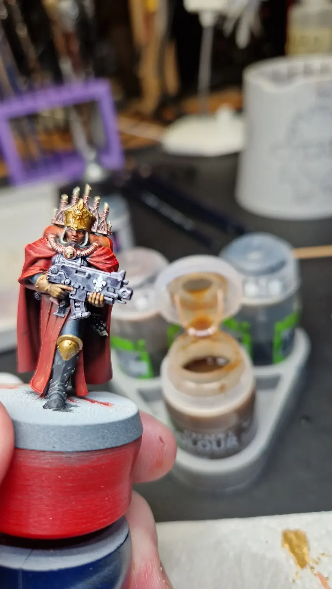 Danach habe ich alle möglichen Details der Figuren mit verschiedenen Metall-Farben bemalt. Des weiteren habe ich viele kleine Details korrigiert. Auch wenn dies auf den Fotos nicht ersichtlich ist, hat dies überraschend viel Zeit in Anspruch genommen. Als ich mit den Korrekturen zufrieden war, wurden viele Metallene Flächen mit Washes behandelt.