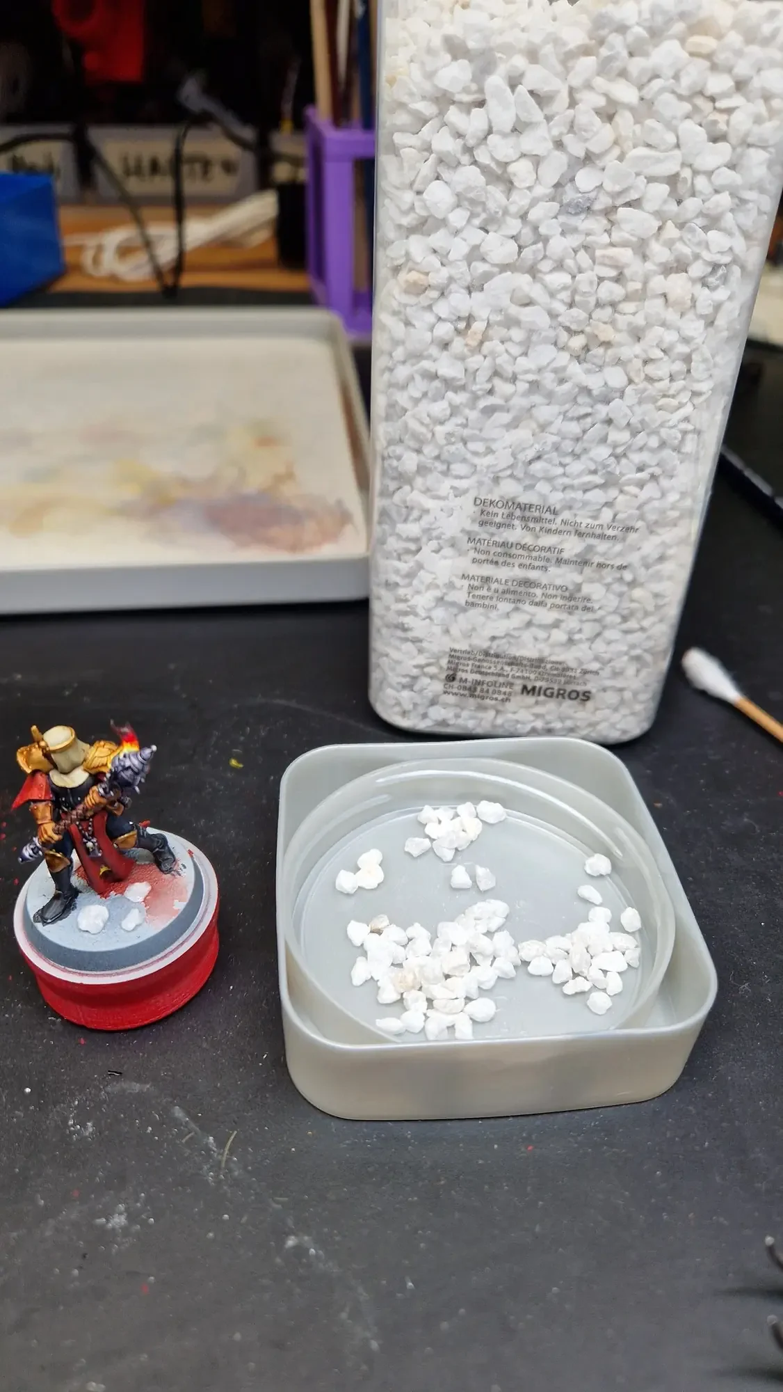 Diese Schwestern sind im Orden “Ebon Chalice” und das entsprechende Decal habe ich bei allen Figuren entsprechend angebracht. Zusätzlich habe ich verschieden Text-Decals an den Schriftrollen angebracht. Für die Bases habe ich mich für einfaches Geröll entschieden.