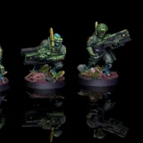 Die angewendete Technik diese Minis anschliessend mit Kontrast-Farben zu bemalen, ich verwende hier Speed Paints 2.0, wird auch “Slap Chop” genannt. Danach habe ich diverse kleinere Details bemalt und mit edge highlighting den paint job noch verfeinert.