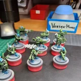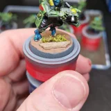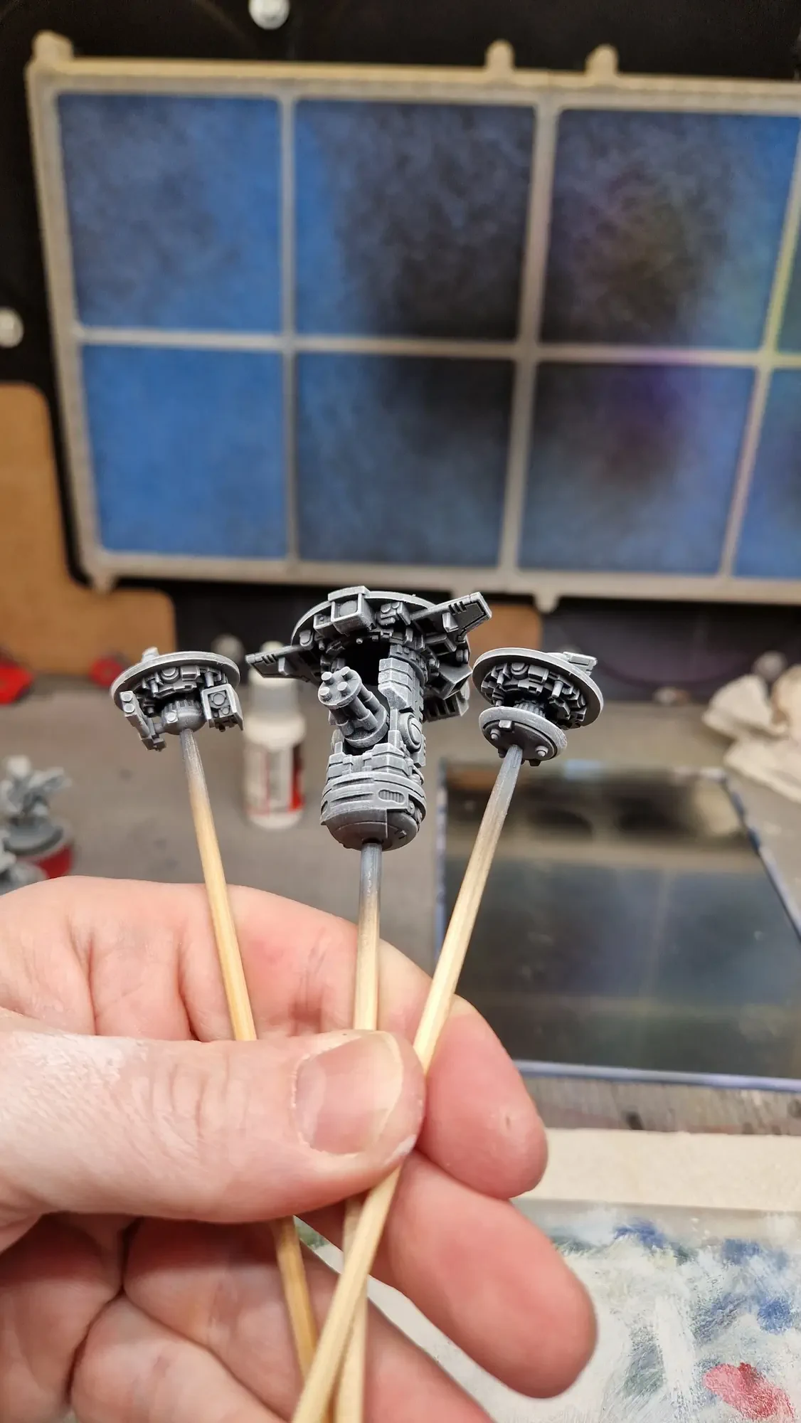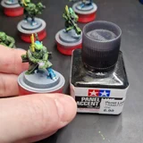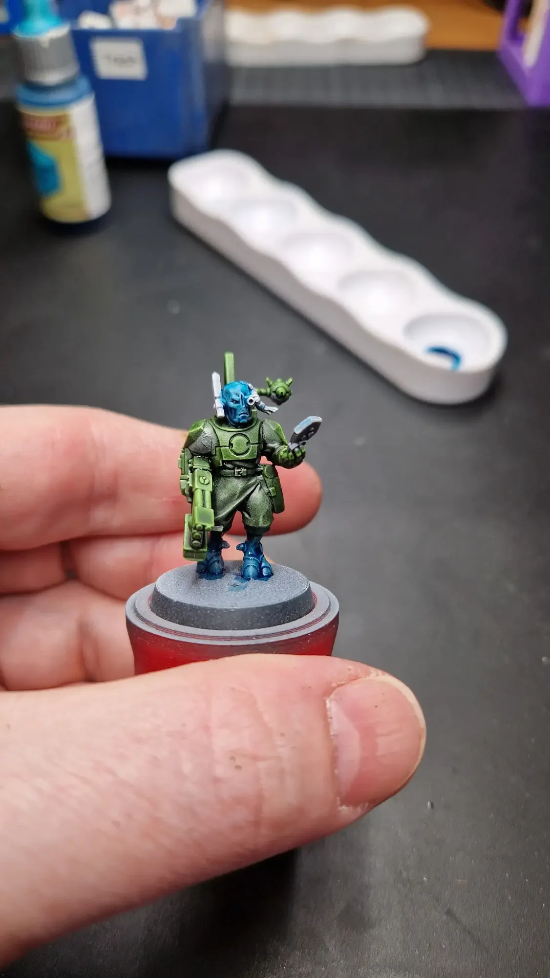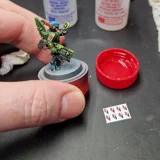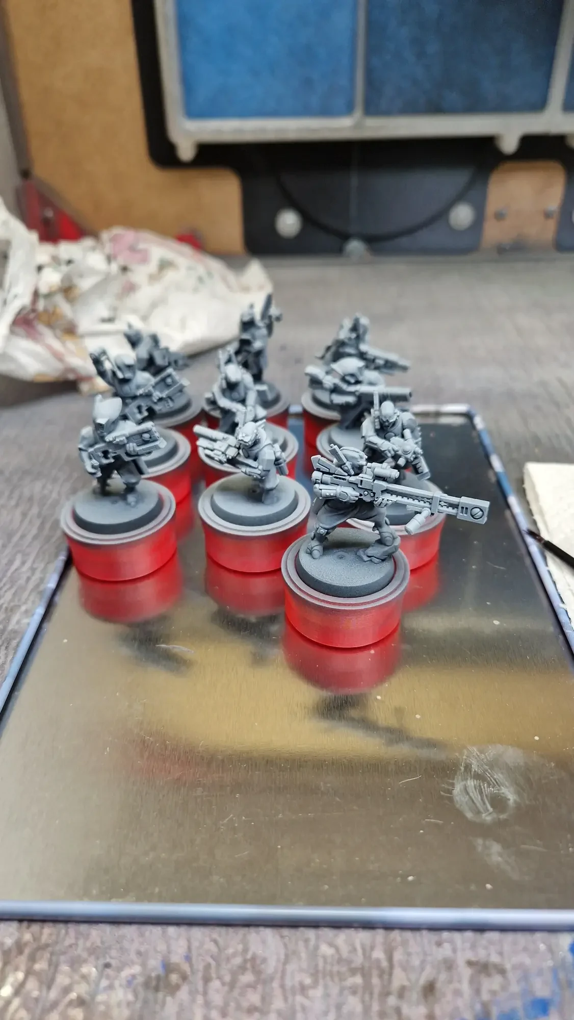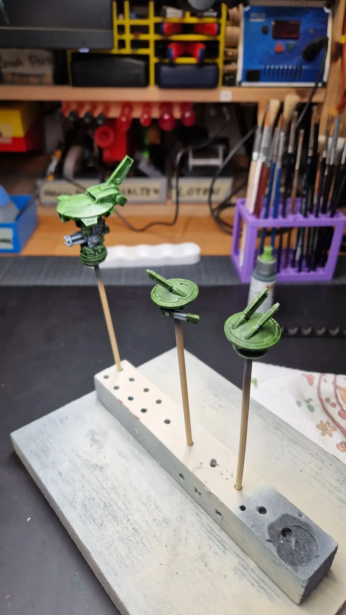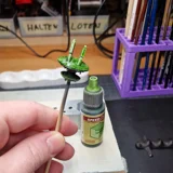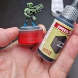 Zuerst Bilder des Build-Prozesses. Da die T’au fliegende Drohnen haben, müssen auch die durchsichtigen Stands magnetisiert werden. Und schon wieder habe ich den Tamiya Leim umgestossen … eine Flasche für 2 Kill Teams… 😒 Also habe ich einen Ständer designed und gedruckt. Praktischerweise passt auch der Tamiya Panel-Liner perfekt in den Halter.