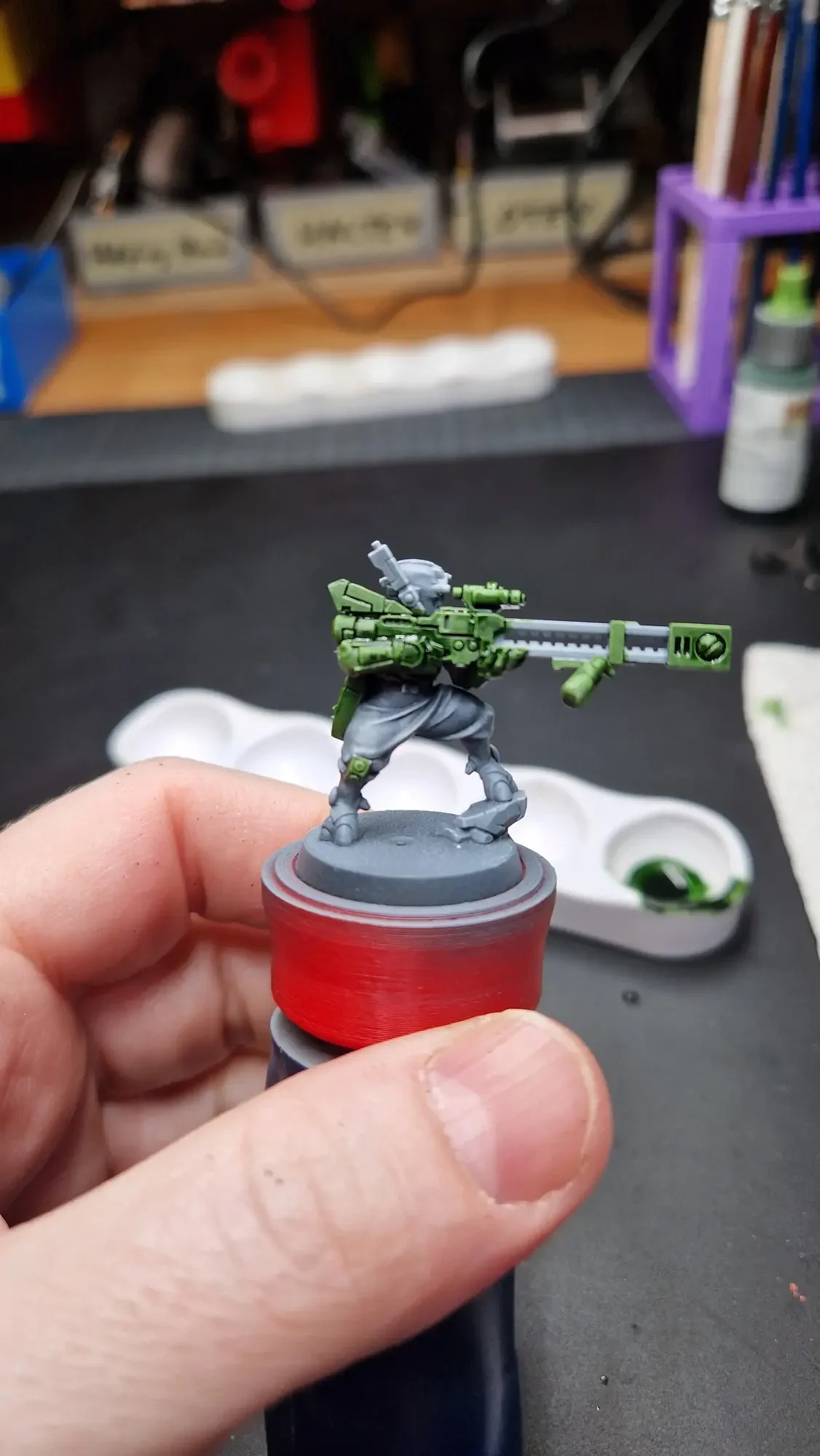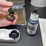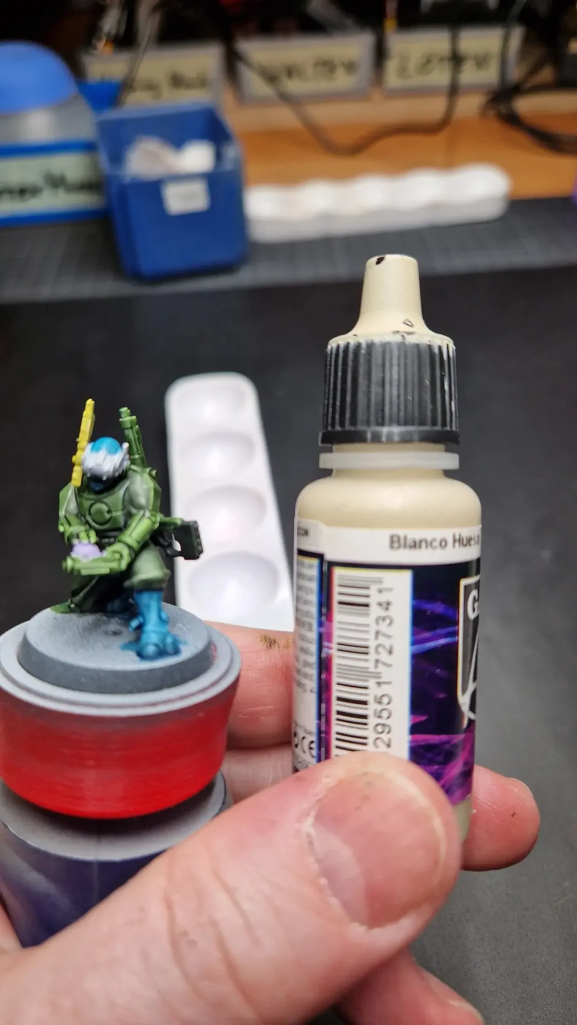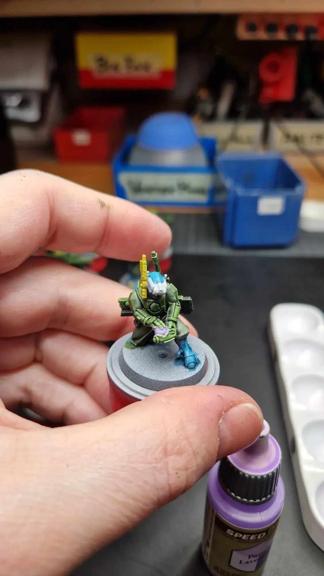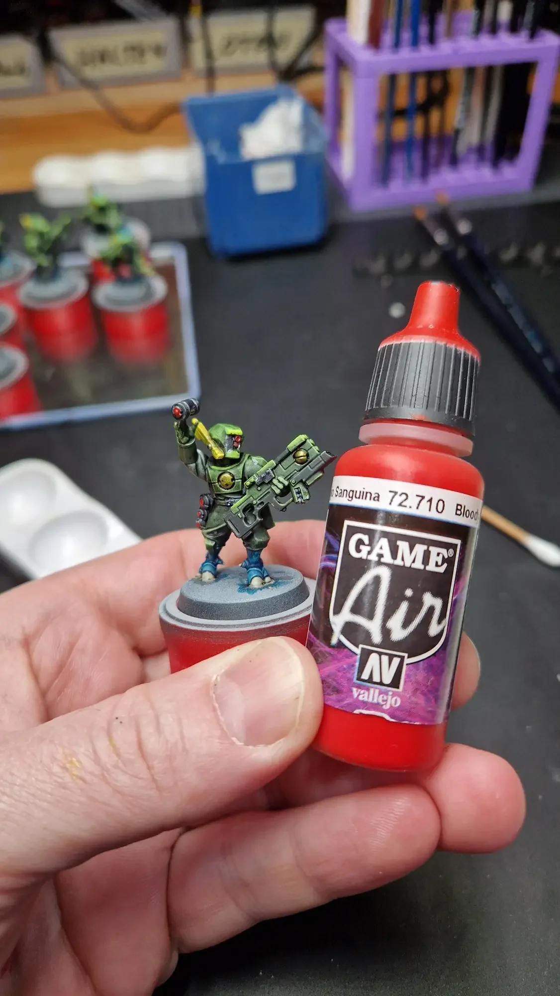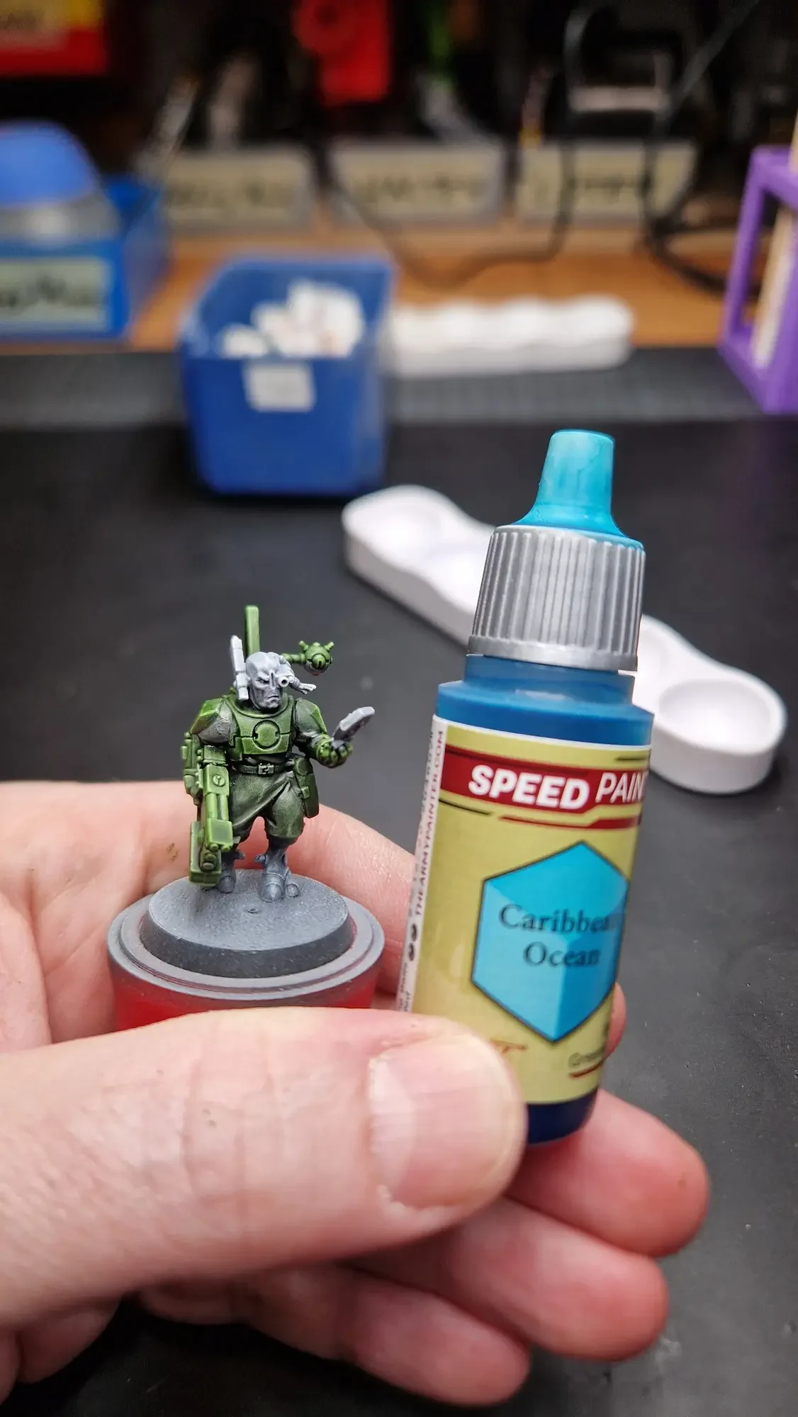 Zuerst Bilder des Build-Prozesses. Da die T’au fliegende Drohnen haben, müssen auch die durchsichtigen Stands magnetisiert werden. Und schon wieder habe ich den Tamiya Leim umgestossen … eine Flasche für 2 Kill Teams… 😒 Also habe ich einen Ständer designed und gedruckt. Praktischerweise passt auch der Tamiya Panel-Liner perfekt in den Halter.
