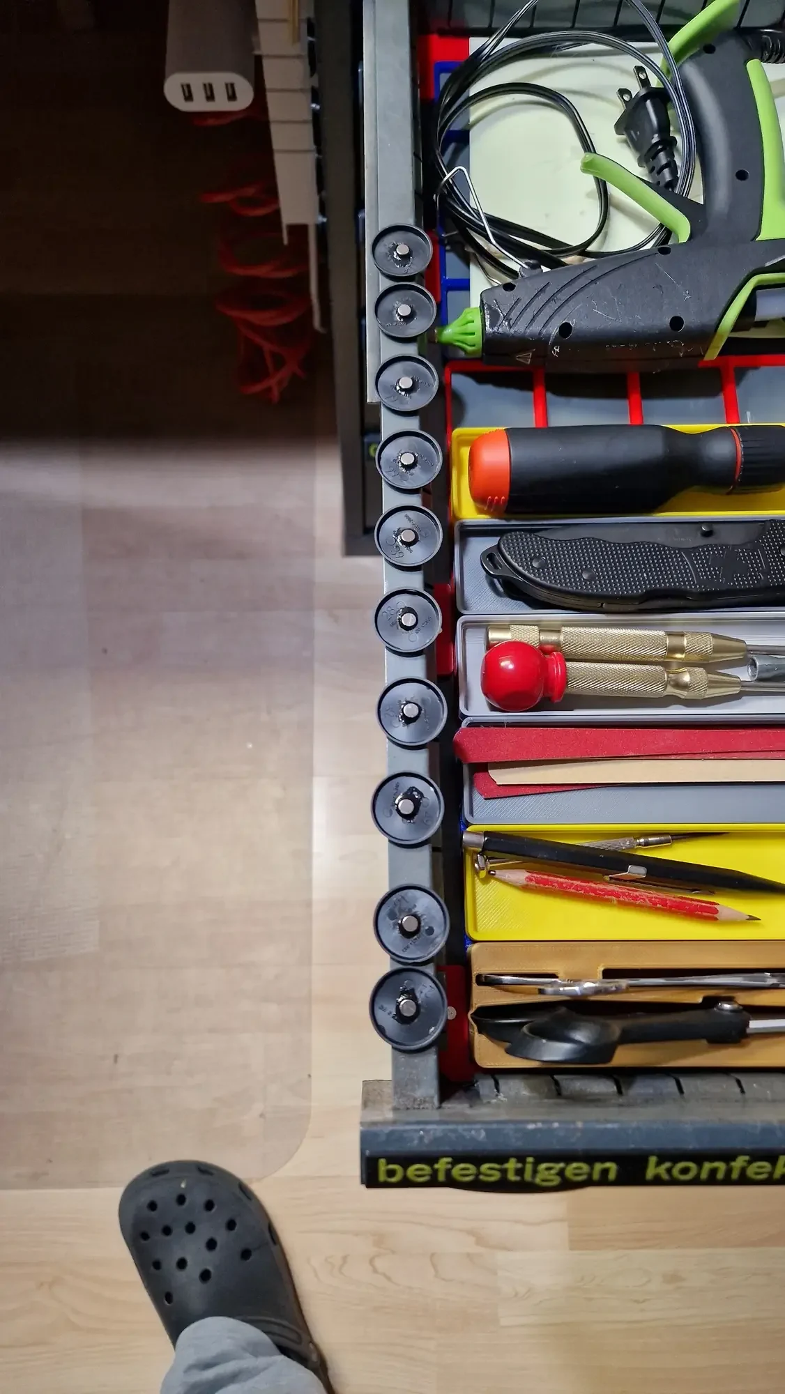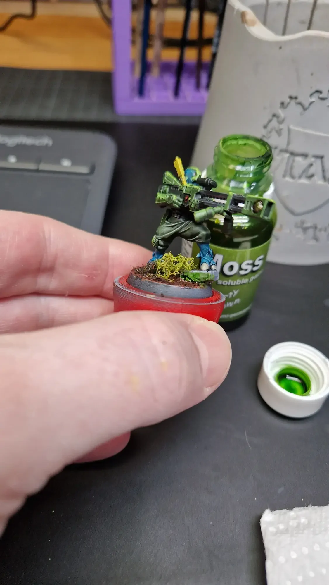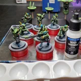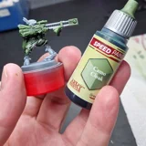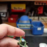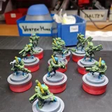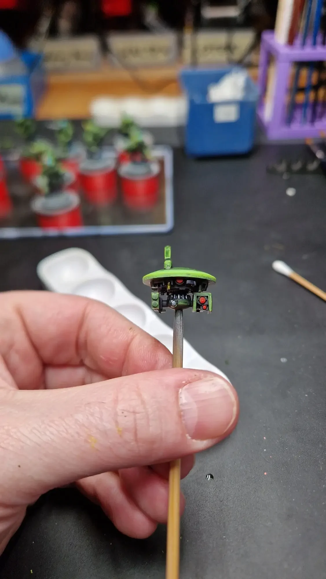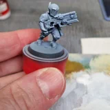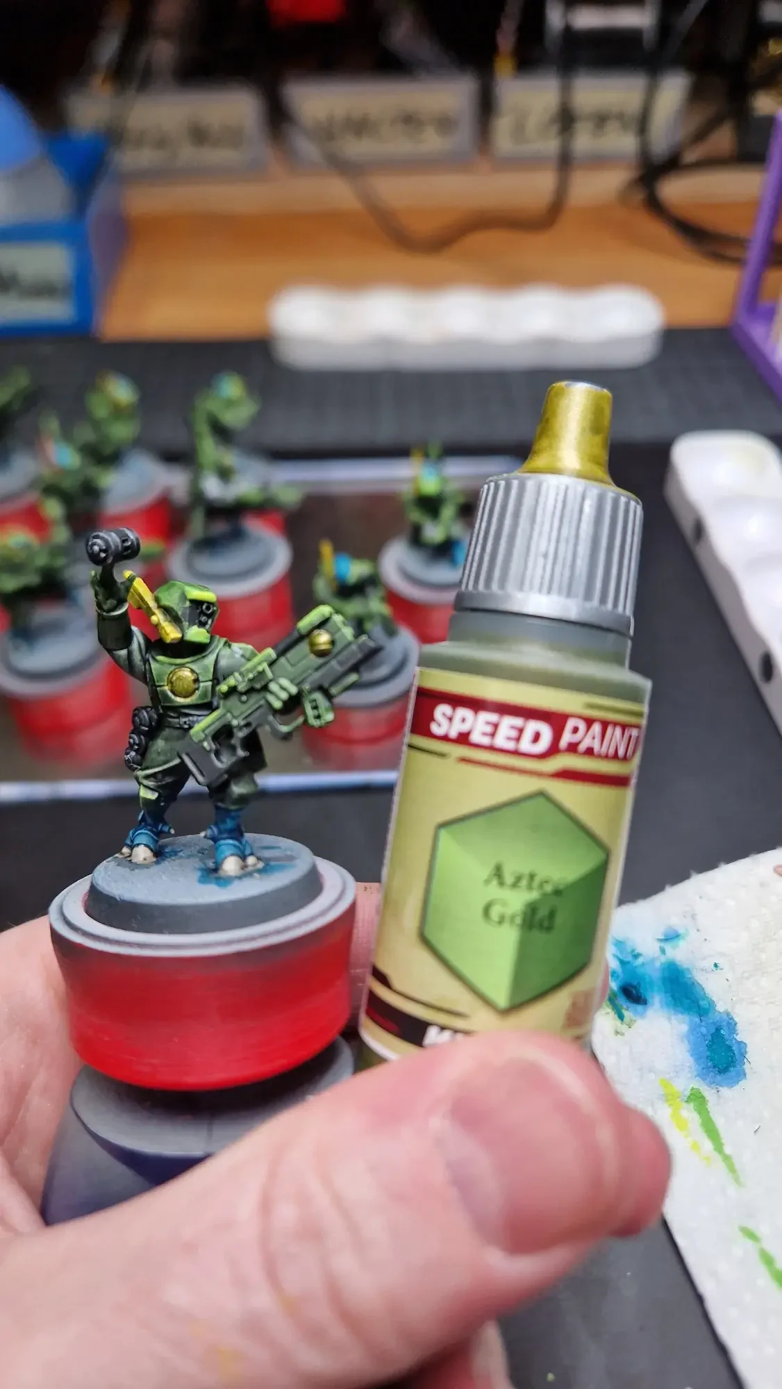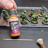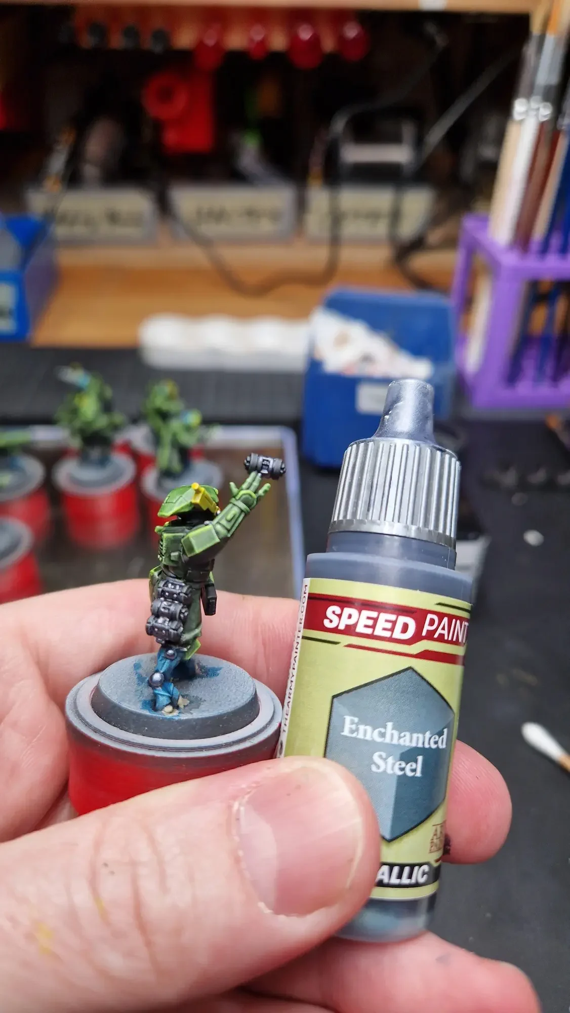Zuerst Bilder des Build-Prozesses. Da die T’au fliegende Drohnen haben, müssen auch die durchsichtigen Stands magnetisiert werden. Und schon wieder habe ich den Tamiya Leim umgestossen … eine Flasche für 2 Kill Teams… 😒 Also habe ich einen Ständer designed und gedruckt. Praktischerweise passt auch der Tamiya Panel-Liner perfekt in den Halter.