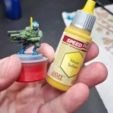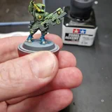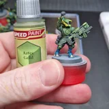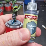 Die angewendete Technik diese Minis anschliessend mit Kontrast-Farben zu bemalen, ich verwende hier Speed Paints 2.0, wird auch “Slap Chop” genannt. Danach habe ich diverse kleinere Details bemalt und mit edge highlighting den paint job noch verfeinert.