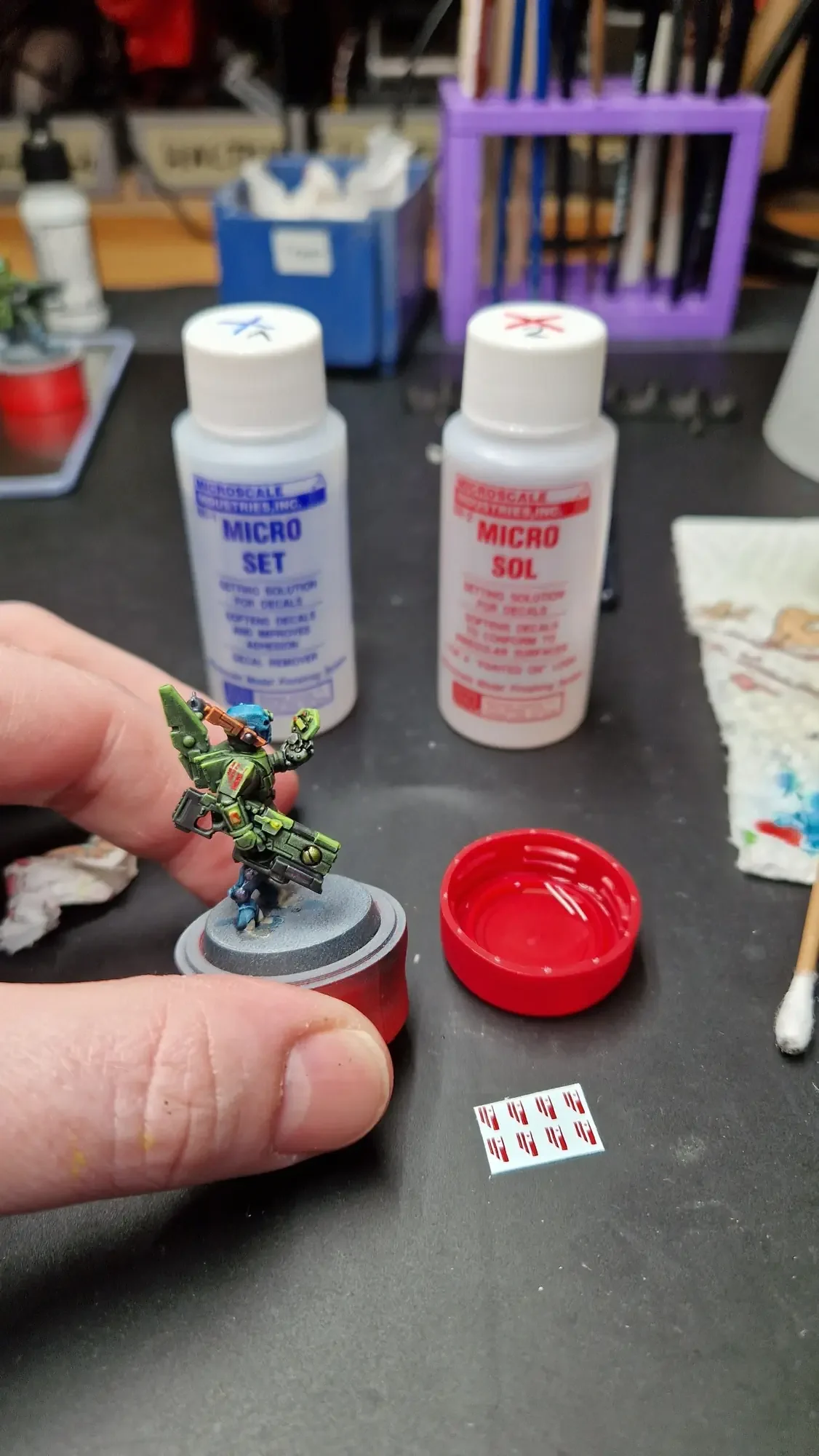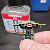 Danach habe ich alle möglichen Details der Figuren mit verschiedenen Metall-Farben und zusätzlich weitere kleine Details bemalt. Anschliessend habe ich die Decals angebracht und matt versiegelt. Um die Linsen ähnliche “Glas-Flächen” etwas glaubwürdiger zu machen, habe ich diese mit hochglanz versiegelt.