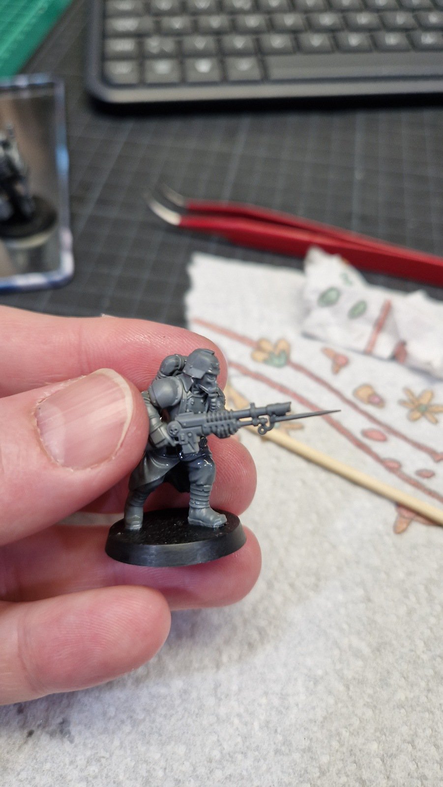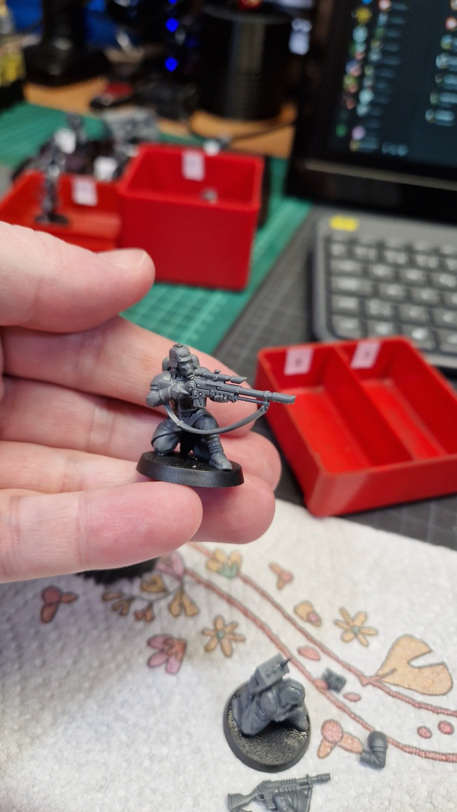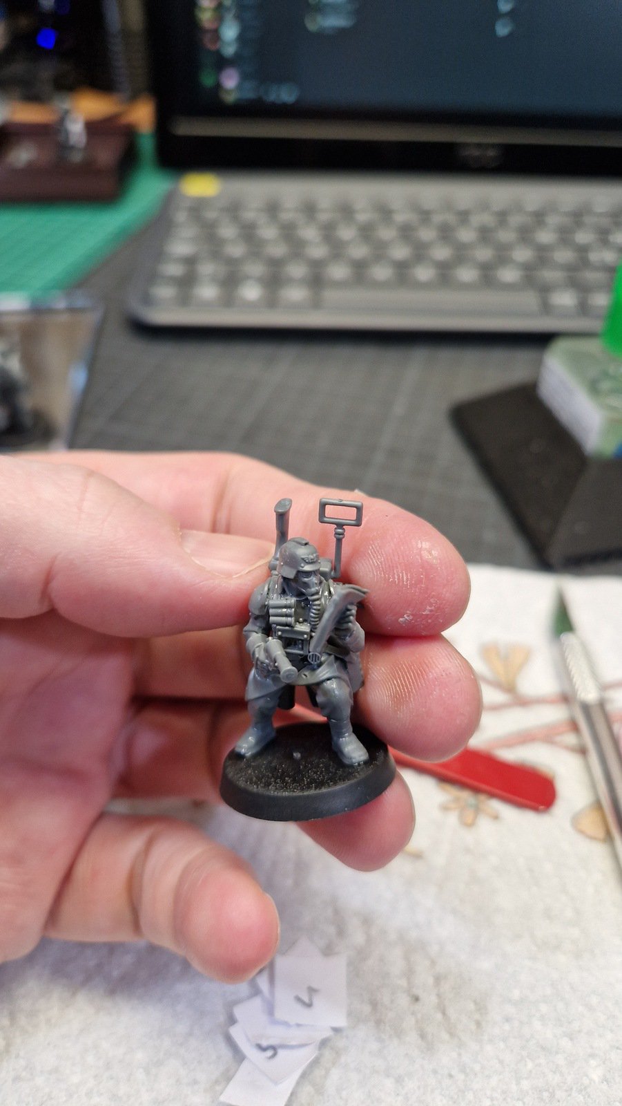 Dieses Kill Team wurde mit Hilfe dieses Reddit posts zusammengestellt um die möglichst beste Zusammenstellung zu erhalten. Dafür musste ich meinen ersten kleinen Kit-Bash durchführen. Das heisst Teile zusammenfügen welche eigentlich nicht zusammen Passen und die dadurch entstehenden Löcher und Spalten kaschieren.