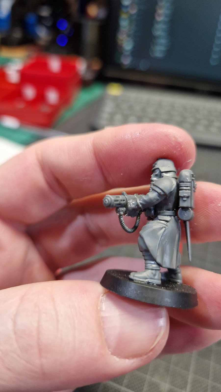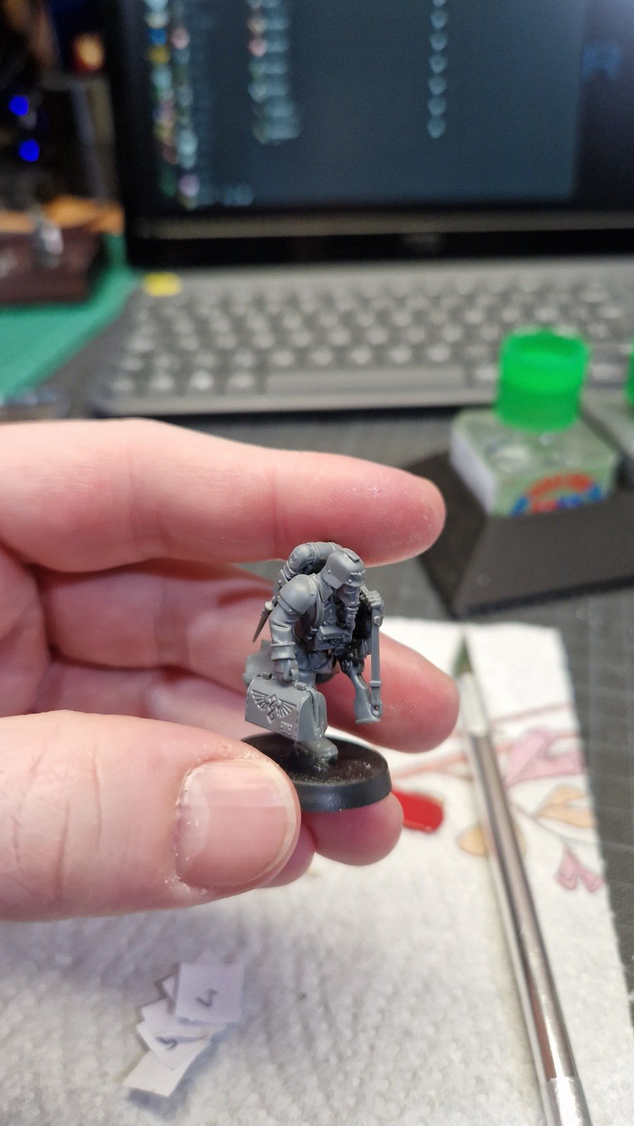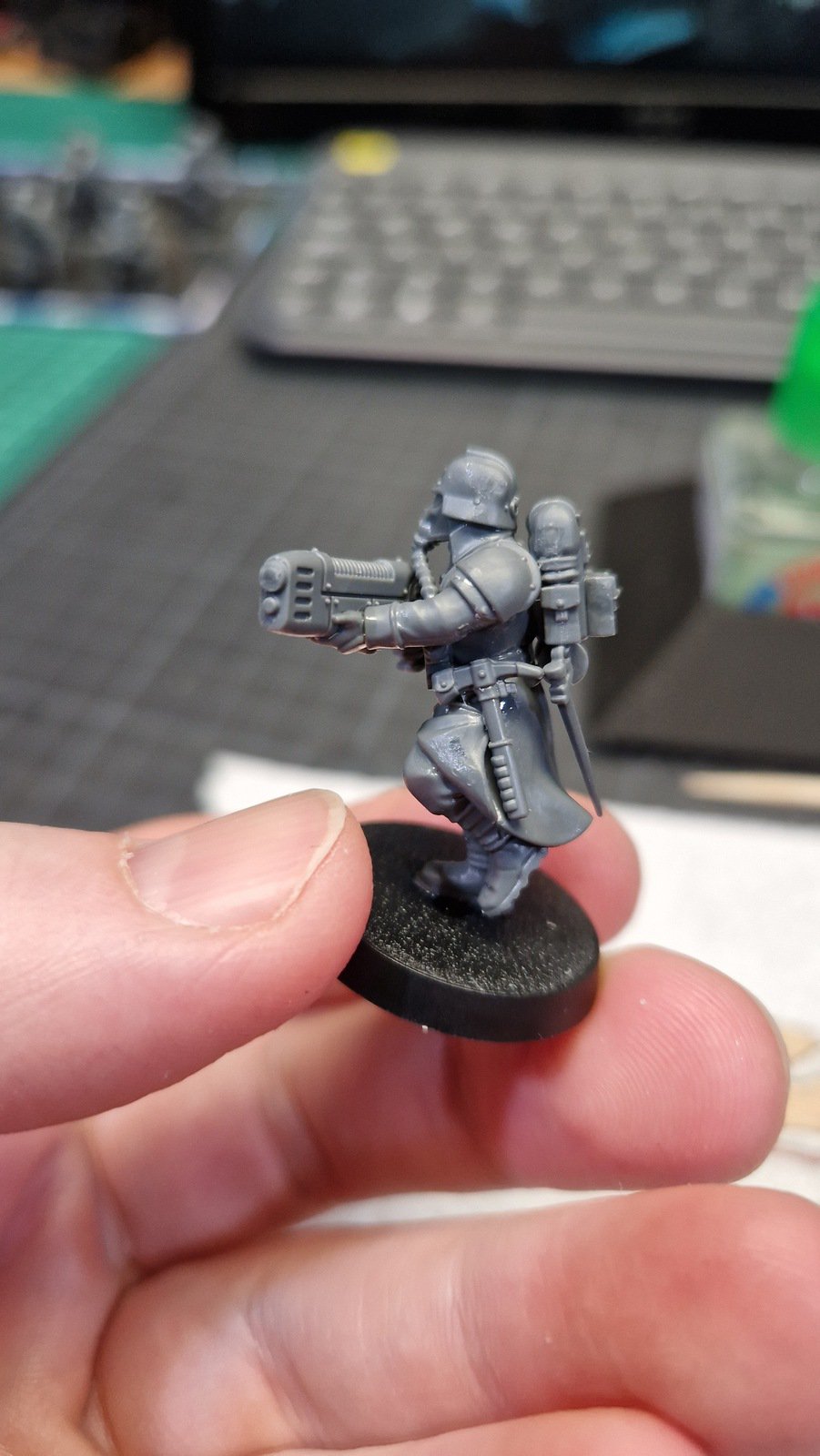 Dieses Kill Team wurde mit Hilfe dieses Reddit posts zusammengestellt um die möglichst beste Zusammenstellung zu erhalten. Dafür musste ich meinen ersten kleinen Kit-Bash durchführen. Das heisst Teile zusammenfügen welche eigentlich nicht zusammen Passen und die dadurch entstehenden Löcher und Spalten kaschieren.