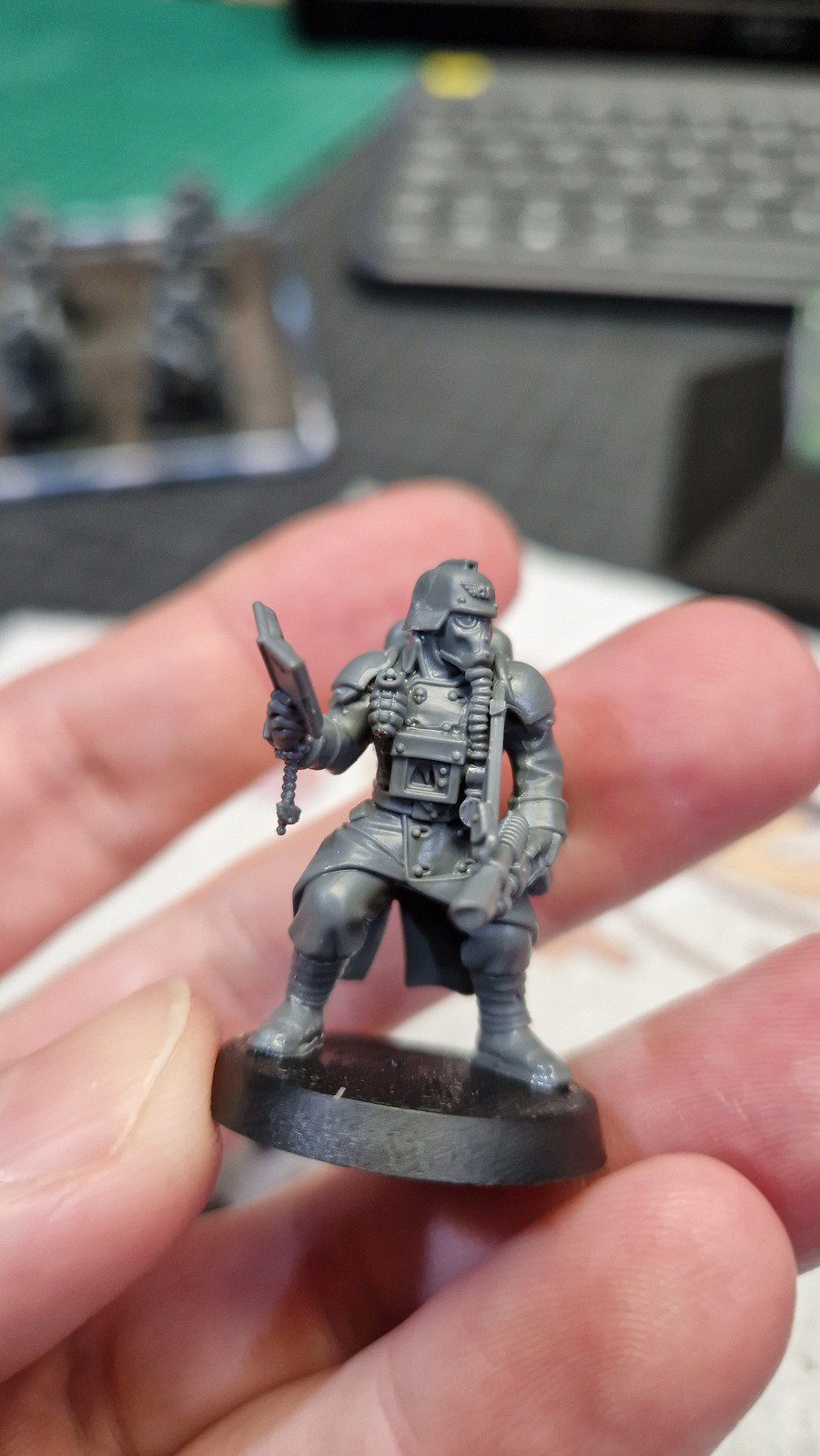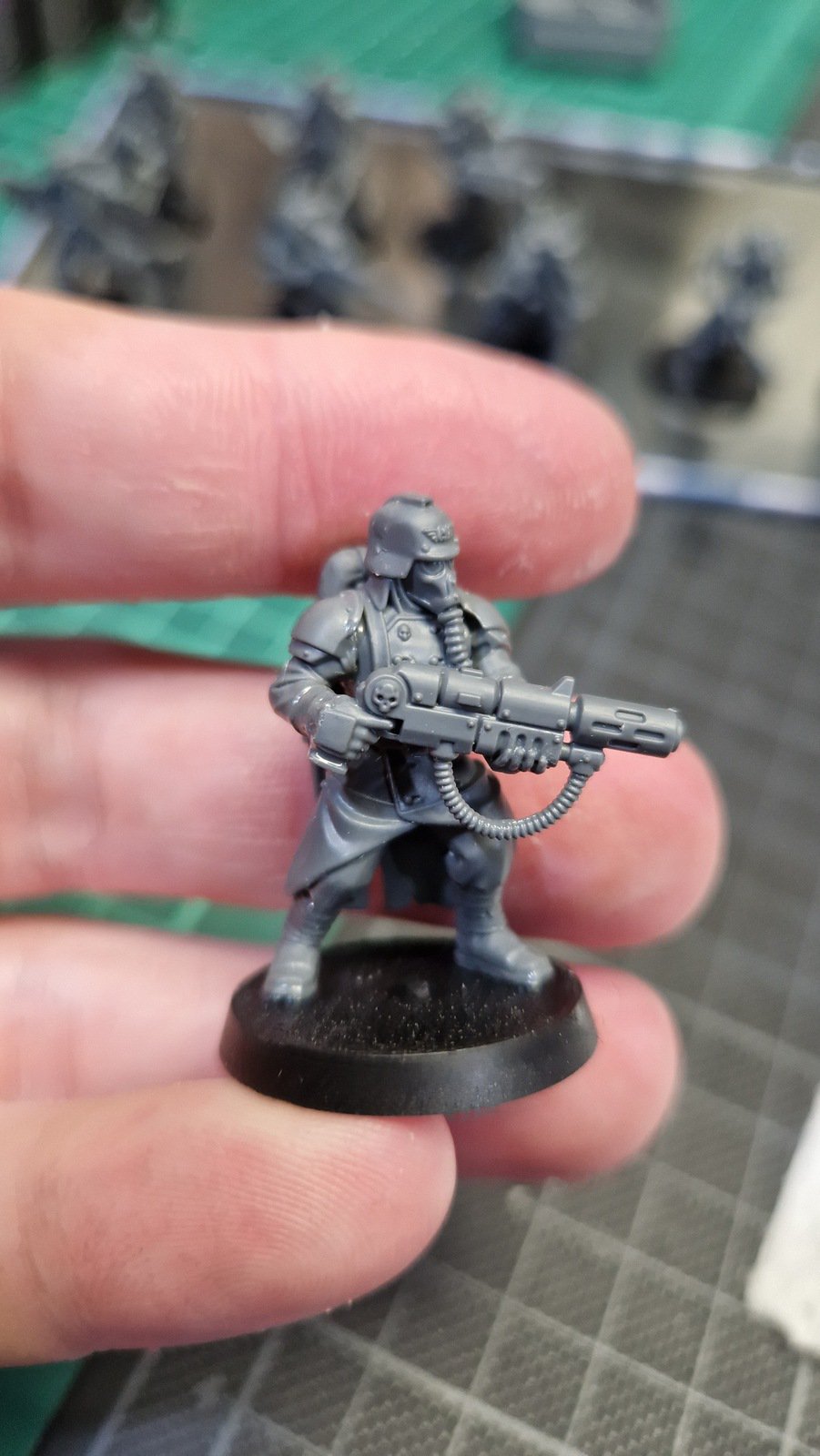 Der nächste Schritt im Kampf gegen meinen “Pile of shame” ist das “Veteran Guardsmen” Kill Team. Diese berühmt berüchtigten Krieger sind vom “Death Korps of Krieg” und erinnern im Stil an Soldaten aus der Ära des 2. Weltkrieges. Sie waren in der Box Octarius, zusammen mit den Ork Kommandos welche ich aber bereits bemalt habe.