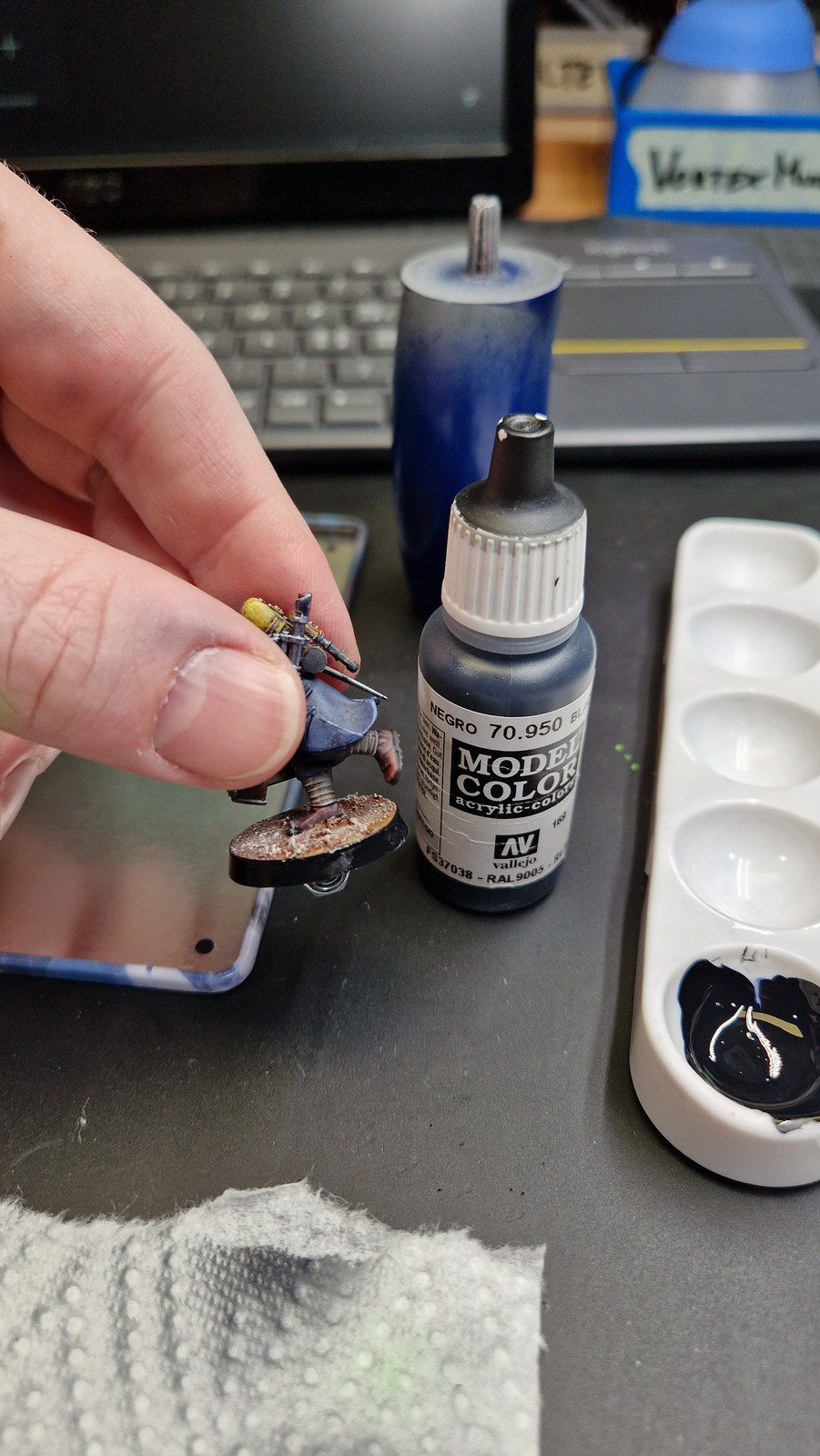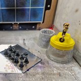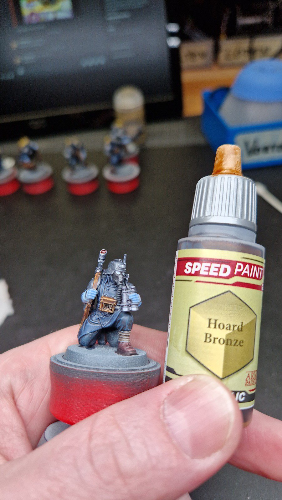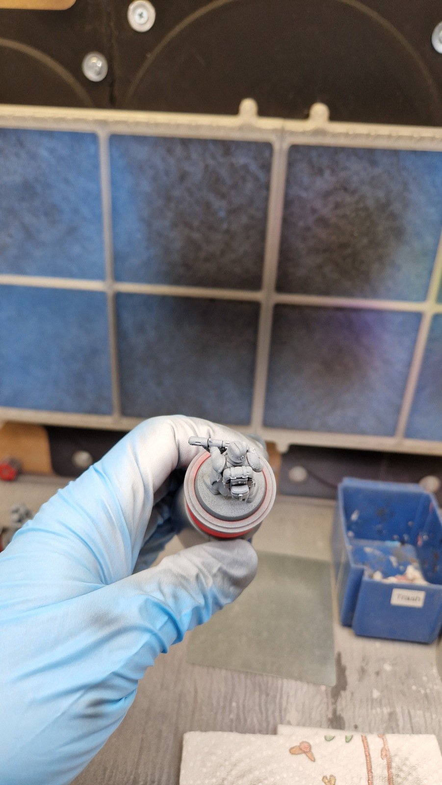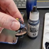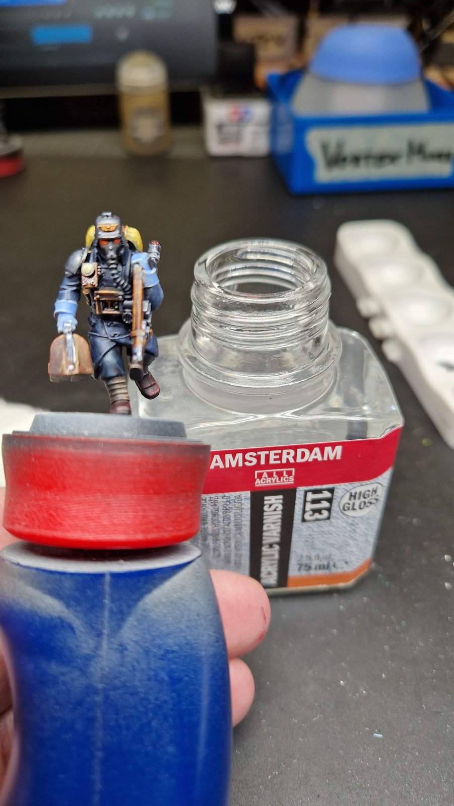 Danach habe ich alle möglichen Details der Figuren mit verschiedenen Metall-Farben und zusätzlich weitere kleine Details wie die Linsen der Atemschutzmasken bemalt. Die Linsen und andere “Glas-Flächen” habe ich für einen Glas-Effekt zusätzlich mit hochglanz versiegelt.