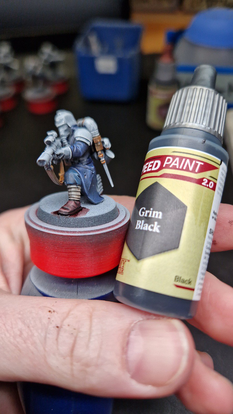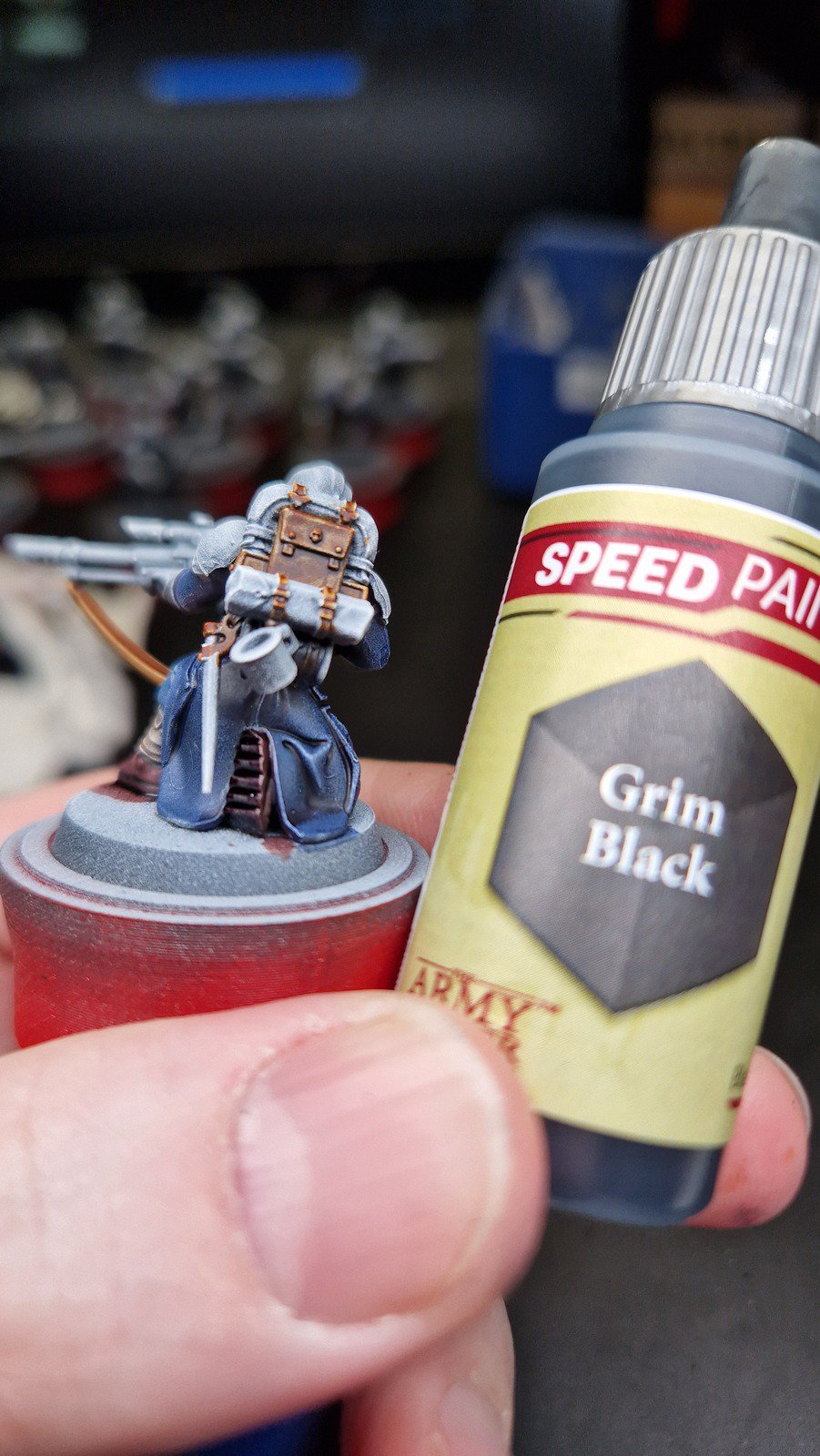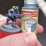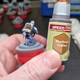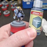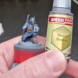Danach wurden die Minis in schwarz grundiert, mit grau Zenithal gehighlightet und anschliessend mit weiss drybrushed. Anschliessend habe ich alle minis mit Glanz versiegelt, damit die Speed Paints gut fliessen können.