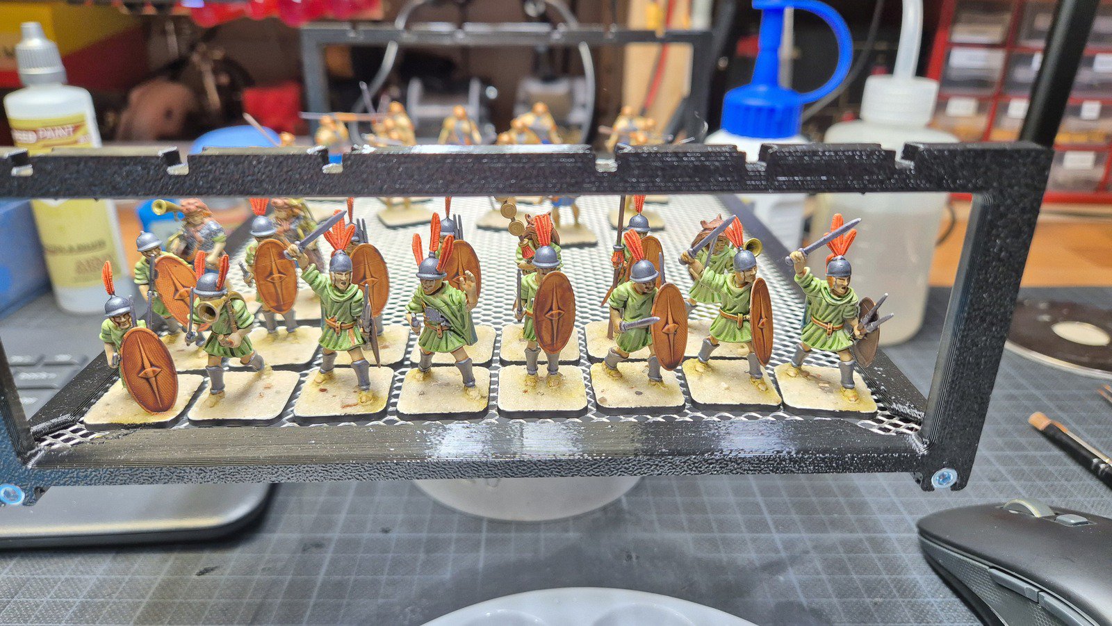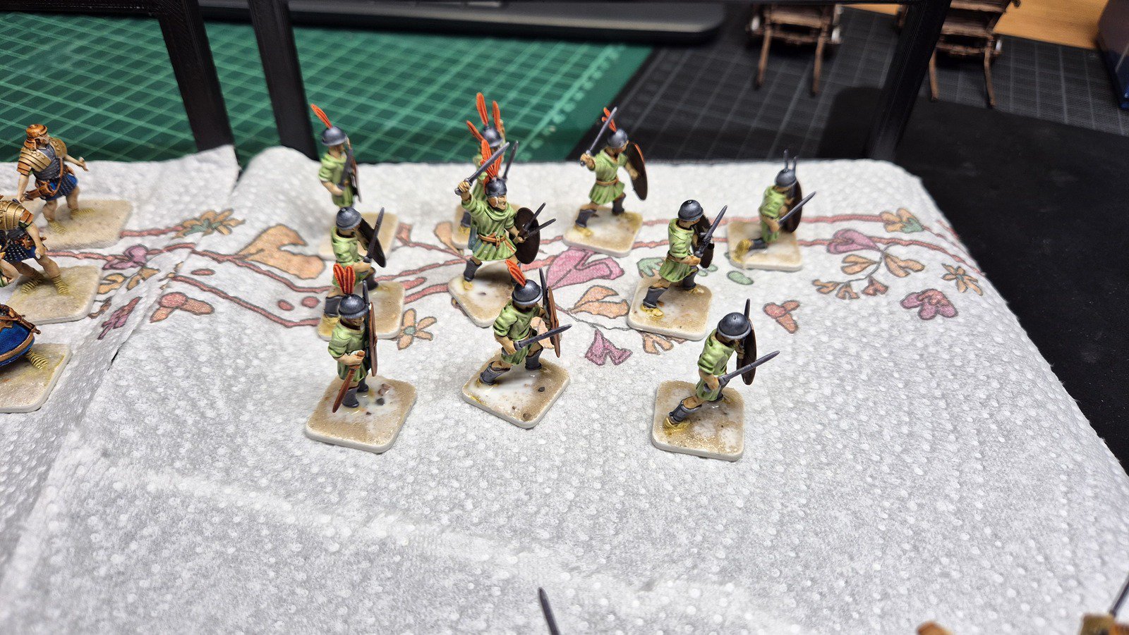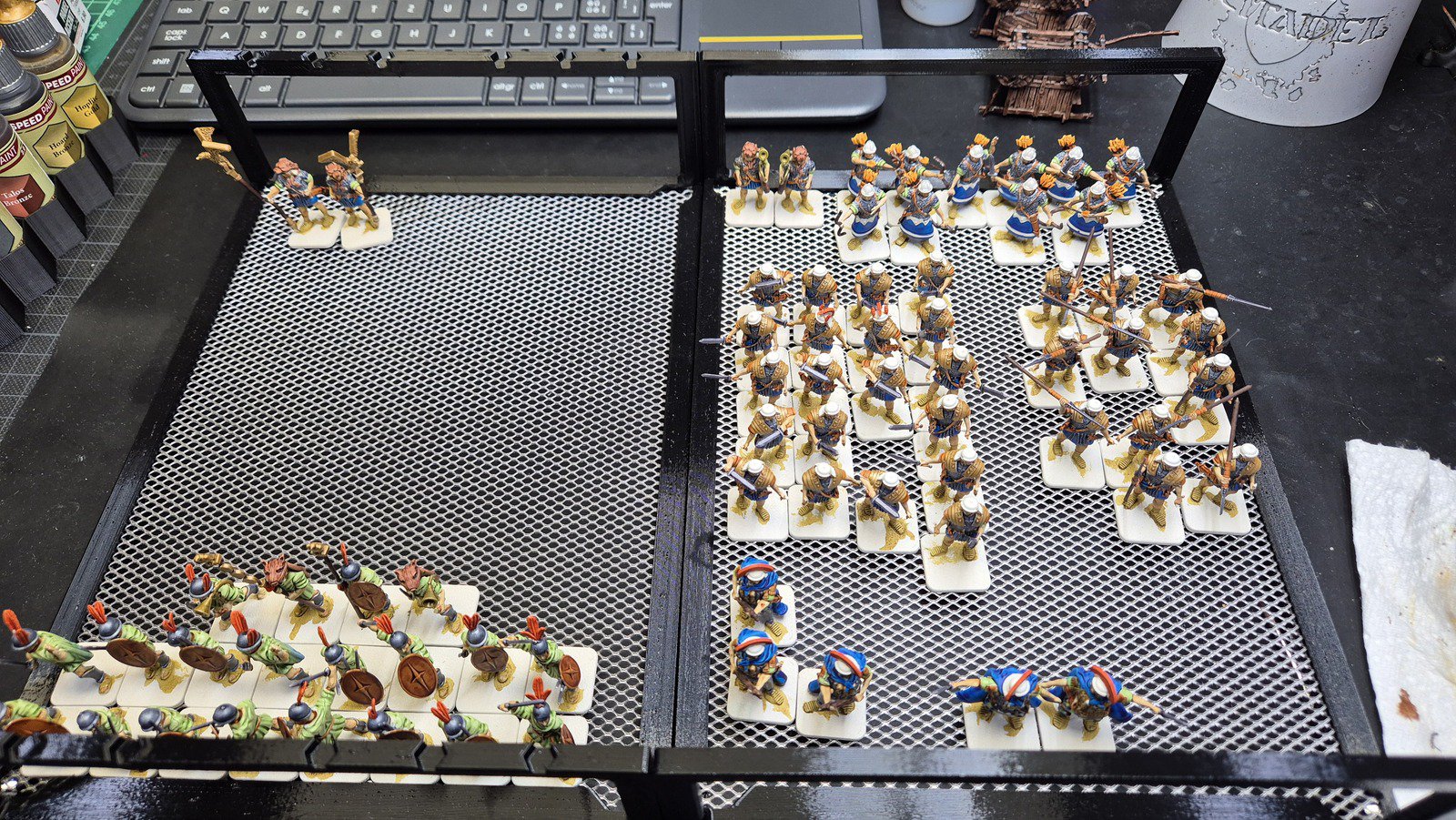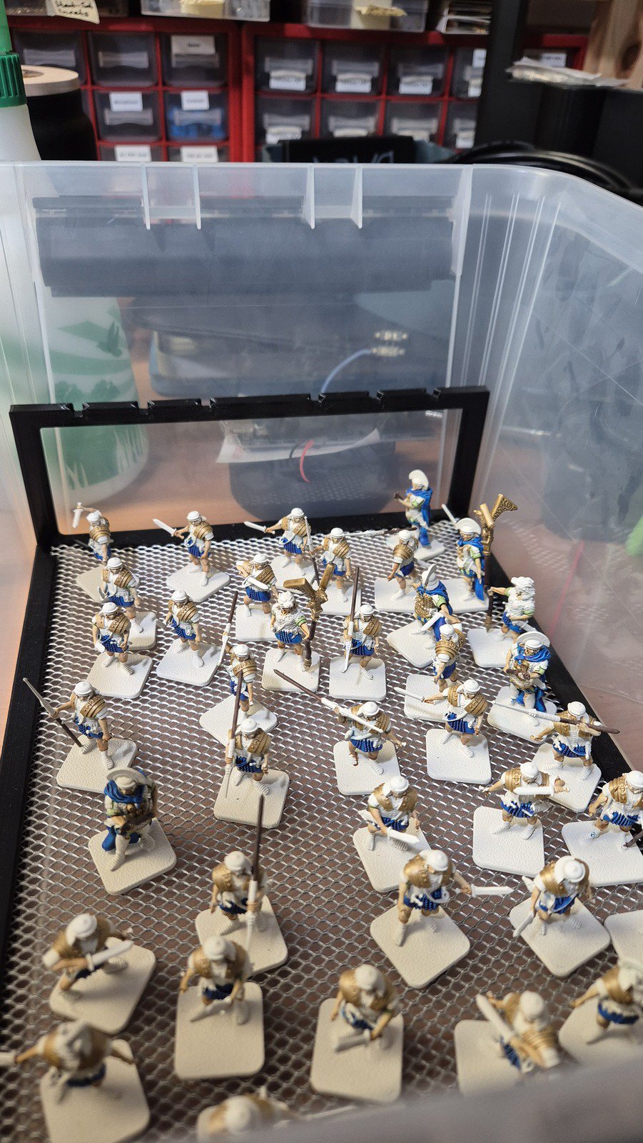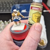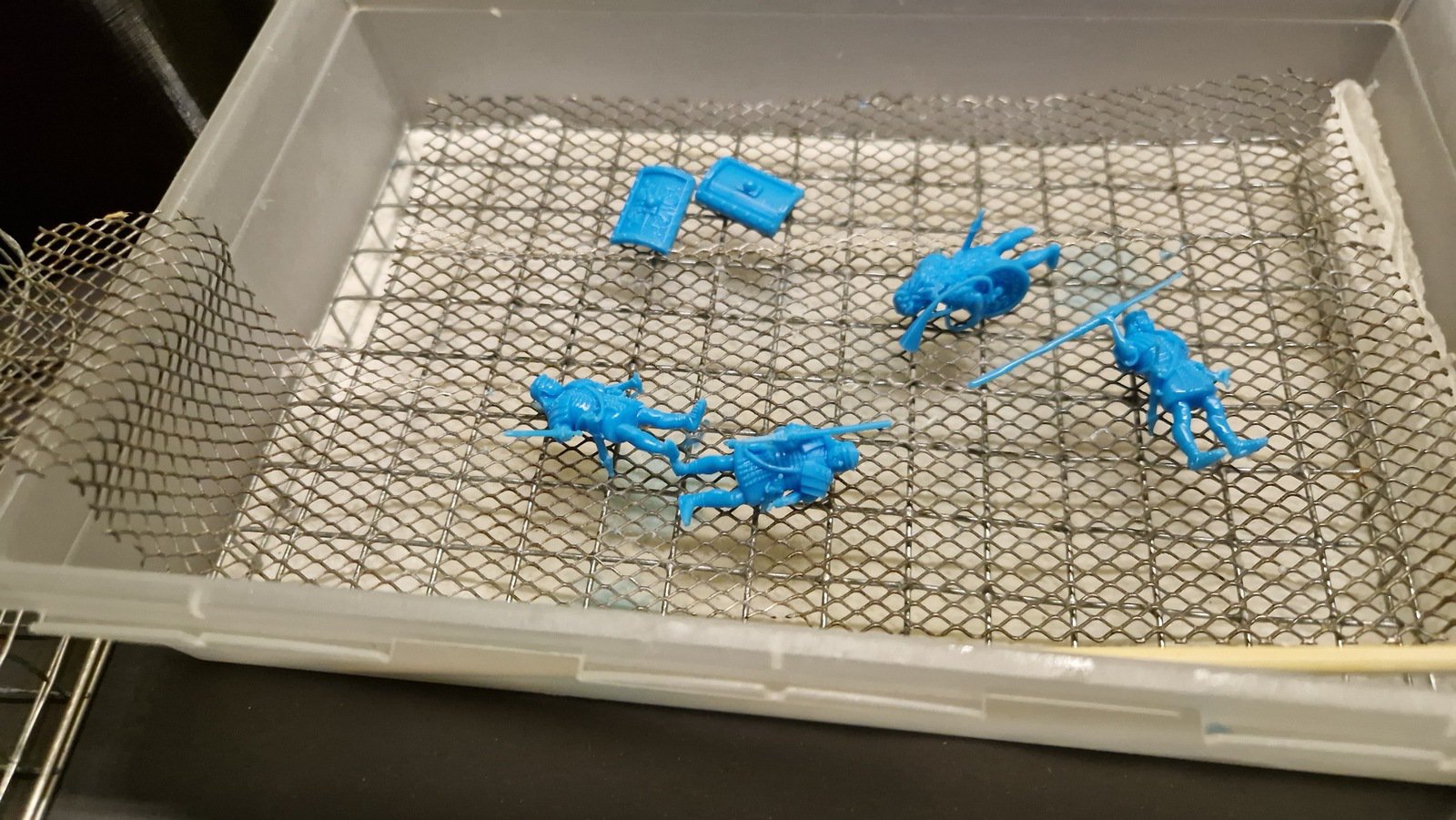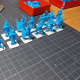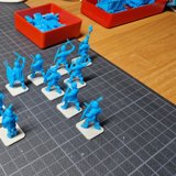 Zudem sind diese Figuren etwas kleiner als Warhammer-Figuren (“echte” 28 mm und nicht sog. Heroic Scale). Dies zusammen mit der Tatsache dass die 3D gedruckten Sachen viel empfindlicher sind haben zu vielen abgebrochenen Federn und Waffen geführt.