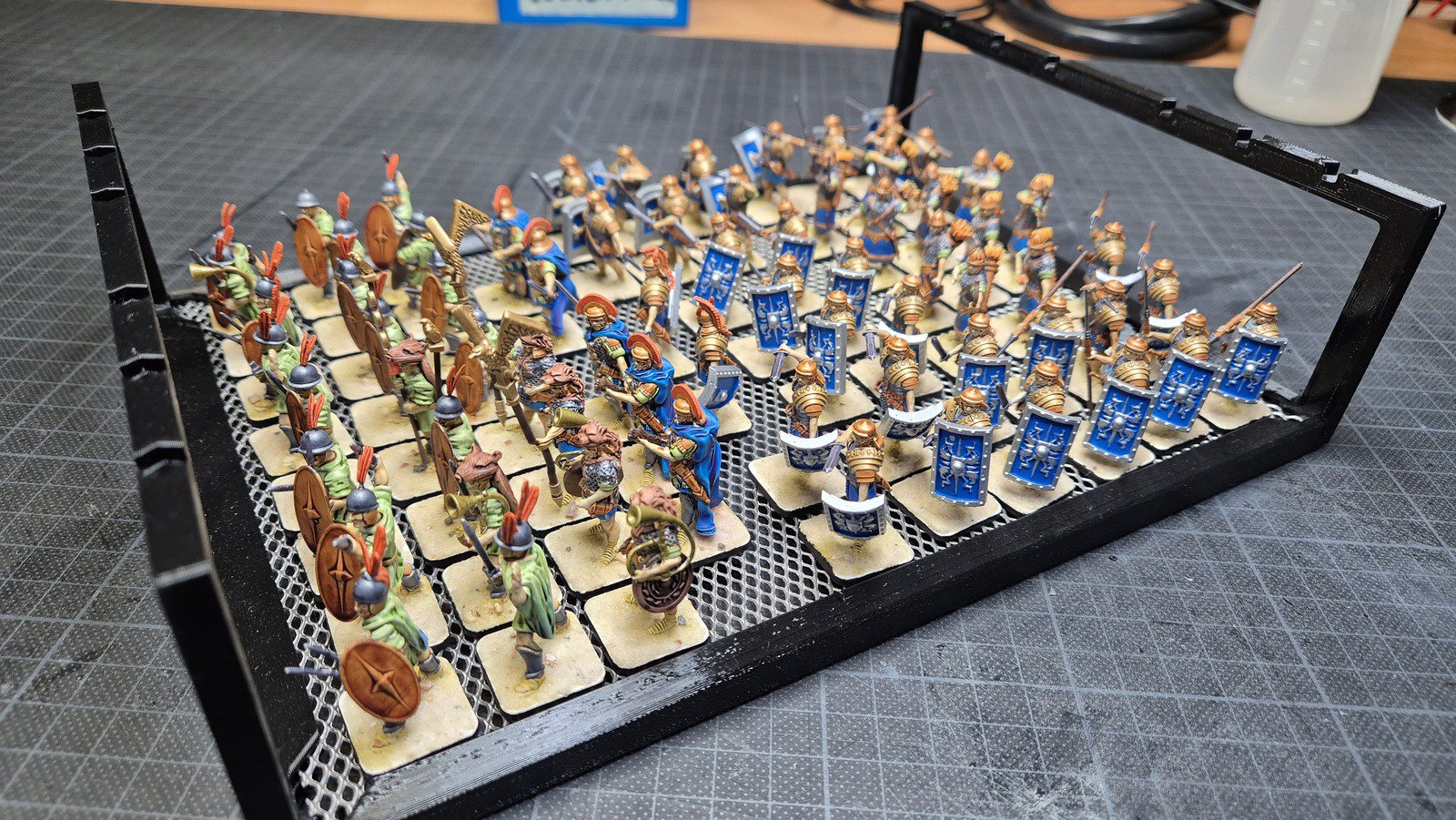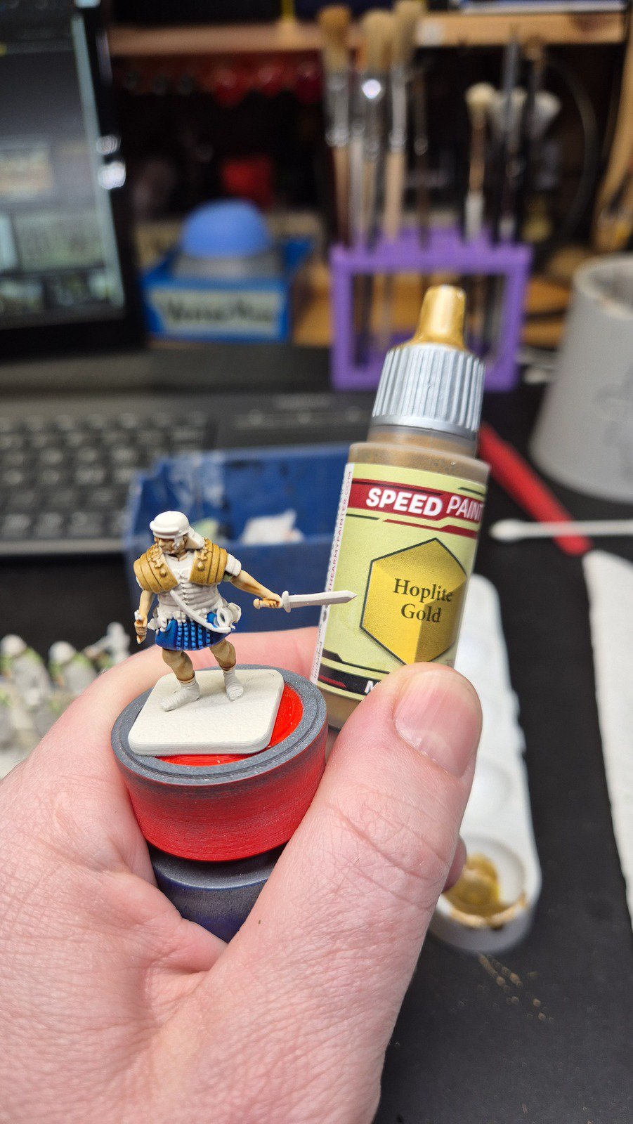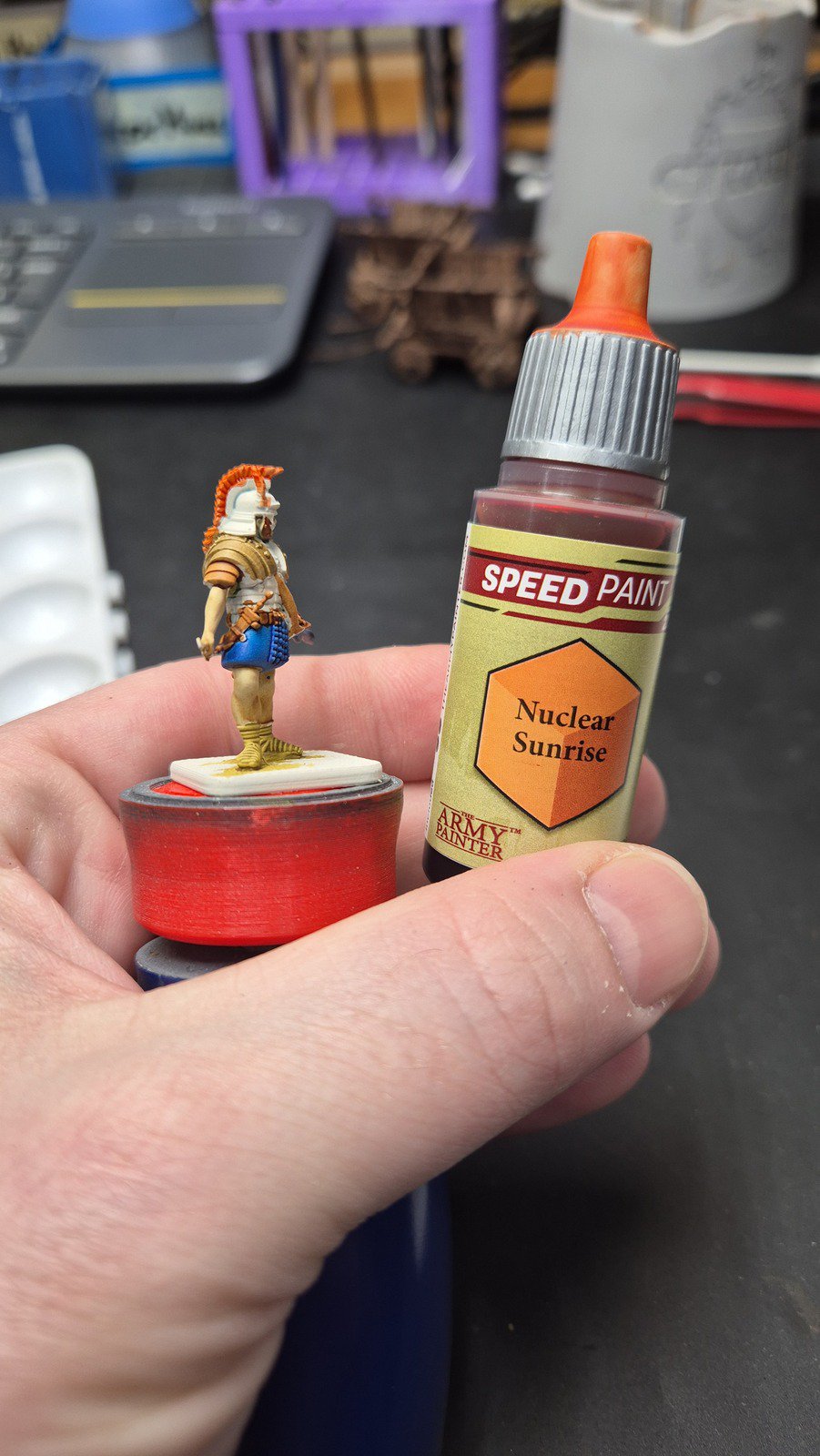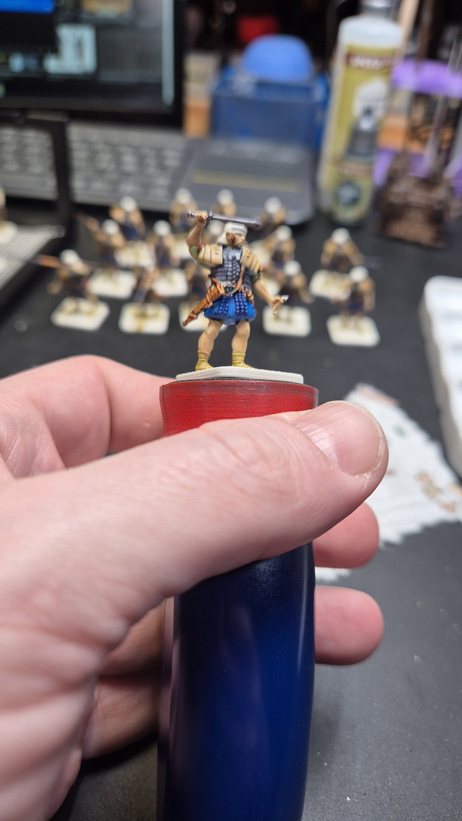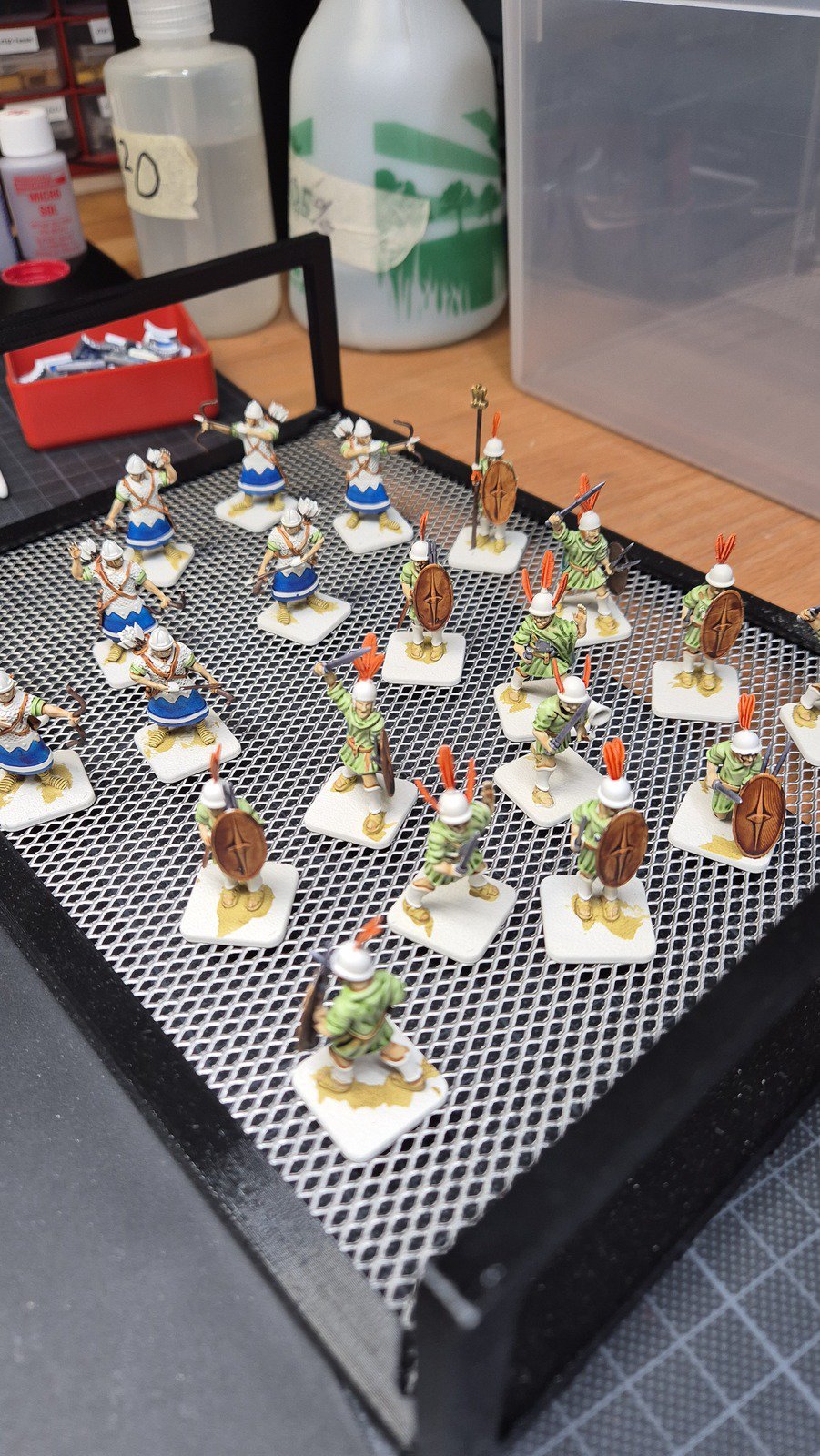 Zudem sind diese Figuren etwas kleiner als Warhammer-Figuren (“echte” 28 mm und nicht sog. Heroic Scale). Dies zusammen mit der Tatsache dass die 3D gedruckten Sachen viel empfindlicher sind haben zu vielen abgebrochenen Federn und Waffen geführt.