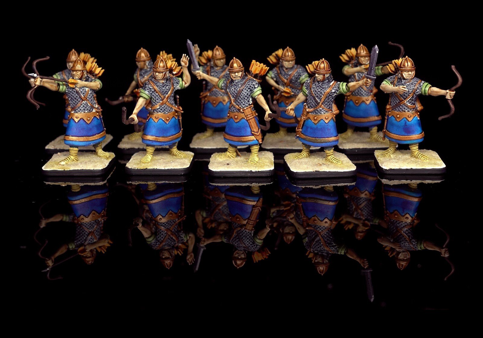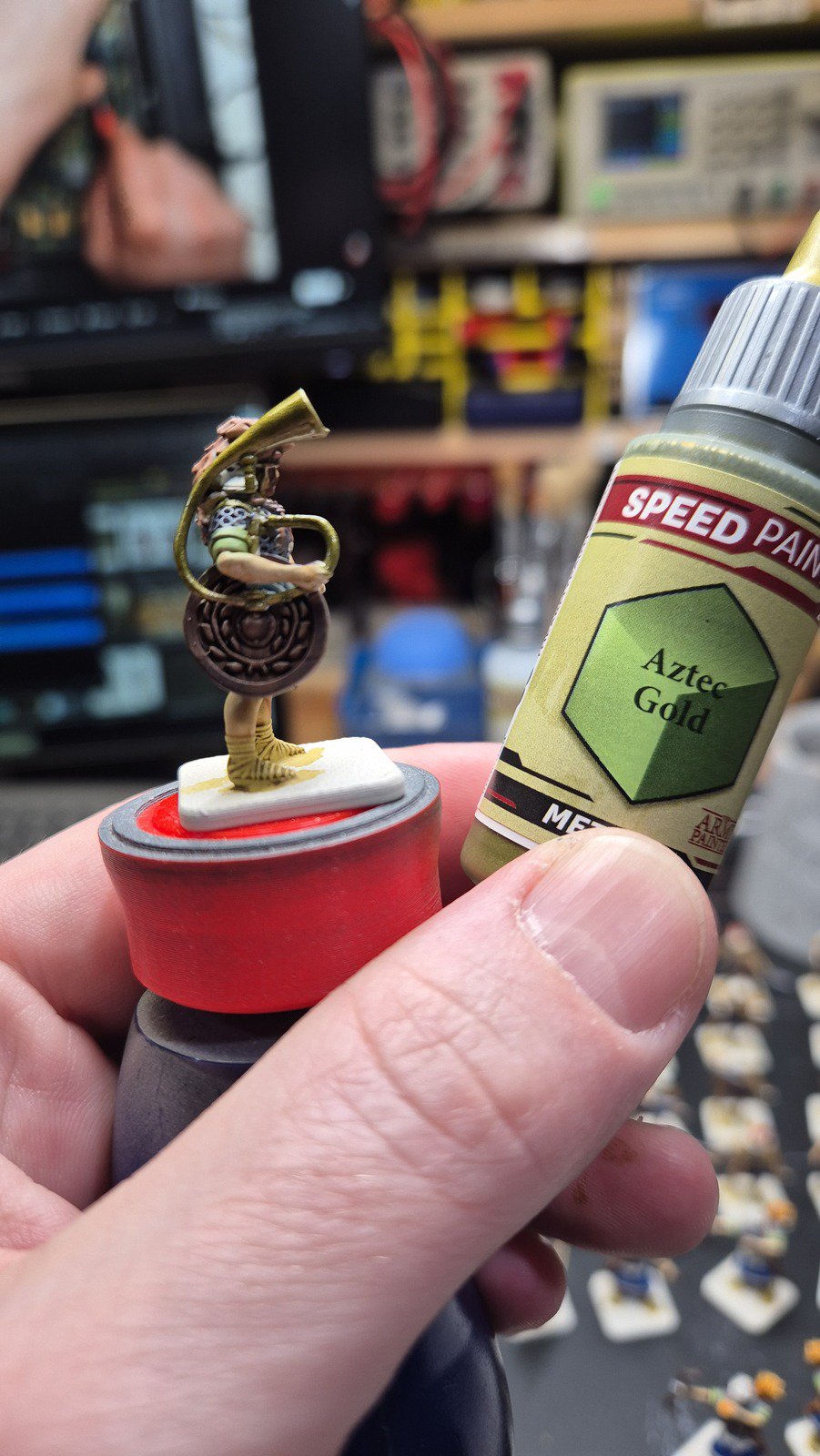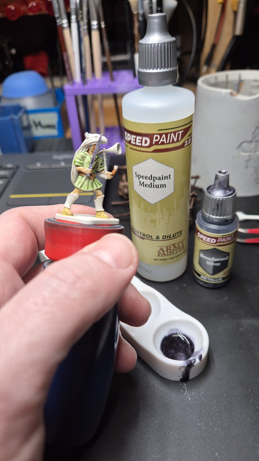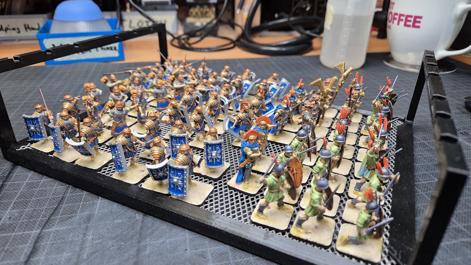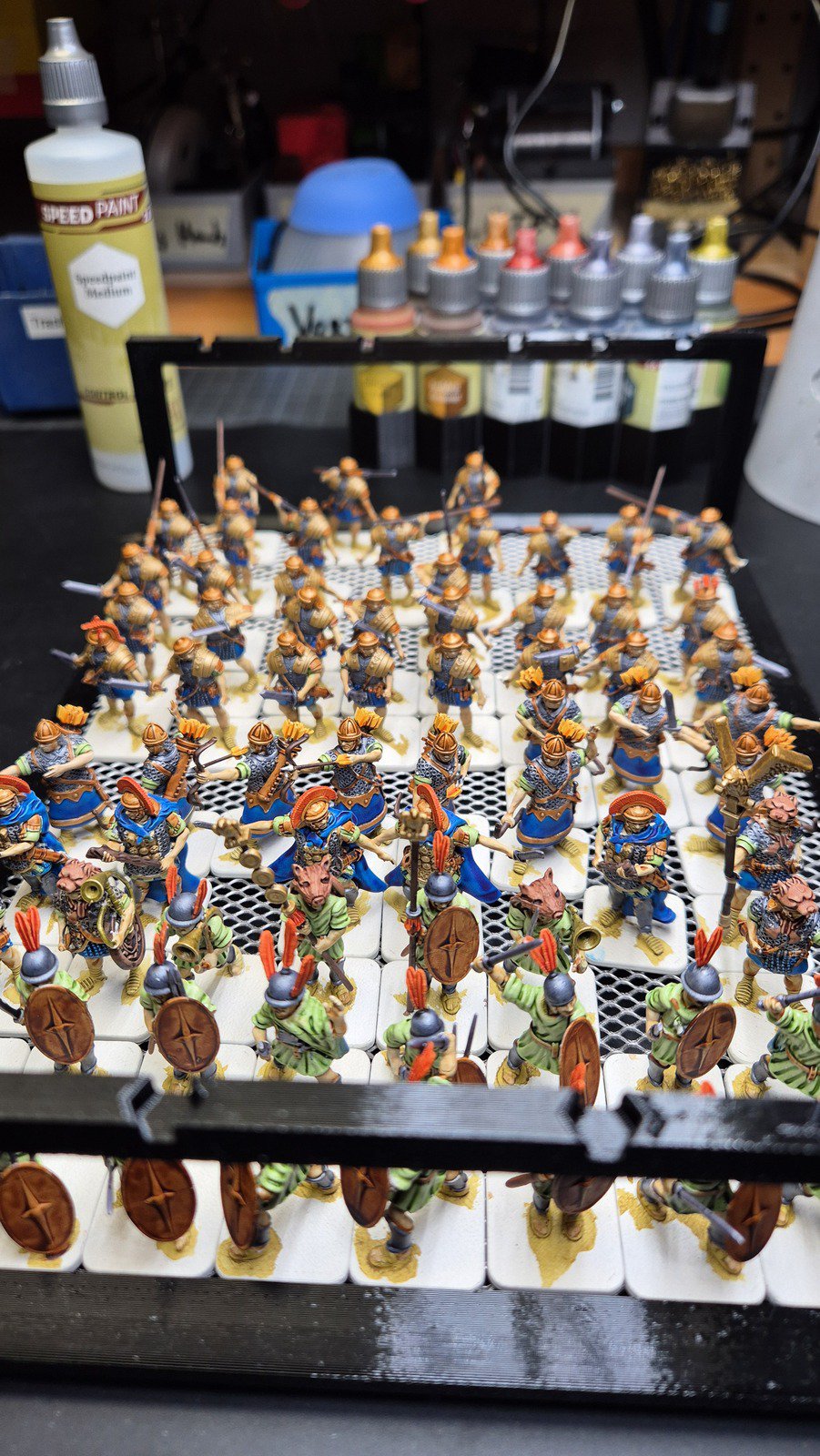 Zudem sind diese Figuren etwas kleiner als Warhammer-Figuren (“echte” 28 mm und nicht sog. Heroic Scale). Dies zusammen mit der Tatsache dass die 3D gedruckten Sachen viel empfindlicher sind haben zu vielen abgebrochenen Federn und Waffen geführt.