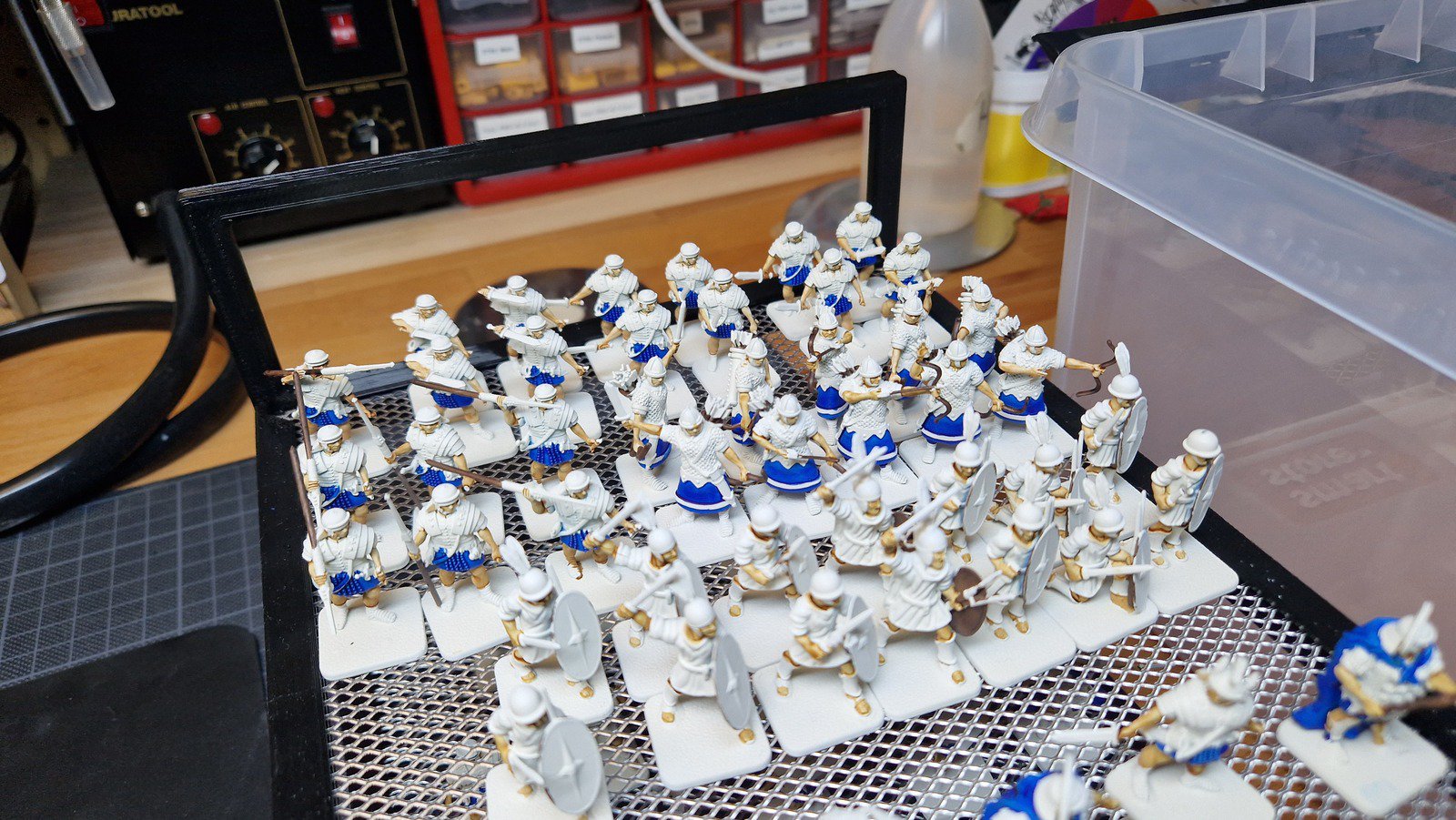 Was ich bei diesem Projekt schmerzhaft gelernt habe ist, dass wenn ein Schritt eine Minute länger dauert, braucht das Projekt bei 70 Figuren sofort mehr als eine zusätzliche Stunde… 😅