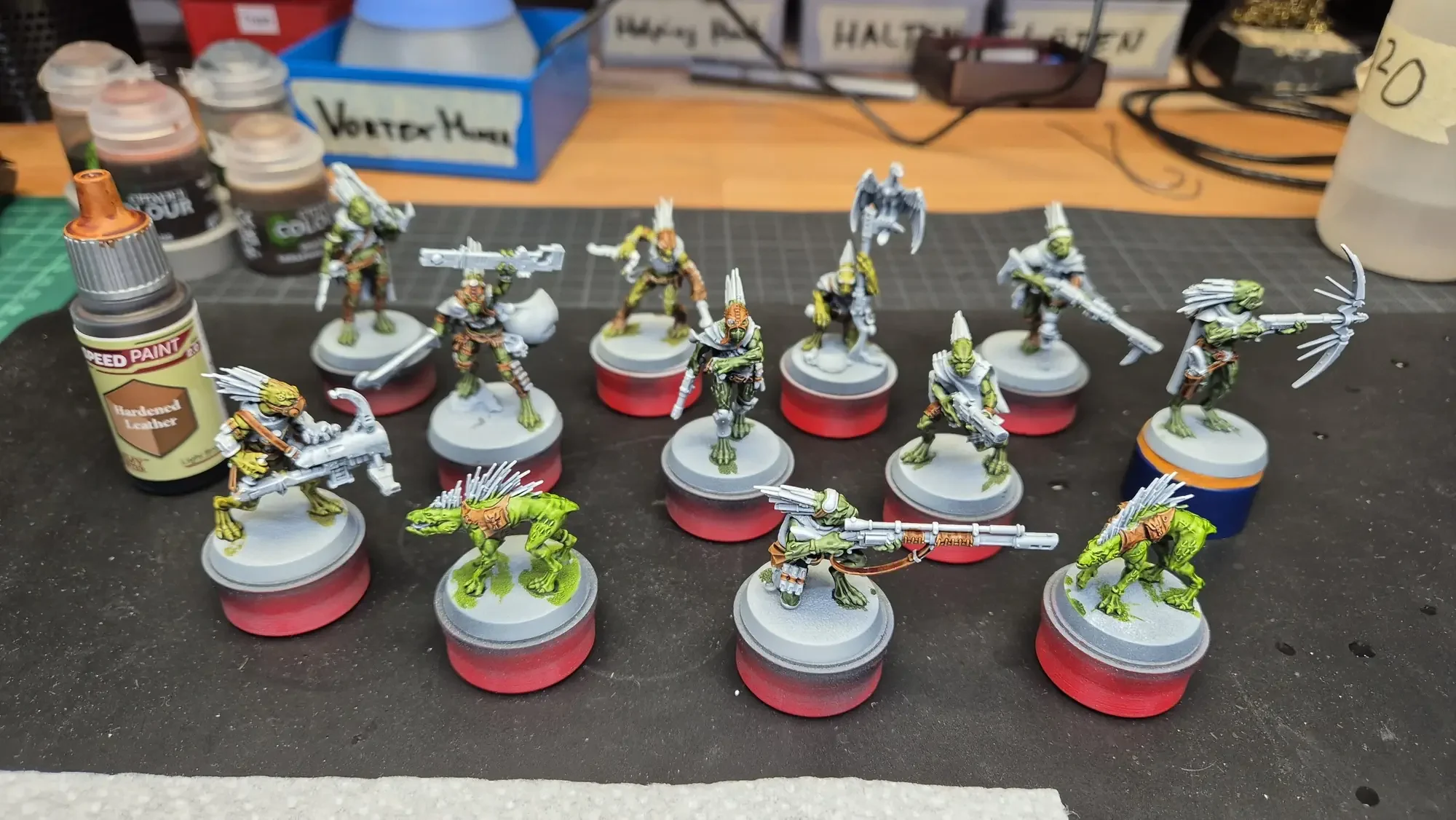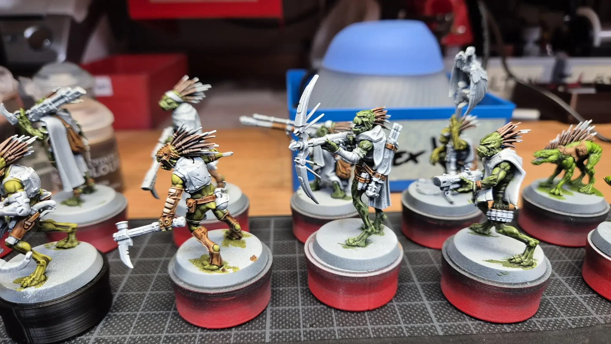 Der nächste Schlag gegen meinen “Pile of shame” sind die Kroot der Farstalker Kinband. Sie sind das erste der Kill Teams in der “Into The Dark”-Box. Diese Tau-Freundlichen Krieger verbessern ihre Fähigkeiten, indem sie ihre Gegner (oder Freunde…) verspeisen und sich somit ihrer Gen-Eigenschaften aneignen.