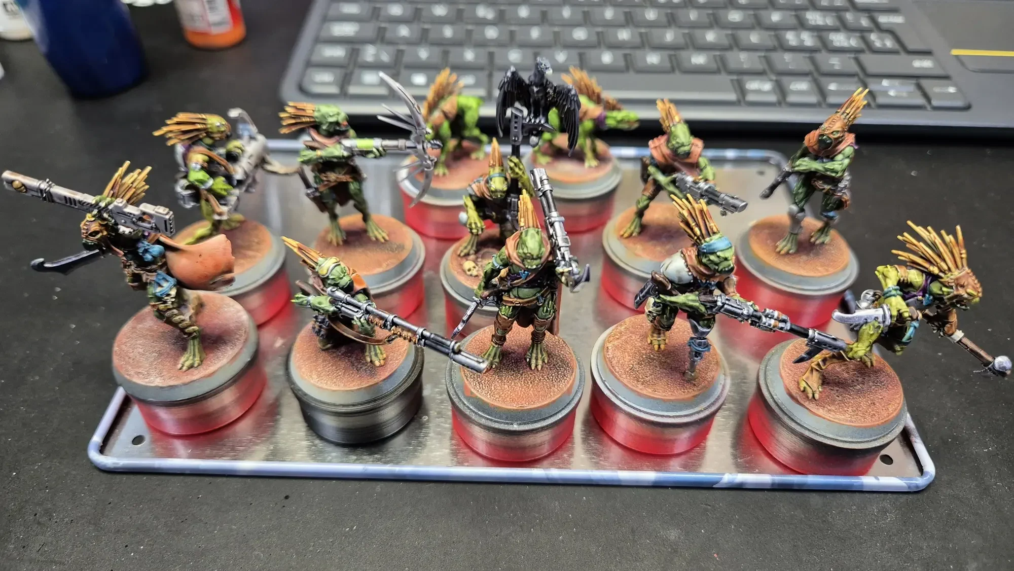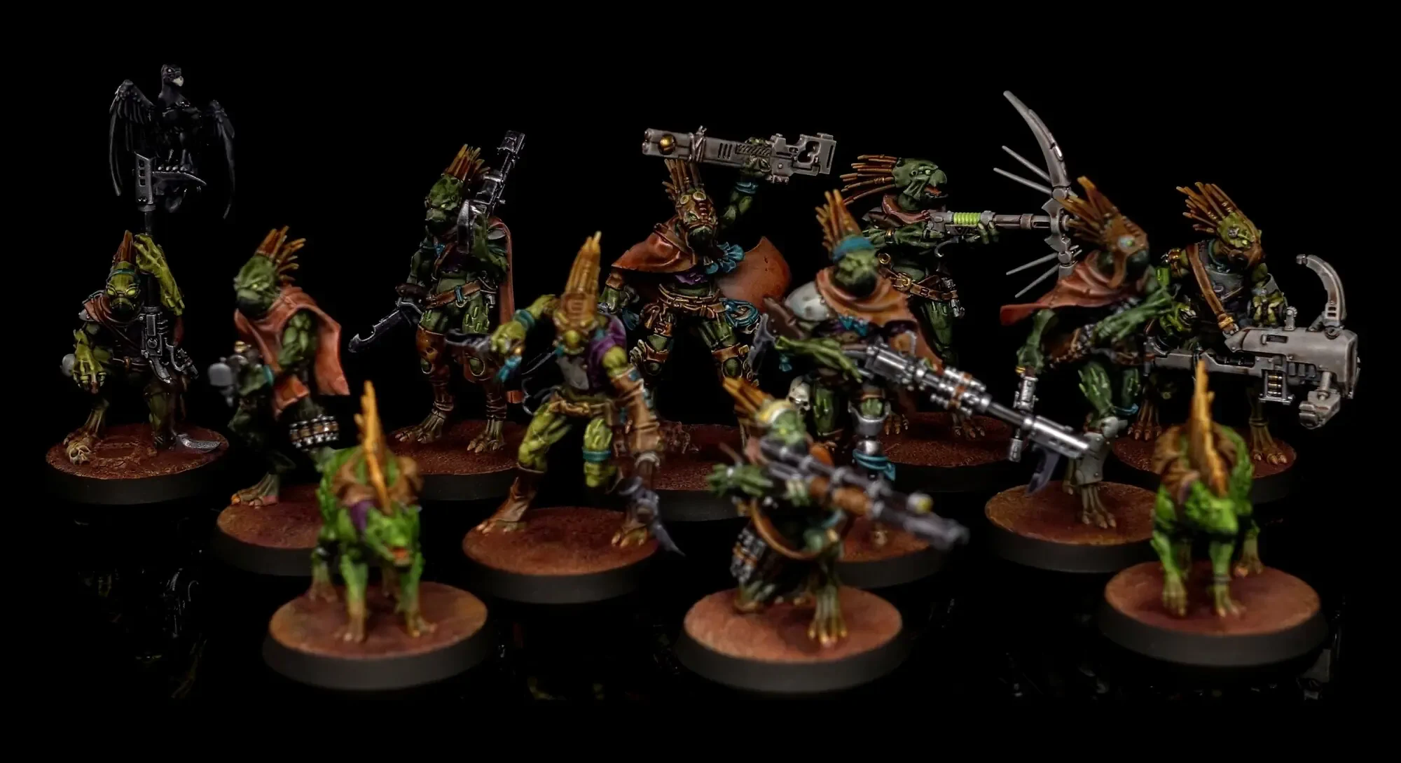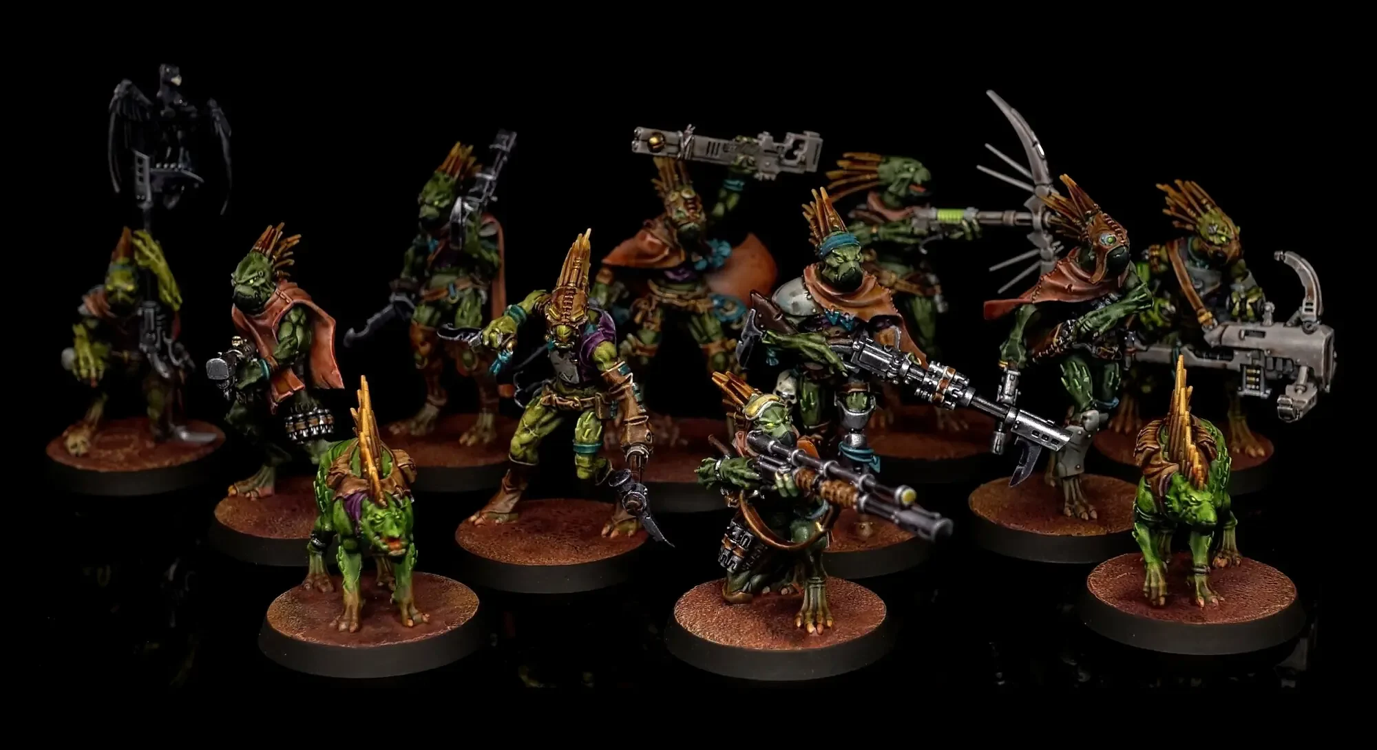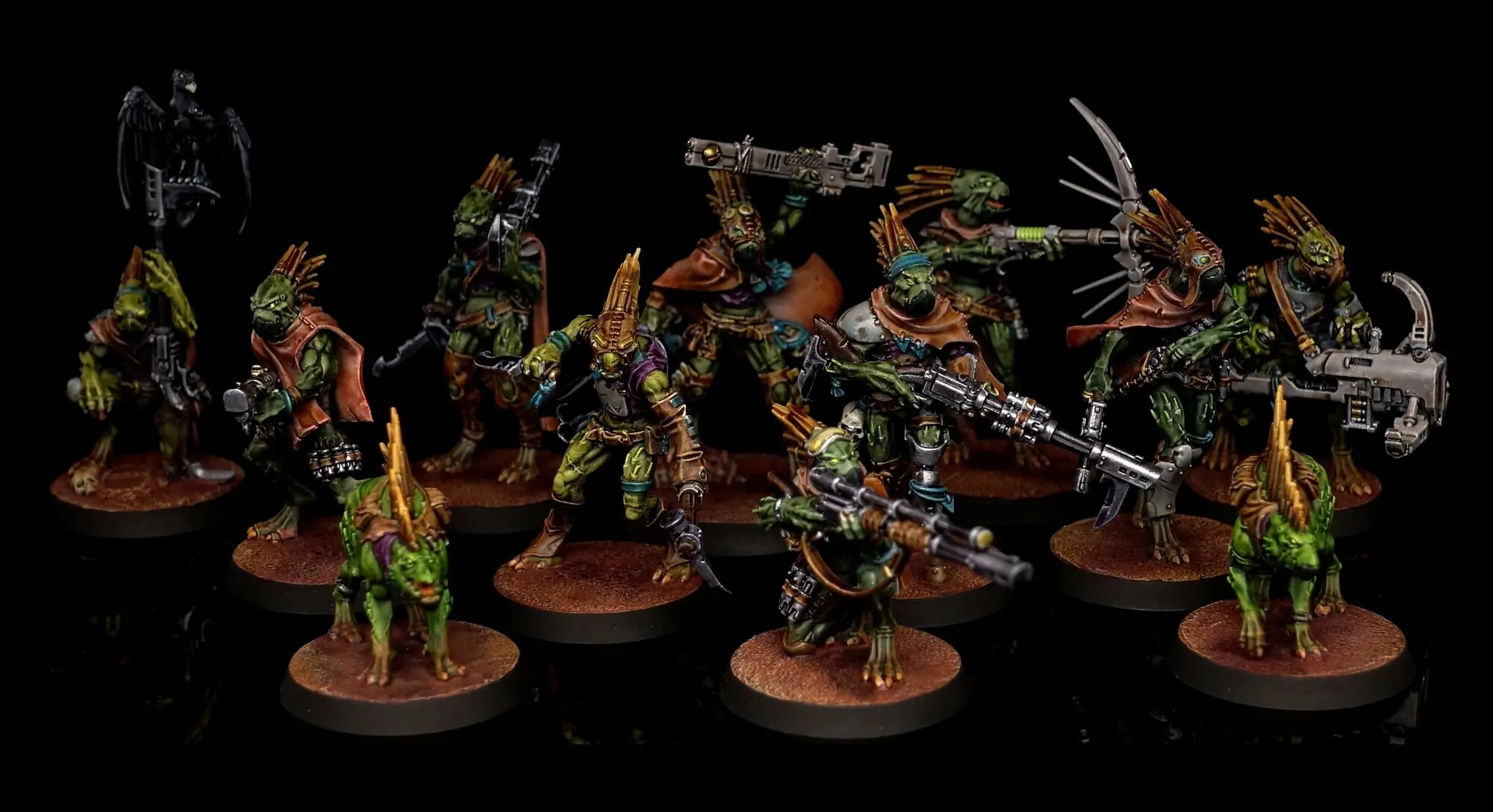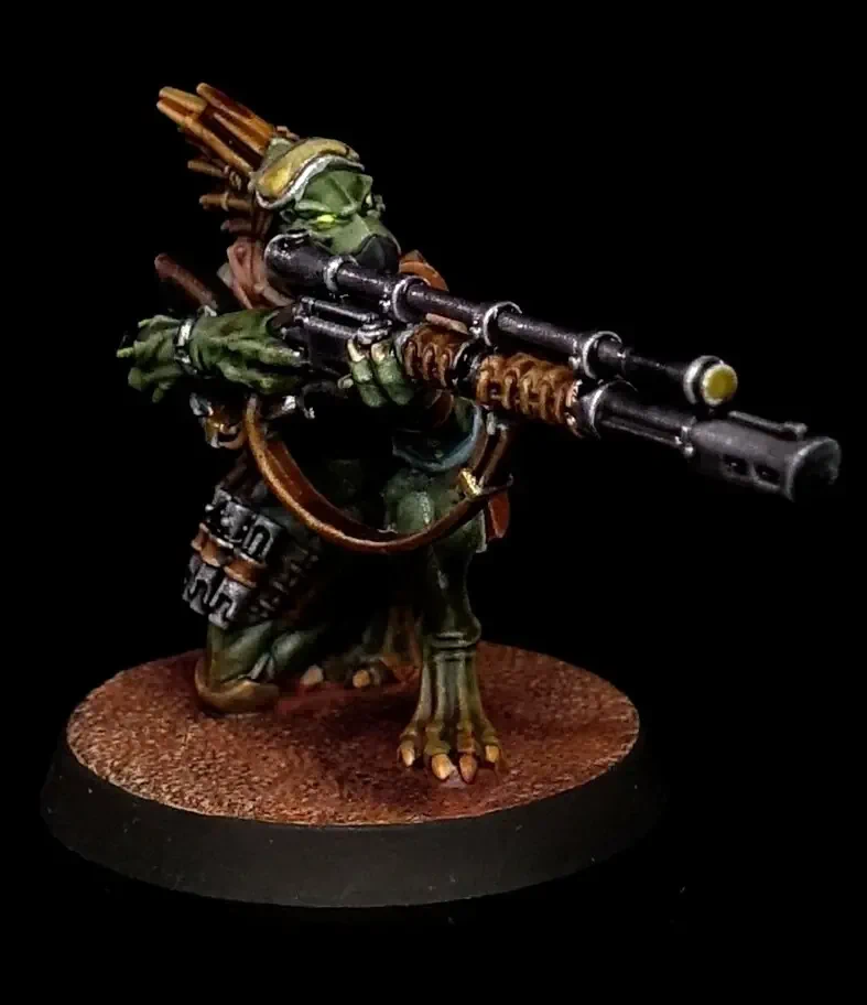 Obwohl die Kroot von einem Dschungel-Planeten stammen, ist dieses Kill Team gerade auf einem Wüsten-Planeten im Einsatz.