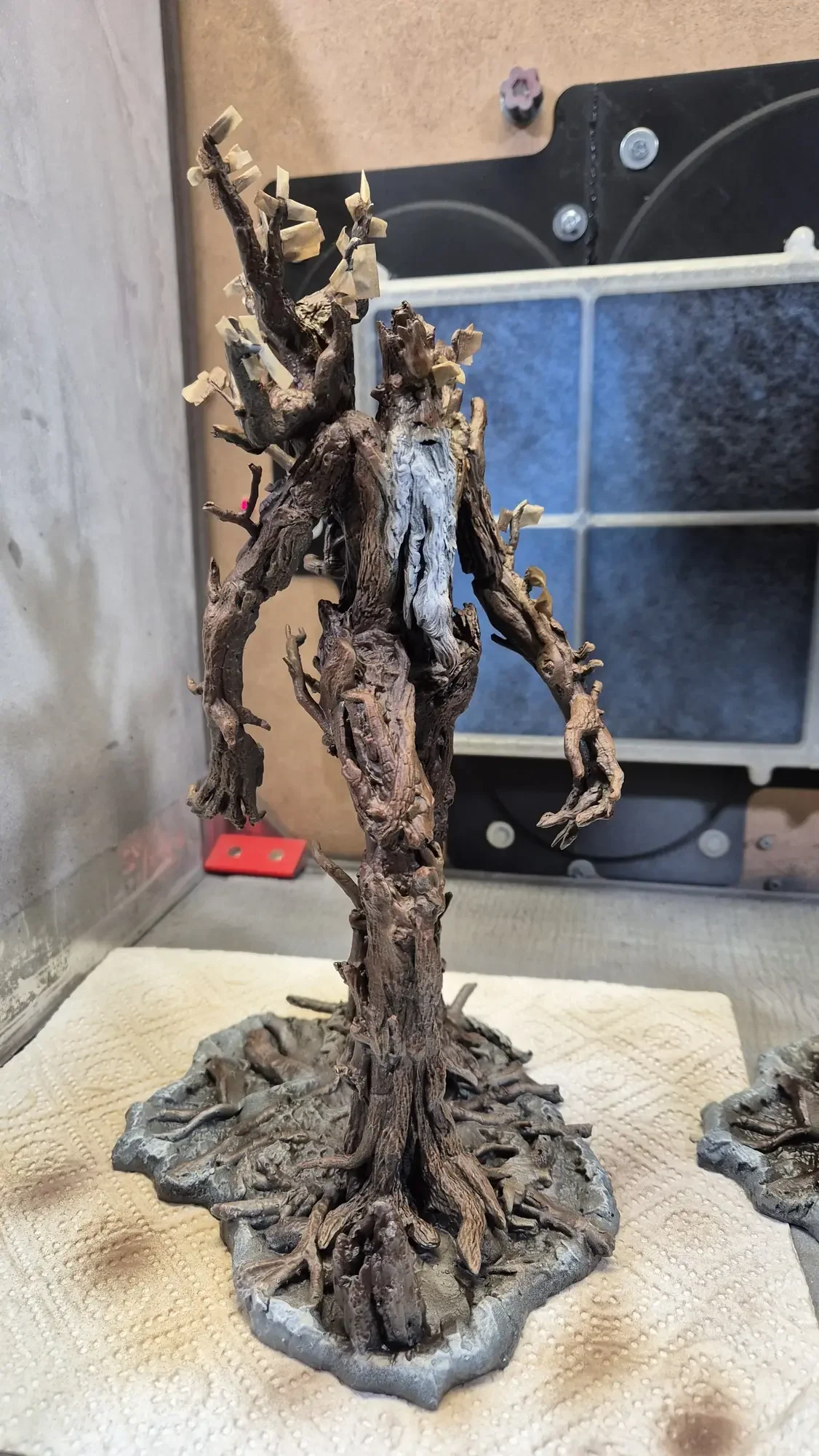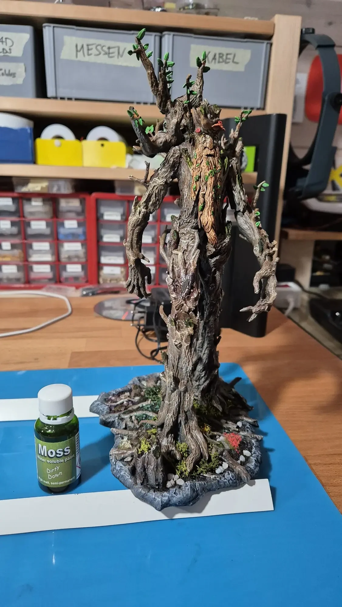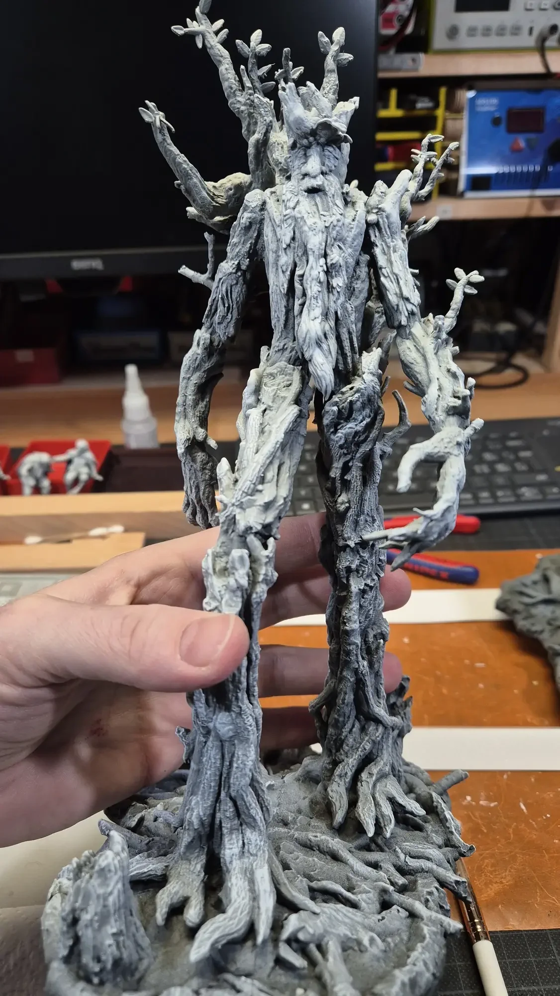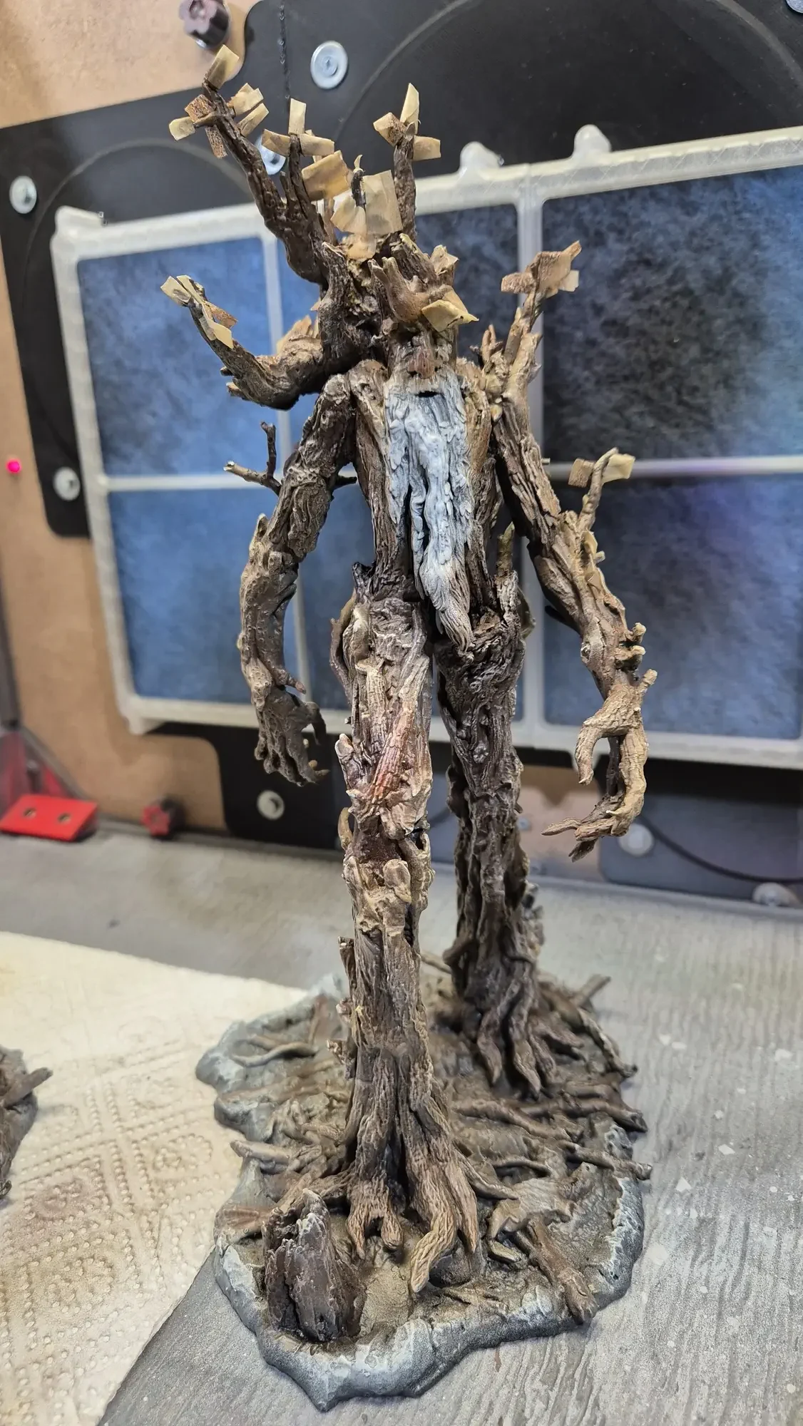 Drei Jahre nachdem ich Gandalf verschenkt habe, hat dieselbe Person Baumbart mit Merry und Pippin zum Geburtstag erhalten. Ich habe definitiv viel gelernt in den vergangenen drei Jahren, dafür war das Projekt aber auch viel größer. Ich habe erneut zwei parallel gemacht damit ich immer einen “Test Baumbart” hatte, welcher nun bei mir nach dem rechten sieht.