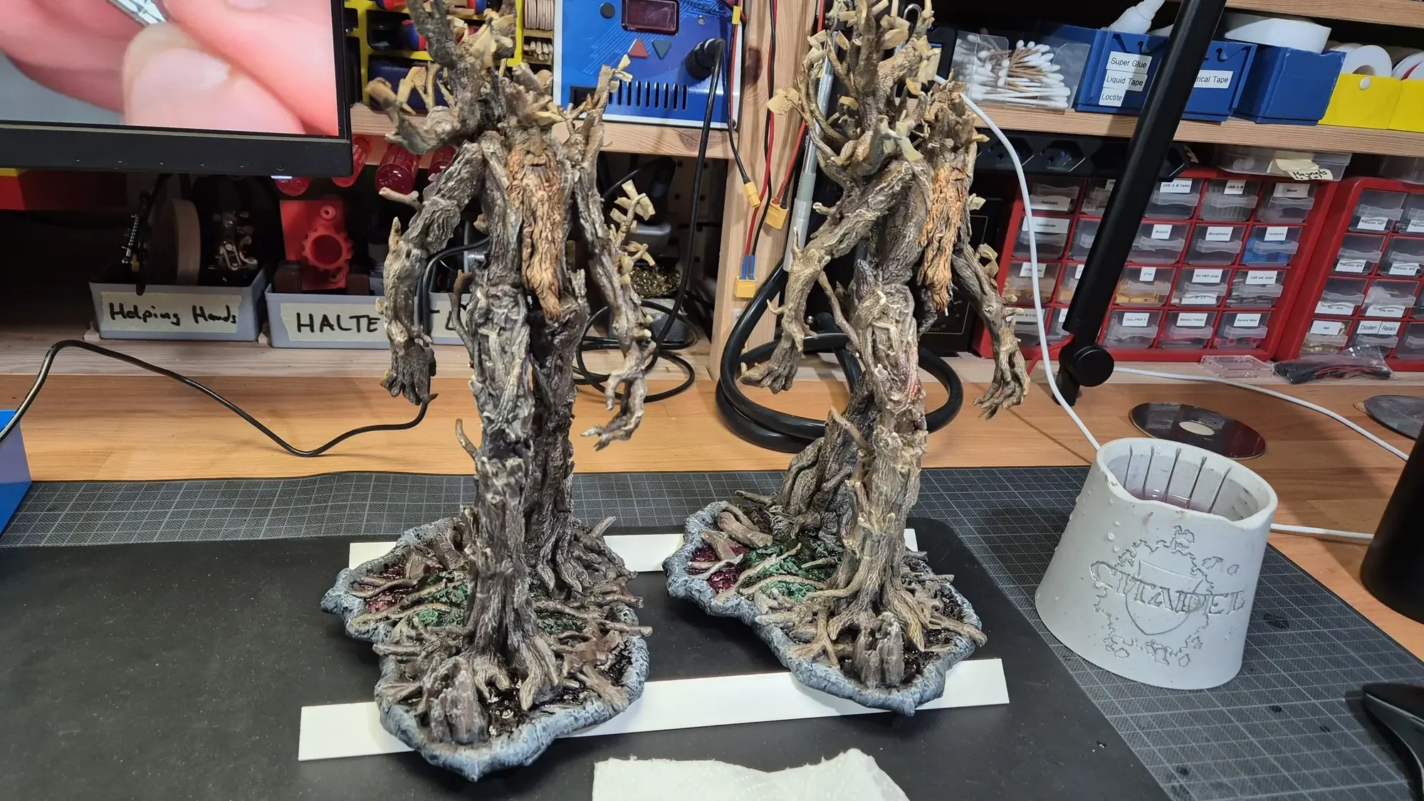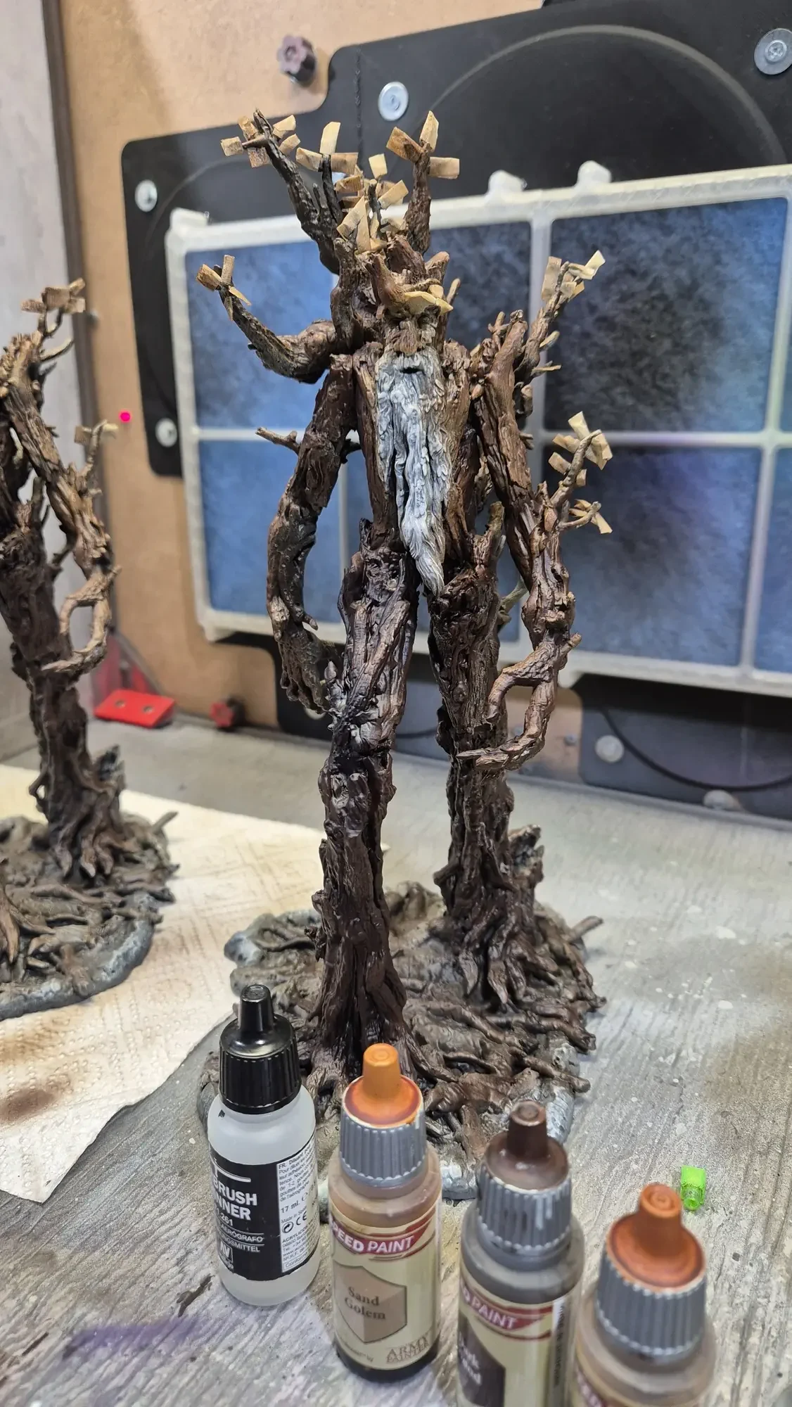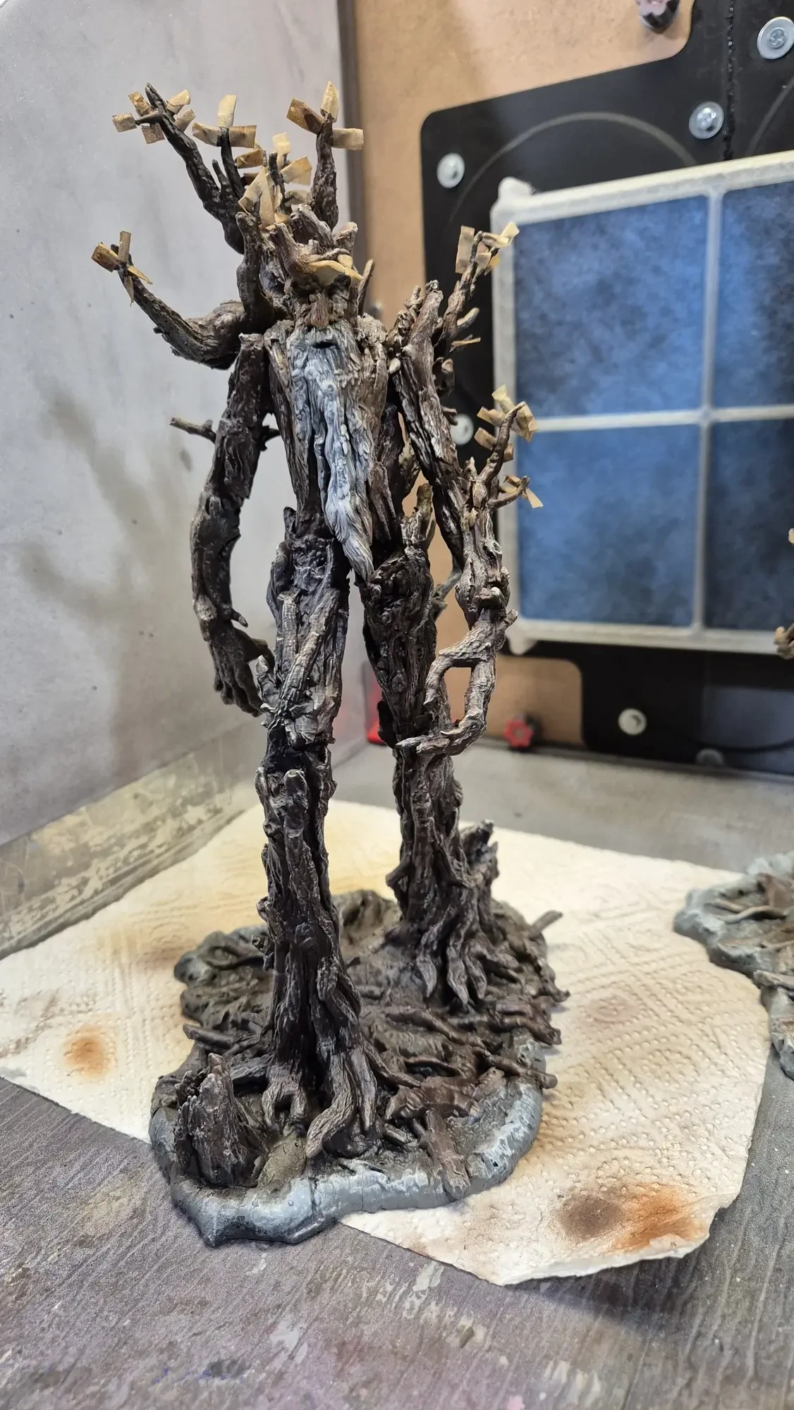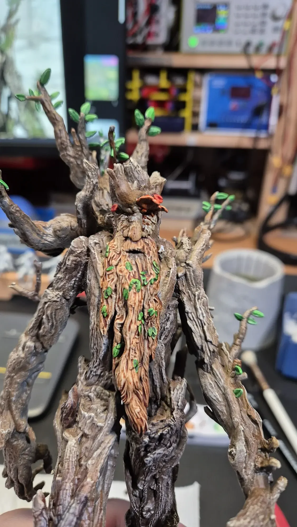 Drei Jahre nachdem ich Gandalf verschenkt habe, hat dieselbe Person Baumbart mit Merry und Pippin zum Geburtstag erhalten. Ich habe definitiv viel gelernt in den vergangenen drei Jahren, dafür war das Projekt aber auch viel größer. Ich habe erneut zwei parallel gemacht damit ich immer einen “Test Baumbart” hatte, welcher nun bei mir nach dem rechten sieht.