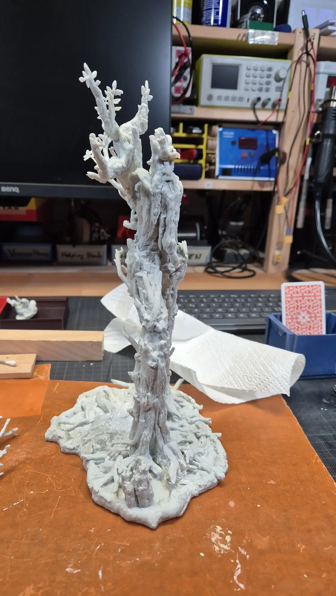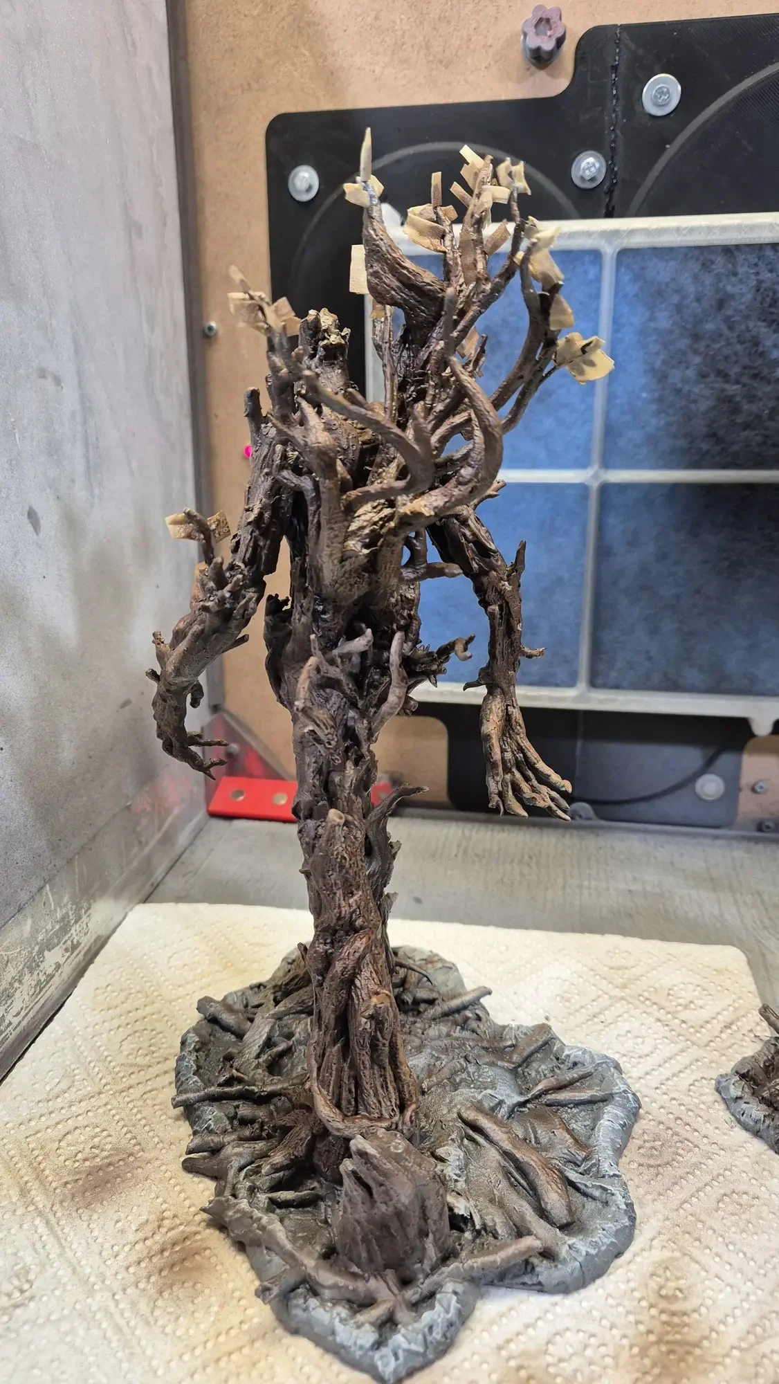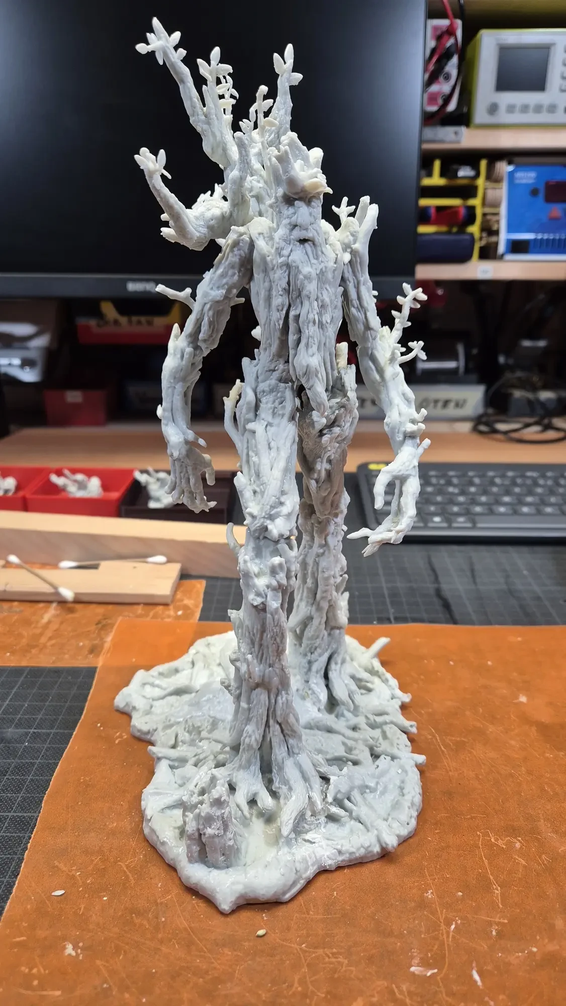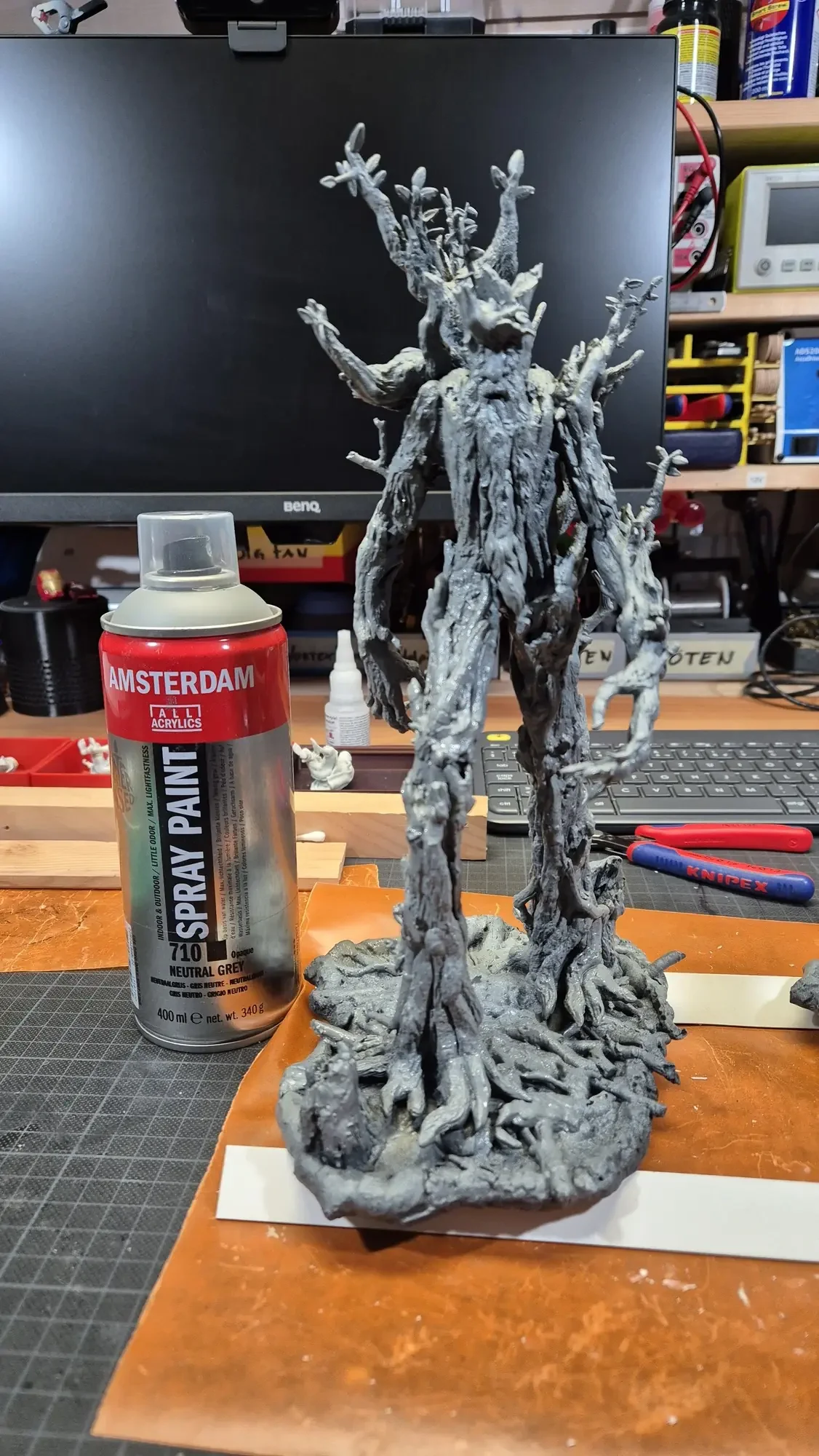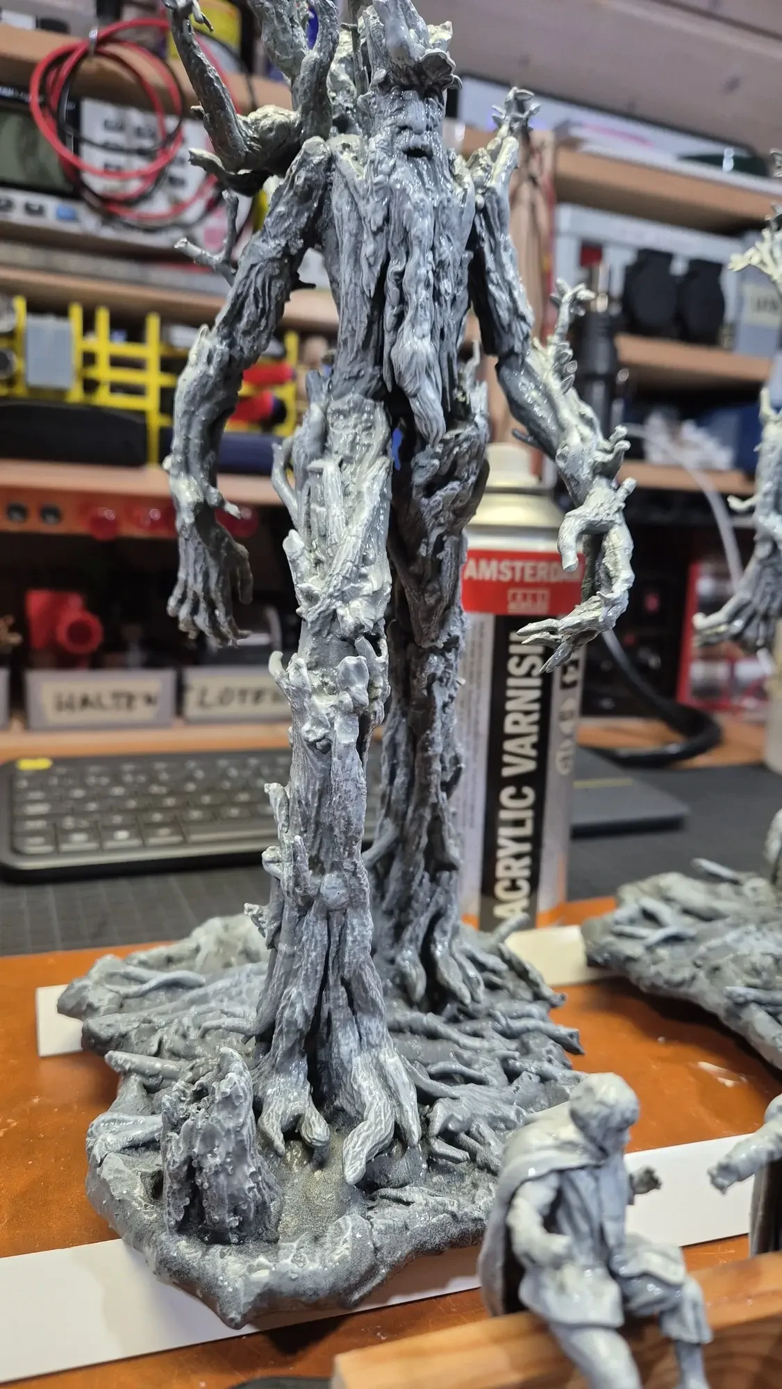 Drei Jahre nachdem ich Gandalf verschenkt habe, hat dieselbe Person Baumbart mit Merry und Pippin zum Geburtstag erhalten. Ich habe definitiv viel gelernt in den vergangenen drei Jahren, dafür war das Projekt aber auch viel größer. Ich habe erneut zwei parallel gemacht damit ich immer einen “Test Baumbart” hatte, welcher nun bei mir nach dem rechten sieht.