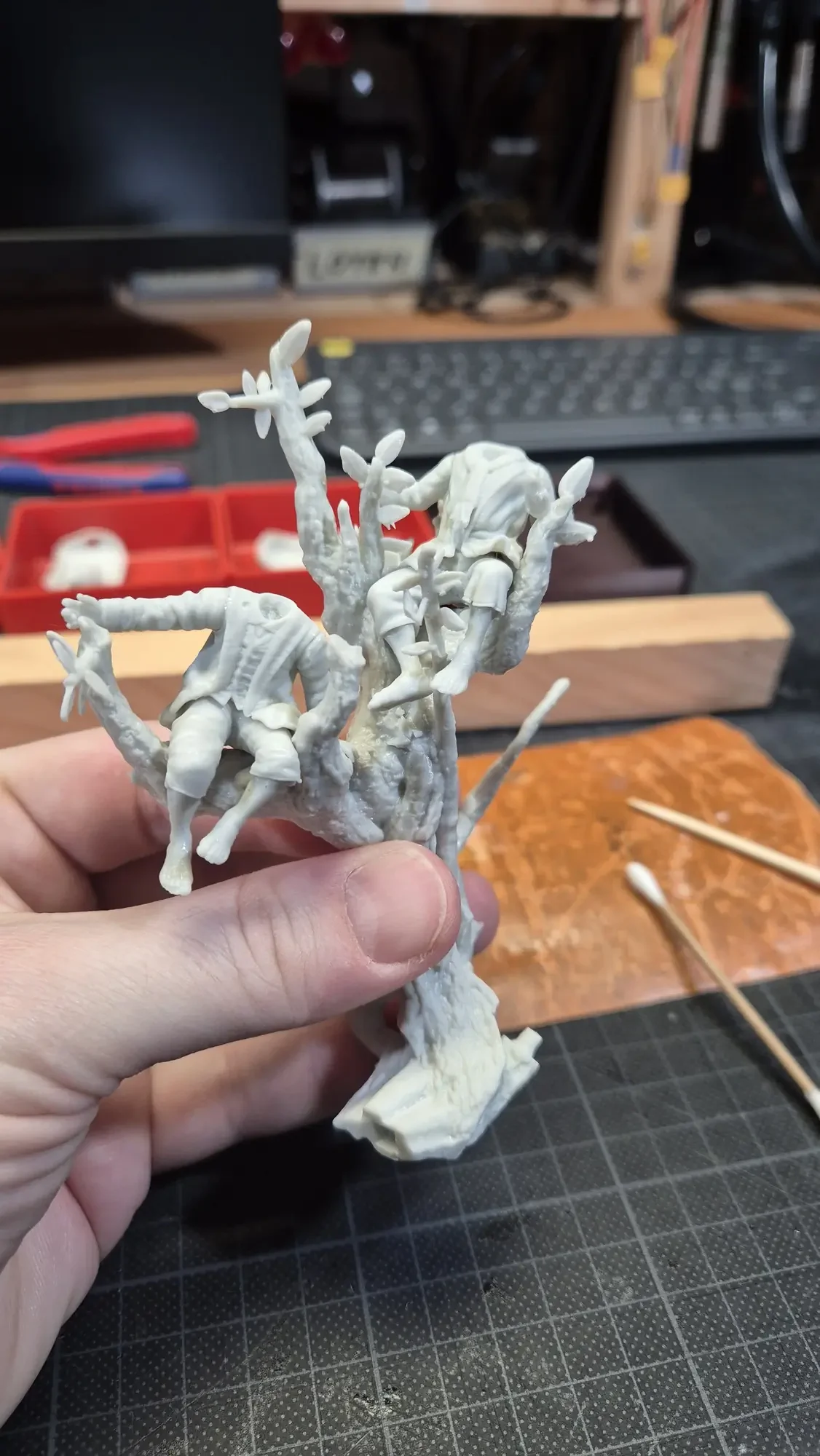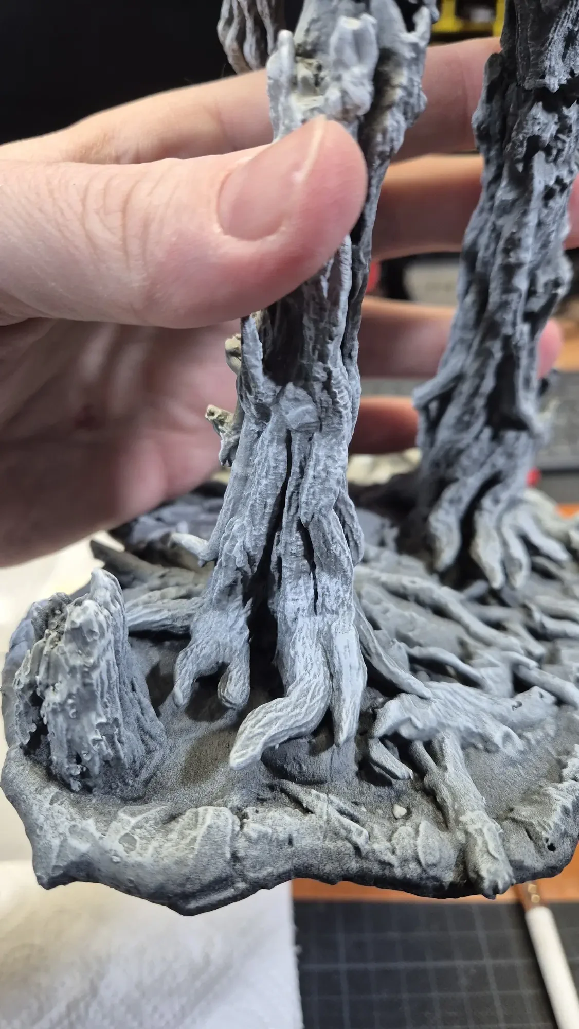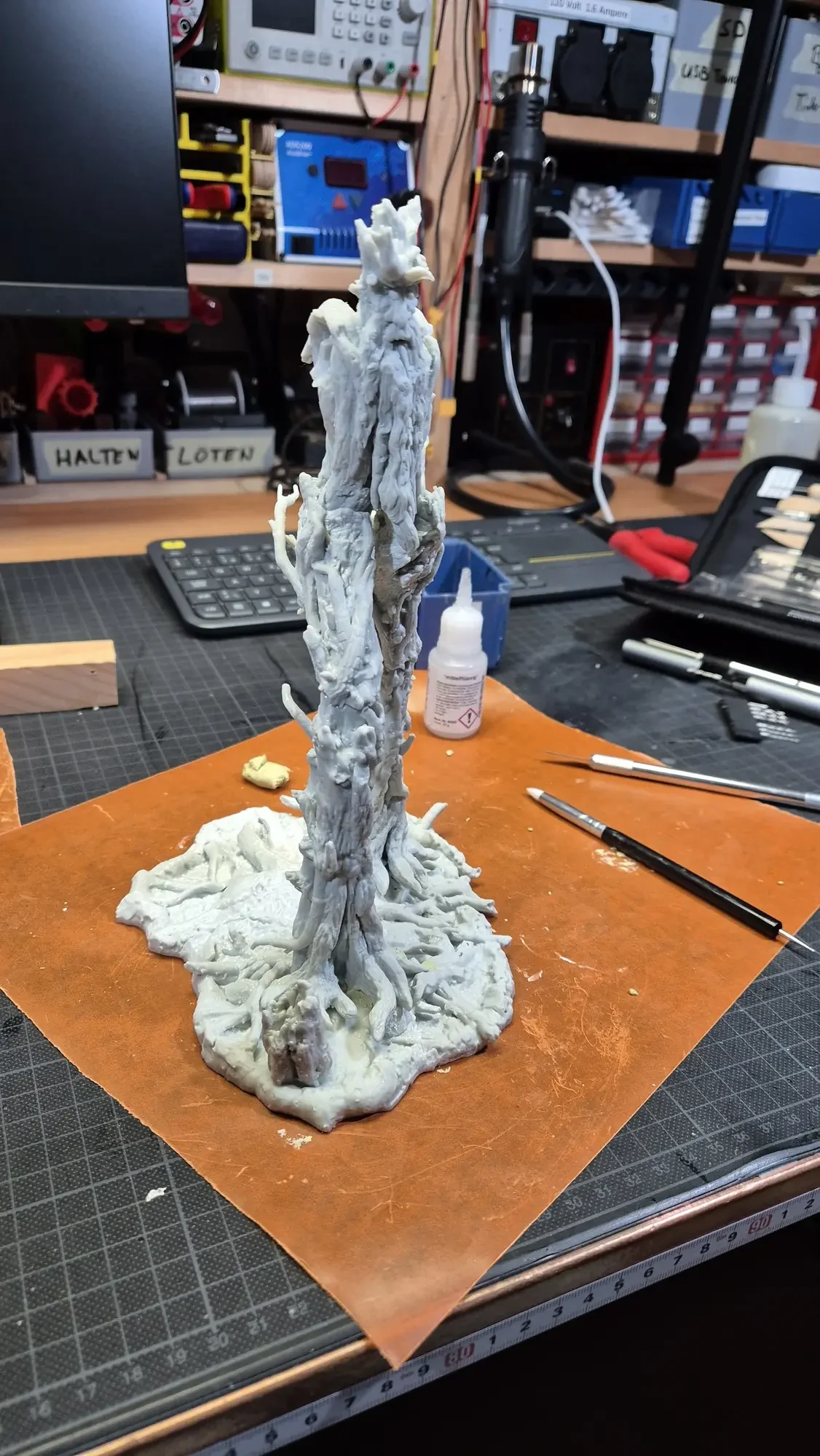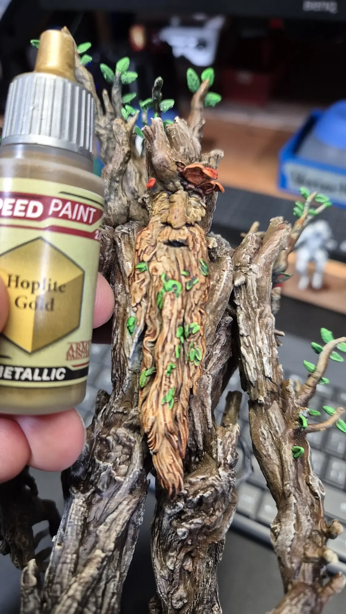 Drei Jahre nachdem ich Gandalf verschenkt habe, hat dieselbe Person Baumbart mit Merry und Pippin zum Geburtstag erhalten. Ich habe definitiv viel gelernt in den vergangenen drei Jahren, dafür war das Projekt aber auch viel größer. Ich habe erneut zwei parallel gemacht damit ich immer einen “Test Baumbart” hatte, welcher nun bei mir nach dem rechten sieht.