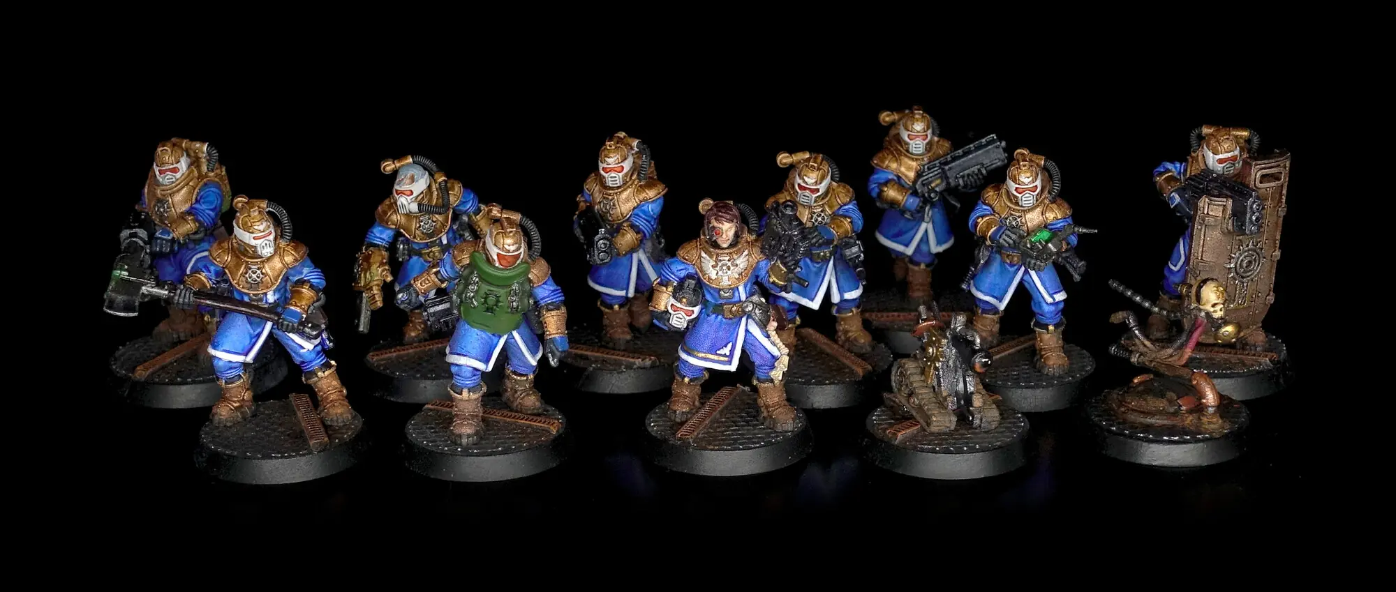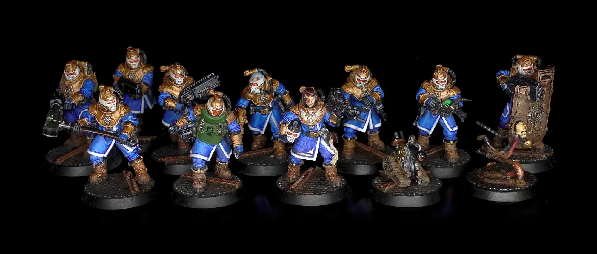 Der nächste Schlag gegen meinen “Pile of shame” sind die Imperial Navy Breachers. Sie sind das zweite der Kill Teams in der “Into The Dark”-Box: Die kämpfenden Männer und Frauen der Imperialen Flotte werden für viele Aufgaben herangezogen, von der Sicherung von Raumhäfen bis hin zur Begleitung der Navigator-Elite. Die mutigsten und kühnsten unter ihnen werden für die Breacher-Teams ausgewählt – der brachiale Hammer an der Spitze eines Boarding-Angriffs der Flotte. Im Nahkampf ausgebildet und mit einer Vielzahl an Spezialausrüstung ausgestattet, durchbrechen diese entschlossenen Enter-Truppen alles, was sich ihnen in den Weg stellt, unter einem Hagel aus Schrotflintenfeuer, Granaten und Axthieben.