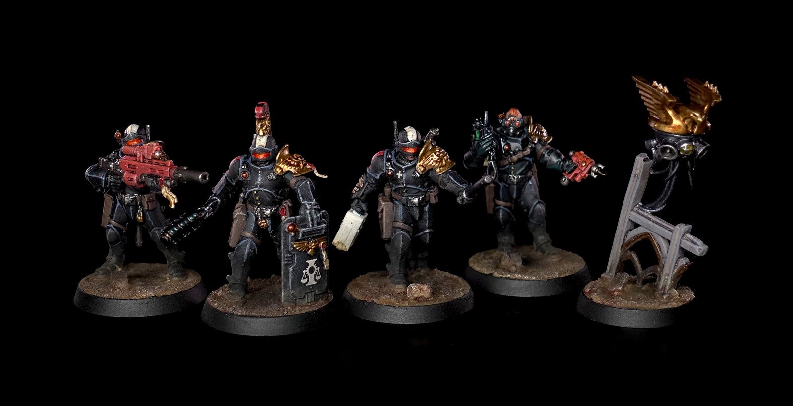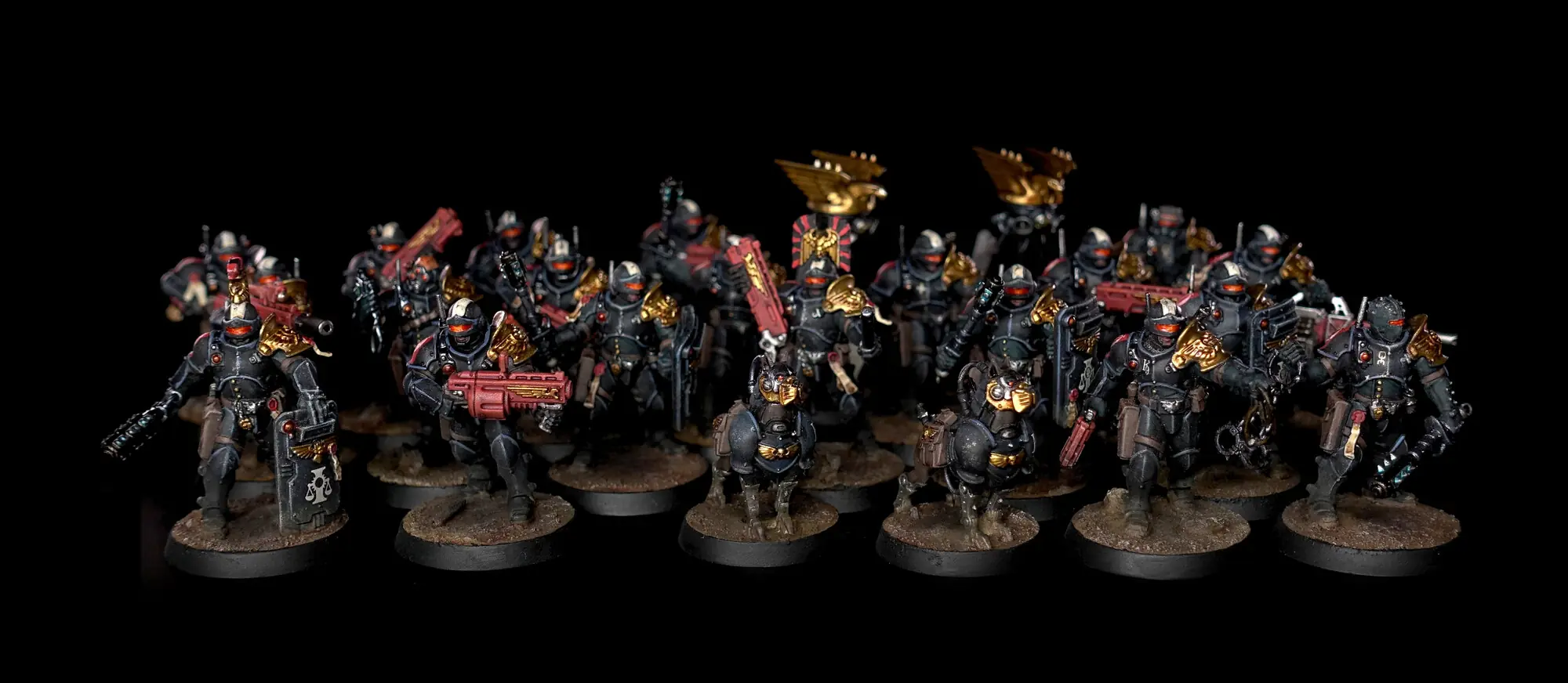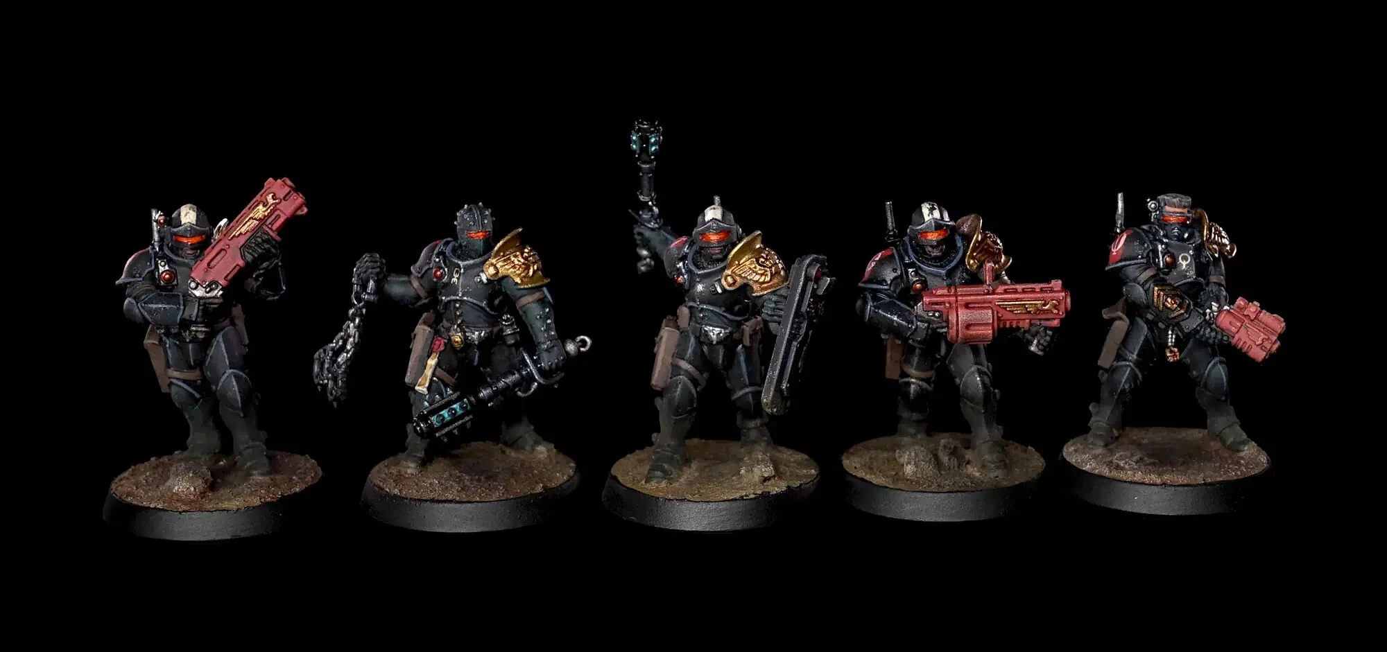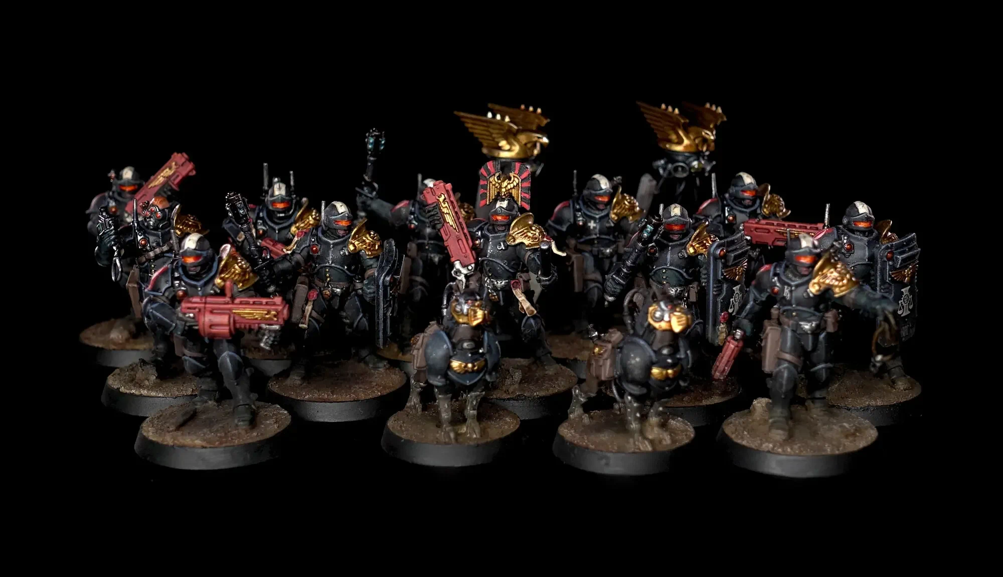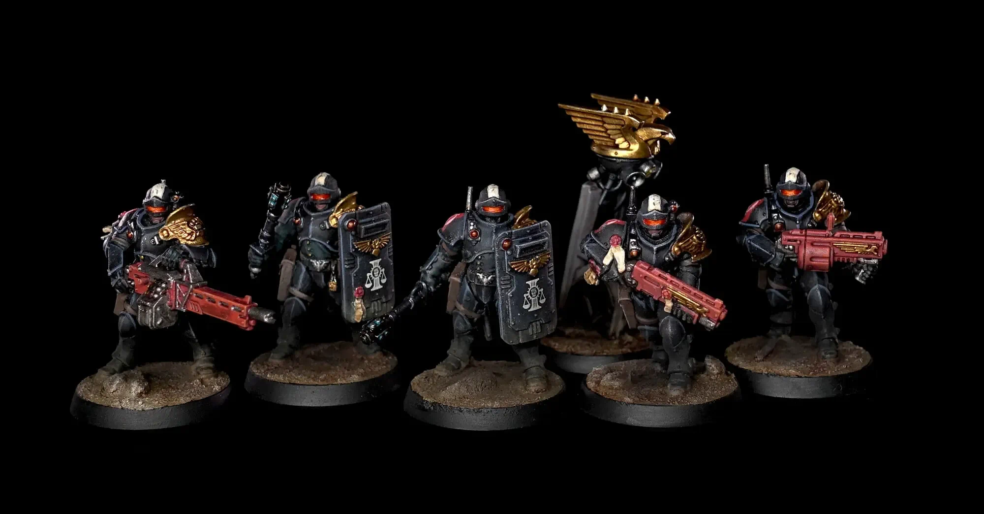 In diesem Beitrag bemale ich das unerbittliche Kill Team des Adeptus Arbites, den Vollstreckertrupp. Als gnadenlose Hüter des imperialen Gesetzes treten diese Elitegesetzeshüter dort auf, wo Chaos, Aufstände und Ketzerei das Imperium bedrohen. Mit schwerer Panzerung, fortschrittlicher Bewaffnung und unerschütterlicher Autorität schlagen sie jeden Widerstand nieder – sei es durch Einschüchterung, brutale Gewalt oder gezielte Hinrichtungen im Namen des Imperators.