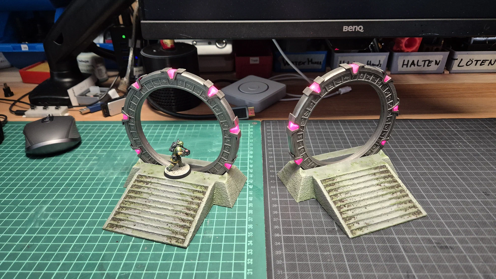 Als grosser Fan des Stargate SG-1-Universums wollte ich ein funktionales Stargate im Tabletop-Massstab bauen. Deshalb habe ich ein eigenes 3D-Modell konstruiert und die komplette Hard- und Software selbst entwickelt.